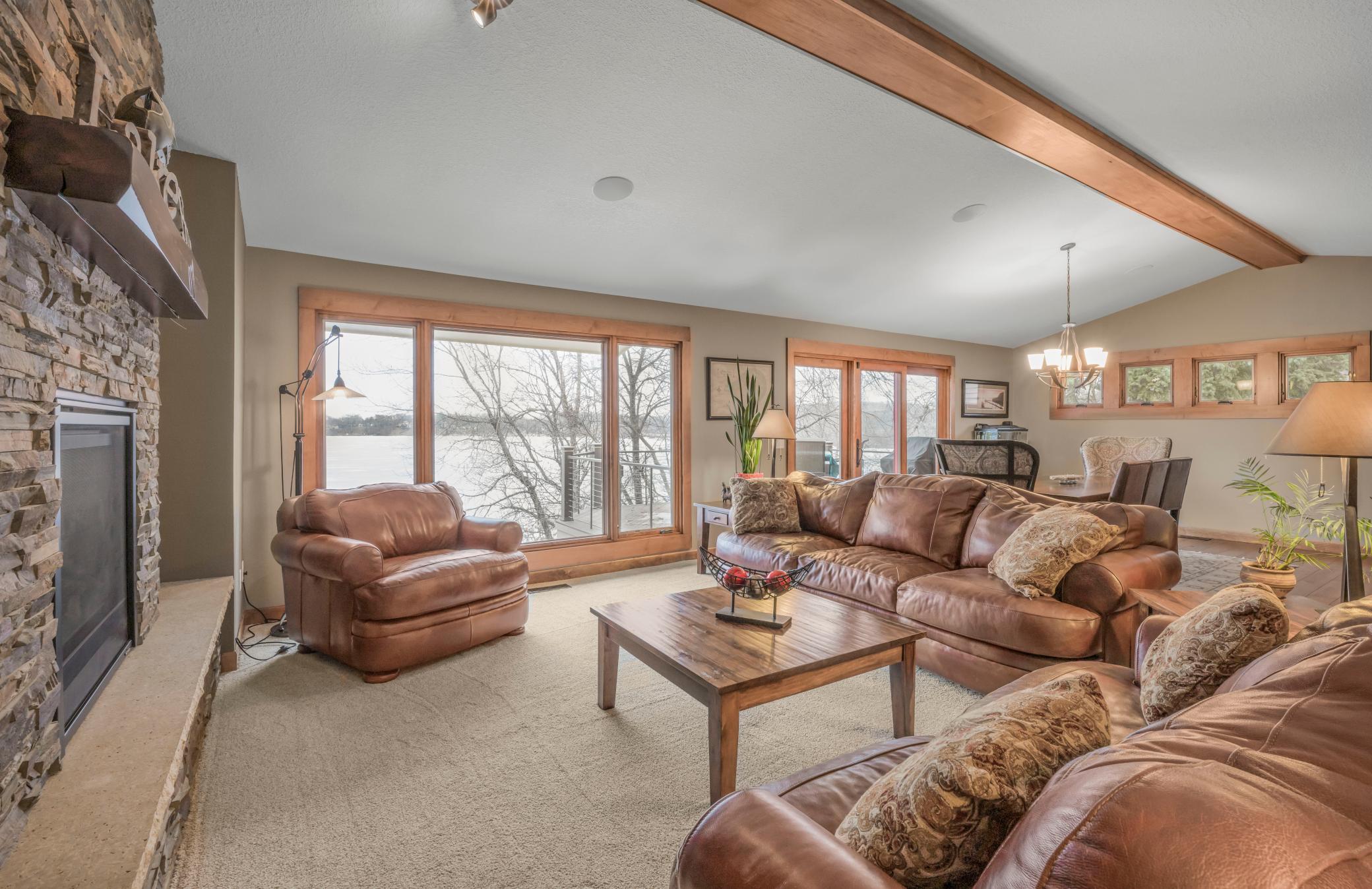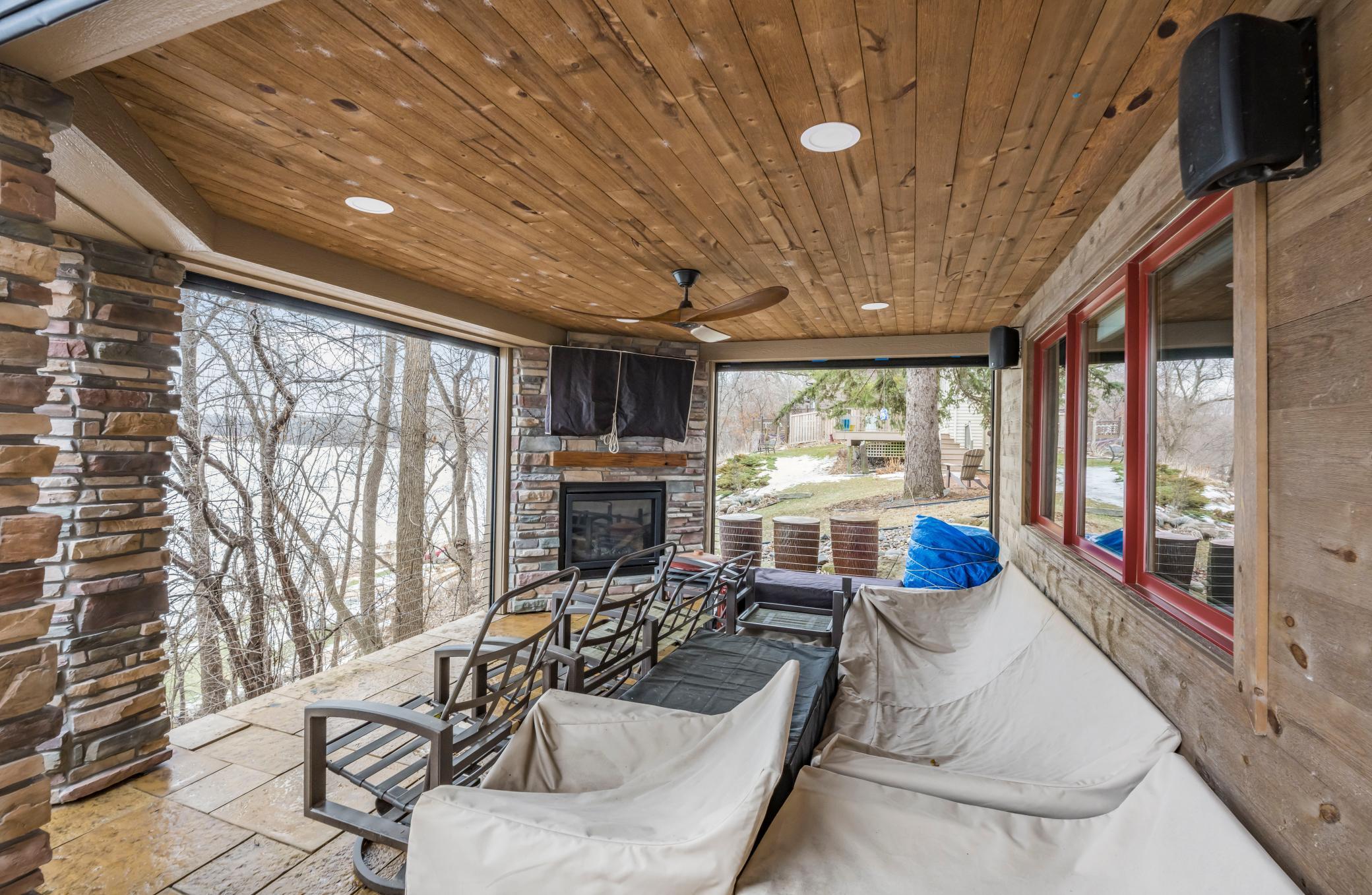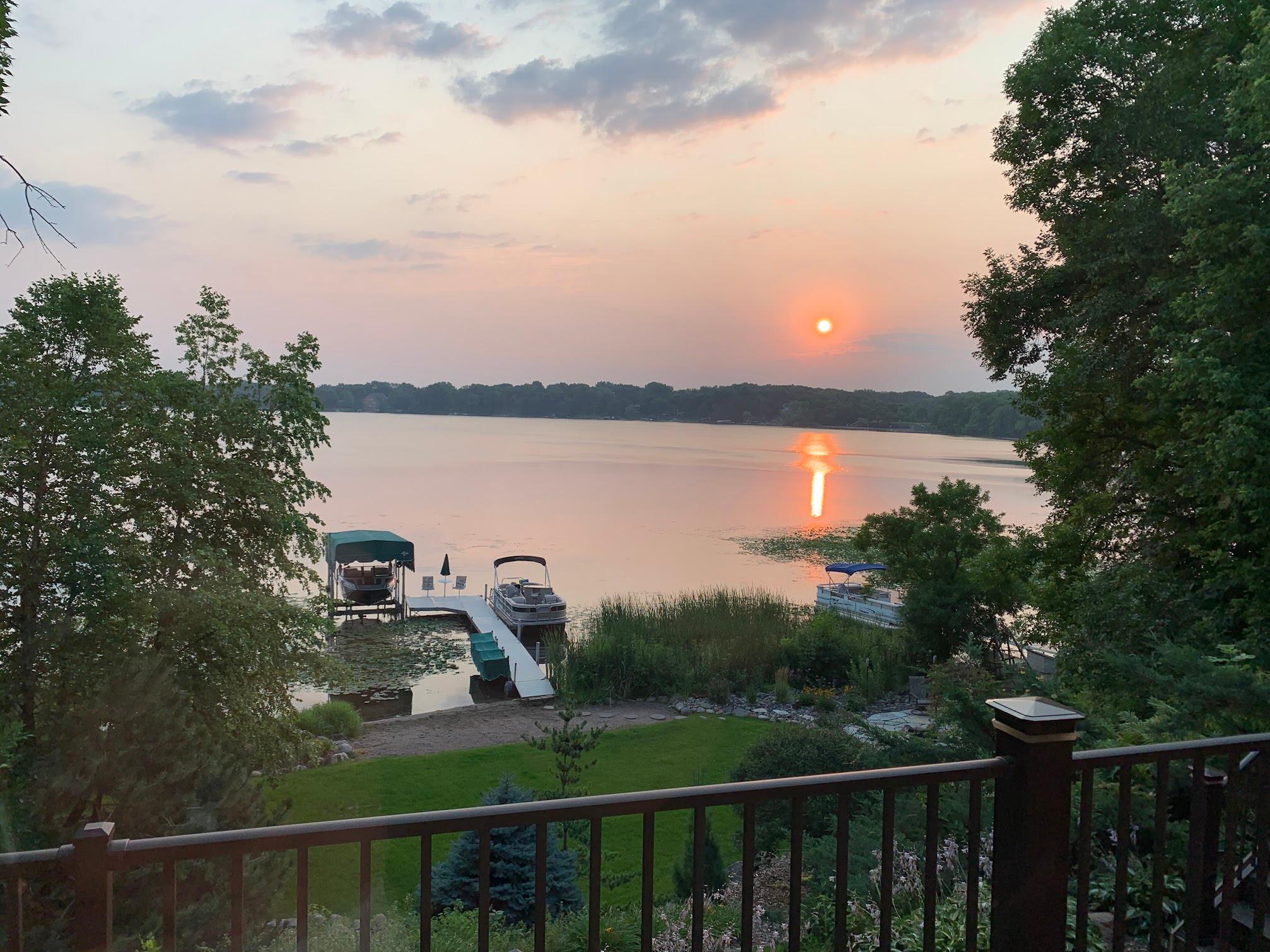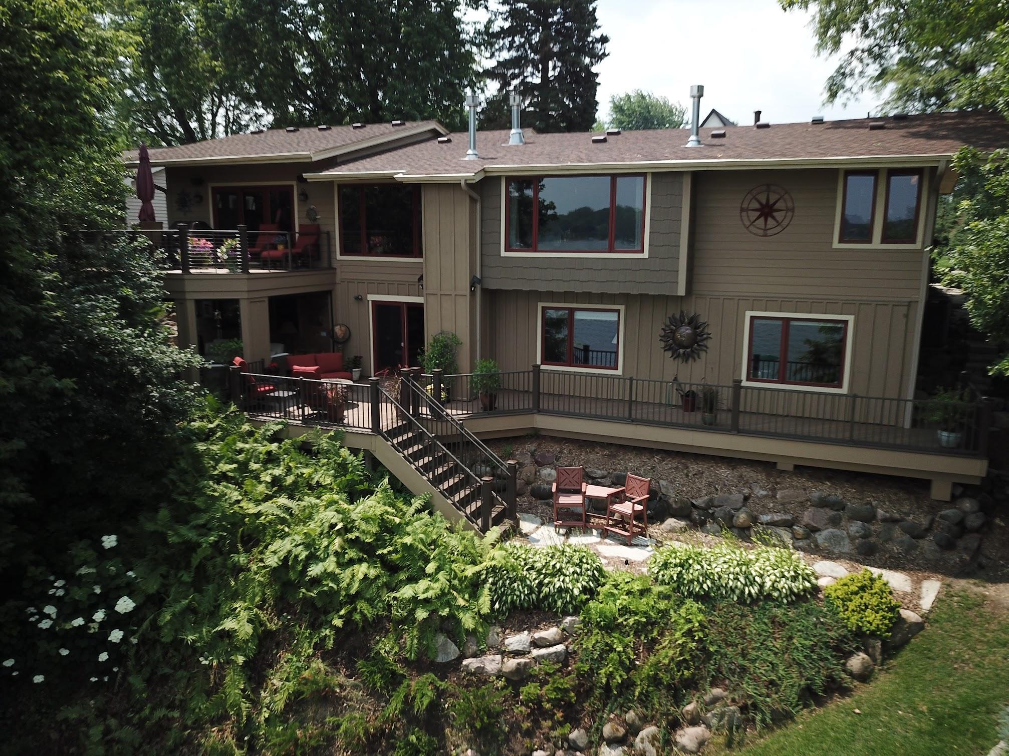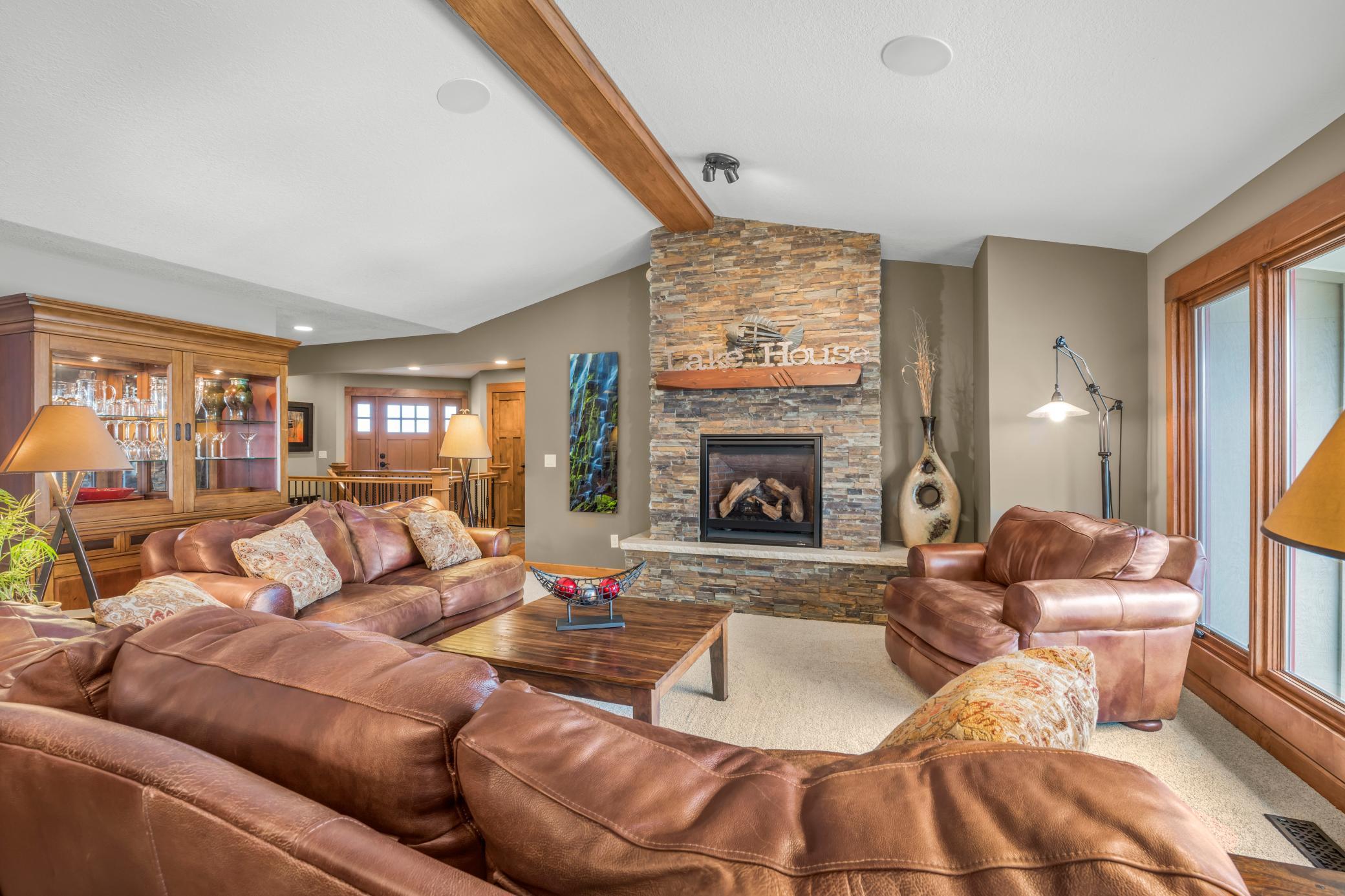 Welcome to an extraordinary lakeside retreat on Weaver Lake! This craftsman-style home overlooks 111 feet of lakeshore with a partial sandy beach and a large, flag-stone patio surrounding a firepit. This exceptional home was remodeled in 2012 with entertaining in mind and boasts an open-concept main floor. Every room offers stunning, expansive views of the lake. Outside, the home includes patios, maintenance-free decks and the 221 sq ft outdoor room, which features a gas fireplace, a gas hookup for a fire table and DuraScreen retractable screens. The main floor is designed to maximize natural light, with floor-to-ceiling windows that flood the home with natural light and capture sweeping panoramic views. A harmonious balance of custom woodwork - including solid hickory hand-scraped floors and stone accents complete the perfect balance of a modern and natural feel. The great room includes the kitchen, living room and dining area. The gourmet kitchen is equipped with Thermador appliances, custom cabinetry, granite countertops, an expansive center island, water filtration system, and a walk-in pantry. The spacious owner's suite includes a large bedroom, a bathroom with dual vanities, a jetted Aquatics two-person tub and expansive dual shower, as well as a spacious walk-in closet. A total of 704 sq ft in all! The mudroom includes a dog bath and opens into a fenced dog yard. A half bath for guests rounds out the main floor. The walk-out lower level features a family room/rec room, a large bedroom with oversized, walk-in closet, two additional bedrooms and a 3/4 bathroom. The house includes a full-home stereo and security system. The beautifully landscaped yard offers a blend of privacy and natural beauty along with several areas to entertain of just sit and enjoy the view. Within walking distance to parks and bike trails, this home is a true gem on Weaver Lake!