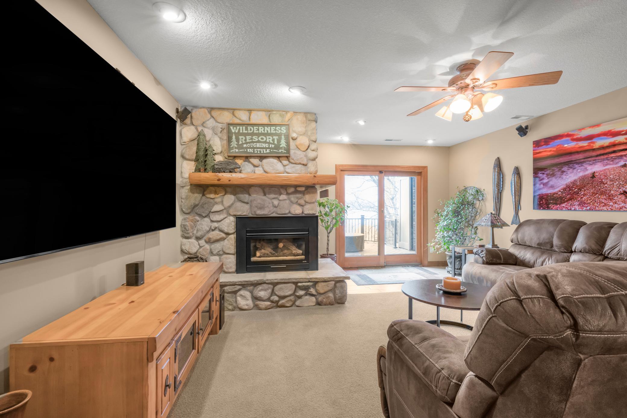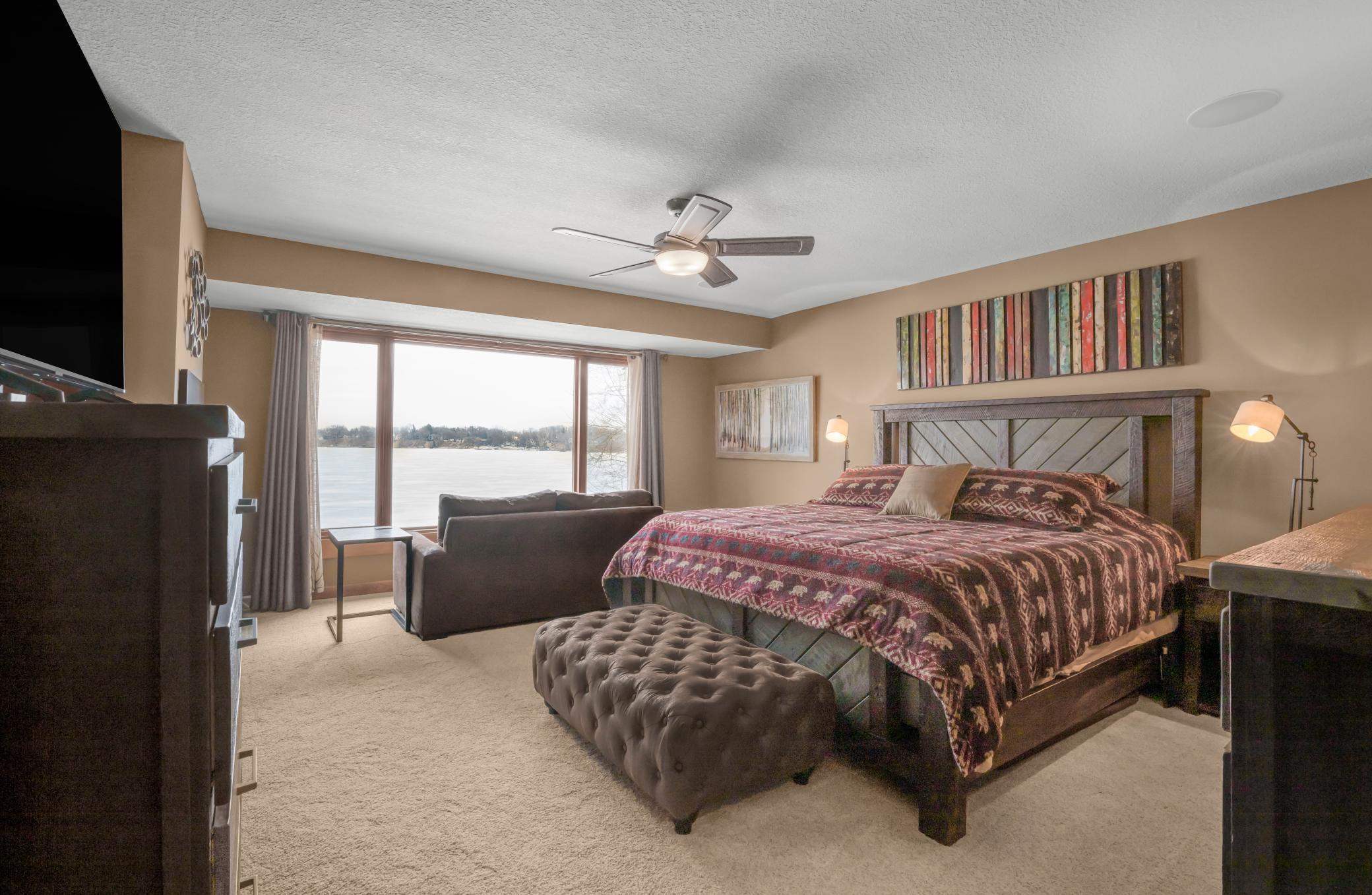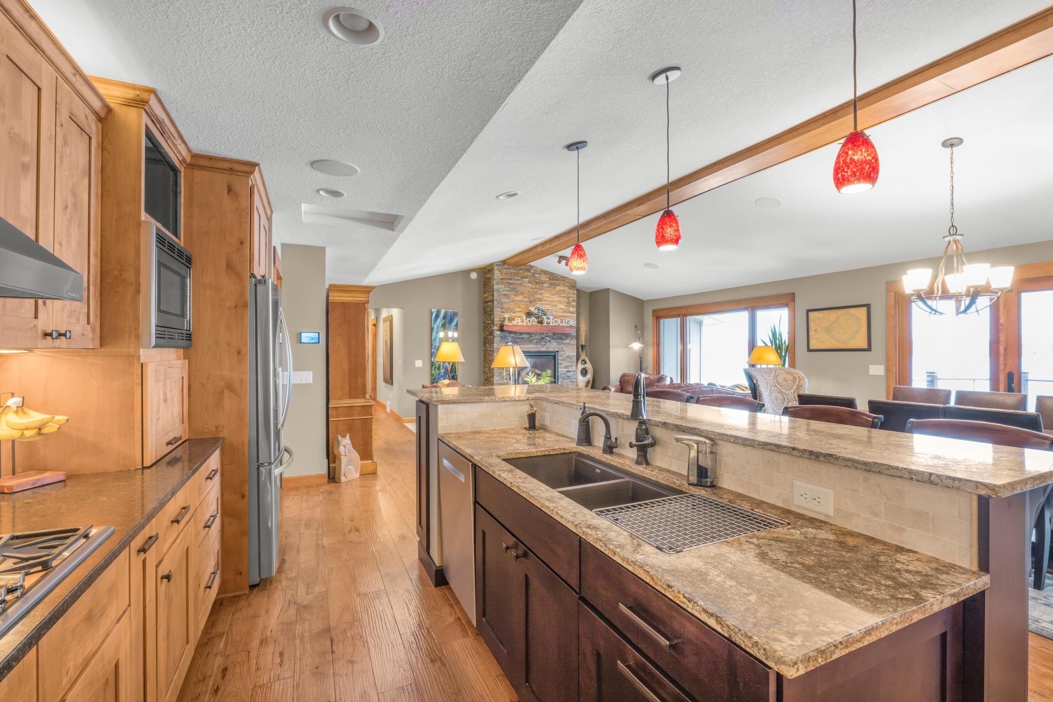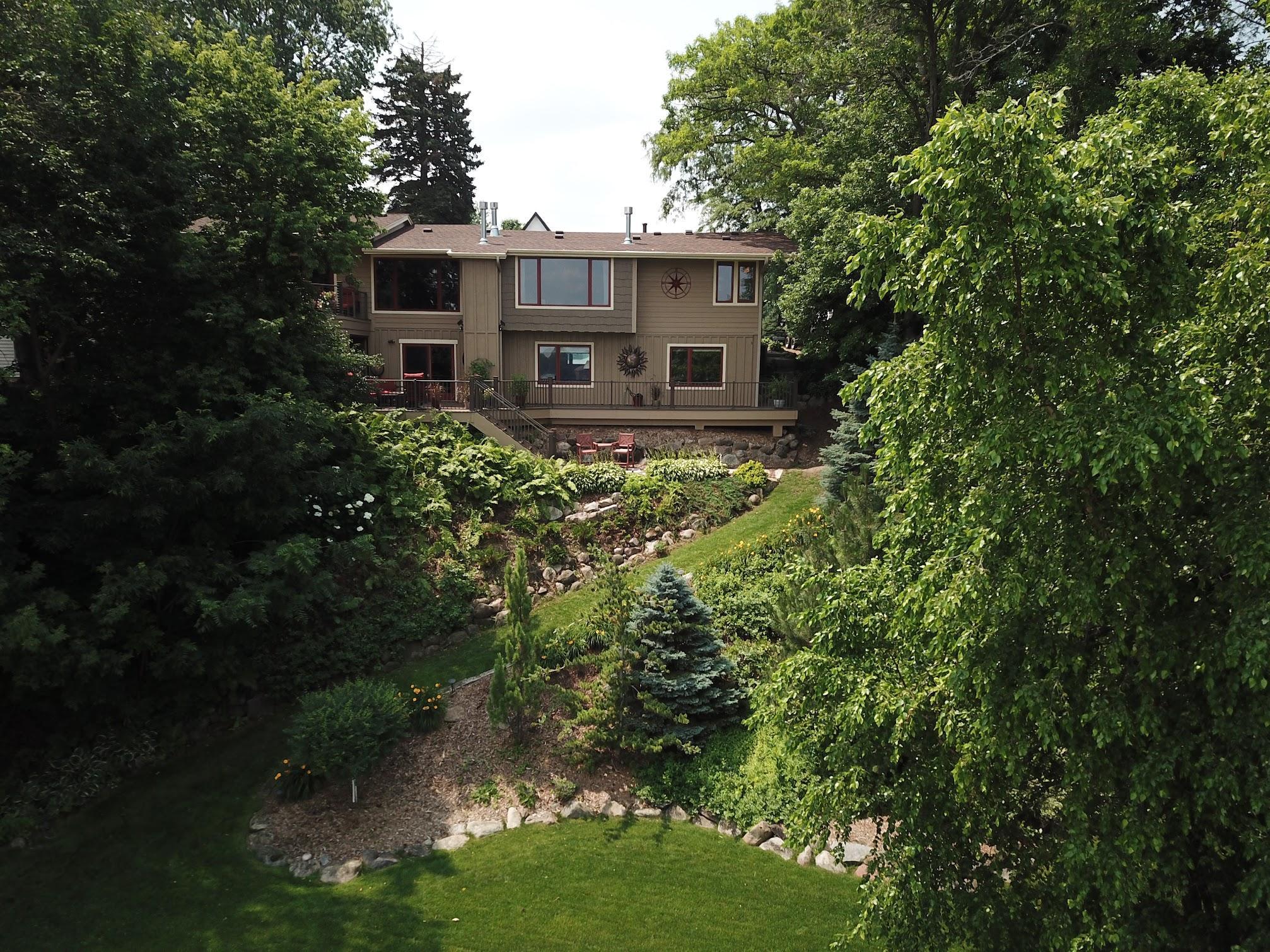 Welcome to an extraordinary lakeside retreat on Weaver Lake! This craftsman-style home overlooks 111 feet of lakeshore with a partial sandy beach and a large, flag-stone patio surrounding a firepit. This exceptional home was remodeled in 2012 with entertaining in mind and boasts an open-concept main floor. Every room offers stunning, expansive views of the lake. Outside, the home includes patios, maintenance-free decks and the 221 sq ft outdoor room, which features a gas fireplace, a gas hookup for a fire table and DuraScreen retractable screens. The main floor is designed to maximize natural light, with floor-to-ceiling windows that flood the home with natural light and capture sweeping panoramic views. A harmonious balance of custom woodwork - including solid hickory hand-scraped floors and stone accents complete the perfect balance of a modern and natural feel. The great room includes the kitchen, living room and dining area. The gourmet kitchen is equipped with Thermador appliances, custom cabinetry, granite countertops, an expansive center island, water filtration system, and a walk-in pantry. The spacious owner's suite includes a large bedroom, a bathroom with dual vanities, a jetted Aquatics two-person tub and expansive dual shower, as well as a spacious walk-in closet. A total of 704 sq ft in all! The mudroom includes a dog bath and opens into a fenced dog yard. A half bath for guests rounds out the main floor. The walk-out lower level features a family room/rec room, a large bedroom with oversized, walk-in closet, two additional bedrooms and a 3/4 bathroom. The house includes a full-home stereo and security system. The beautifully landscaped yard offers a blend of privacy and natural beauty along with several areas to entertain of just sit and enjoy the view. Within walking distance to parks and bike trails, this home is a true gem on Weaver Lake!