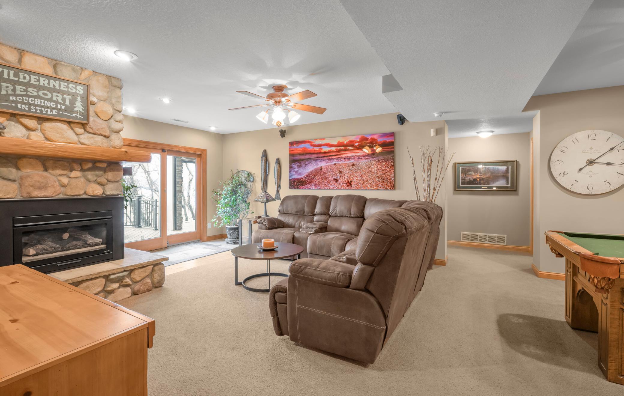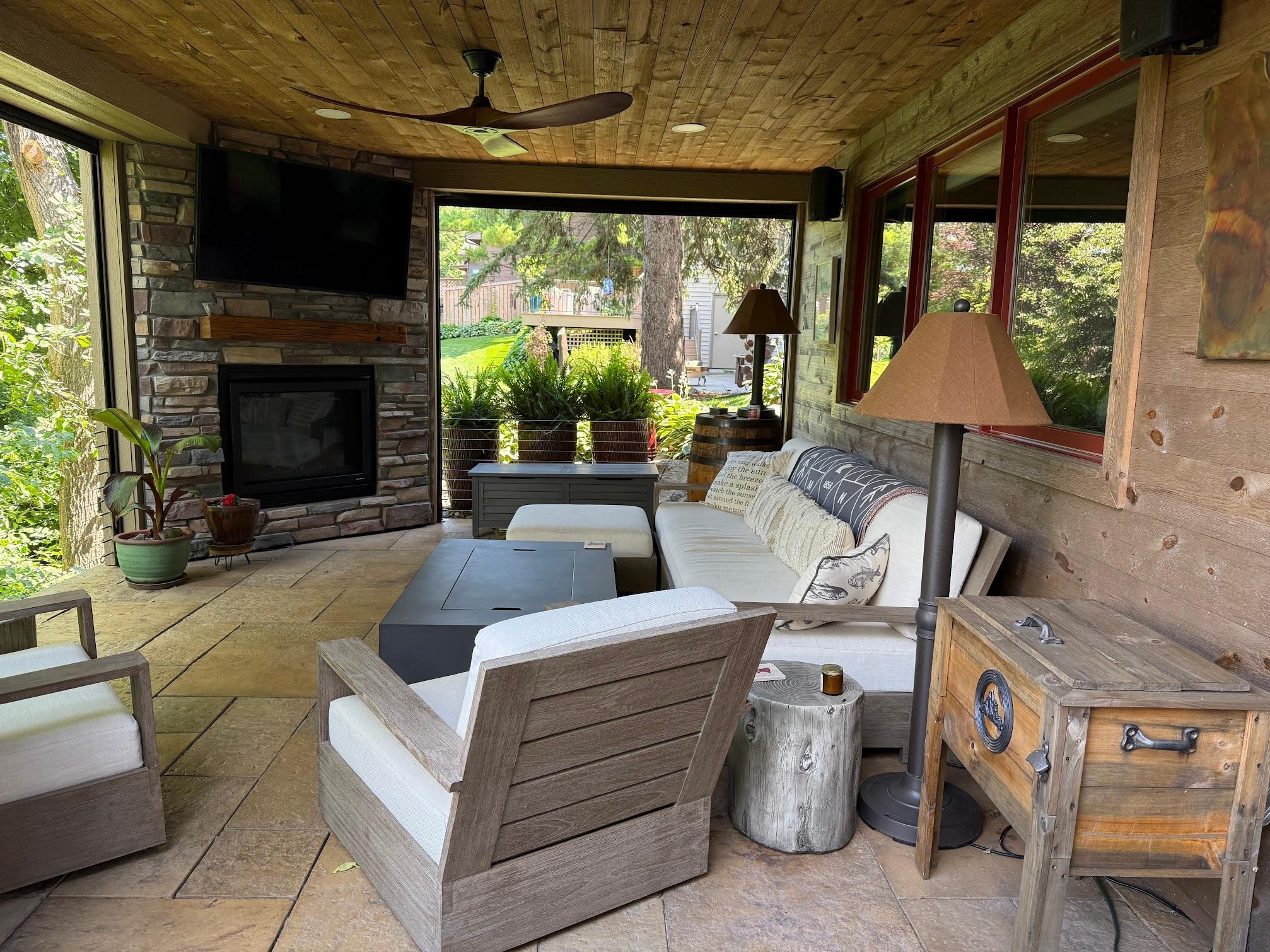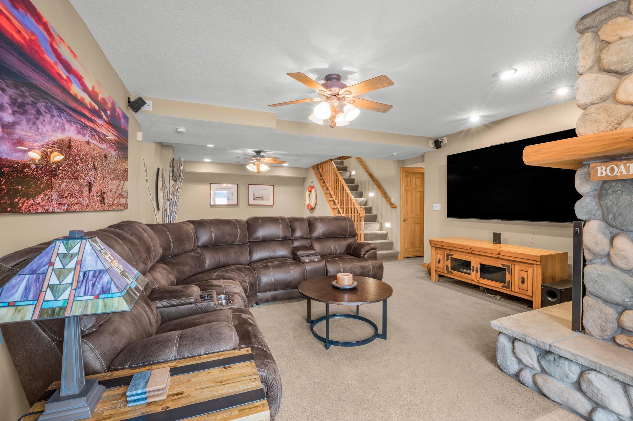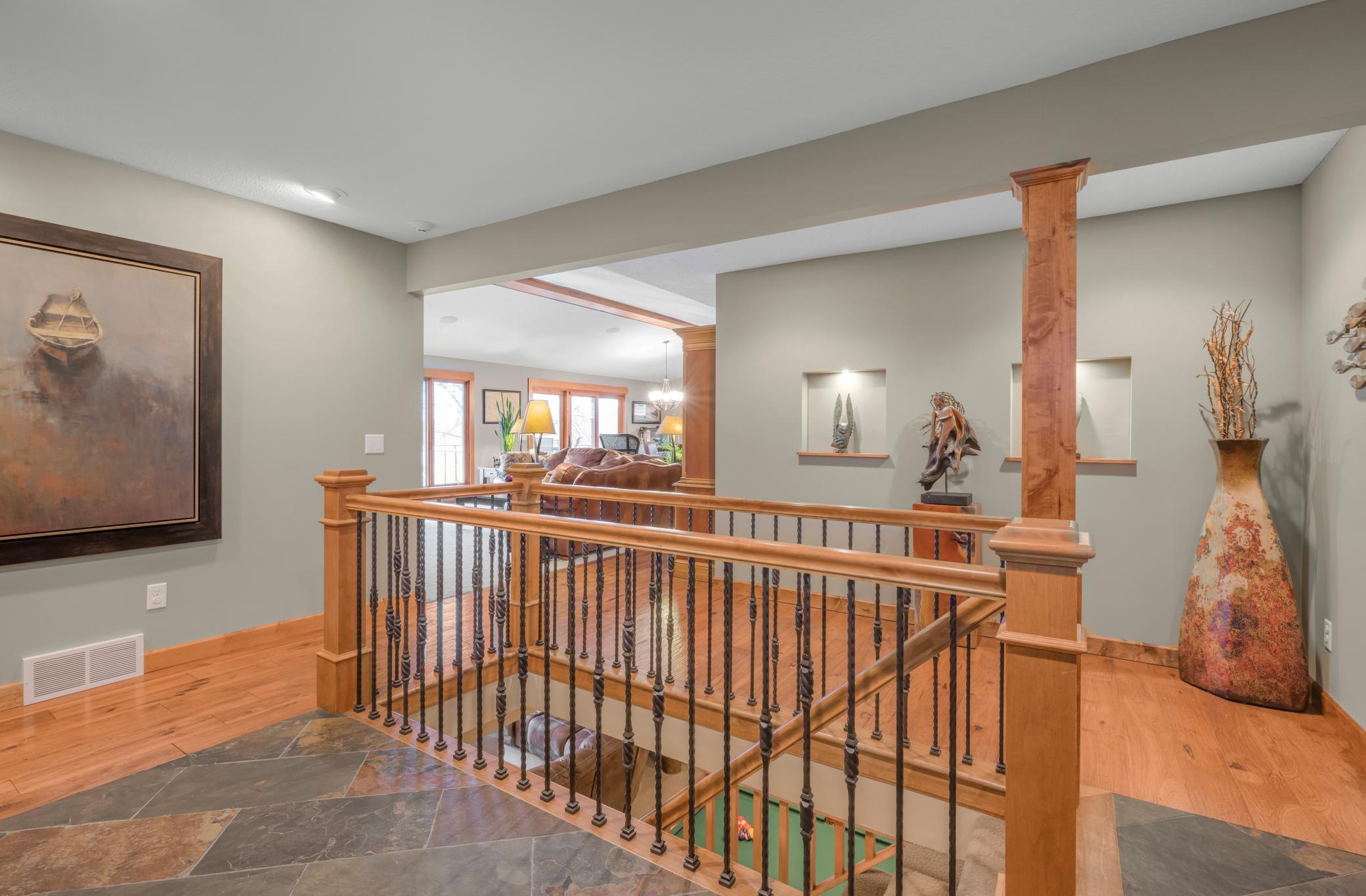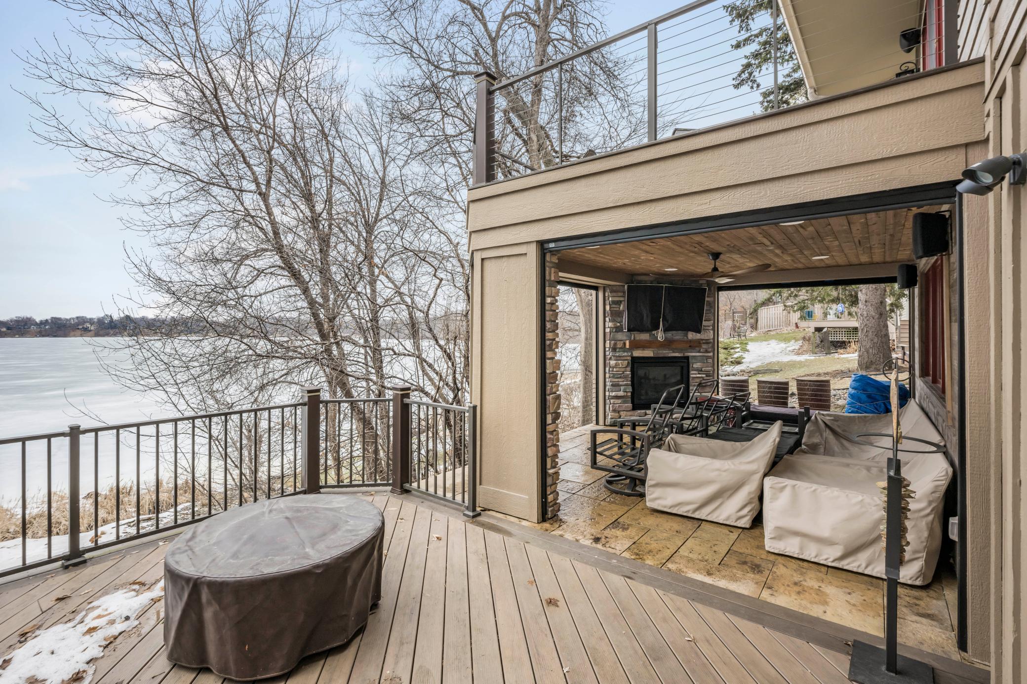 Welcome to an extraordinary lakeside retreat on Weaver Lake! This craftsman-style home overlooks 111 feet of lakeshore with a partial sandy beach and a large, flag-stone patio surrounding a firepit. This exceptional home was remodeled in 2012 with entertaining in mind and boasts an open-concept main floor. Every room offers stunning, expansive views of the lake. Outside, the home includes patios, maintenance-free decks and the 221 sq ft outdoor room, which features a gas fireplace, a gas hookup for a fire table and DuraScreen retractable screens. The main floor is designed to maximize natural light, with floor-to-ceiling windows that flood the home with natural light and capture sweeping panoramic views. A harmonious balance of custom woodwork - including solid hickory hand-scraped floors and stone accents complete the perfect balance of a modern and natural feel. The great room includes the kitchen, living room and dining area. The gourmet kitchen is equipped with Thermador appliances, custom cabinetry, granite countertops, an expansive center island, water filtration system, and a walk-in pantry. The spacious owner's suite includes a large bedroom, a bathroom with dual vanities, a jetted Aquatics two-person tub and expansive dual shower, as well as a spacious walk-in closet. A total of 704 sq ft in all! The mudroom includes a dog bath and opens into a fenced dog yard. A half bath for guests rounds out the main floor. The walk-out lower level features a family room/rec room, a large bedroom with oversized, walk-in closet, two additional bedrooms and a 3/4 bathroom. The house includes a full-home stereo and security system. The beautifully landscaped yard offers a blend of privacy and natural beauty along with several areas to entertain of just sit and enjoy the view. Within walking distance to parks and bike trails, this home is a true gem on Weaver Lake!