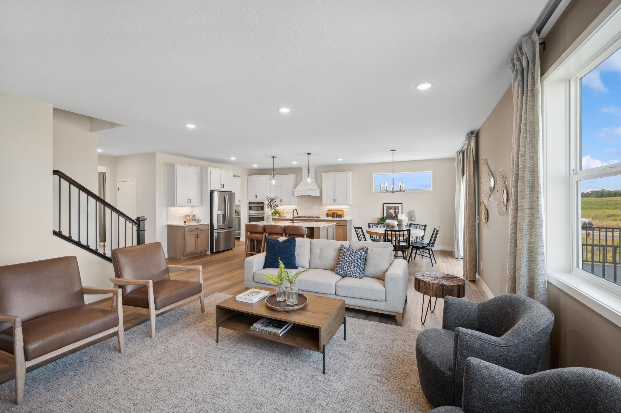 JP Brooks Builders, your local, trusted, quality home builder, presents the Sedona, a truly one-of-a-kind two-story home set on 4 stunning country acres yet close to modern amenities! This exceptional property offers 6 bedrooms, 5 bathrooms, and a rare 4-car garage with built-in workshop! Thoughtfully designed for today’s lifestyles, this home features a main-floor bedroom ideal for multi-generational living, a main-floor flex room, and a sun-filled morning room! The gourmet kitchen impresses with quartz countertops, an oversized island with winged walls, soft-close cabinetry, a 36” cooktop with wood hood, and butlers pantry that flows seamlessly into inviting living spaces highlighted by an stunning gas fireplace. The finished walkout lower level adds even more space to gather, complete with a spacious living room with electric fireplace and wet bar, game room, and additional flex room! Upstairs, enjoy a luxury suite complete with an owner’s bath with soaker tub and tiled shower, a Jack-and-Jill bath, private princess suite, and bonus loft! LP siding accents the front exterior, adding timeless curb appeal. Peaceful country living with luxury finishes on a quite street yet quick access to freeways and Maple Grove!