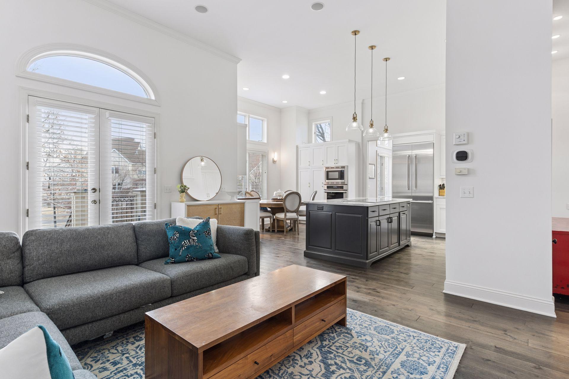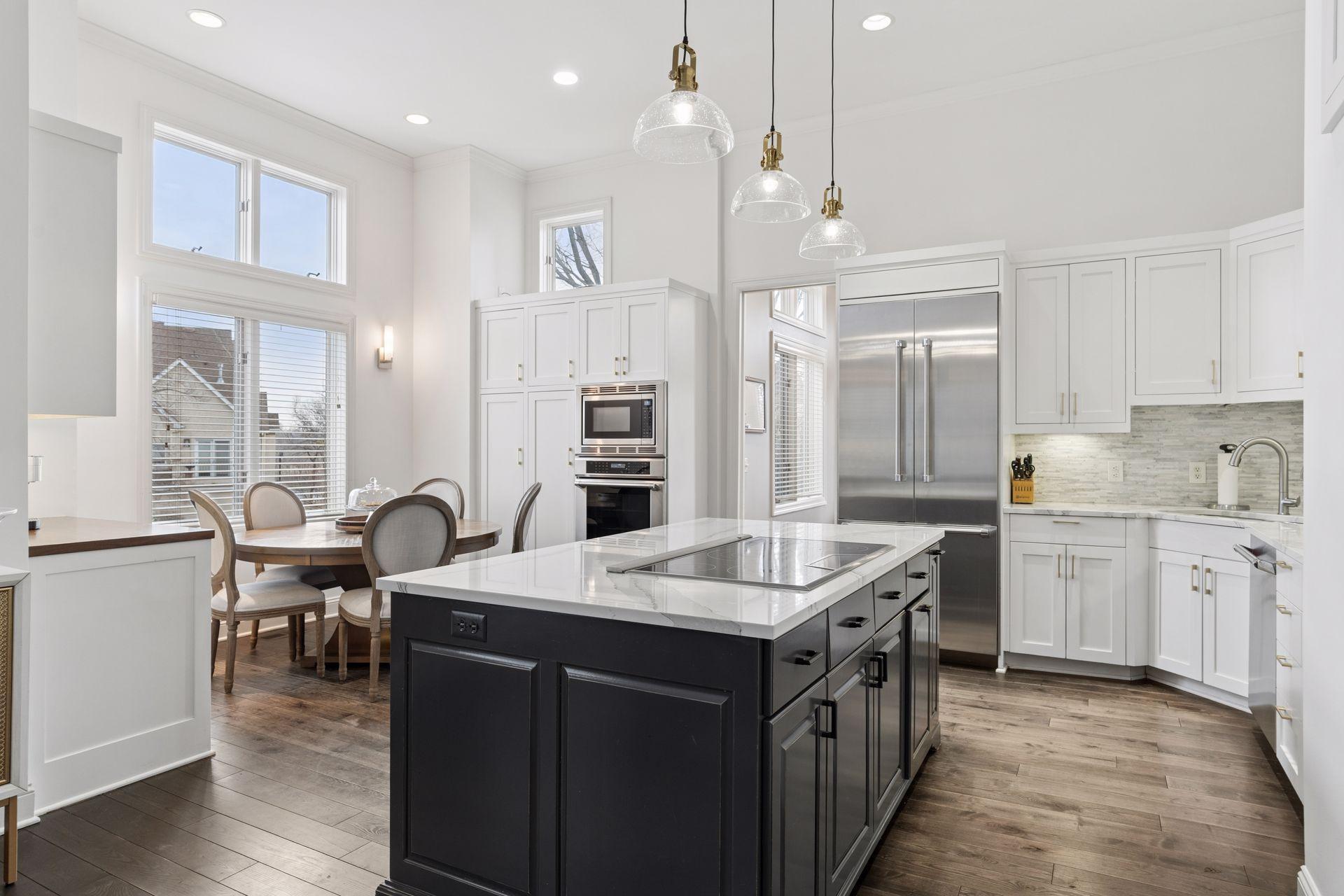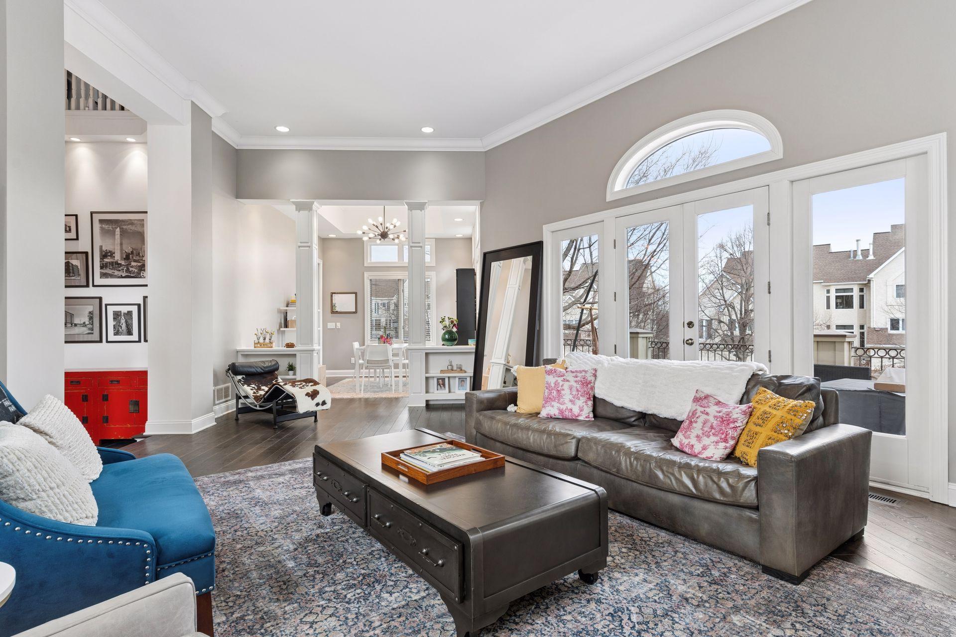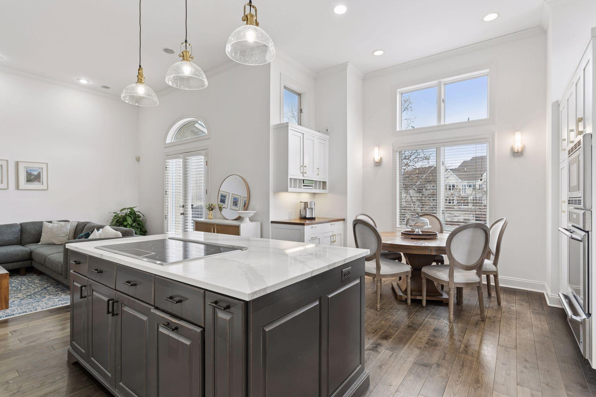 Rare opportunity to own a spacious home in one of Minneapolis’ most desirable riverfront neighborhoods, The Landings. Located just steps from the Mississippi River trails and the heart of the North Loop, this home offers the perfect blend of urban walkability and expansive living space. Inside you’ll find 12-foot ceilings, oversized windows, and over 4,200 square feet of living space designed for both everyday comfort and entertaining. The dramatic living room features a beautiful gas fireplace, rich hardwood flooring, and soaring ceilings that fill the space with natural light. The chef’s kitchen is a standout with custom cabinetry, Cambria countertops, Thermador suite of stainless steel appliances, and a large center island that flows seamlessly into the dining and family areas. The home includes three spacious bedrooms on the upper level and four bathrooms, including a private primary suite with a spa-like bath featuring a soaking tub, walk-in shower, and elegant finishes. The finished lower level adds exceptional flexibility with a large family room, wet bar with beverage fridge, and generous space for entertaining, movie nights, or guests. Enjoy outdoor living with two separate decks, perfect for relaxing or hosting friends. Just outside your door are the Mississippi River trails, North Loop restaurants, coffee shops, boutiques, and Target Field, offering one of the most walkable and vibrant locations in Minneapolis.