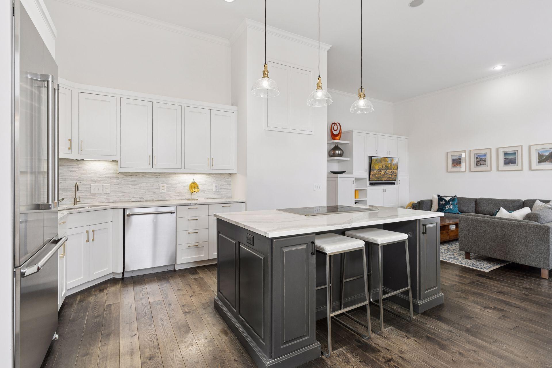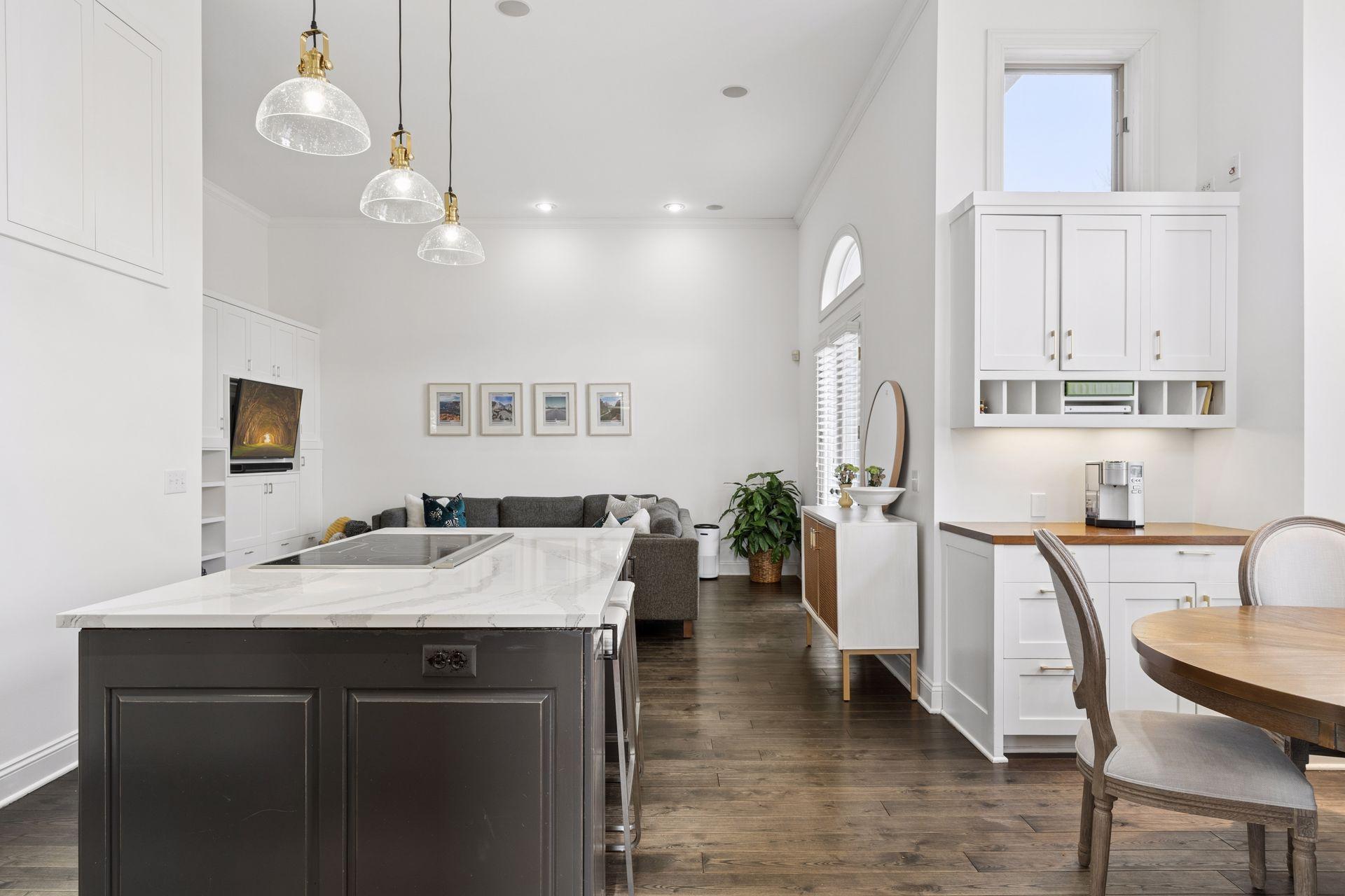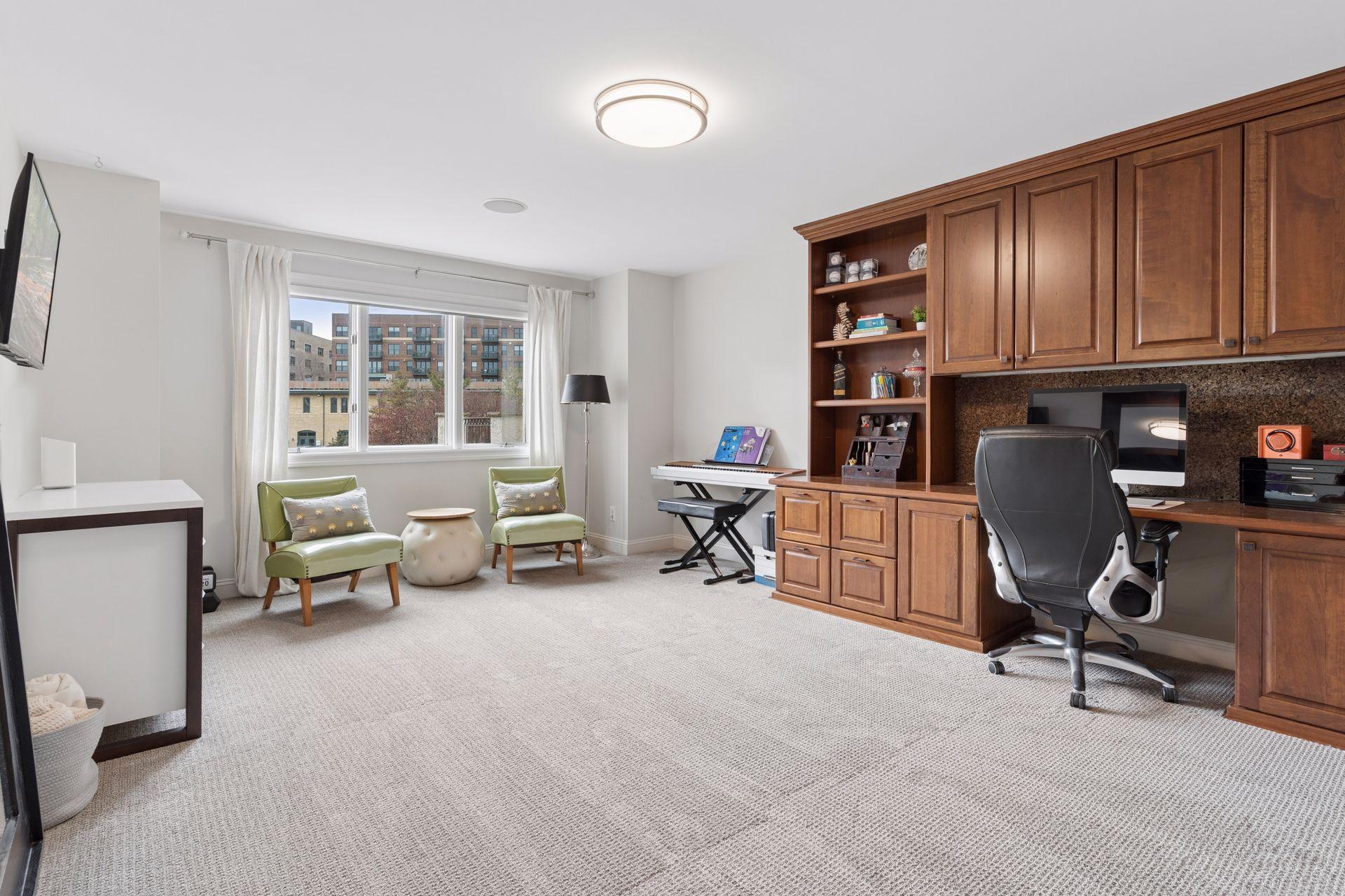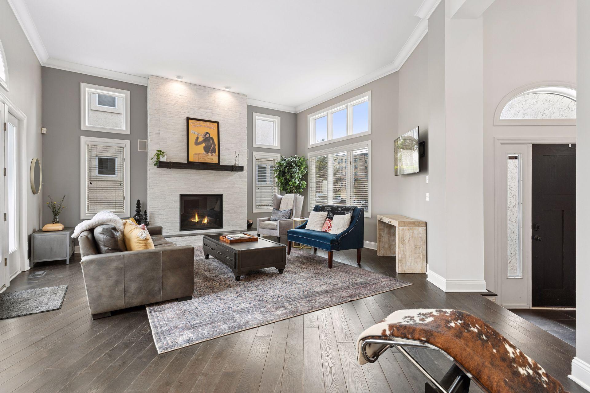 Rare opportunity to own a spacious home in one of Minneapolis’ most desirable riverfront neighborhoods, The Landings. Located just steps from the Mississippi River trails and the heart of the North Loop, this home offers the perfect blend of urban walkability and expansive living space. Inside you’ll find 12-foot ceilings, oversized windows, and over 4,200 square feet of living space designed for both everyday comfort and entertaining. The dramatic living room features a beautiful gas fireplace, rich hardwood flooring, and soaring ceilings that fill the space with natural light. The chef’s kitchen is a standout with custom cabinetry, Cambria countertops, Thermador suite of stainless steel appliances, and a large center island that flows seamlessly into the dining and family areas. The home includes three spacious bedrooms on the upper level and four bathrooms, including a private primary suite with a spa-like bath featuring a soaking tub, walk-in shower, and elegant finishes. The finished lower level adds exceptional flexibility with a large family room, wet bar with beverage fridge, and generous space for entertaining, movie nights, or guests. Enjoy outdoor living with two separate decks, perfect for relaxing or hosting friends. Just outside your door are the Mississippi River trails, North Loop restaurants, coffee shops, boutiques, and Target Field, offering one of the most walkable and vibrant locations in Minneapolis.