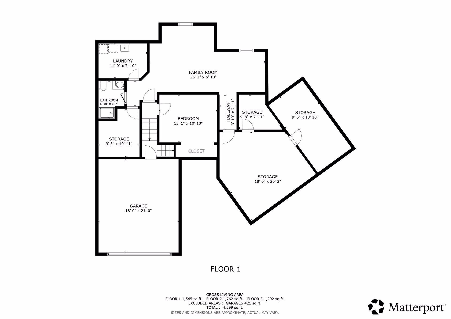| Garage | 2 Car 21 x 18 |