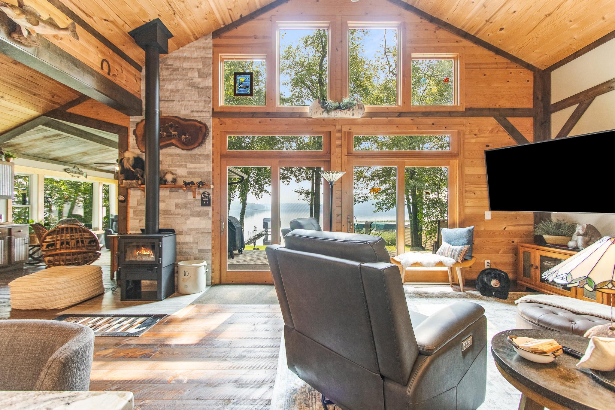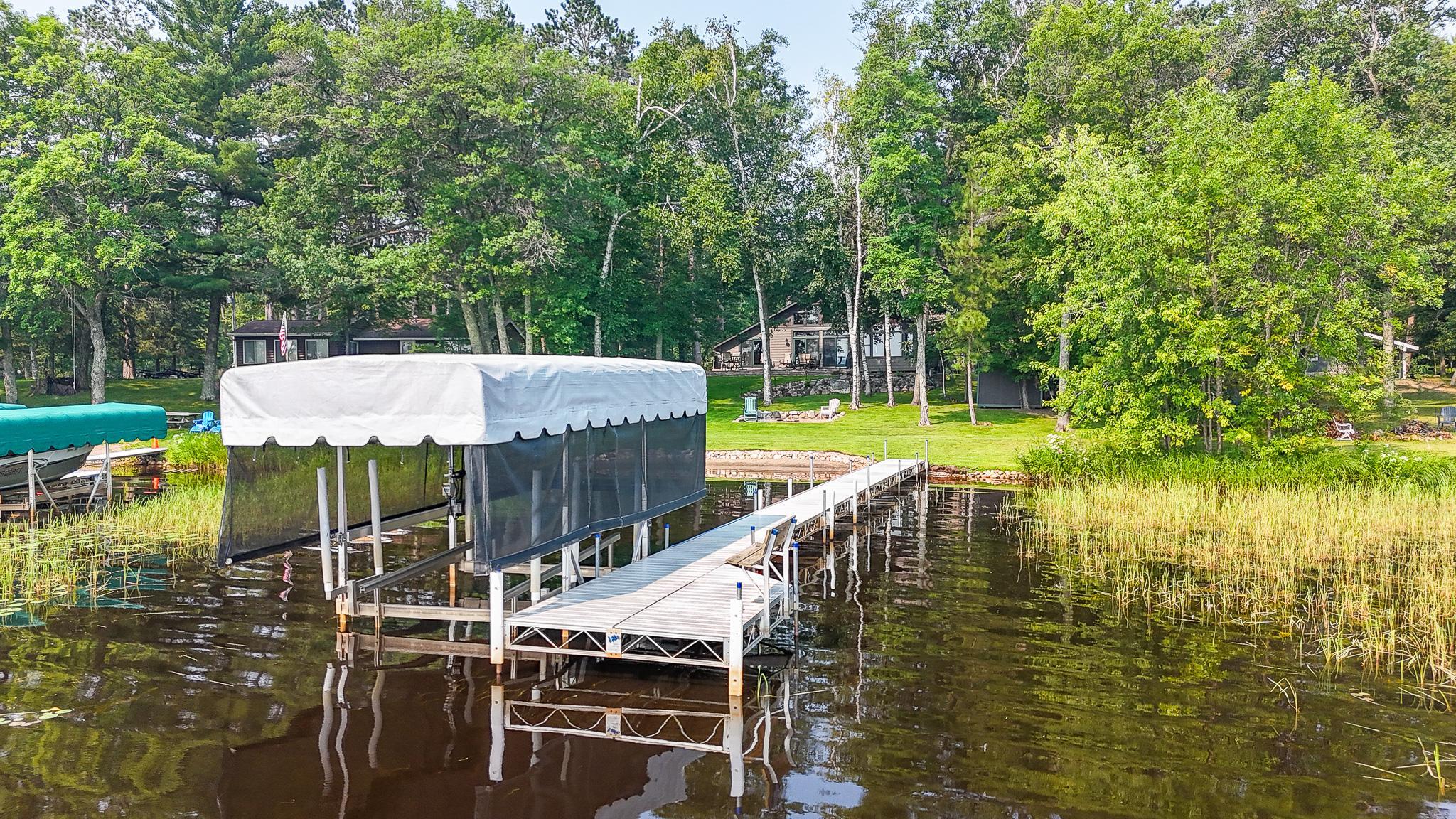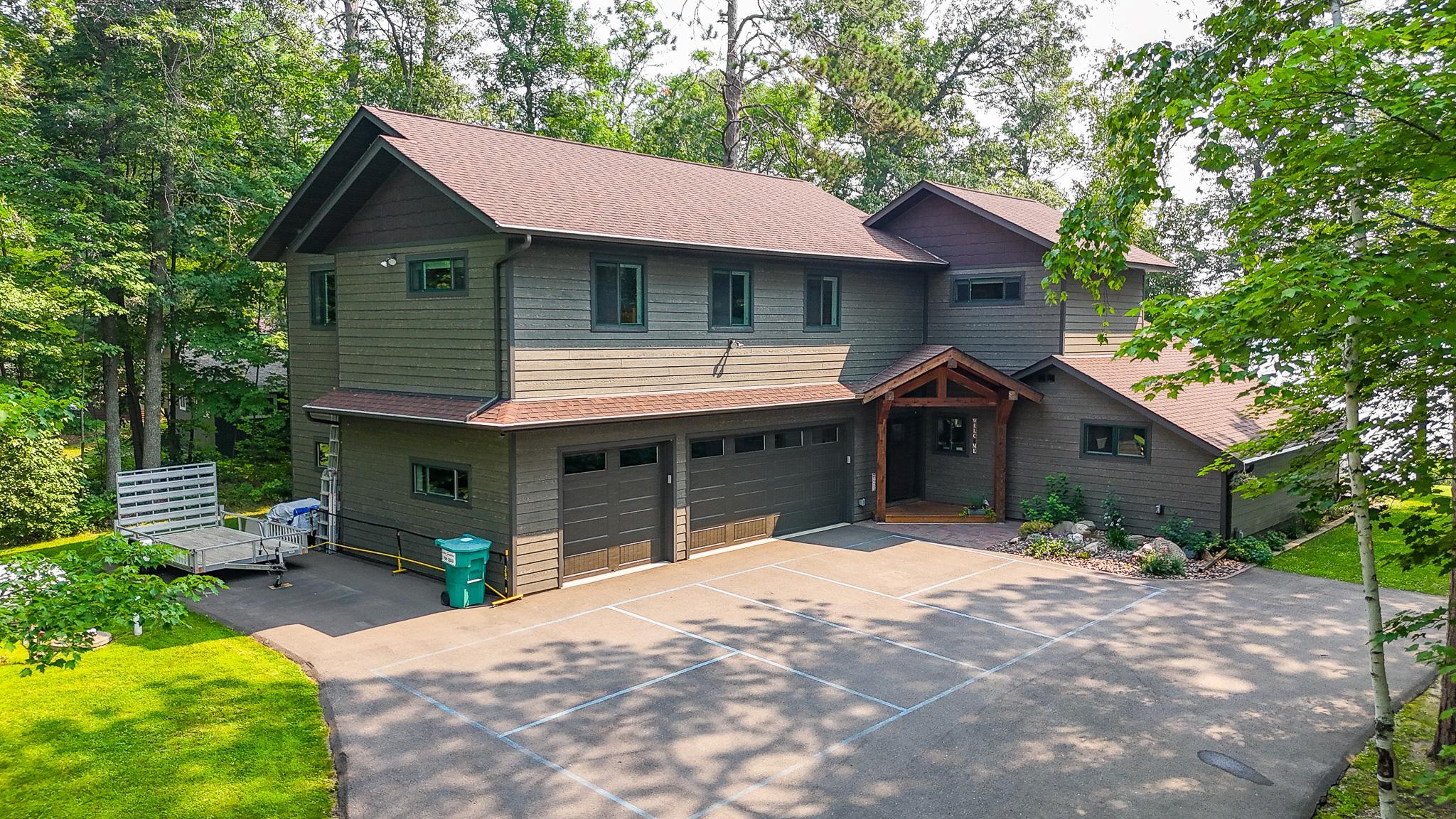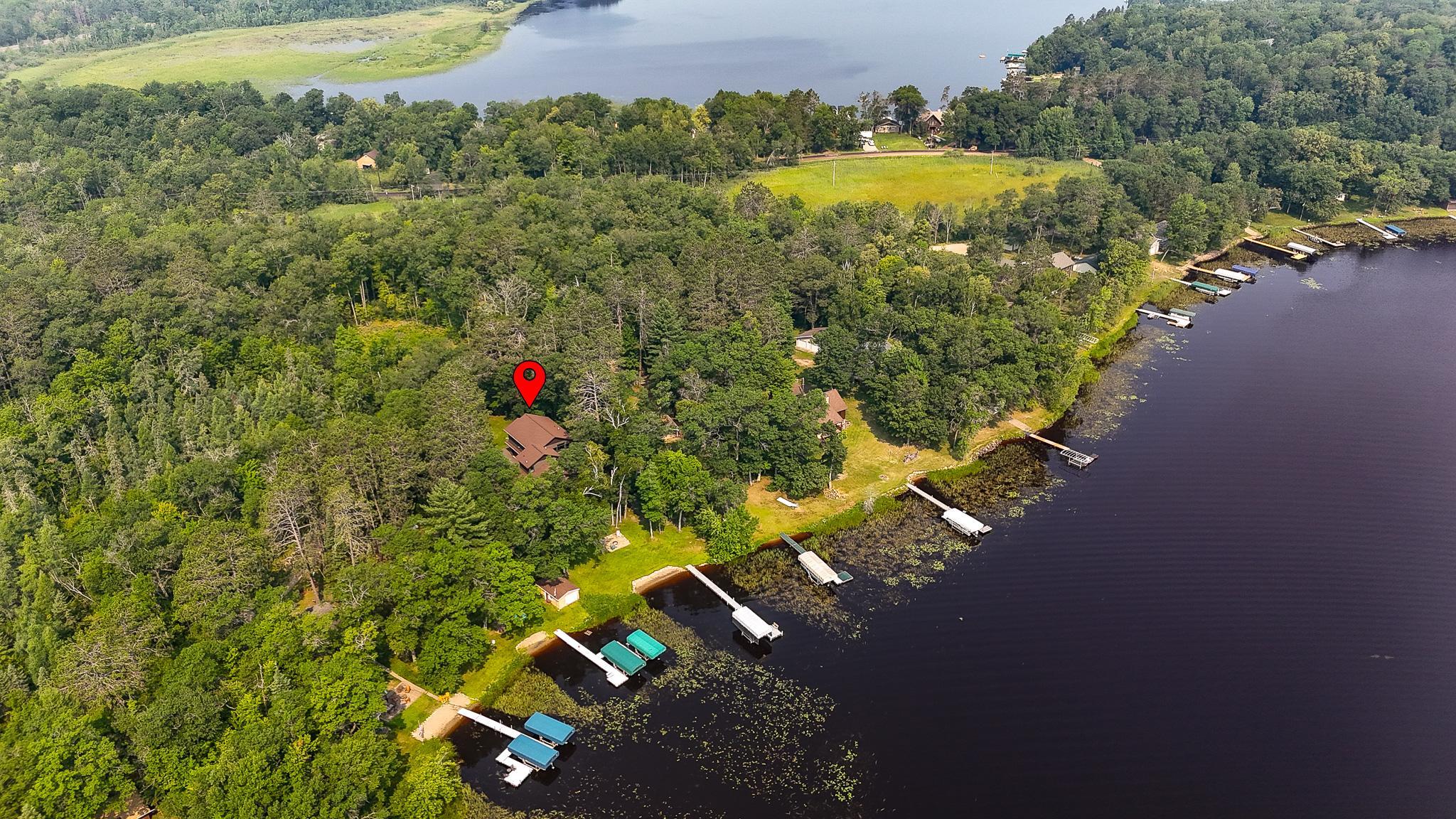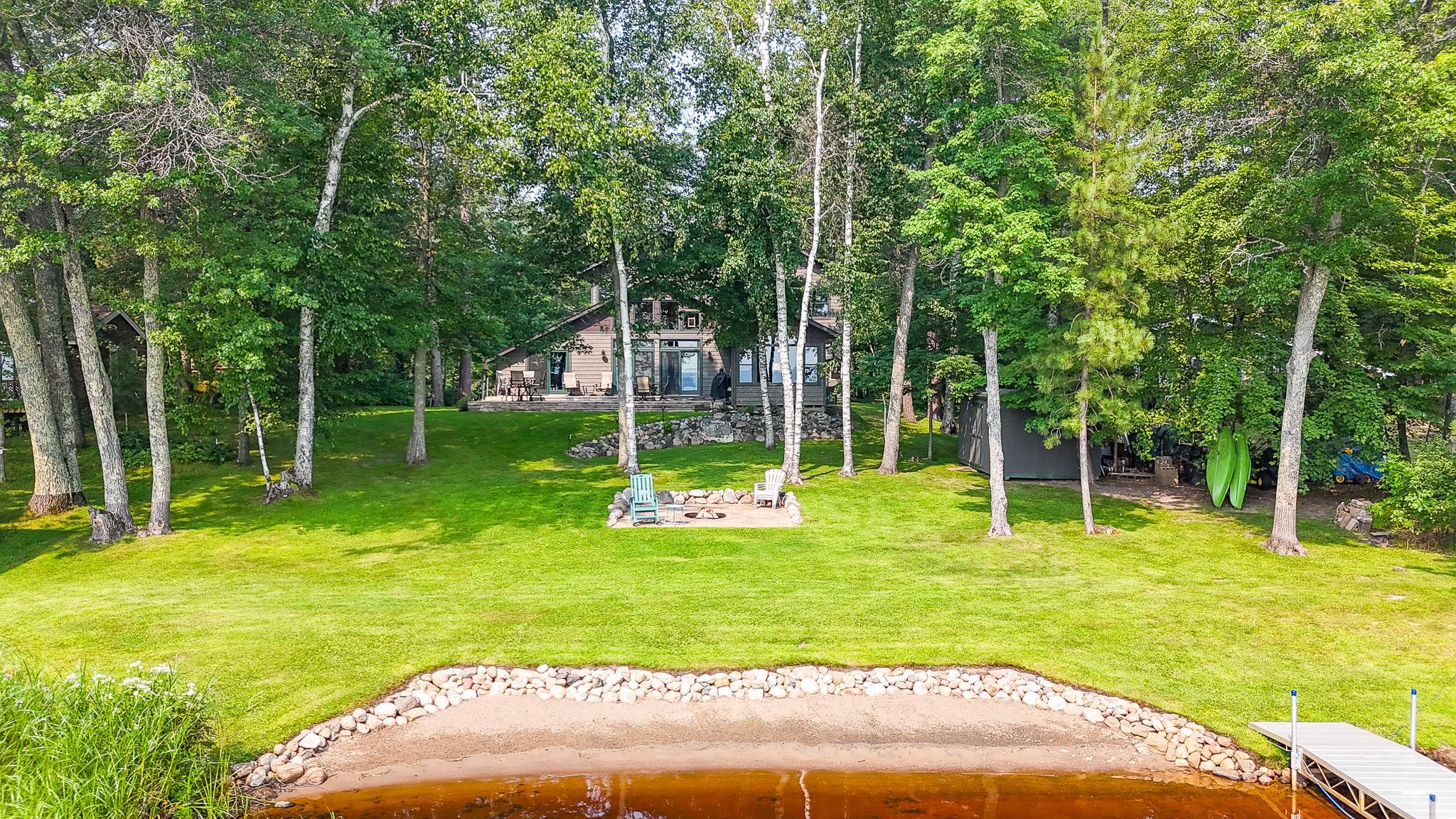 BIG SANDY LAKE LUXURY HOME-This 4 bedroom & 4 bath home is loaded with beautiful amenities. The kitchen has a Garland stove with griddle top, stainless appliances, granite counter center island with vegetable sink, double oven, custom maple cabinets, tile back splash. Douglas fir wood flooring throughout the main level. Upper level is carpeted. Tile bathrooms. Large dining area with a wet bar. Lakeside sunroom for your morning coffee. Lakeside living room. Marvin windows throughout the home. Patina galvanised steel accents throughout the home. Tongue & Groove pine wood ceiling. Matching wood 6 panel doors. Main floor main bedroom features a walk in closet, a 3/4 bath with tiled walk-in shower, drawing table, and it's own private laundry. Upper level features another 3 bedrooms and 2 bonus rooms used for sleeping. Upper level also has 2- 3/4 baths and one with a laundry as well. The family room is in the upper level which features another wet bar. A lakeside deck. The home has two seperate furnaces & central air systems. Landscaped yard. Fire pit lakeside. Sandy beach area for the little ones. Lakeside 10x16 shed. Asphalt driveway with a Pickle Ball court. Attached oversized garage is finished and has in floor heat. The home is on a small township quiet road, and the home faces east for wonderful sunrise views. The dock and boat lift are included. The original home remodel and addition started in 2018. Quality work throughout!