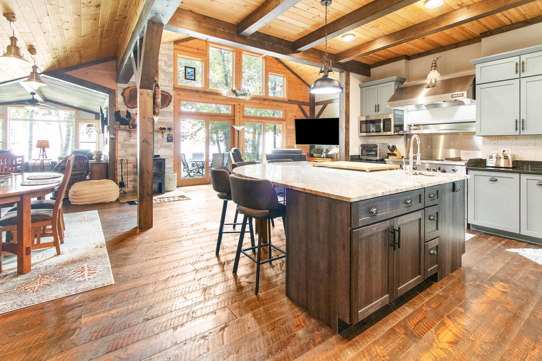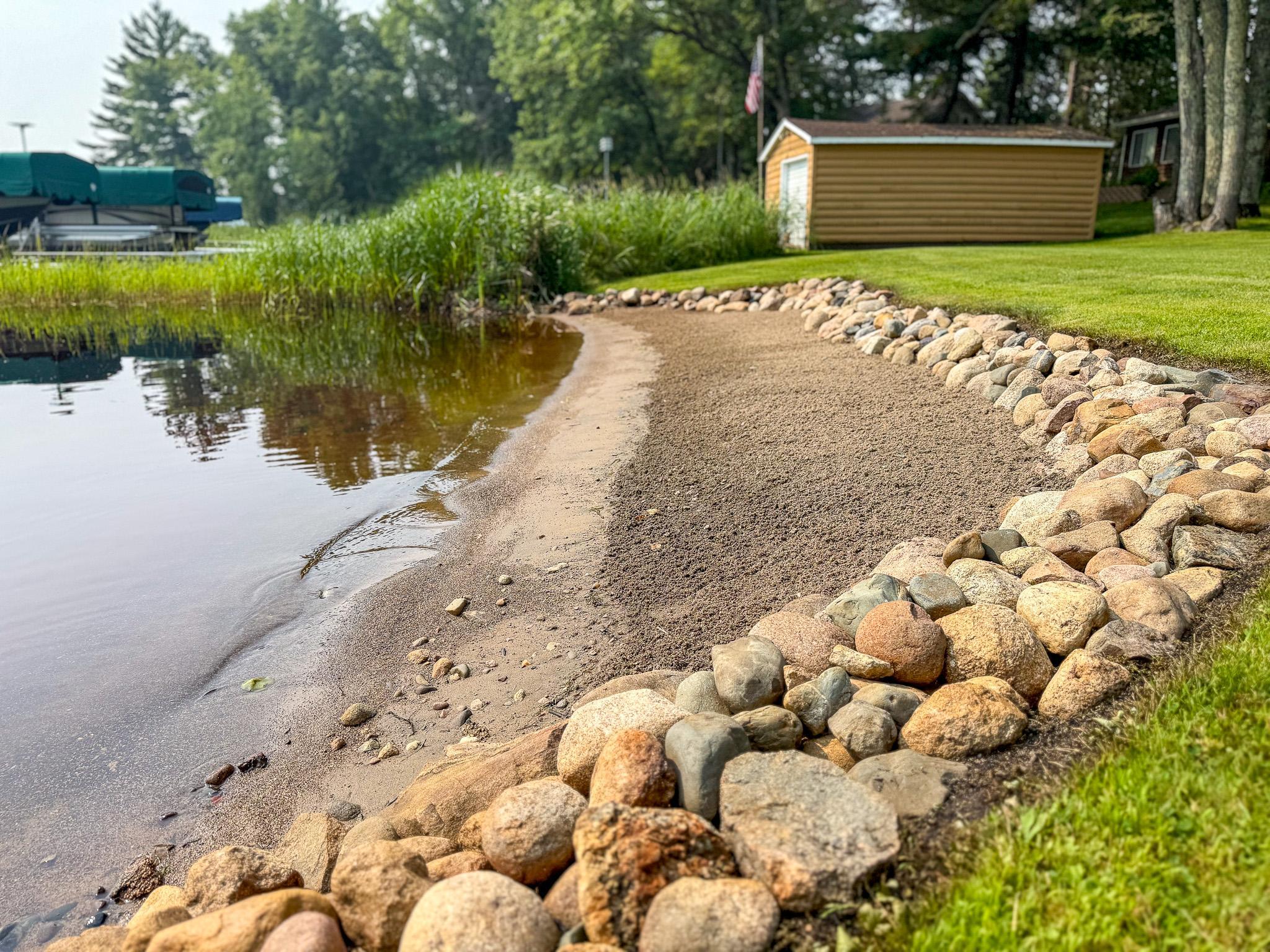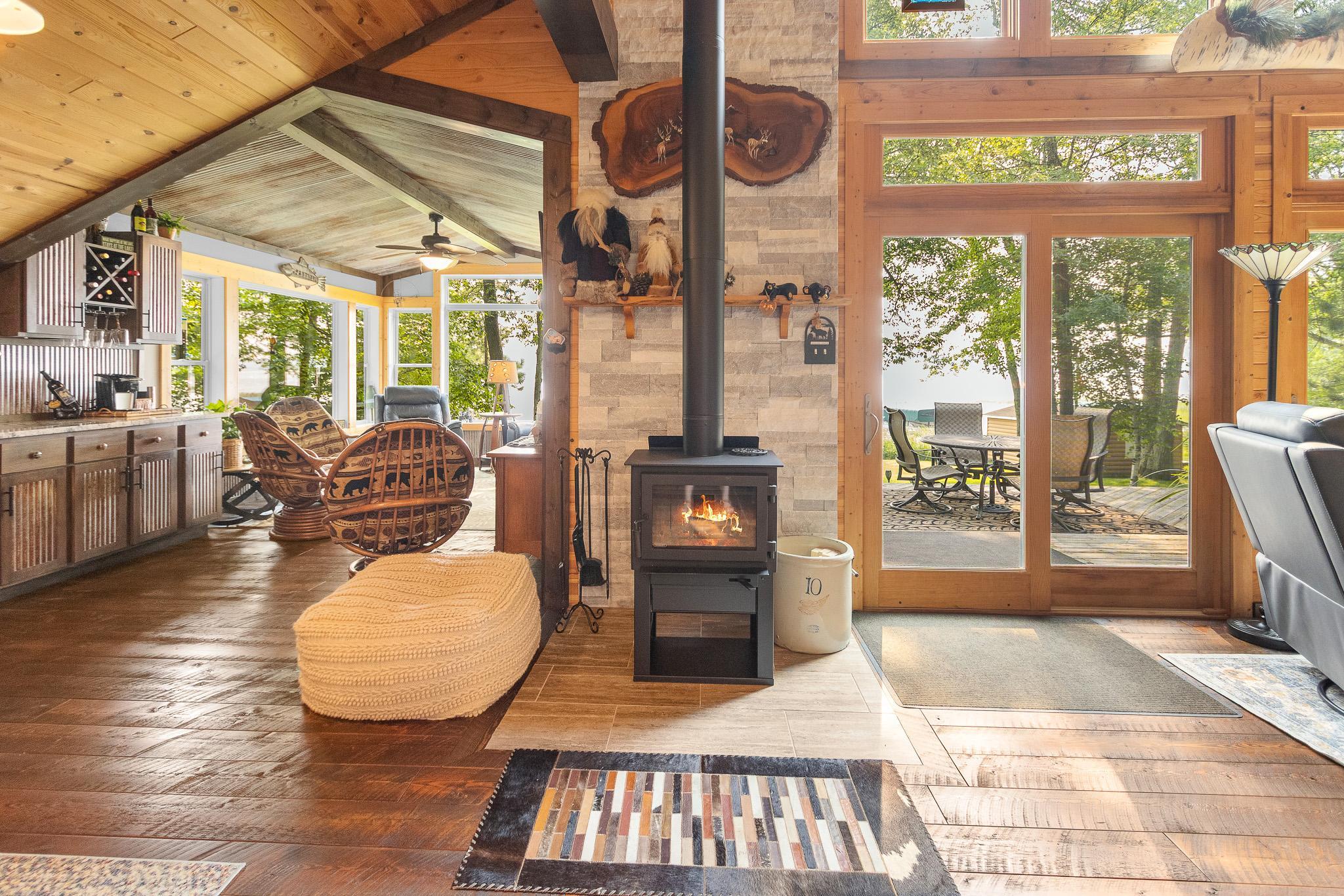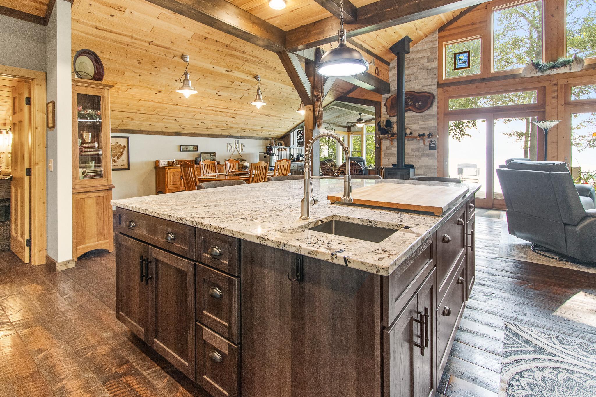 BIG SANDY LAKE LUXURY HOME-This 4 bedroom & 4 bath home is loaded with beautiful amenities. The kitchen has a Garland stove with griddle top, stainless appliances, granite counter center island with vegetable sink, double oven, custom maple cabinets, tile back splash. Douglas fir wood flooring throughout the main level. Upper level is carpeted. Tile bathrooms. Large dining area with a wet bar. Lakeside sunroom for your morning coffee. Lakeside living room. Marvin windows throughout the home. Patina galvanised steel accents throughout the home. Tongue & Groove pine wood ceiling. Matching wood 6 panel doors. Main floor main bedroom features a walk in closet, a 3/4 bath with tiled walk-in shower, drawing table, and it's own private laundry. Upper level features another 3 bedrooms and 2 bonus rooms used for sleeping. Upper level also has 2- 3/4 baths and one with a laundry as well. The family room is in the upper level which features another wet bar. A lakeside deck. The home has two seperate furnaces & central air systems. Landscaped yard. Fire pit lakeside. Sandy beach area for the little ones. Lakeside 10x16 shed. Asphalt driveway with a Pickle Ball court. Attached oversized garage is finished and has in floor heat. The home is on a small township quiet road, and the home faces east for wonderful sunrise views. The dock and boat lift are included. The original home remodel and addition started in 2018. Quality work throughout!
