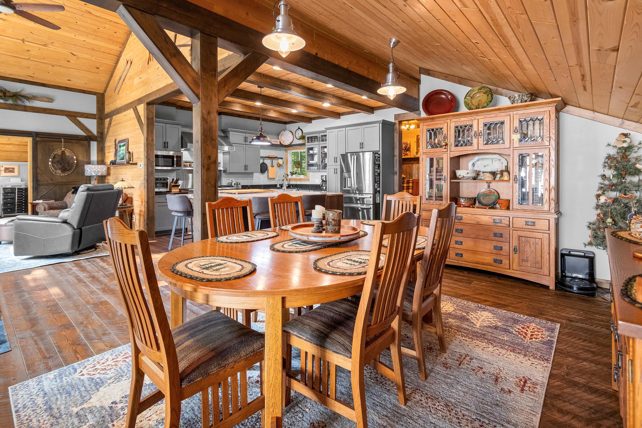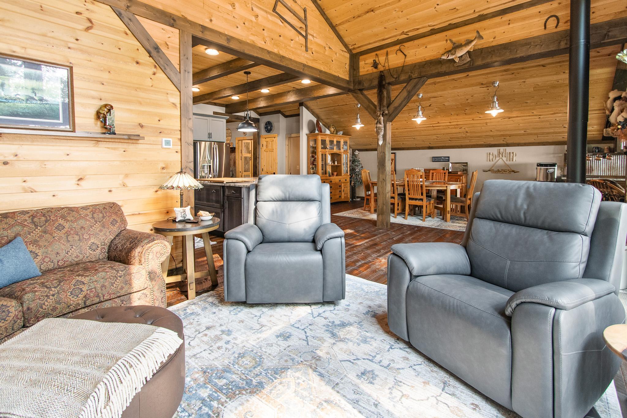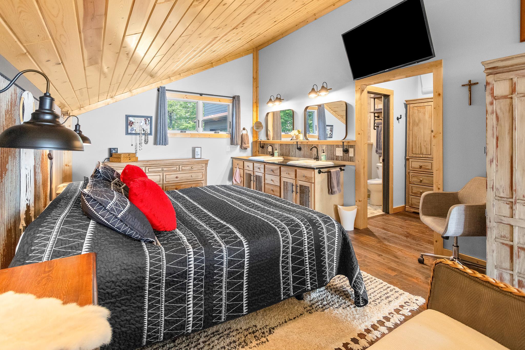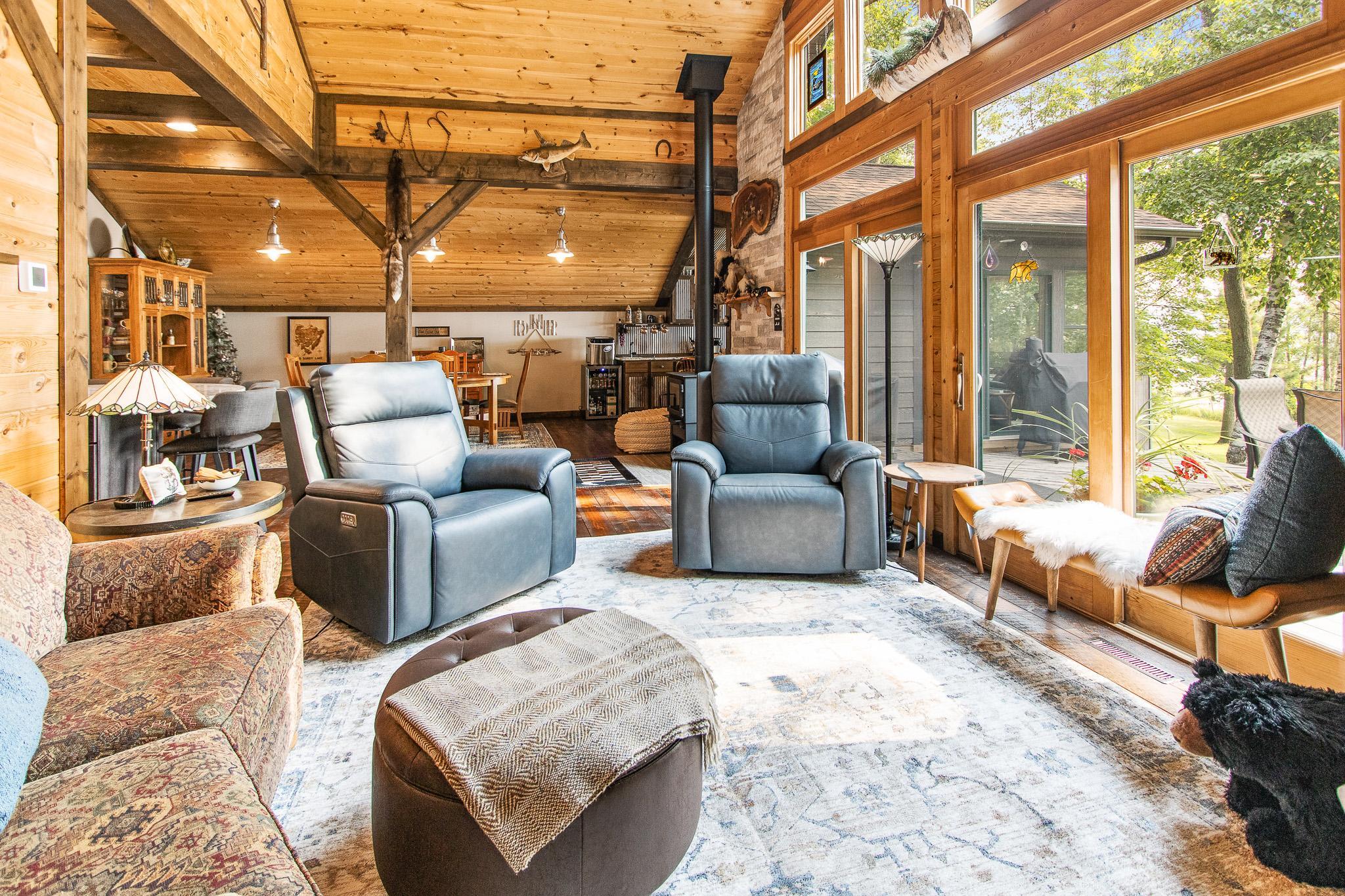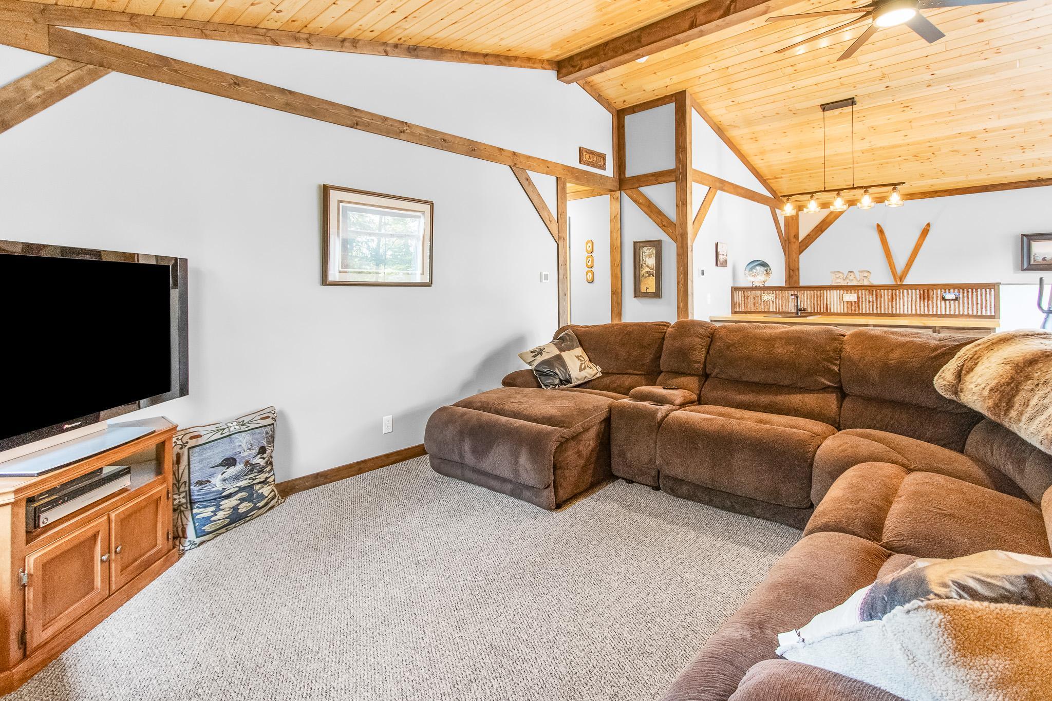 BIG SANDY LAKE LUXURY HOME-This 4 bedroom & 4 bath home is loaded with beautiful amenities. The kitchen has a Garland stove with griddle top, stainless appliances, granite counter center island with vegetable sink, double oven, custom maple cabinets, tile back splash. Douglas fir wood flooring throughout the main level. Upper level is carpeted. Tile bathrooms. Large dining area with a wet bar. Lakeside sunroom for your morning coffee. Lakeside living room. Marvin windows throughout the home. Patina galvanised steel accents throughout the home. Tongue & Groove pine wood ceiling. Matching wood 6 panel doors. Main floor main bedroom features a walk in closet, a 3/4 bath with tiled walk-in shower, drawing table, and it's own private laundry. Upper level features another 3 bedrooms and 2 bonus rooms used for sleeping. Upper level also has 2- 3/4 baths and one with a laundry as well. The family room is in the upper level which features another wet bar. A lakeside deck. The home has two seperate furnaces & central air systems. Landscaped yard. Fire pit lakeside. Sandy beach area for the little ones. Lakeside 10x16 shed. Asphalt driveway with a Pickle Ball court. Attached oversized garage is finished and has in floor heat. The home is on a small township quiet road, and the home faces east for wonderful sunrise views. The dock and boat lift are included. The original home remodel and addition started in 2018. Quality work throughout!