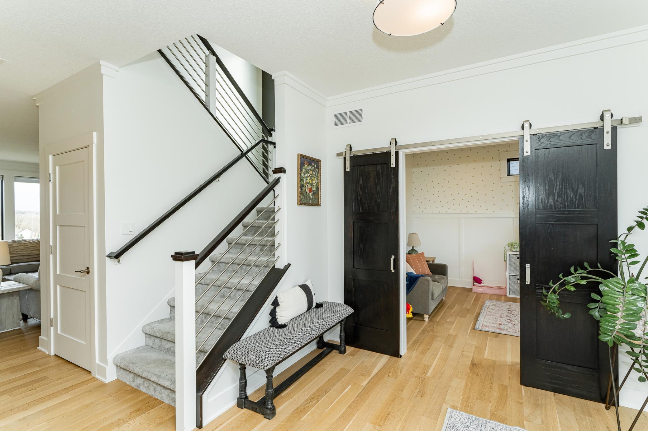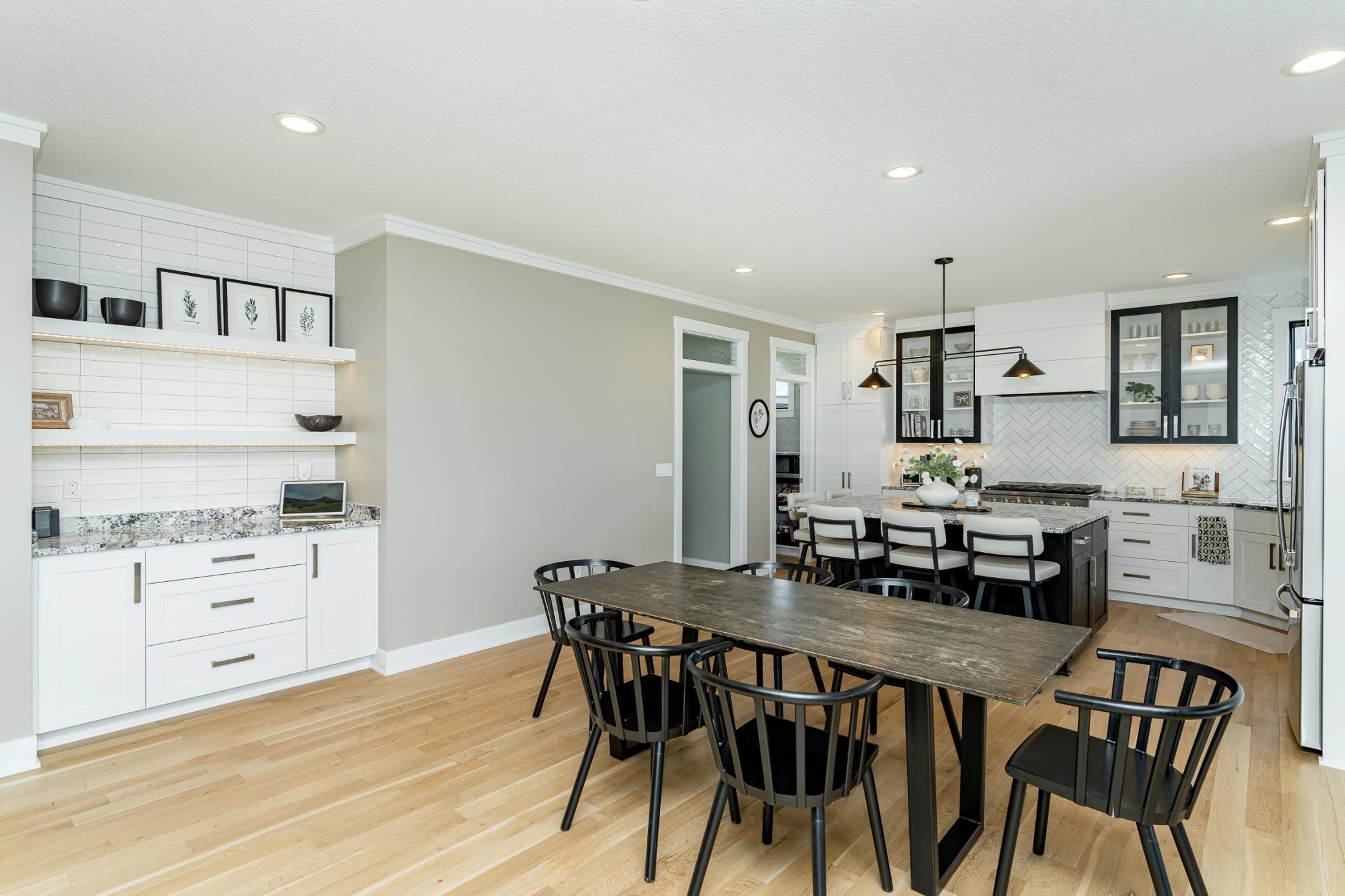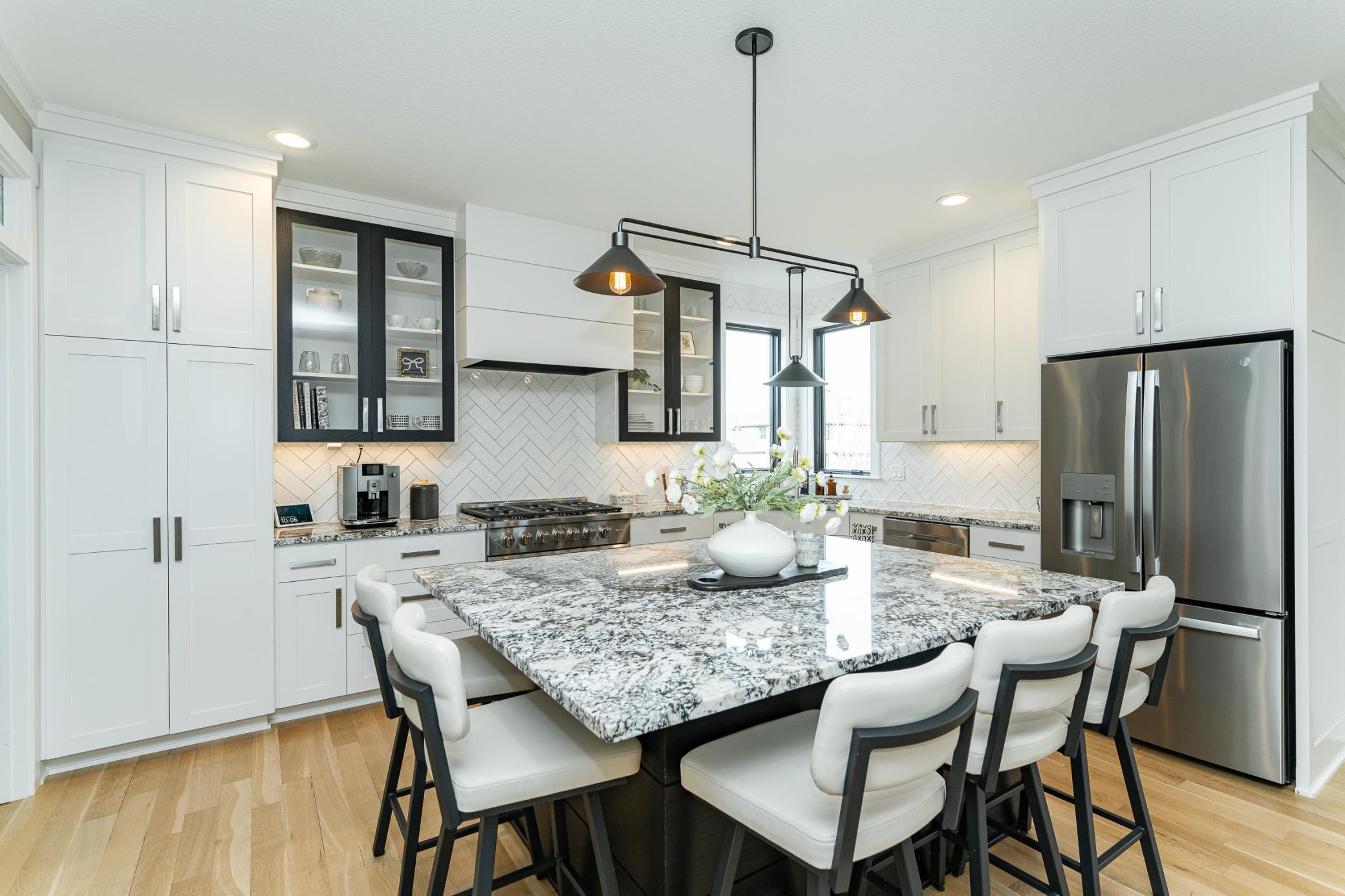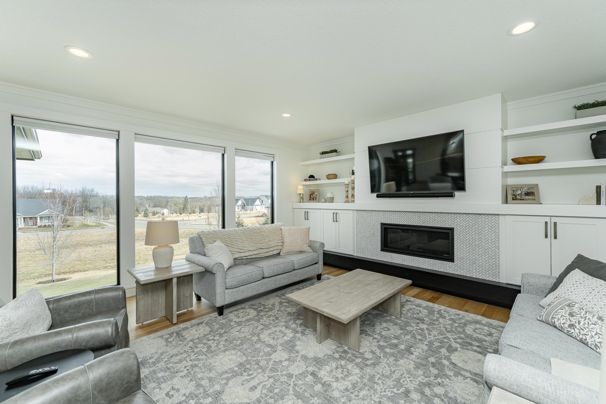 Welcome to Scenic Oaks West, where thoughtful design and elevated living come together in this beautifully finished walkout two-story home. From the moment you arrive, the home’s striking angled architecture and standout curb appeal create an inviting first impression. Inside, a bright and open layout is designed for both effortless entertaining and everyday comfort. The custom kitchen anchors the main level with a large center island, walk-in pantry, and seamless flow into the dining area and spacious family room, highlighted by a warm fireplace and abundant natural light. A dedicated study and versatile flex room provides additional space for work, hobbies, or entertaining. Just off the main living area, step onto the covered and screened deck, creating the perfect indoor-outdoor retreat for morning coffee or quiet evenings. The outdoor swing remains with the home, adding a charming and relaxing spot to enjoy the peaceful setting. Upstairs, the private primary suite offers a comfortable retreat with a spacious ensuite bath. Three additional bedrooms complete the level, including a Jack-and-Jill bath and a junior ensuite, along with a generously sized upper-level laundry room designed for convenience. The fully finished walkout lower level expands the home’s living space even further, featuring an expansive family room with fireplace, a stylish wet bar ideal for hosting, a dedicated home gym, a fifth bedroom, and an additional bath - creating the perfect environment for entertaining, guests, or everyday living. Blending thoughtful design, flexible spaces, and beautiful finishes, this Scenic Oaks West home delivers the ideal balance of style, comfort, and functionality.