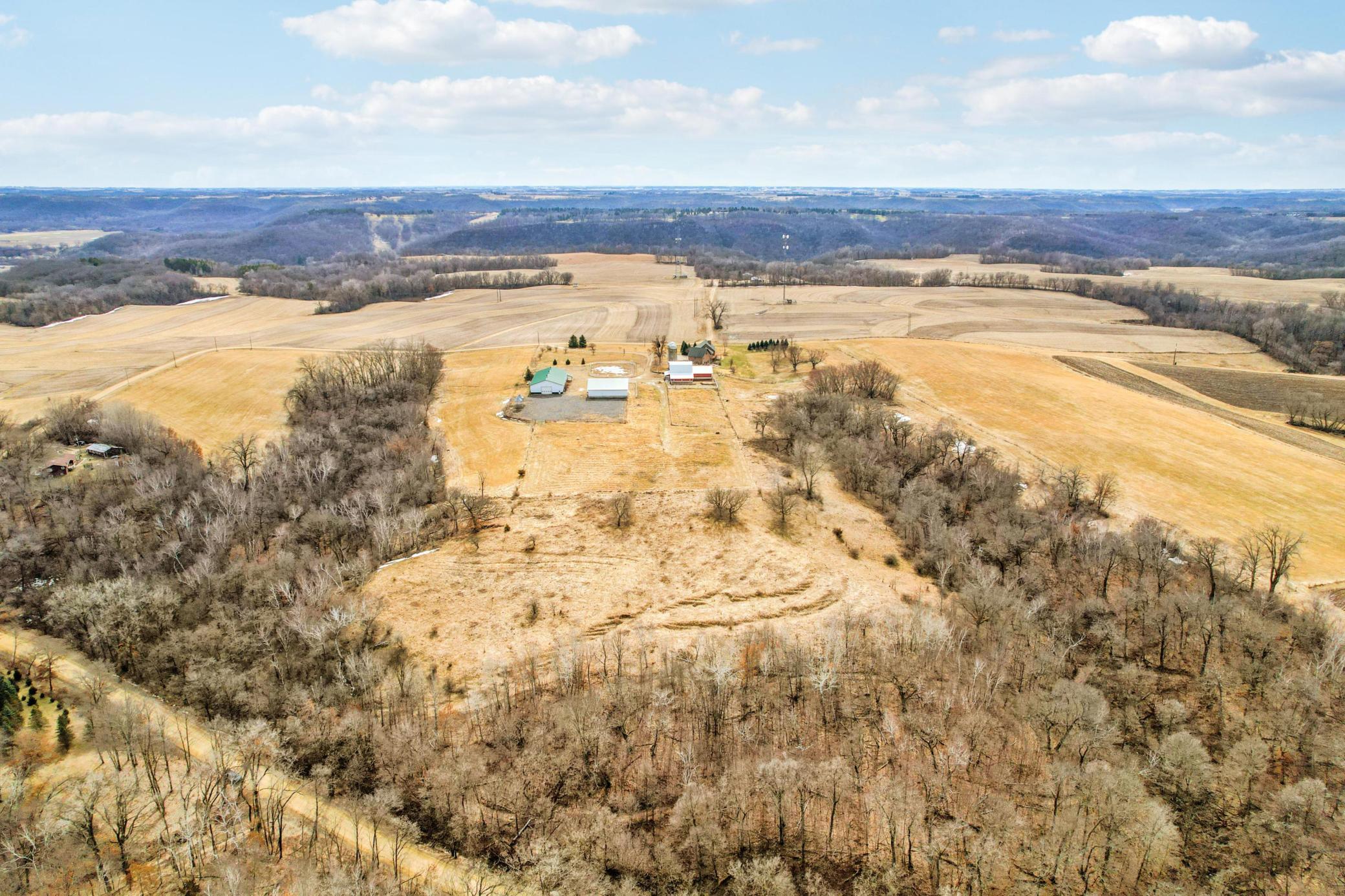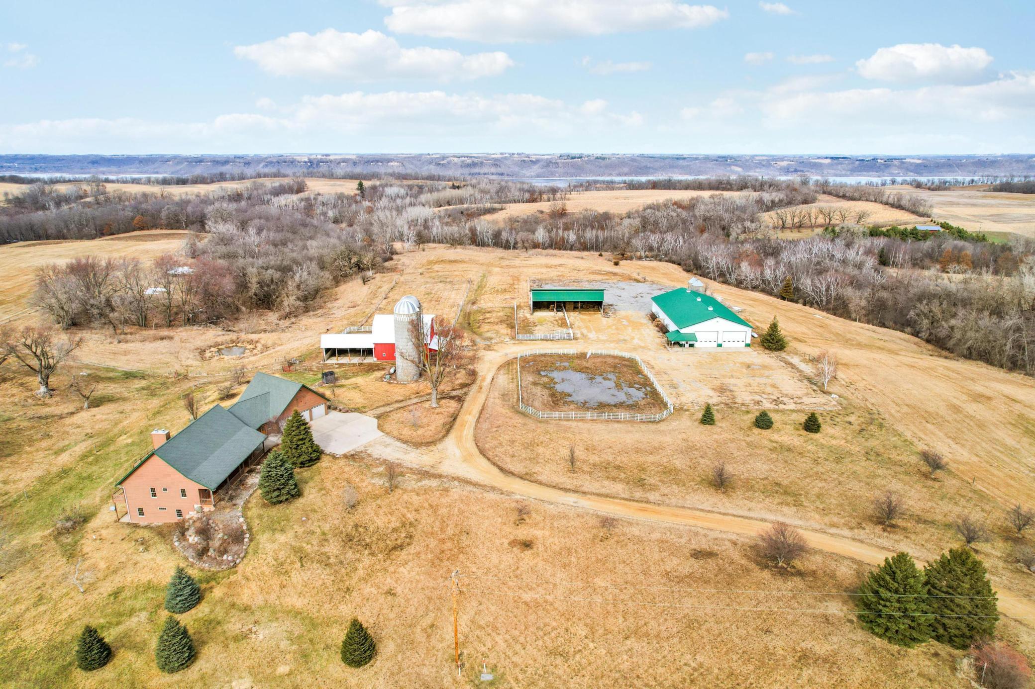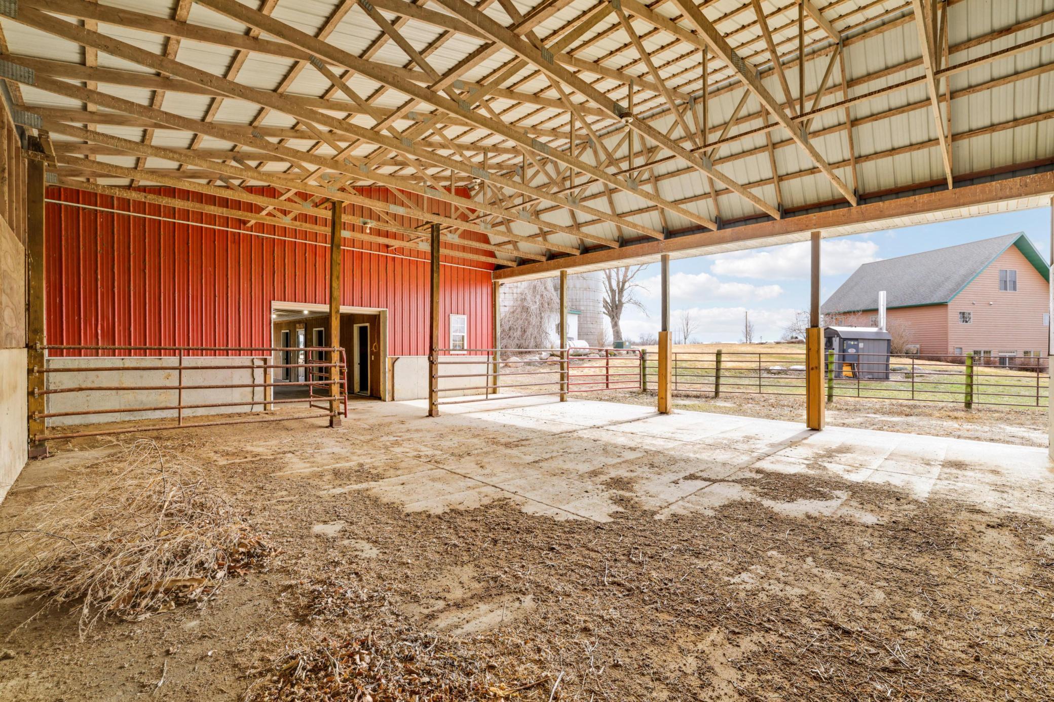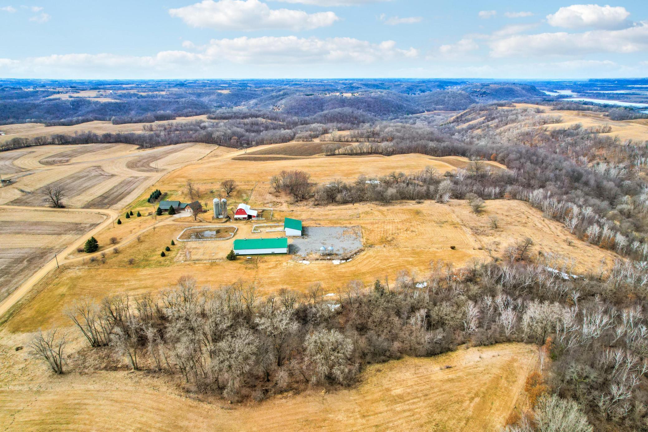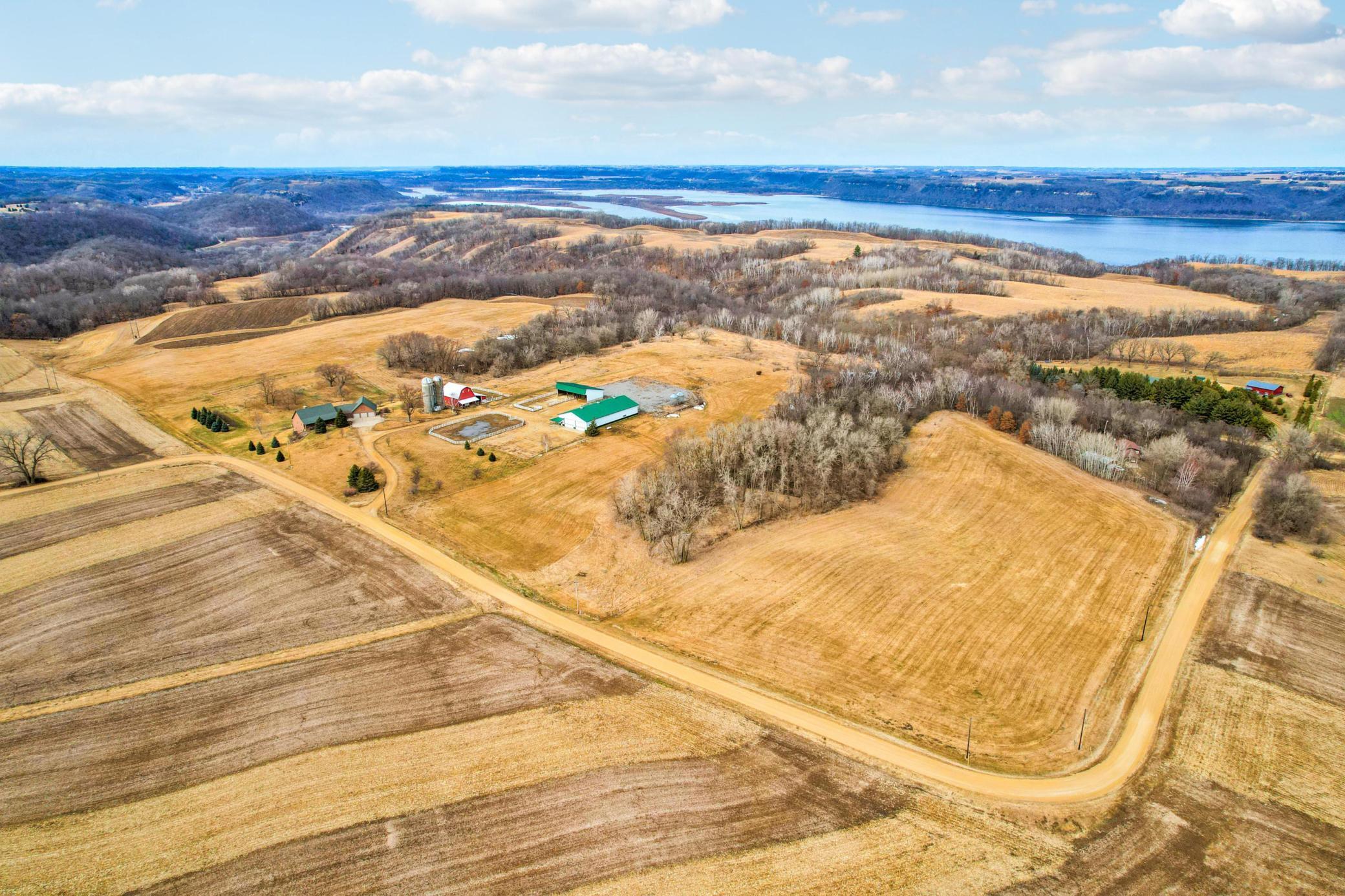 Discover a rare blend of luxury living, high-utility infrastructure, and diverse income potential on a quiet dead-end road near Frontenac State Park. This premier 12-acre estate features a custom residence with an indoor pool and a massive 60x120 shop capable of supporting a heavy equipment business. Whether you utilize the existing feedlot permit or expand your footprint up to 86 total acres of tillable, pasture, and wooded land, this versatile property scales to your vision. This is an opportunity that is rarely seen on the market. Contract for Deed financing is available for qualified buyers. HOUSE + GARAGE + INDOOR POOL: Custom-built in 2005, this 4 bed 5 bath zero-entry home is a masterclass in durability and efficiency. The structure is protected by 60-year shingles, Andersen windows, and a sophisticated double drain tile system with integrated eave drainage. In-floor heating spans both levels, complemented by two masonry wood burning fireplaces that are capable of heating the entire home. The kitchen features a Wolf range, granite countertops, and a massive pantry for your storage needs. There are two bedrooms on the main level including a primary ensuite featuring a walk-in closet with attic storage, and an air jet tub in the primary bath. Both bedrooms have deck access. The main level office includes an in-floor safe and the attached 3 car garage includes a full loft above, offering flexible finished space. The lower level walk-out has two additional bedrooms, a family room, and a massive entertainment space complete with a wet bar. A standout feature of the home is the indoor pool complete with a Badu exercise jet, and a built-in sauna, creating a private year-round retreat. SHOP: The 60x120 shop is built on frost footings with 4-foot on-center rafters for maximum structural integrity. The 60x60 heated workspace features 2x6 insulated plywood walls, radiant heat, 200-amp service (220V outlets), a heavy-duty hoist, and loft storage. This professional-grade space includes its own bathroom and independent septic system. Floor drains lead to an explosion-proof trap and dedicated drain field, while the remaining 60x60 area provides high-capacity cold storage for large-scale equipment. LIVESTOCK FACILITIES: The agricultural infrastructure includes a remodeled barn featuring two additions with 4’ poured concrete walls and cement floors. It is fully equipped with three box stalls, a chicken coop, feed/tack rooms, and a sturdy hay loft. Complementing the barn is a 40x72 three-sided loafing shed. Both structures utilize steel roofing/siding and are supported by Ritchie automatic waterers and multiple hydrants. An active feedlot permit is in place to support immediate livestock operations. LAND & AGRICULTURAL POTENTIAL The base 12-acre homesite offers the option to expand up to 86 total acres. The acreage provides a diverse mix of productive tillable ground, wooded timber with excellent hunting, and approximately 30 acres of high-tensile fenced pasture. This turnkey setup creates immediate opportunities for grazing income, boarding revenue, or livestock production. Whether you're scaling a business, expanding an agricultural footprint, or seeking a recreational retreat, this estate delivers a level of opportunity and value rarely seen in this market.