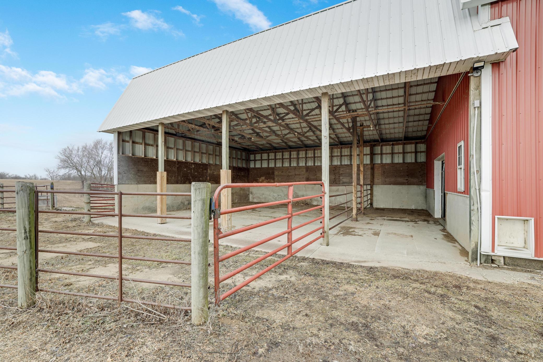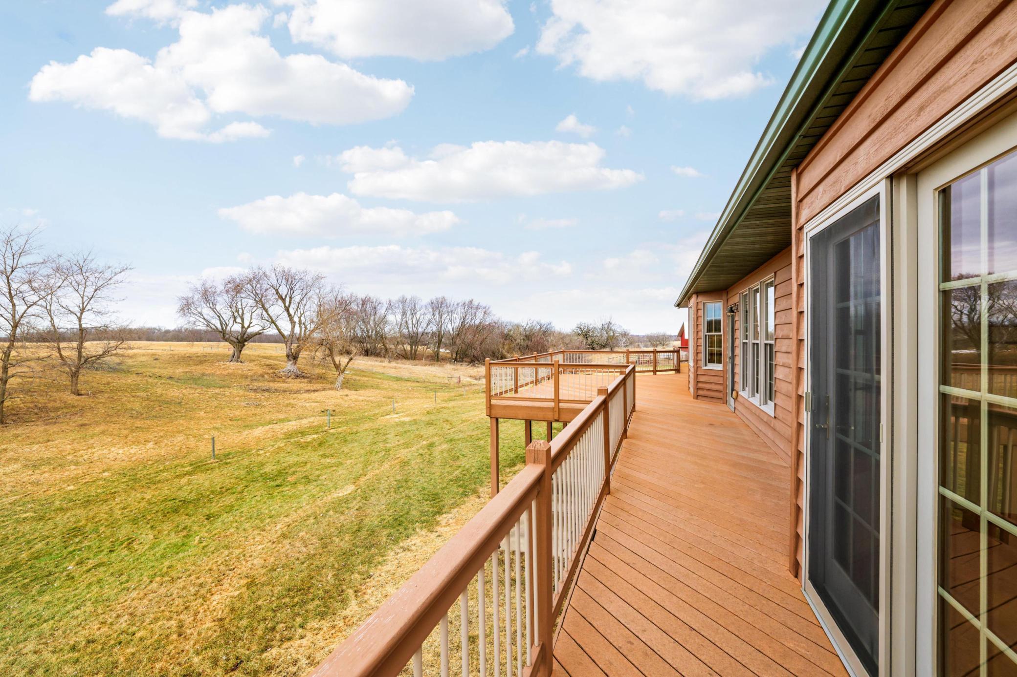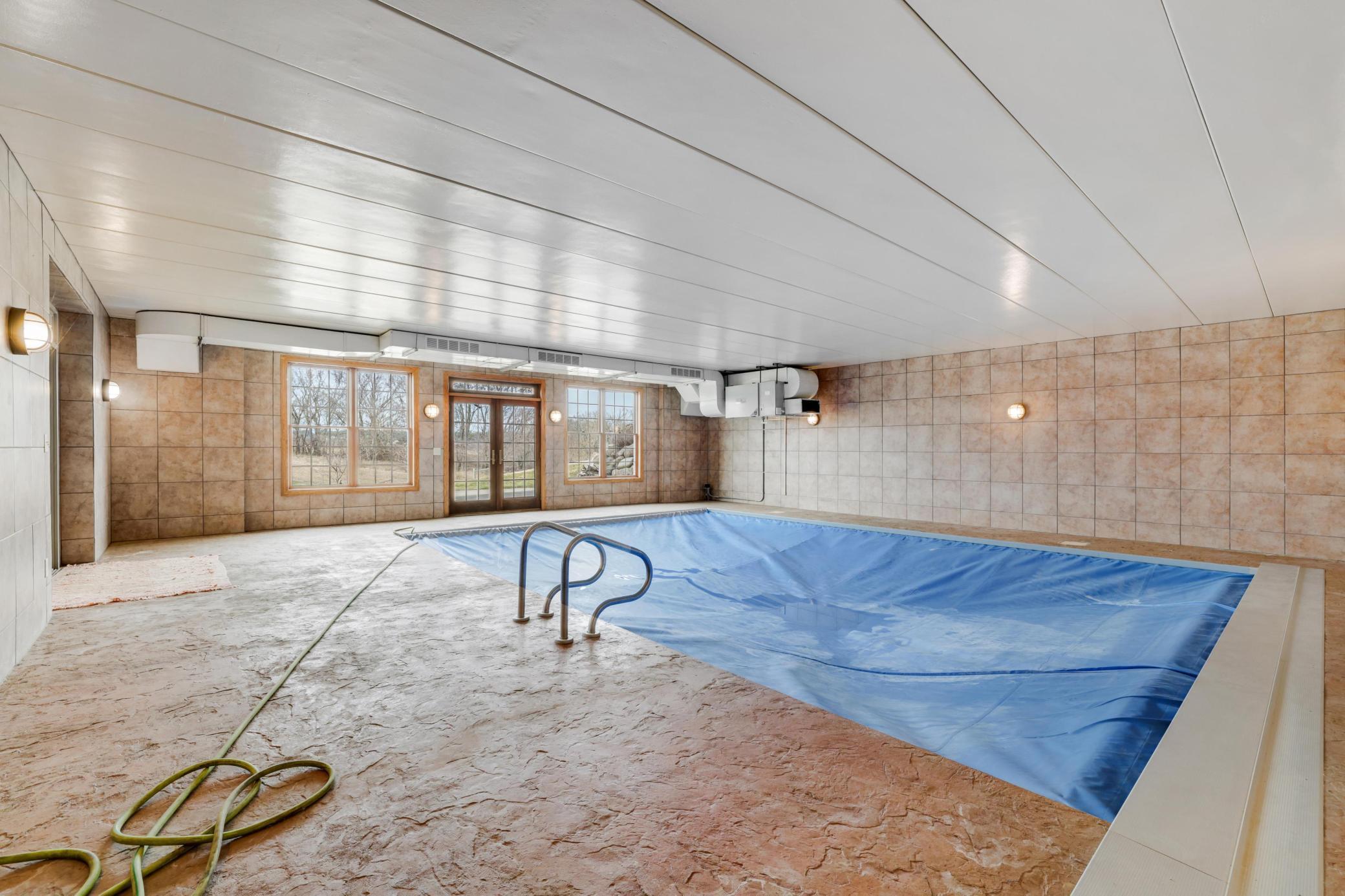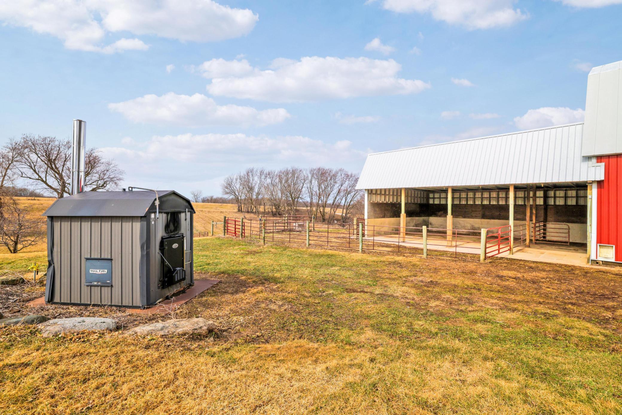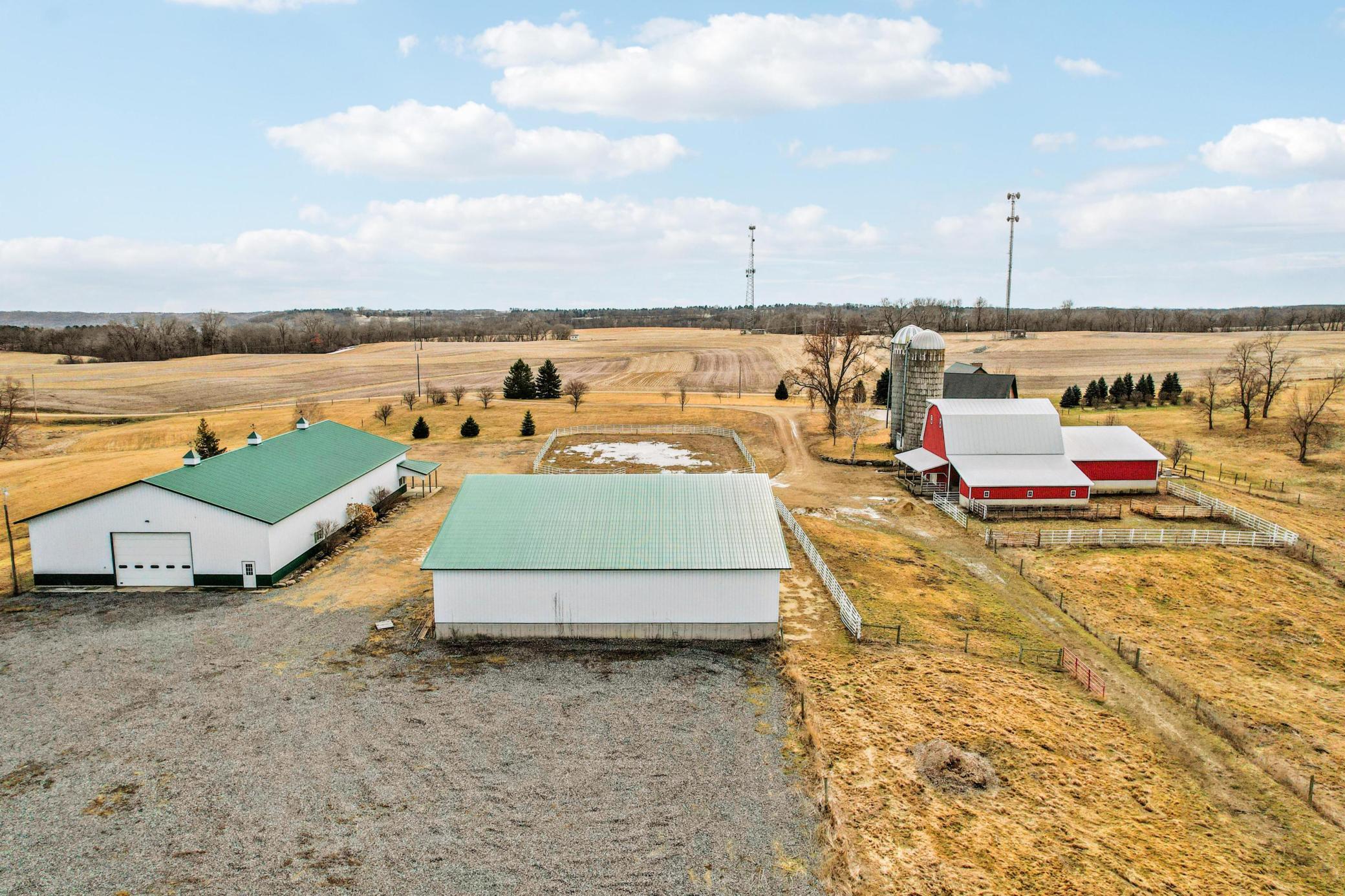 Discover a rare blend of luxury living, high-utility infrastructure, and diverse income potential on a quiet dead-end road near Frontenac State Park. This premier 12-acre estate features a custom residence with an indoor pool and a massive 60x120 shop capable of supporting a heavy equipment business. Whether you utilize the existing feedlot permit or expand your footprint up to 86 total acres of tillable, pasture, and wooded land, this versatile property scales to your vision. This is an opportunity that is rarely seen on the market. Contract for Deed financing is available for qualified buyers. HOUSE + GARAGE + INDOOR POOL: Custom-built in 2005, this 4 bed 5 bath zero-entry home is a masterclass in durability and efficiency. The structure is protected by 60-year shingles, Andersen windows, and a sophisticated double drain tile system with integrated eave drainage. In-floor heating spans both levels, complemented by two masonry wood burning fireplaces that are capable of heating the entire home. The kitchen features a Wolf range, granite countertops, and a massive pantry for your storage needs. There are two bedrooms on the main level including a primary ensuite featuring a walk-in closet with attic storage, and an air jet tub in the primary bath. Both bedrooms have deck access. The main level office includes an in-floor safe and the attached 3 car garage includes a full loft above, offering flexible finished space. The lower level walk-out has two additional bedrooms, a family room, and a massive entertainment space complete with a wet bar. A standout feature of the home is the indoor pool complete with a Badu exercise jet, and a built-in sauna, creating a private year-round retreat. SHOP: The 60x120 shop is built on frost footings with 4-foot on-center rafters for maximum structural integrity. The 60x60 heated workspace features 2x6 insulated plywood walls, radiant heat, 200-amp service (220V outlets), a heavy-duty hoist, and loft storage. This professional-grade space includes its own bathroom and independent septic system. Floor drains lead to an explosion-proof trap and dedicated drain field, while the remaining 60x60 area provides high-capacity cold storage for large-scale equipment. LIVESTOCK FACILITIES: The agricultural infrastructure includes a remodeled barn featuring two additions with 4’ poured concrete walls and cement floors. It is fully equipped with three box stalls, a chicken coop, feed/tack rooms, and a sturdy hay loft. Complementing the barn is a 40x72 three-sided loafing shed. Both structures utilize steel roofing/siding and are supported by Ritchie automatic waterers and multiple hydrants. An active feedlot permit is in place to support immediate livestock operations. LAND & AGRICULTURAL POTENTIAL The base 12-acre homesite offers the option to expand up to 86 total acres. The acreage provides a diverse mix of productive tillable ground, wooded timber with excellent hunting, and approximately 30 acres of high-tensile fenced pasture. This turnkey setup creates immediate opportunities for grazing income, boarding revenue, or livestock production. Whether you're scaling a business, expanding an agricultural footprint, or seeking a recreational retreat, this estate delivers a level of opportunity and value rarely seen in this market.