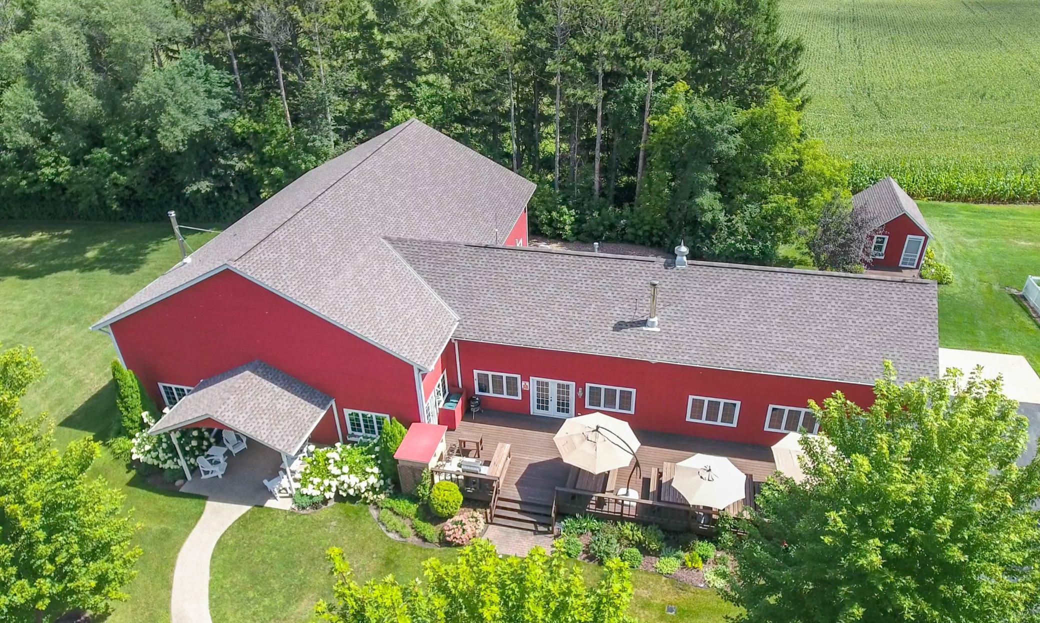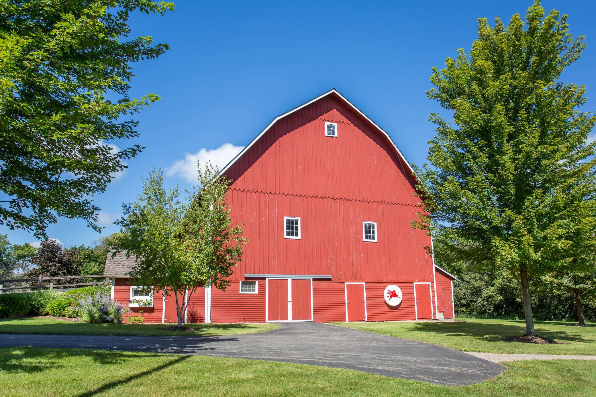 Welcome to Maple Woods Farm, an extraordinary countryside estate set on 60 private wooded acres. At its heart is a beautifully restored 1880 farmhouse that has been meticulously renovated to combine historic character with sophisticated modern luxury. The home is thoughtfully designed with two distinct wings connected by a stunning library. The historic north wing showcases a remarkable chef’s kitchen with a large center island, Butler’s pantry, additional refrigeration, and top-of-the-line appliances. The kitchen flows seamlessly into inviting living and dining spaces, including a dining room with a custom bar—perfect for entertaining. Three bedrooms and two bathrooms are located on the upper level of this wing. The south wing offers a dramatic, yet warm retreat highlighted by a spectacular hearth room with vaulted ceilings, rich wood, and an elegant fireplace. The main-level primary suite is exceptional, featuring a spacious walk-in closet and a beautifully appointed spa-like bath. An elevator provides convenient access to the lower level, where you will find a large family/exercise room along with an impressive wine storage and tasting room. Designed for memorable gatherings, the property also features the remarkable Party Barn—a versatile 4,100-square-foot space complete with a full kitchen, bathroom, lofted bunk area, and a soaring ceilings, ideal for events, celebrations, or displaying prized collections. Additional outbuildings enrich the estate’s character and functionality, including a renovated historic barn, corn crib, sugar shack for maple syrup production, pump house, and a detached heated and insulated three-car garage. Updated mechanicals and a comprehensive security system provide modern comfort and peace of mind. Maple Woods Farm is a rare offering where historic charm, refined living, and exceptional entertaining spaces come together to create a truly one-of-a-kind private retreat.