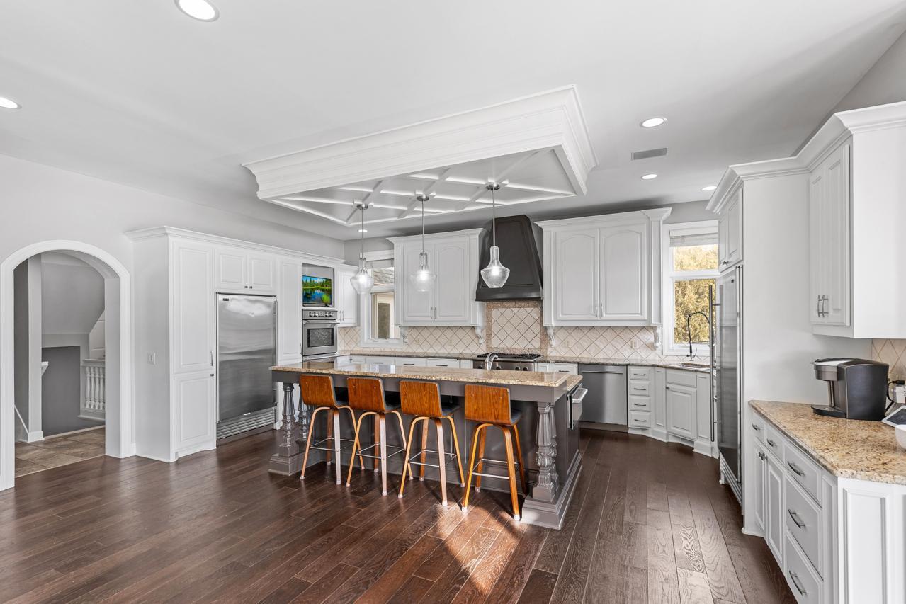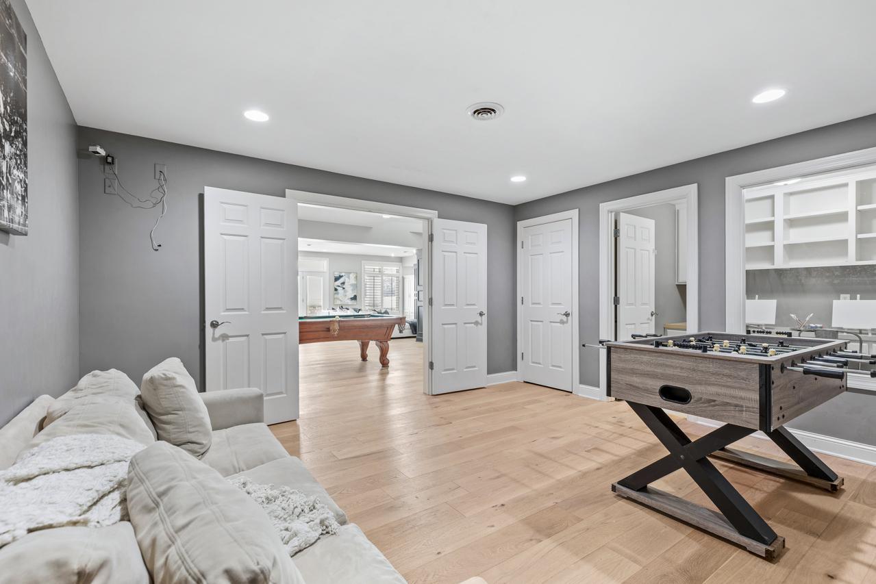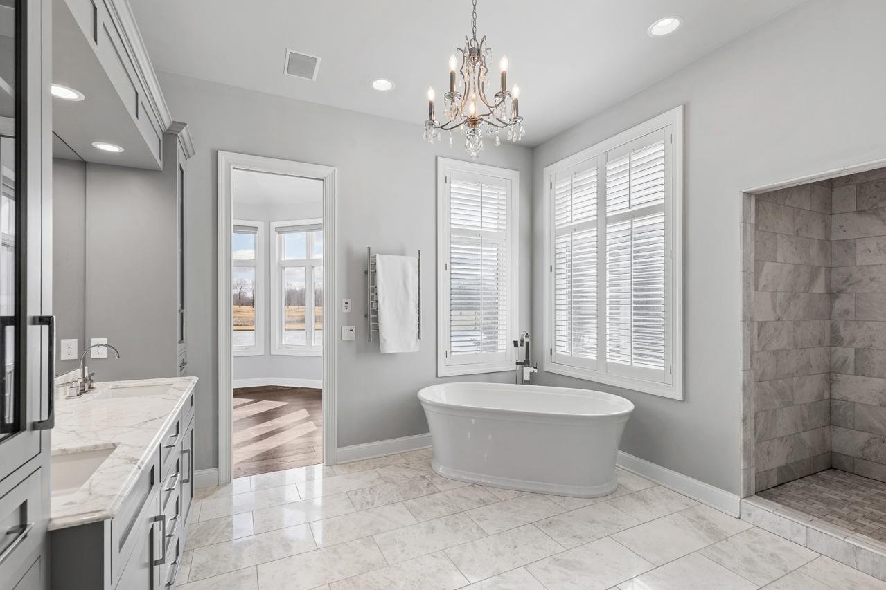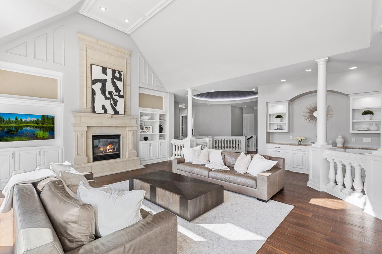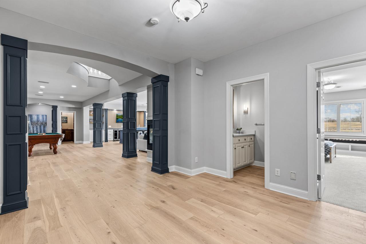 Prepare to be captivated. Set on one of the three original founder lots—hand-selected to become the most prestigious homesites in Bearpath—this extraordinary estate stands as a true crown jewel within the community. Commanding over 8,400 square feet of impeccably curated living space, the home is bathed in natural light and framed by breathtaking, southeast-facing water and nature views. Every detail has been thoughtfully designed, blending timeless elegance with modern sophistication. At the heart of the home, a showstopping gourmet kitchen—appointed with exquisite finishes and dual dishwashers—offers both grand-scale entertaining and effortless everyday luxury. The walkout lower level redefines entertaining, offering an exceptional private retreat complete with four beautifully appointed bedrooms, an expansive lounge and billiards area, a full secondary kitchen and designer wet bar, a dedicated fitness studio, and a refined wine room. Radiant in-floor heating throughout creates a warm, elevated experience during every Minnesota season. Step outside to a resort-caliber outdoor oasis designed for both relaxation and unforgettable gatherings. A fully equipped kitchen and bar, covered patio, and private sport court are surrounded by lush, serene landscaping—offering a level of privacy and tranquility rarely found. Extensive, high-caliber renovations further enhance the home’s refined character. The primary suite is a sanctuary unto itself, completely reimagined with a spa-inspired bath and an expanded custom dressing room. Rich hardwood flooring flows seamlessly through the primary suite, guest suite, and executive office, while the lower level has been artfully refreshed with new hardwood floors, plush carpeting, and an updated powder room. No detail has been overlooked with substantial mechanical and structural upgrades, including a new roof and gutters (2024), new HVAC system (2024), exterior drain tile, and a new 80-gallon water heater—offering both luxury and peace of mind. Elevated finishes continue throughout with Hunter Douglas window treatments, designer lighting, and two new LG WashTowers (2025), complemented by the rare convenience of three dishwashers. The home’s exterior has been equally refined, featuring newly updated deck flooring and railings, along with a full professional repaint (2022), enhancing its already striking presence. Impeccably maintained and masterfully upgraded, this is more than a home—it is a statement of luxury living. A once-in-a-generation opportunity to own one of Bearpath’s most iconic and distinguished estates.