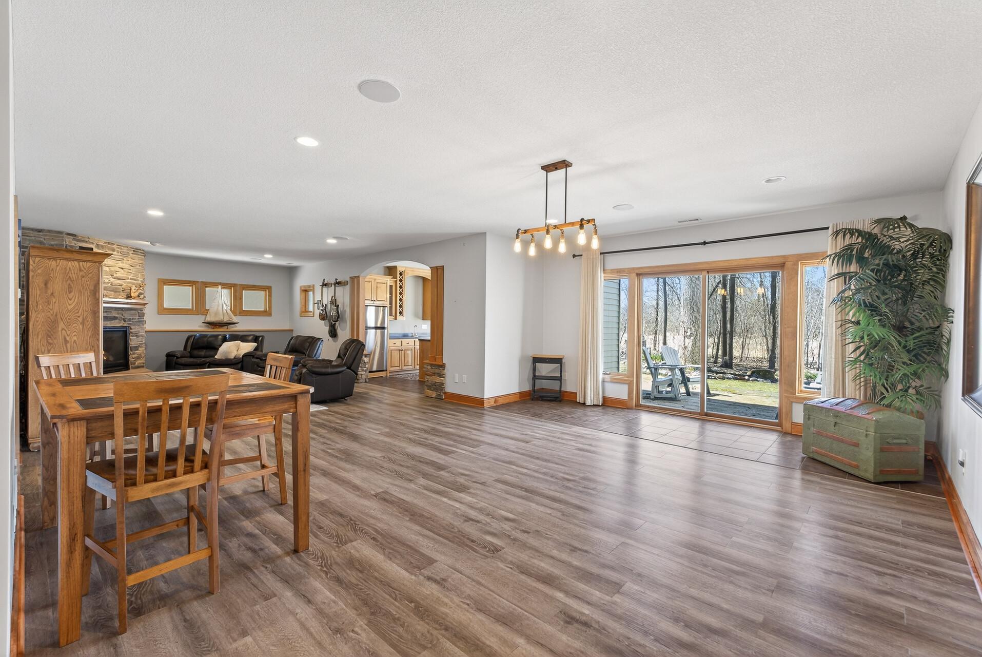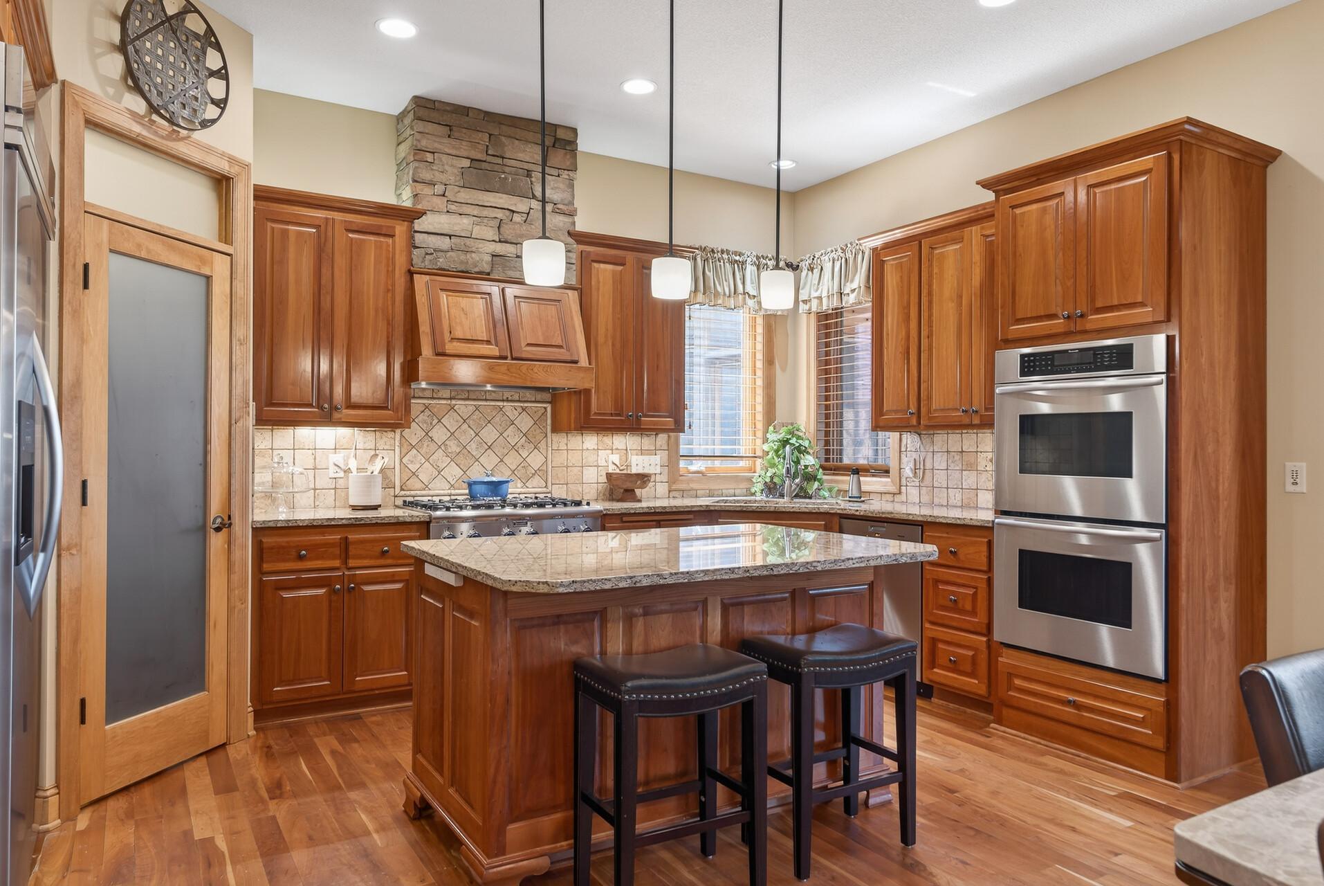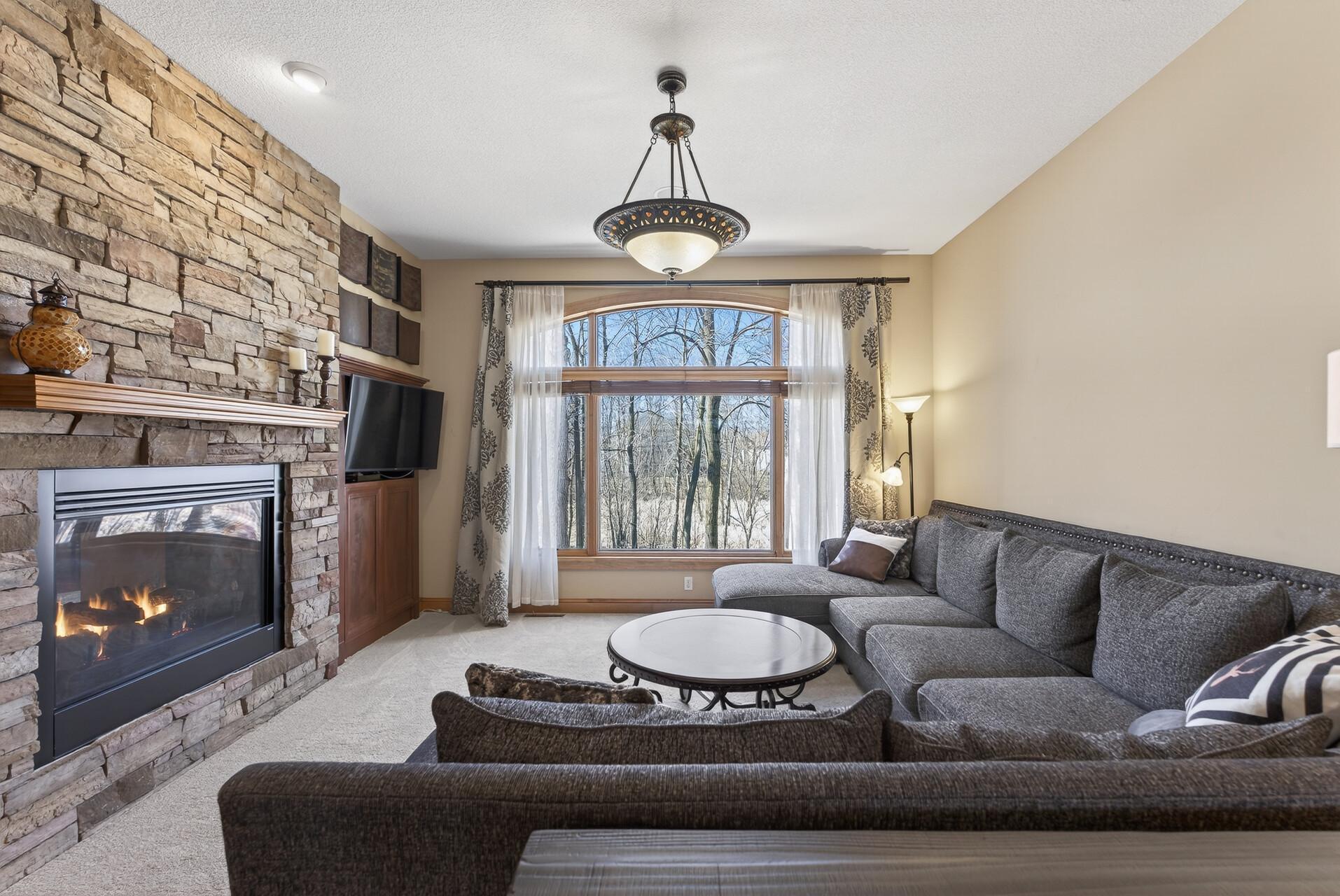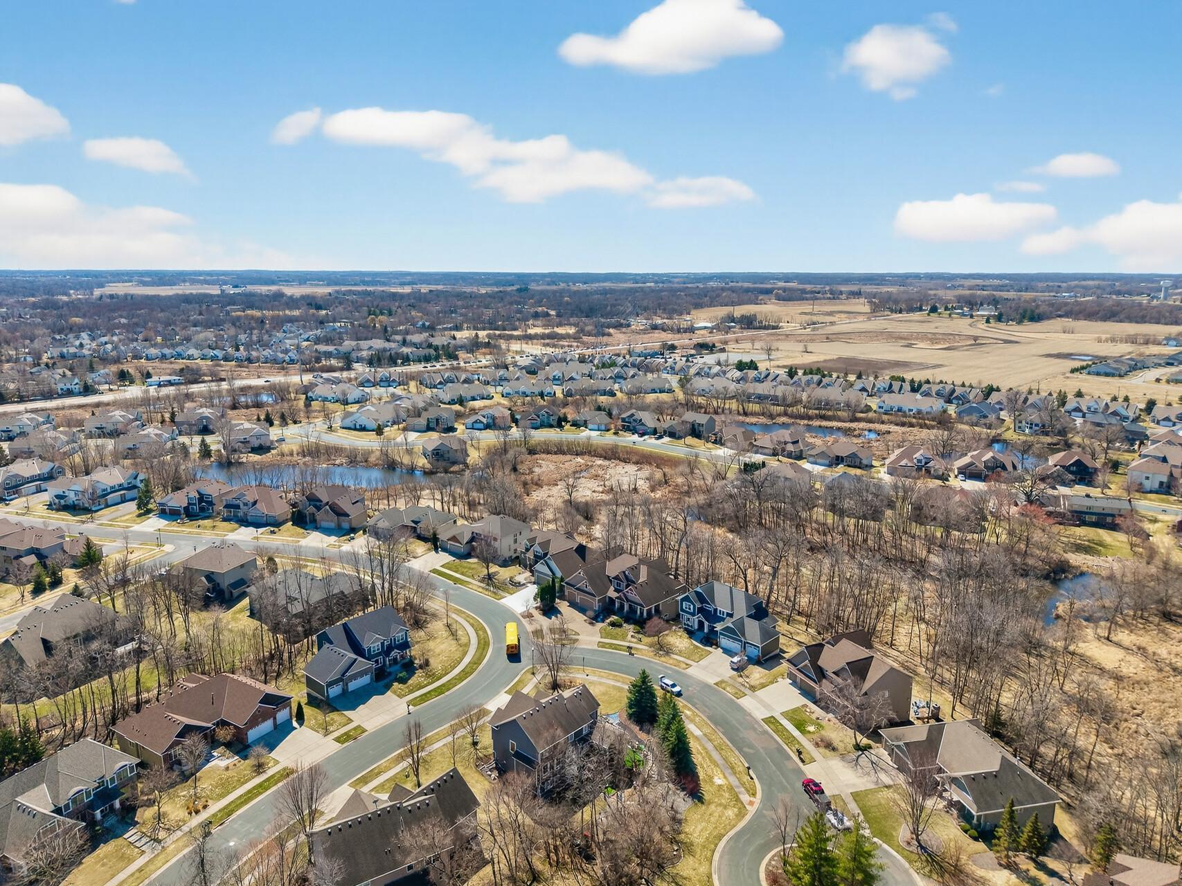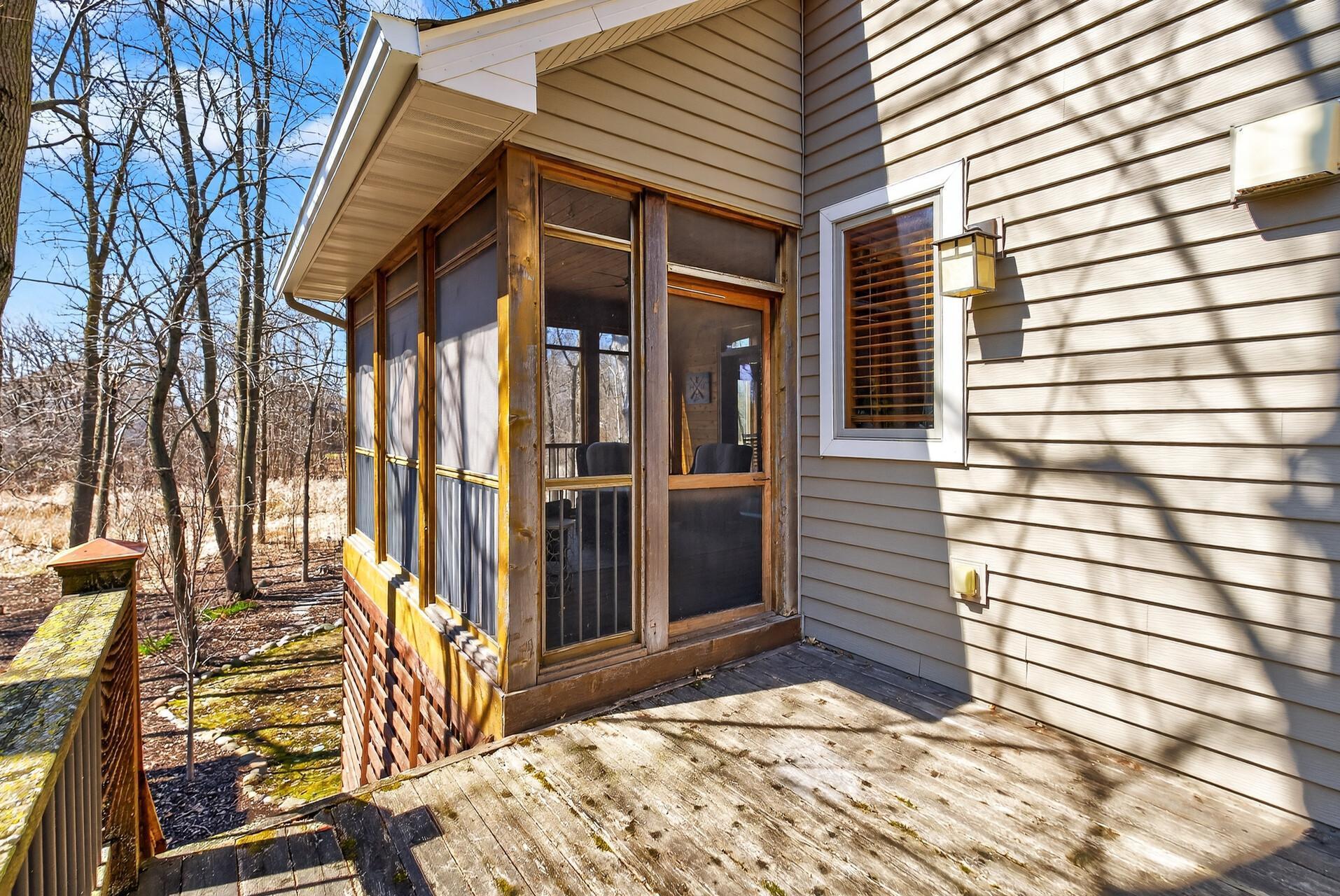 Welcome to this exceptional custom home in sought-after Dunlavin Woods, where craftsmanship, space, and thoughtful design come together beautifully. From the striking paver circular driveway and pillared front porch to the wooded backyard and wetland views, the setting is just as impressive as the home itself. Inside, you’ll find cherrywood floors, vaulted ceilings, and a stunning 3-sided fireplace anchoring the main living spaces. The gourmet kitchen features granite countertops, stainless steel appliances, a center island, walk-in pantry, and mini bar—perfect for everyday living and entertaining alike. A vaulted four-season porch flows seamlessly to the screened porch, deck, and paver patio, creating incredible indoor-outdoor living. The main-level primary suite offers privacy and comfort with a spacious layout, heated bathroom floors, jetted tub, walk-in shower, and dual vanities. Upstairs includes three generously sized bedrooms, including a Jack-and-Jill bath and an additional private bath, plus a massive bonus room with its own fireplace. The fully finished walkout lower level is built for entertaining, complete with a full bar, second kitchen, large amusement space, additional bedroom, and flexible rooms ideal for a home gym, office, or hobby space. Additional highlights include heated floors, newer mechanicals, built-ins throughout, central vacuum, whole-home sound system, main-level laundry with mudroom, and a heated garage with floor drain, lift system, and access to both the main and lower levels. Enjoy a low-maintenance yard, abundant wildlife, and a neighborhood known for its strong sense of community. This is a rare opportunity to own a truly well-appointed home with space, function, and character at every turn.