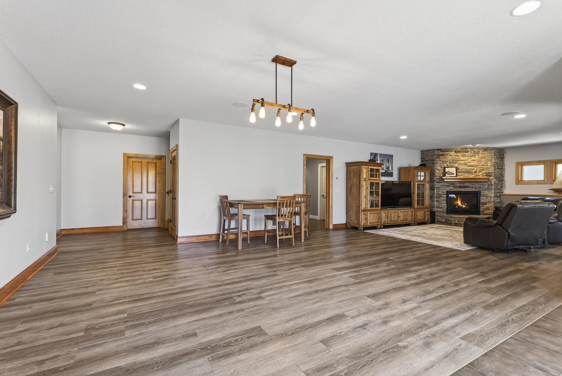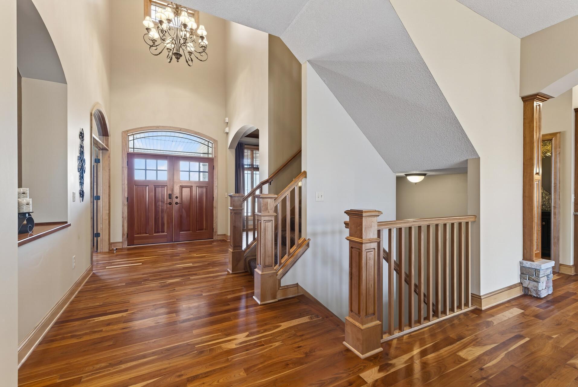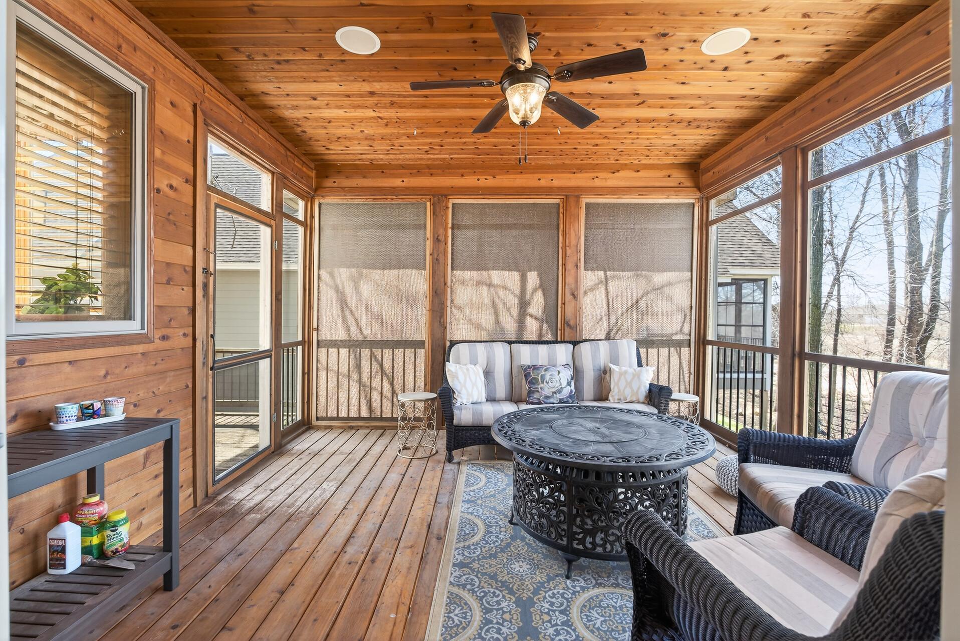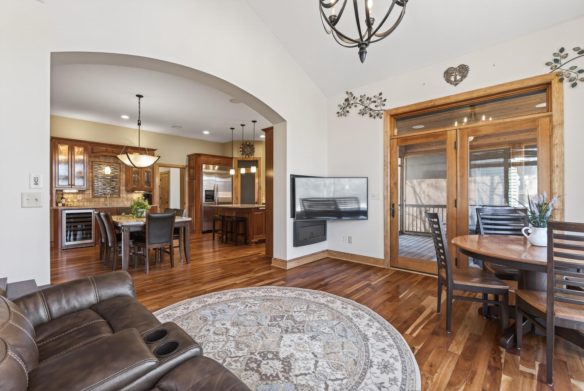 Welcome to this exceptional custom home in sought-after Dunlavin Woods, where craftsmanship, space, and thoughtful design come together beautifully. From the striking paver circular driveway and pillared front porch to the wooded backyard and wetland views, the setting is just as impressive as the home itself. Inside, you’ll find cherrywood floors, vaulted ceilings, and a stunning 3-sided fireplace anchoring the main living spaces. The gourmet kitchen features granite countertops, stainless steel appliances, a center island, walk-in pantry, and mini bar—perfect for everyday living and entertaining alike. A vaulted four-season porch flows seamlessly to the screened porch, deck, and paver patio, creating incredible indoor-outdoor living. The main-level primary suite offers privacy and comfort with a spacious layout, heated bathroom floors, jetted tub, walk-in shower, and dual vanities. Upstairs includes three generously sized bedrooms, including a Jack-and-Jill bath and an additional private bath, plus a massive bonus room with its own fireplace. The fully finished walkout lower level is built for entertaining, complete with a full bar, second kitchen, large amusement space, additional bedroom, and flexible rooms ideal for a home gym, office, or hobby space. Additional highlights include heated floors, newer mechanicals, built-ins throughout, central vacuum, whole-home sound system, main-level laundry with mudroom, and a heated garage with floor drain, lift system, and access to both the main and lower levels. Enjoy a low-maintenance yard, abundant wildlife, and a neighborhood known for its strong sense of community. This is a rare opportunity to own a truly well-appointed home with space, function, and character at every turn.