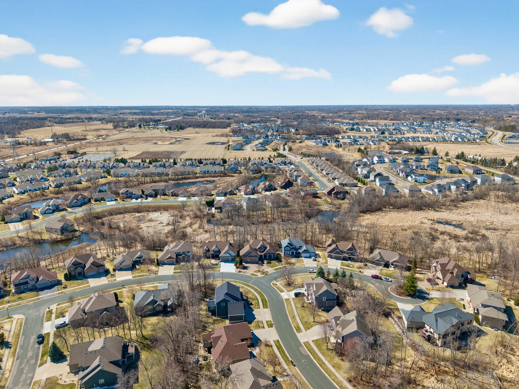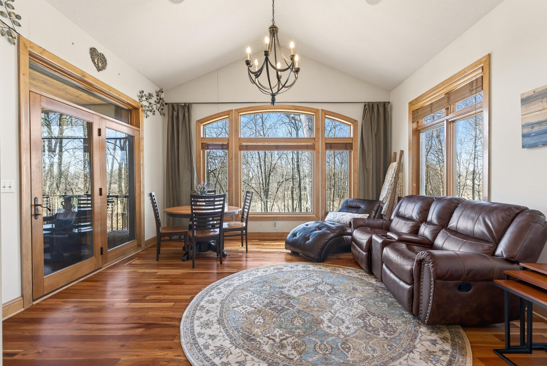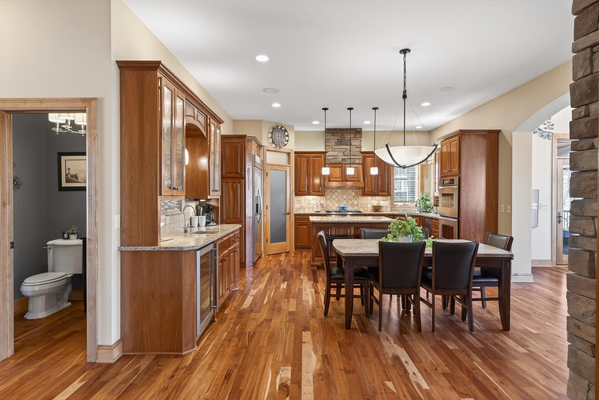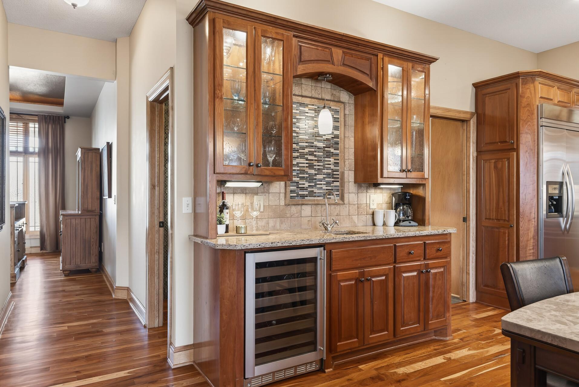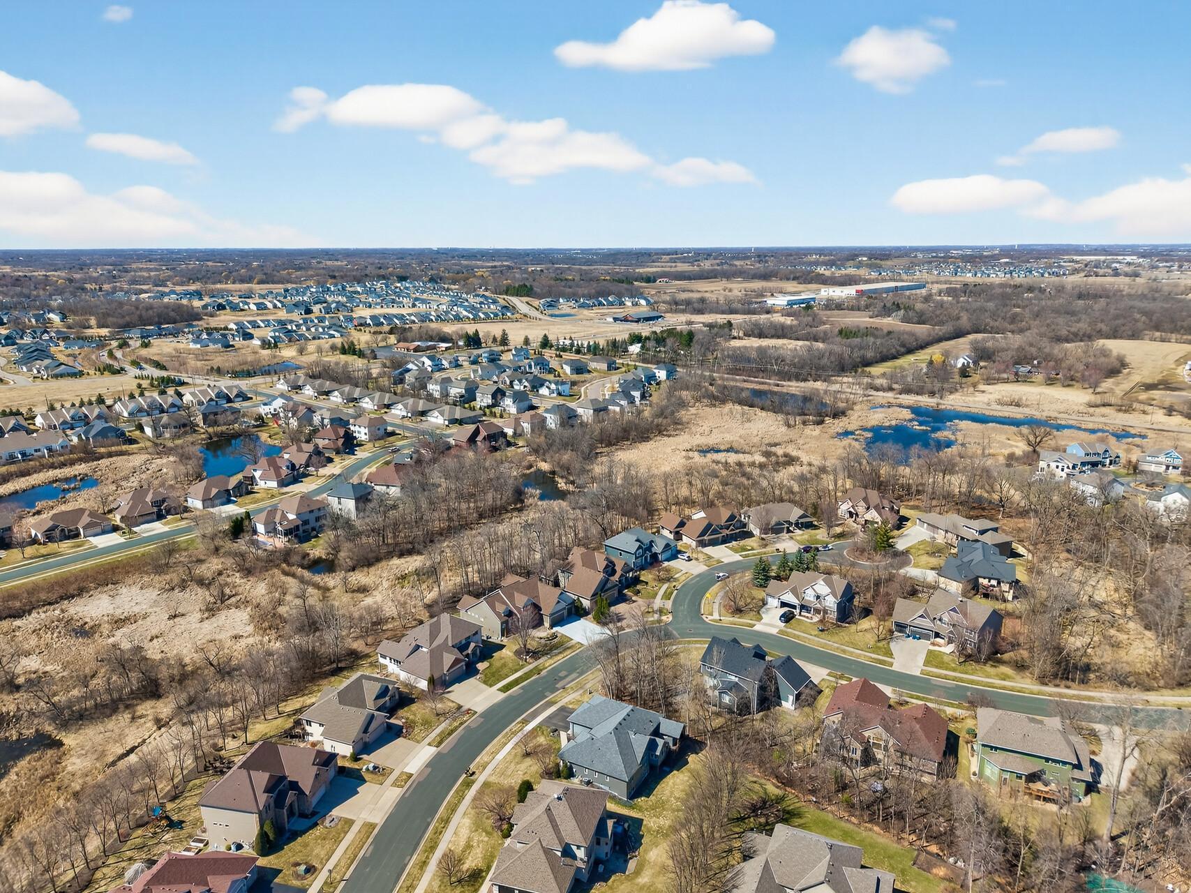 Welcome to this exceptional custom home in sought-after Dunlavin Woods, where craftsmanship, space, and thoughtful design come together beautifully. From the striking paver circular driveway and pillared front porch to the wooded backyard and wetland views, the setting is just as impressive as the home itself. Inside, you’ll find cherrywood floors, vaulted ceilings, and a stunning 3-sided fireplace anchoring the main living spaces. The gourmet kitchen features granite countertops, stainless steel appliances, a center island, walk-in pantry, and mini bar—perfect for everyday living and entertaining alike. A vaulted four-season porch flows seamlessly to the screened porch, deck, and paver patio, creating incredible indoor-outdoor living. The main-level primary suite offers privacy and comfort with a spacious layout, heated bathroom floors, jetted tub, walk-in shower, and dual vanities. Upstairs includes three generously sized bedrooms, including a Jack-and-Jill bath and an additional private bath, plus a massive bonus room with its own fireplace. The fully finished walkout lower level is built for entertaining, complete with a full bar, second kitchen, large amusement space, additional bedroom, and flexible rooms ideal for a home gym, office, or hobby space. Additional highlights include heated floors, newer mechanicals, built-ins throughout, central vacuum, whole-home sound system, main-level laundry with mudroom, and a heated garage with floor drain, lift system, and access to both the main and lower levels. Enjoy a low-maintenance yard, abundant wildlife, and a neighborhood known for its strong sense of community. This is a rare opportunity to own a truly well-appointed home with space, function, and character at every turn.