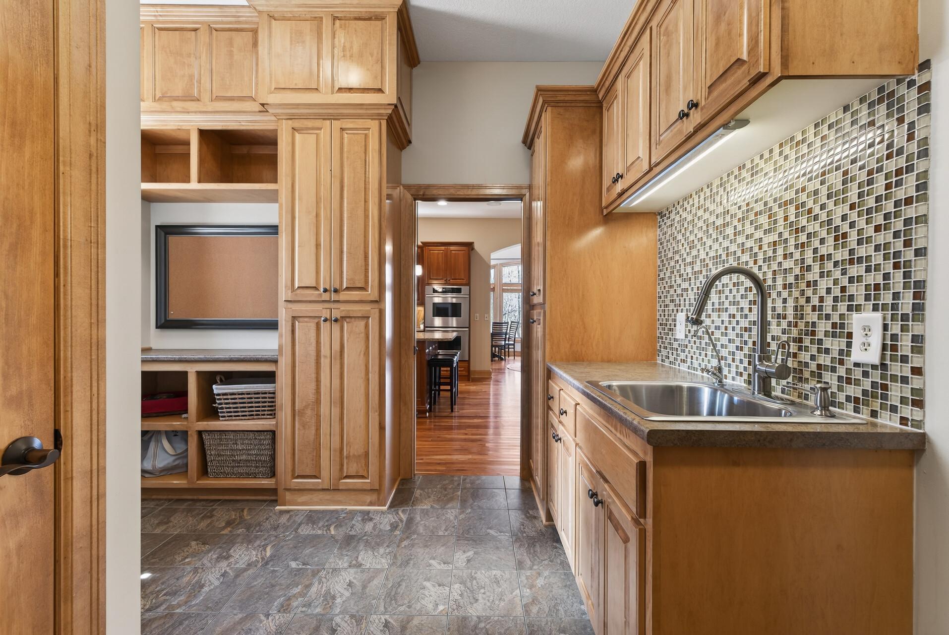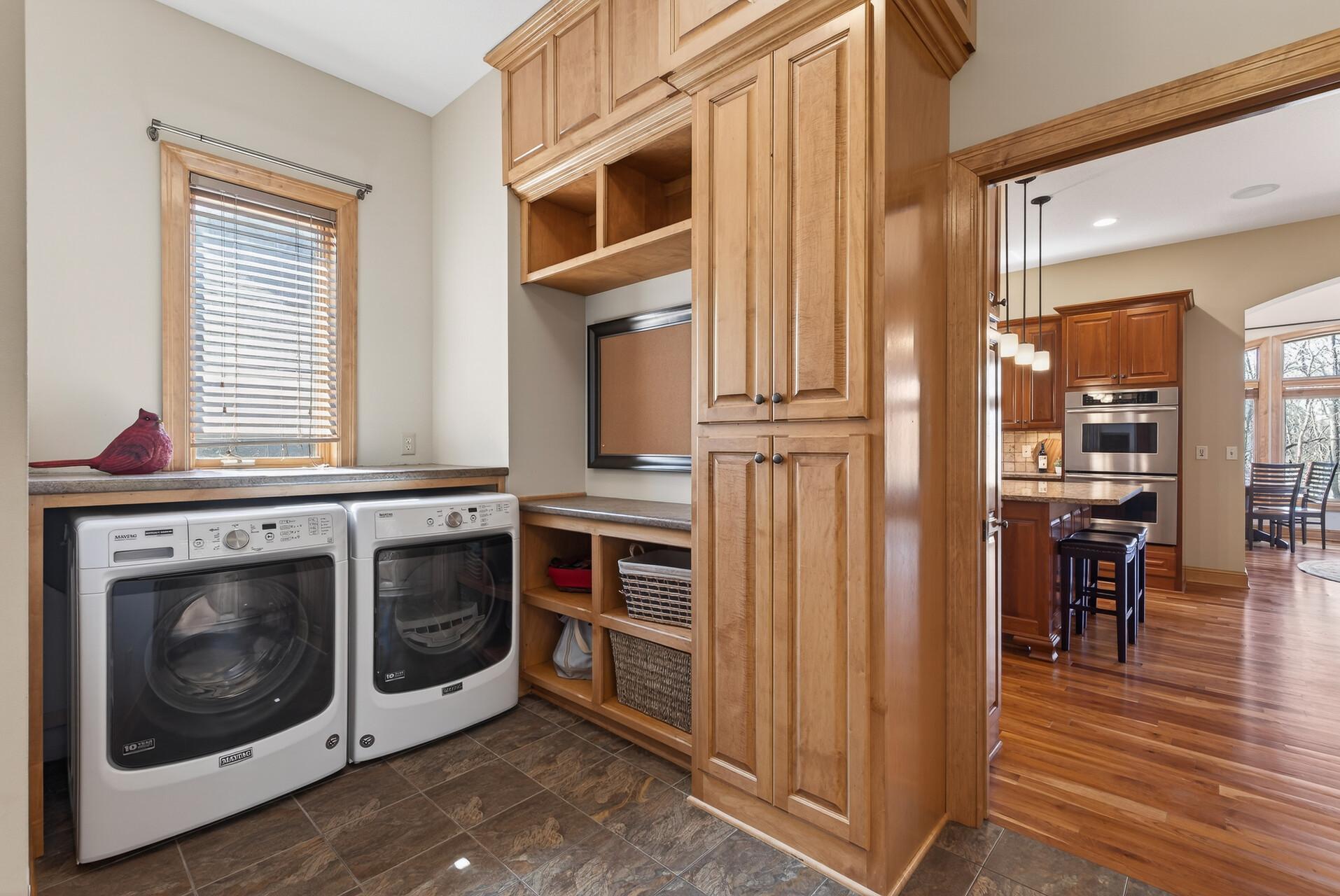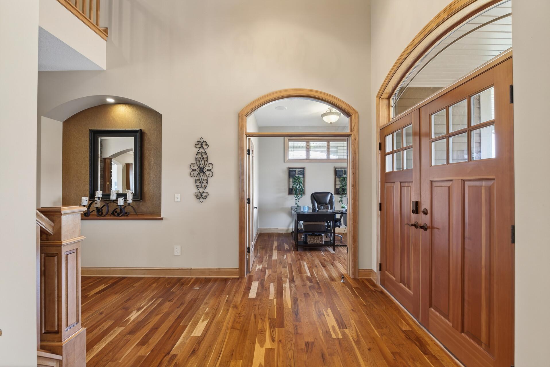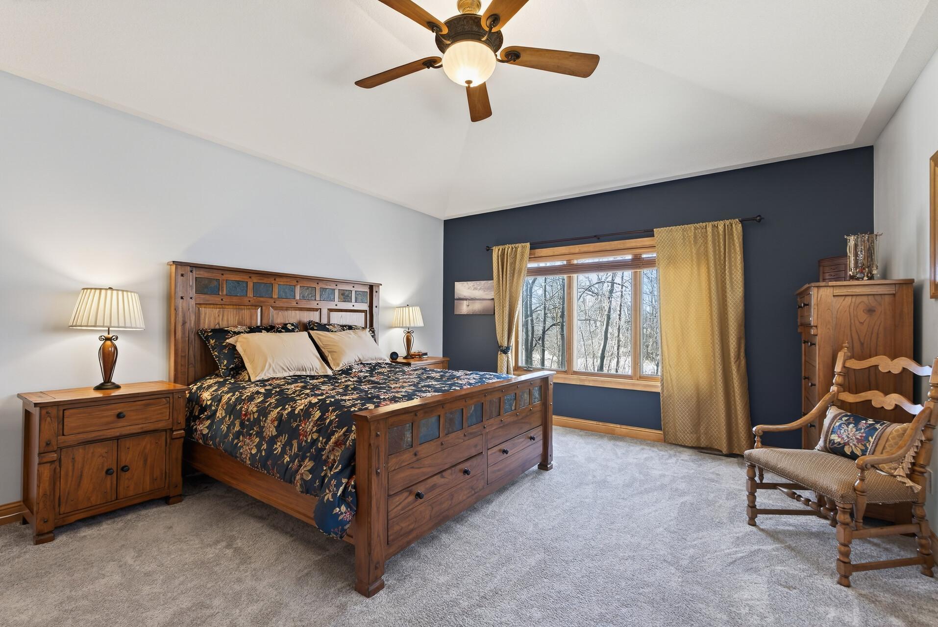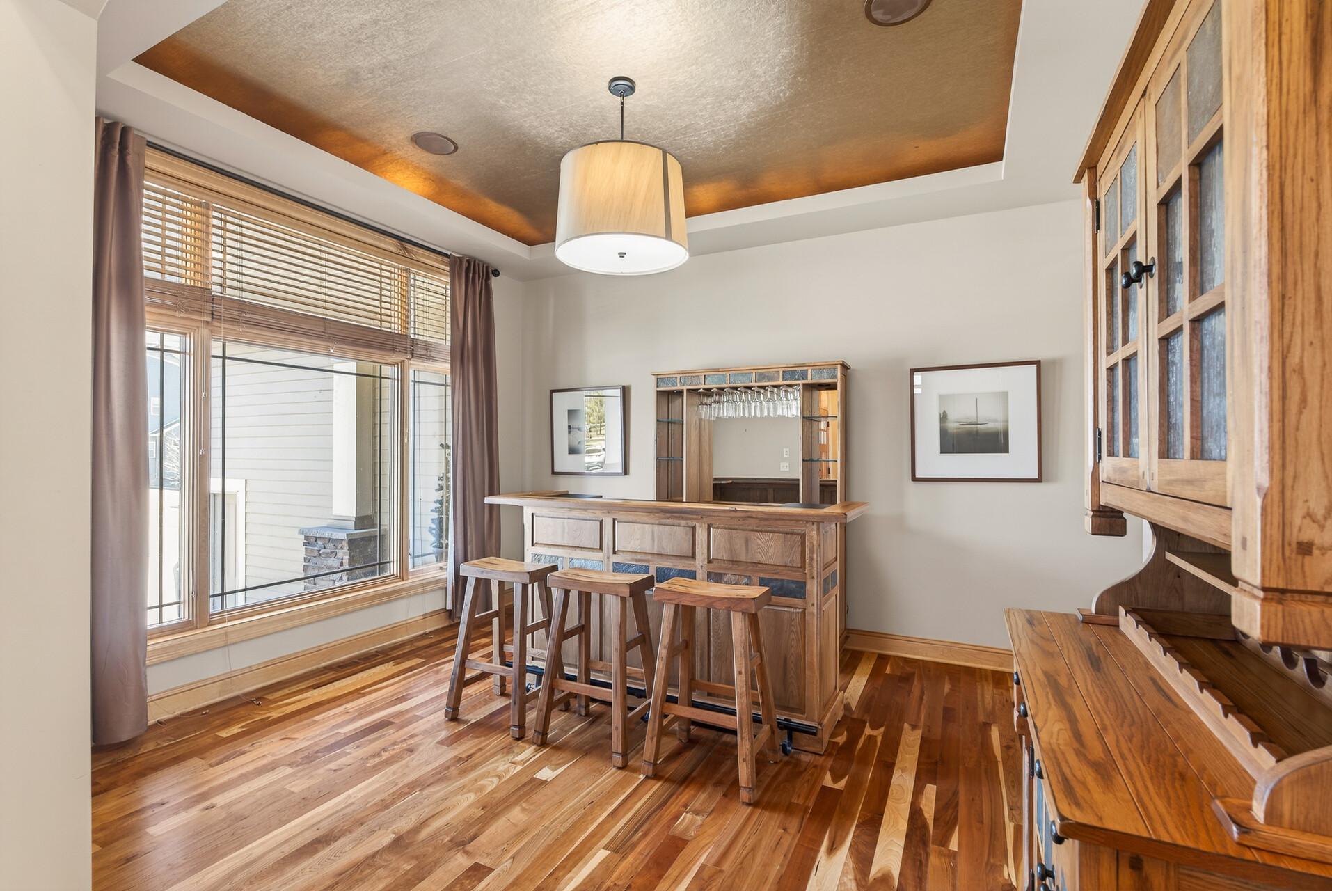 Welcome to this exceptional custom home in sought-after Dunlavin Woods, where craftsmanship, space, and thoughtful design come together beautifully. From the striking paver circular driveway and pillared front porch to the wooded backyard and wetland views, the setting is just as impressive as the home itself. Inside, you’ll find cherrywood floors, vaulted ceilings, and a stunning 3-sided fireplace anchoring the main living spaces. The gourmet kitchen features granite countertops, stainless steel appliances, a center island, walk-in pantry, and mini bar—perfect for everyday living and entertaining alike. A vaulted four-season porch flows seamlessly to the screened porch, deck, and paver patio, creating incredible indoor-outdoor living. The main-level primary suite offers privacy and comfort with a spacious layout, heated bathroom floors, jetted tub, walk-in shower, and dual vanities. Upstairs includes three generously sized bedrooms, including a Jack-and-Jill bath and an additional private bath, plus a massive bonus room with its own fireplace. The fully finished walkout lower level is built for entertaining, complete with a full bar, second kitchen, large amusement space, additional bedroom, and flexible rooms ideal for a home gym, office, or hobby space. Additional highlights include heated floors, newer mechanicals, built-ins throughout, central vacuum, whole-home sound system, main-level laundry with mudroom, and a heated garage with floor drain, lift system, and access to both the main and lower levels. Enjoy a low-maintenance yard, abundant wildlife, and a neighborhood known for its strong sense of community. This is a rare opportunity to own a truly well-appointed home with space, function, and character at every turn.