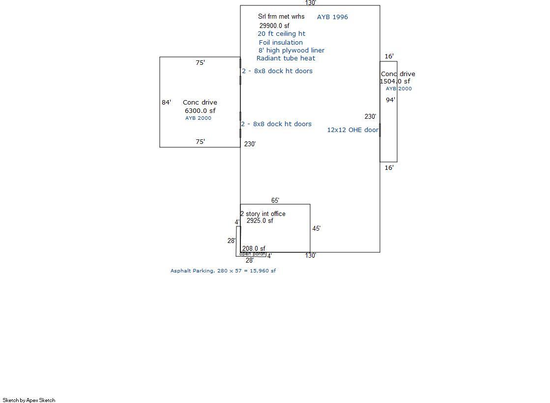 Professional office space available for lease in an industrial park area. Parking lot contains approximately 35 parking spaces. Entry way is an amazing 2 story glass atrium with open stairway to the 2nd floor office spaces. Approximately 2,925 sf on the main level and 2,525 sf on the second floor. This is a great area to locate your office operations.
