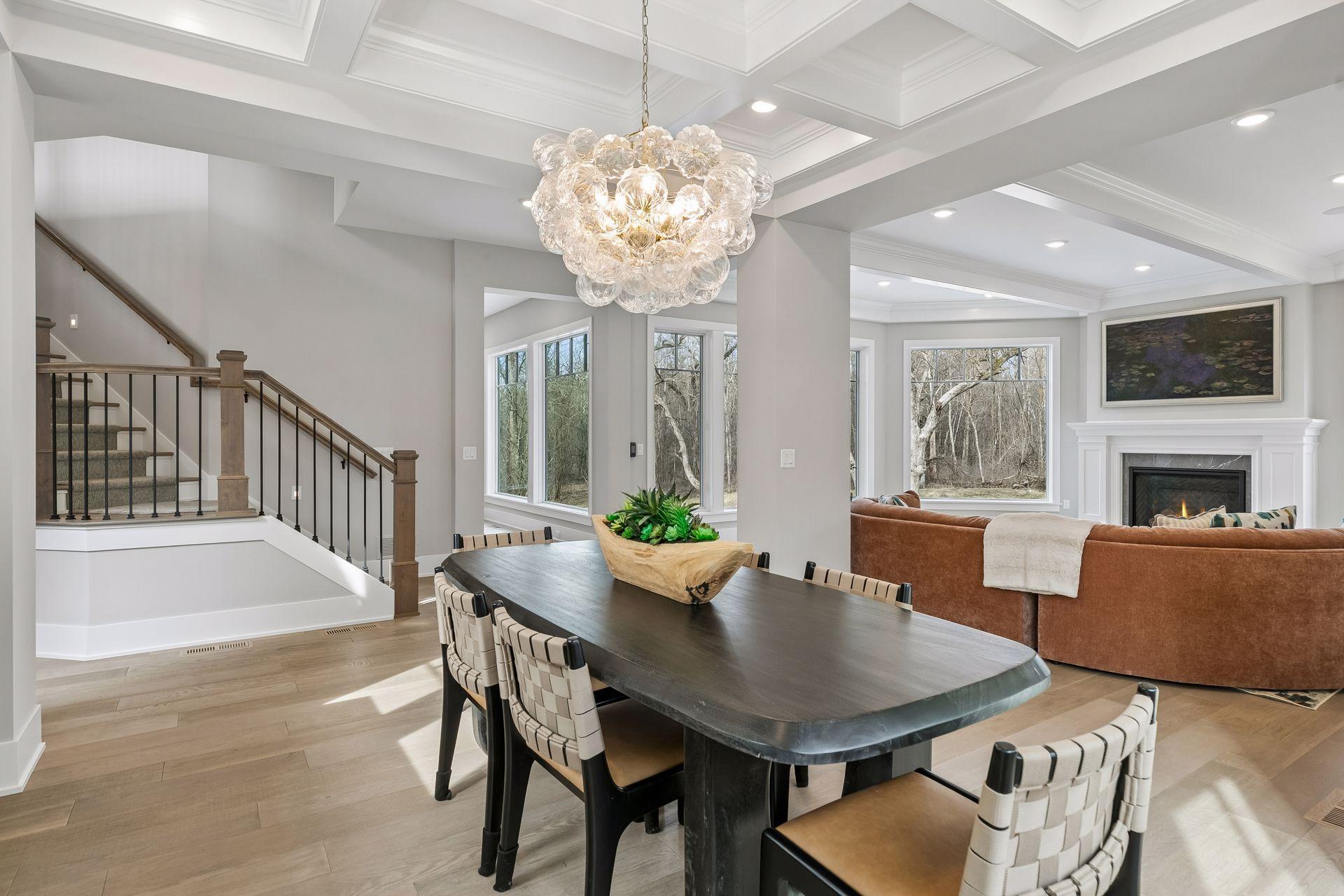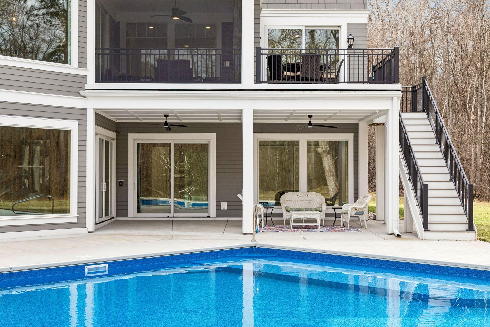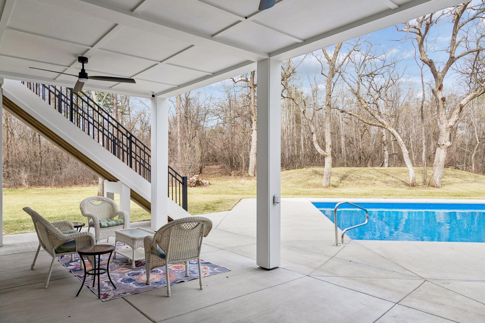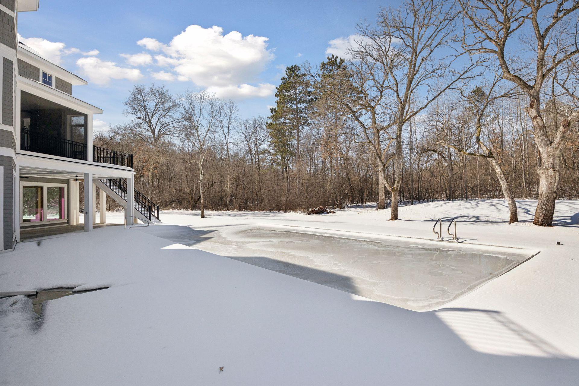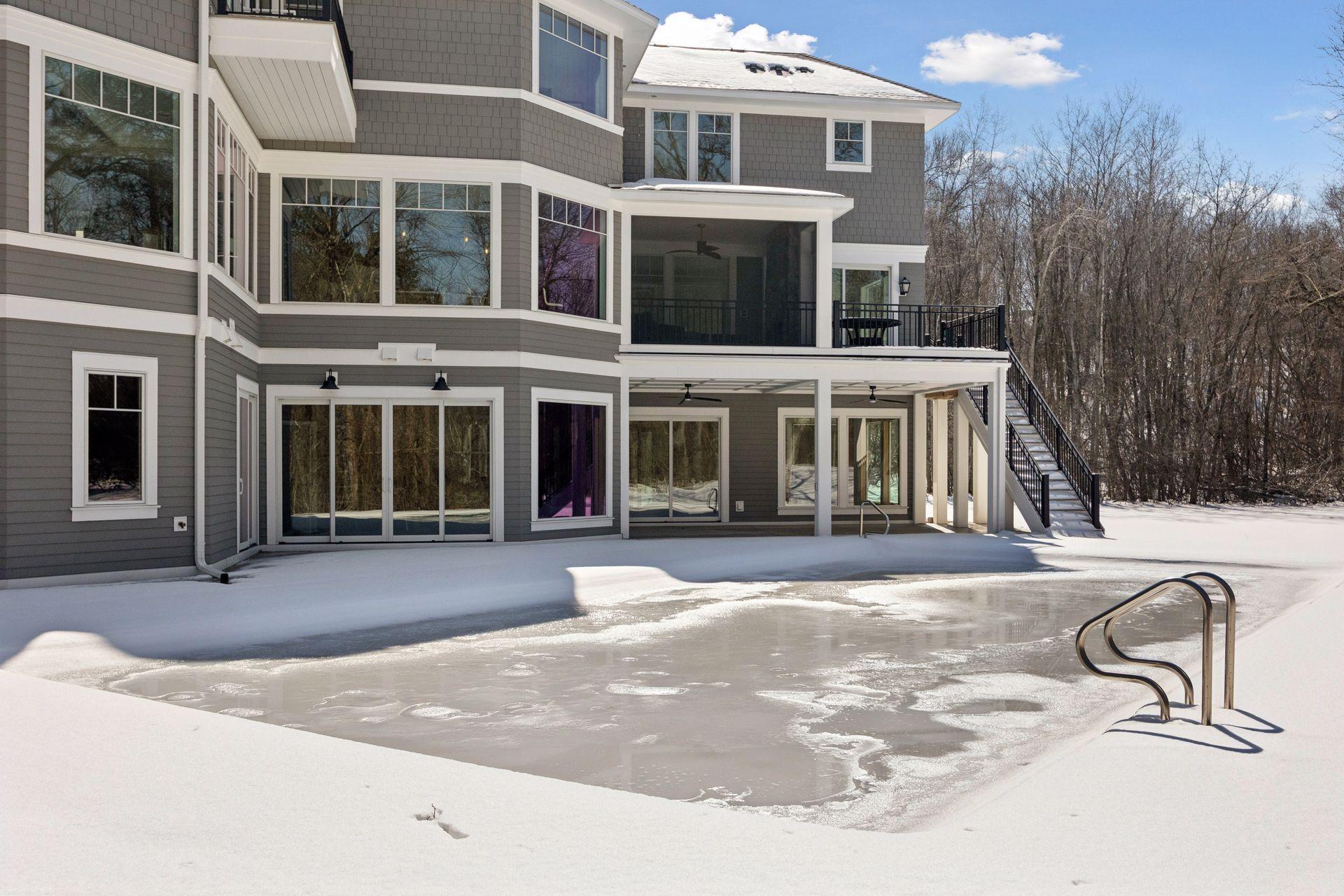 A remarkable Charles Cudd masterpiece set on 10 wooded acres in the beautiful community of Afton, tucked away on a quiet cul-de-sac and surrounded by nature with your own private pond. As you approach the property, the home makes an unforgettable first impression. Large stone trap rock accents line the circular driveway, leading to a stunning custom water fountain and setting the stage for the craftsmanship that awaits inside. The interior showcases exceptional architectural detail and superior craftsmanship, including wide-plank white oak floors, tall base moldings and casings, striking beamed ceilings, and enormous picture windows that flood the home with natural light while framing the peaceful landscape. At the heart of the home is a gourmet kitchen designed for both everyday living and entertaining, featuring a commercial-grade Monogram gas range, quartz countertops, tile backsplash, custom cabinetry, and an expansive walk-in pantry that functions as a secondary kitchen. Just beyond is a beautiful screen porch with fireplace, tile flooring, and under decking, creating a perfect space to enjoy the surrounding woods in every season. The main level offers an abundance of spaces designed for gathering and entertaining, including an oversized great room with fireplace, a private office with custom built-ins, and an open dining room that flows seamlessly into the great room. Off the kitchen, a sunroom that overlooks the pool and into the spectacular 40x23 two-story sport court, an incredible feature for recreation and year-round activity. The thoughtfully designed mudroom includes a separate custom cubby room, providing built-in storage sections for each family member along with an additional walk-in closet for organization and convenience. Upstairs, you’ll find four expansive bedroom suites, each with its own private bathroom and large walk-in closet. The primary suite is a true retreat, featuring a fireplace, coffee station, custom closet with island, a dedicated changing room with built-in cabinetry, and a spa-inspired bathroom with heated floors, soaking tub, and a spacious walk-in shower. The generously sized upper-level laundry room is conveniently located just off the primary suite. Two additional loft spaces provide areas for study and creativity, complete with built-in desks and a dedicated piano/music area. The walkout lower-level features heated floors and extensive unfinished space, ready to be customized into your dream entertainment area, with a designated space already planned for a golf simulator. Just outside awaits a spectacular 25x50 saltwater pool with water jets, creating a private outdoor retreat. For the car enthusiast, the heated garage is truly extraordinary, accommodating six vehicles on the main level and six additional vehicles in the lower garage, with ready-to-install EV charging capability. With multiple HVAC zones providing perfectly controlled temperatures throughout, this new construction home offers an unparalleled combination of luxury, recreation, privacy, and serenity—a one-of-a-kind offering in the scenic community of Afton.
