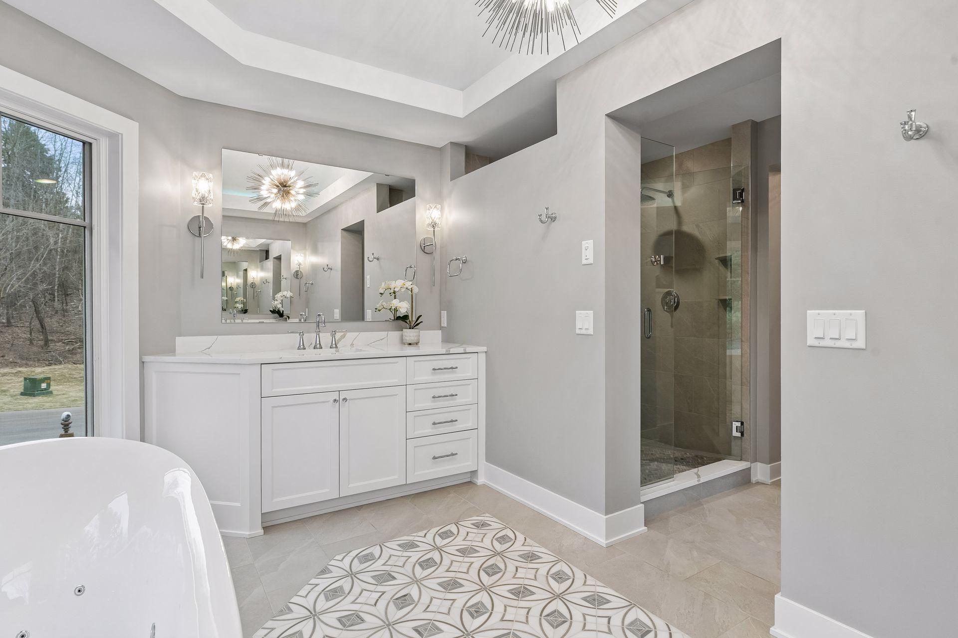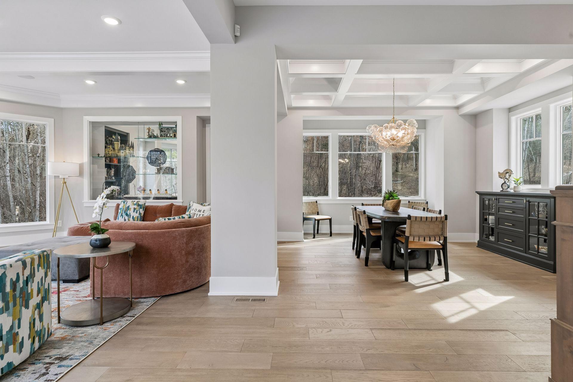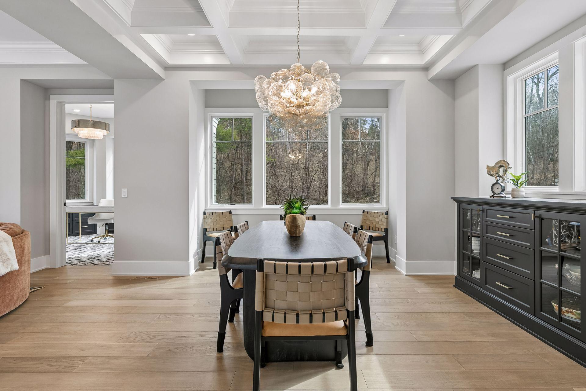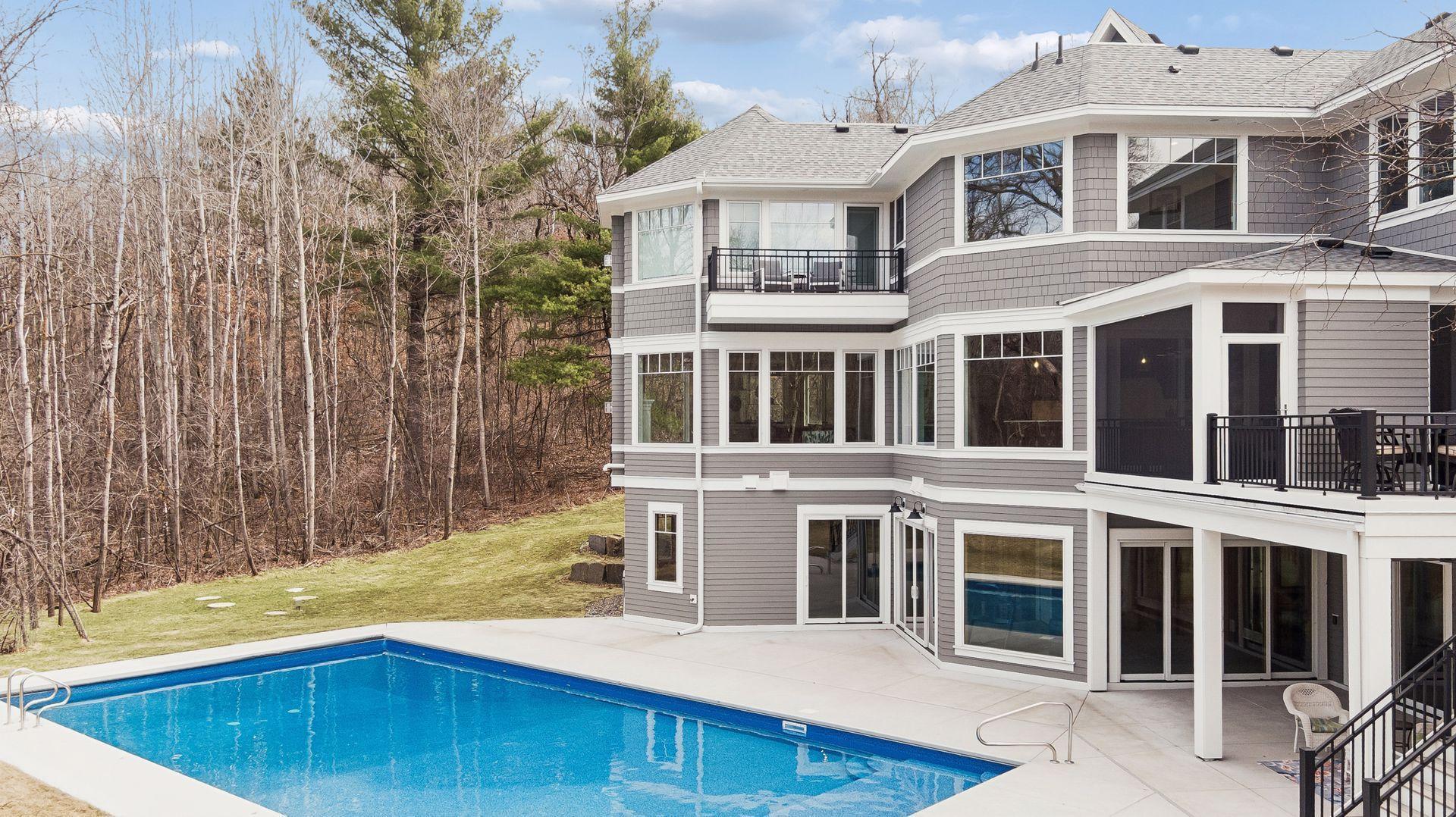 A remarkable Charles Cudd masterpiece set on 10 wooded acres in the beautiful community of Afton, tucked away on a quiet cul-de-sac and surrounded by nature with your own private pond. As you approach the property, the home makes an unforgettable first impression. Large stone trap rock accents line the circular driveway, leading to a stunning custom water fountain and setting the stage for the craftsmanship that awaits inside. The interior showcases exceptional architectural detail and superior craftsmanship, including wide-plank white oak floors, tall base moldings and casings, striking beamed ceilings, and enormous picture windows that flood the home with natural light while framing the peaceful landscape. At the heart of the home is a gourmet kitchen designed for both everyday living and entertaining, featuring a commercial-grade Monogram gas range, quartz countertops, tile backsplash, custom cabinetry, and an expansive walk-in pantry that functions as a secondary kitchen. Just beyond is a beautiful screen porch with fireplace, tile flooring, and under decking, creating a perfect space to enjoy the surrounding woods in every season. The main level offers an abundance of spaces designed for gathering and entertaining, including an oversized great room with fireplace, a private office with custom built-ins, and an open dining room that flows seamlessly into the great room. Off the kitchen, a sunroom that overlooks the pool and into the spectacular 40x23 two-story sport court, an incredible feature for recreation and year-round activity. The thoughtfully designed mudroom includes a separate custom cubby room, providing built-in storage sections for each family member along with an additional walk-in closet for organization and convenience. Upstairs, you’ll find four expansive bedroom suites, each with its own private bathroom and large walk-in closet. The primary suite is a true retreat, featuring a fireplace, coffee station, custom closet with island, a dedicated changing room with built-in cabinetry, and a spa-inspired bathroom with heated floors, soaking tub, and a spacious walk-in shower. The generously sized upper-level laundry room is conveniently located just off the primary suite. Two additional loft spaces provide areas for study and creativity, complete with built-in desks and a dedicated piano/music area. The walkout lower-level features heated floors and extensive unfinished space, ready to be customized into your dream entertainment area, with a designated space already planned for a golf simulator. Just outside awaits a spectacular 25x50 saltwater pool with water jets, creating a private outdoor retreat. For the car enthusiast, the heated garage is truly extraordinary, accommodating six vehicles on the main level and six additional vehicles in the lower garage, with ready-to-install EV charging capability. With multiple HVAC zones providing perfectly controlled temperatures throughout, this new construction home offers an unparalleled combination of luxury, recreation, privacy, and serenity—a one-of-a-kind offering in the scenic community of Afton.