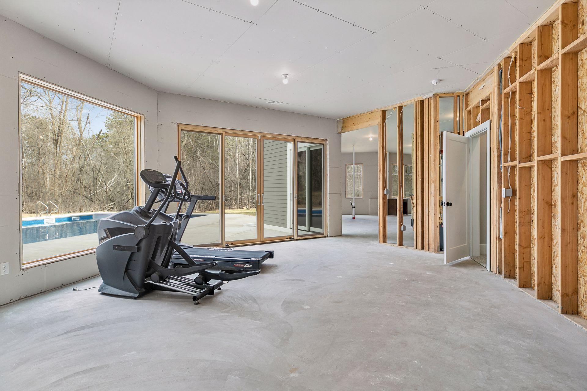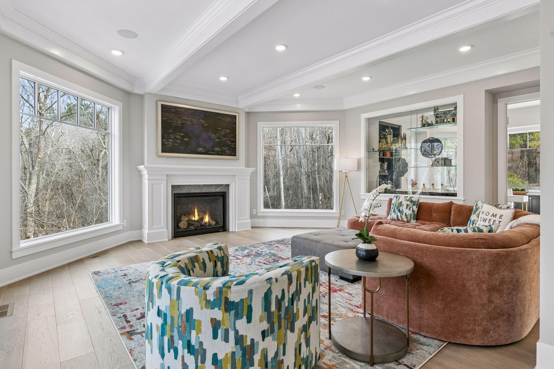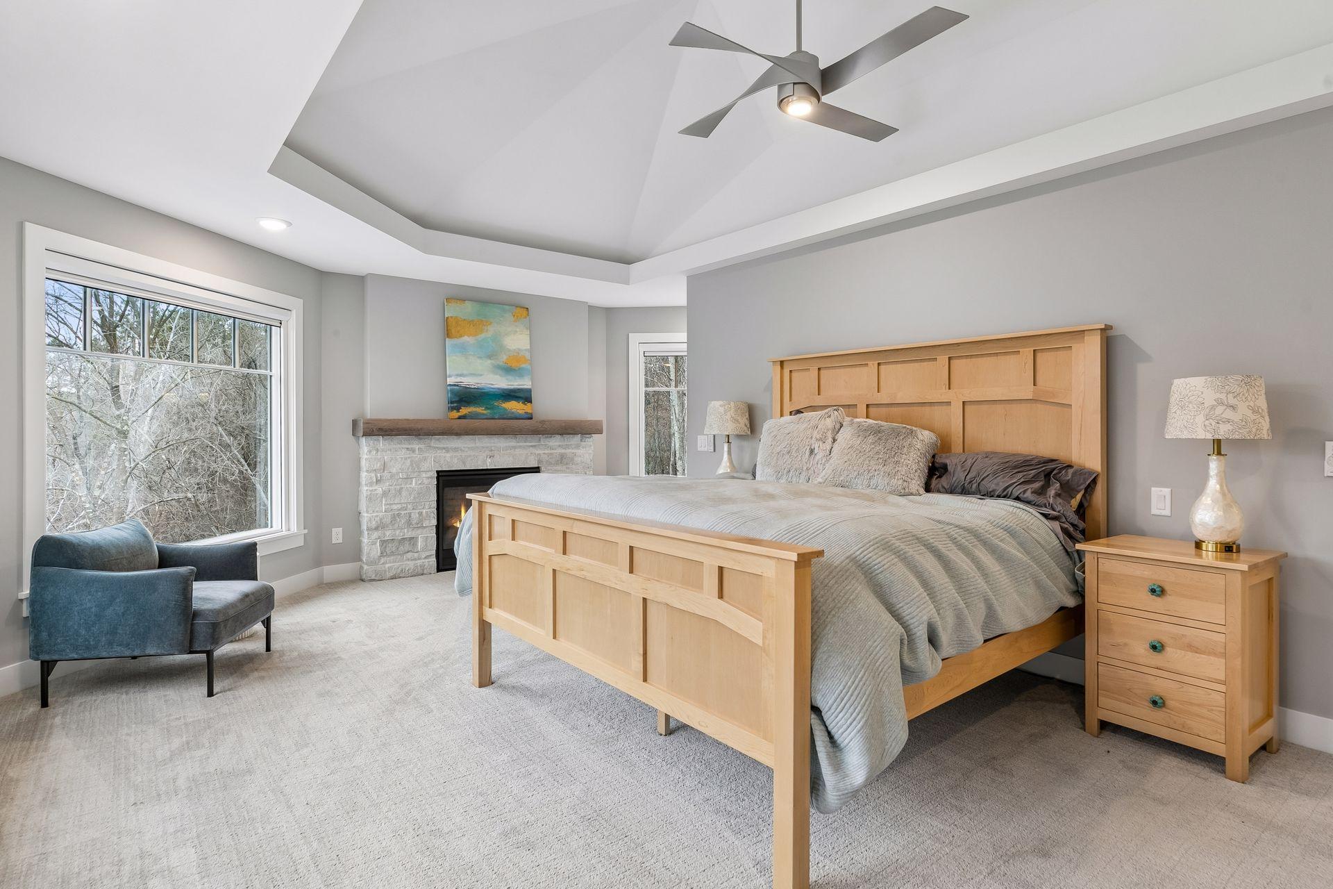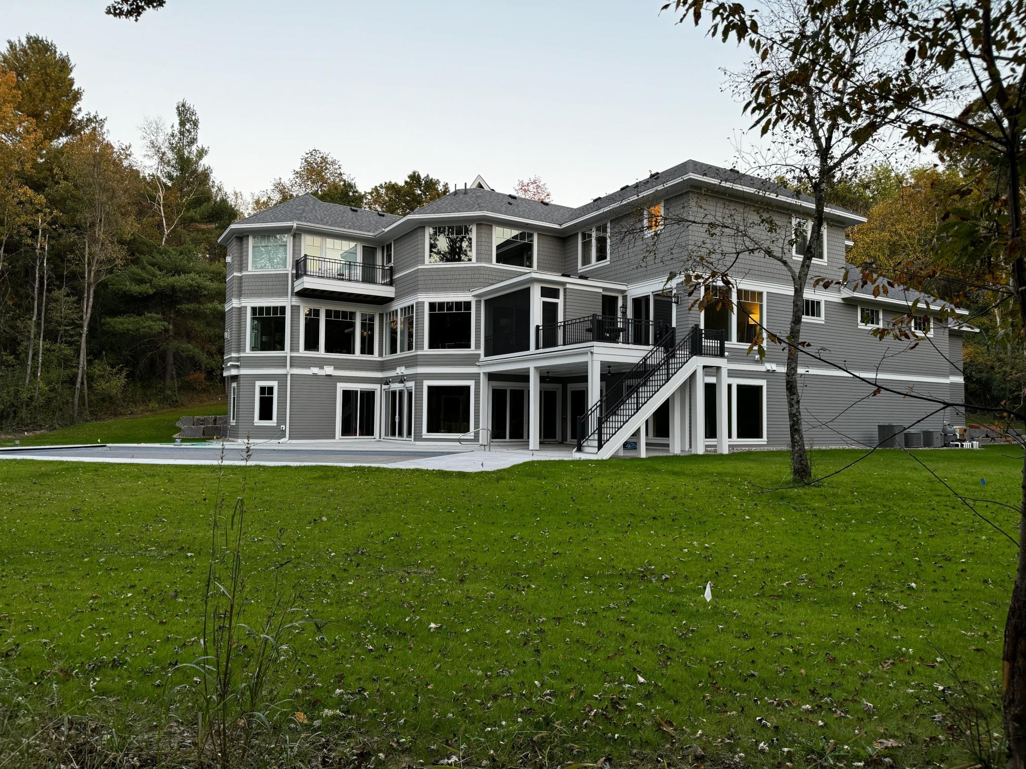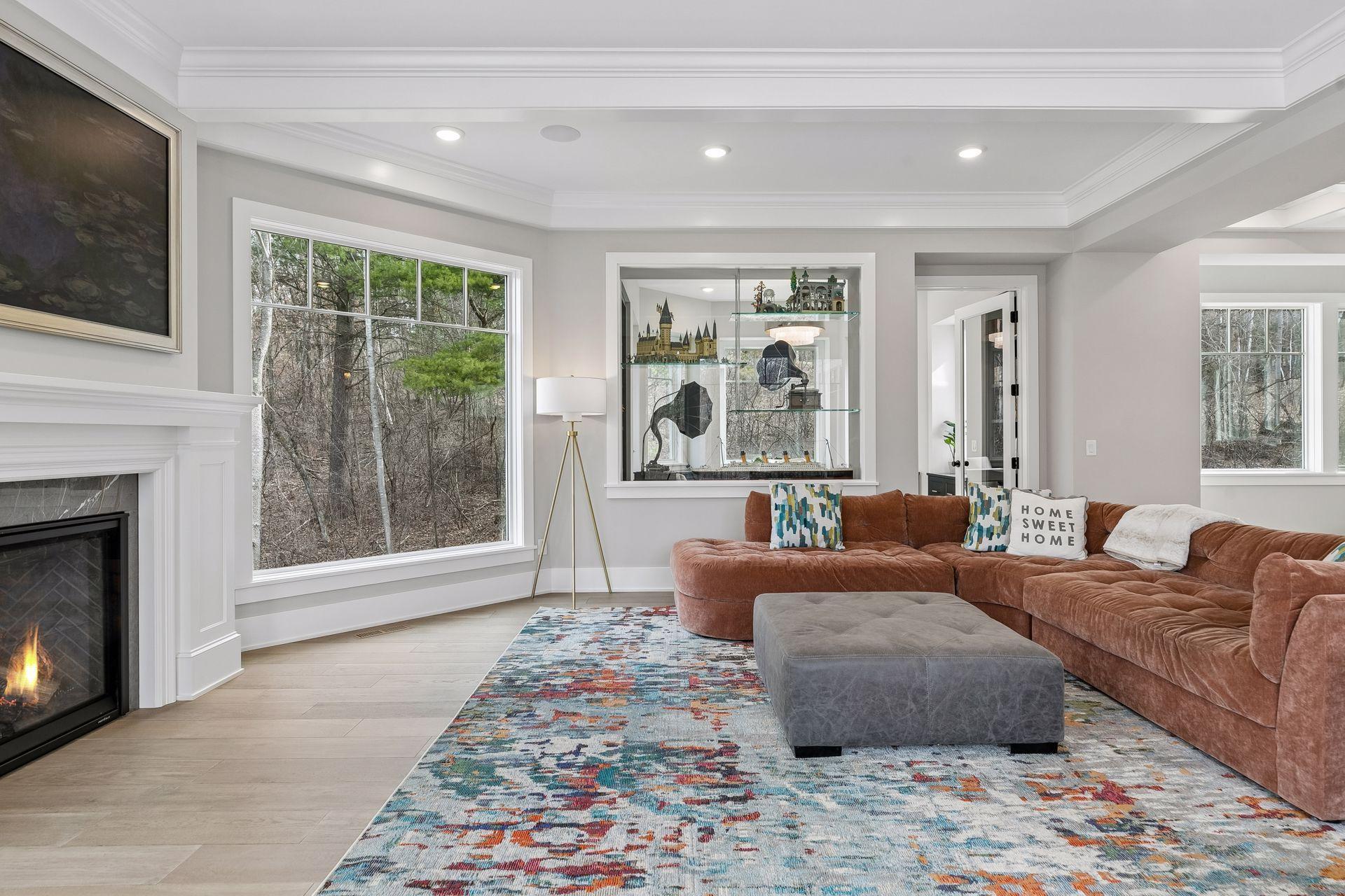 A remarkable Charles Cudd masterpiece set on 10 wooded acres in the beautiful community of Afton, tucked away on a quiet cul-de-sac and surrounded by nature with your own private pond. As you approach the property, the home makes an unforgettable first impression. Large stone trap rock accents line the circular driveway, leading to a stunning custom water fountain and setting the stage for the craftsmanship that awaits inside. The interior showcases exceptional architectural detail and superior craftsmanship, including wide-plank white oak floors, tall base moldings and casings, striking beamed ceilings, and enormous picture windows that flood the home with natural light while framing the peaceful landscape. At the heart of the home is a gourmet kitchen designed for both everyday living and entertaining, featuring a commercial-grade Monogram gas range, quartz countertops, tile backsplash, custom cabinetry, and an expansive walk-in pantry that functions as a secondary kitchen. Just beyond is a beautiful screen porch with fireplace, tile flooring, and under decking, creating a perfect space to enjoy the surrounding woods in every season. The main level offers an abundance of spaces designed for gathering and entertaining, including an oversized great room with fireplace, a private office with custom built-ins, and an open dining room that flows seamlessly into the great room. Off the kitchen, a sunroom that overlooks the pool and into the spectacular 40x23 two-story sport court, an incredible feature for recreation and year-round activity. The thoughtfully designed mudroom includes a separate custom cubby room, providing built-in storage sections for each family member along with an additional walk-in closet for organization and convenience. Upstairs, you’ll find four expansive bedroom suites, each with its own private bathroom and large walk-in closet. The primary suite is a true retreat, featuring a fireplace, coffee station, custom closet with island, a dedicated changing room with built-in cabinetry, and a spa-inspired bathroom with heated floors, soaking tub, and a spacious walk-in shower. The generously sized upper-level laundry room is conveniently located just off the primary suite. Two additional loft spaces provide areas for study and creativity, complete with built-in desks and a dedicated piano/music area. The walkout lower-level features heated floors and extensive unfinished space, ready to be customized into your dream entertainment area, with a designated space already planned for a golf simulator. Just outside awaits a spectacular 25x50 saltwater pool with water jets, creating a private outdoor retreat. For the car enthusiast, the heated garage is truly extraordinary, accommodating six vehicles on the main level and six additional vehicles in the lower garage, with ready-to-install EV charging capability. With multiple HVAC zones providing perfectly controlled temperatures throughout, this new construction home offers an unparalleled combination of luxury, recreation, privacy, and serenity—a one-of-a-kind offering in the scenic community of Afton.