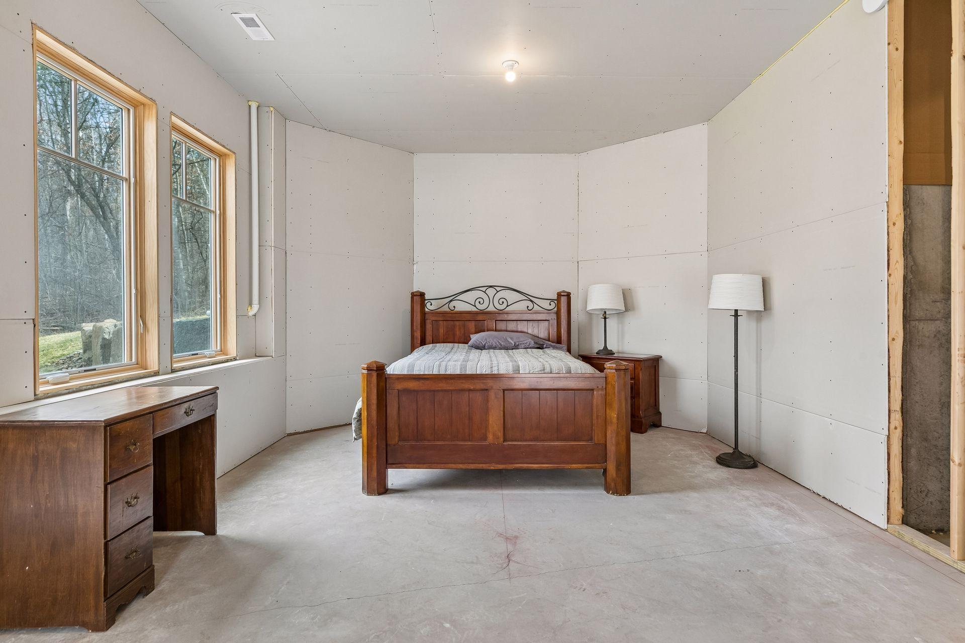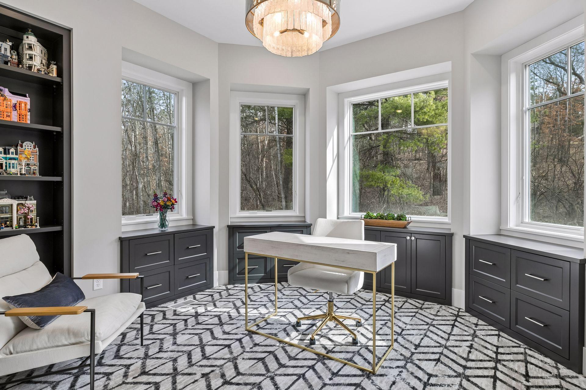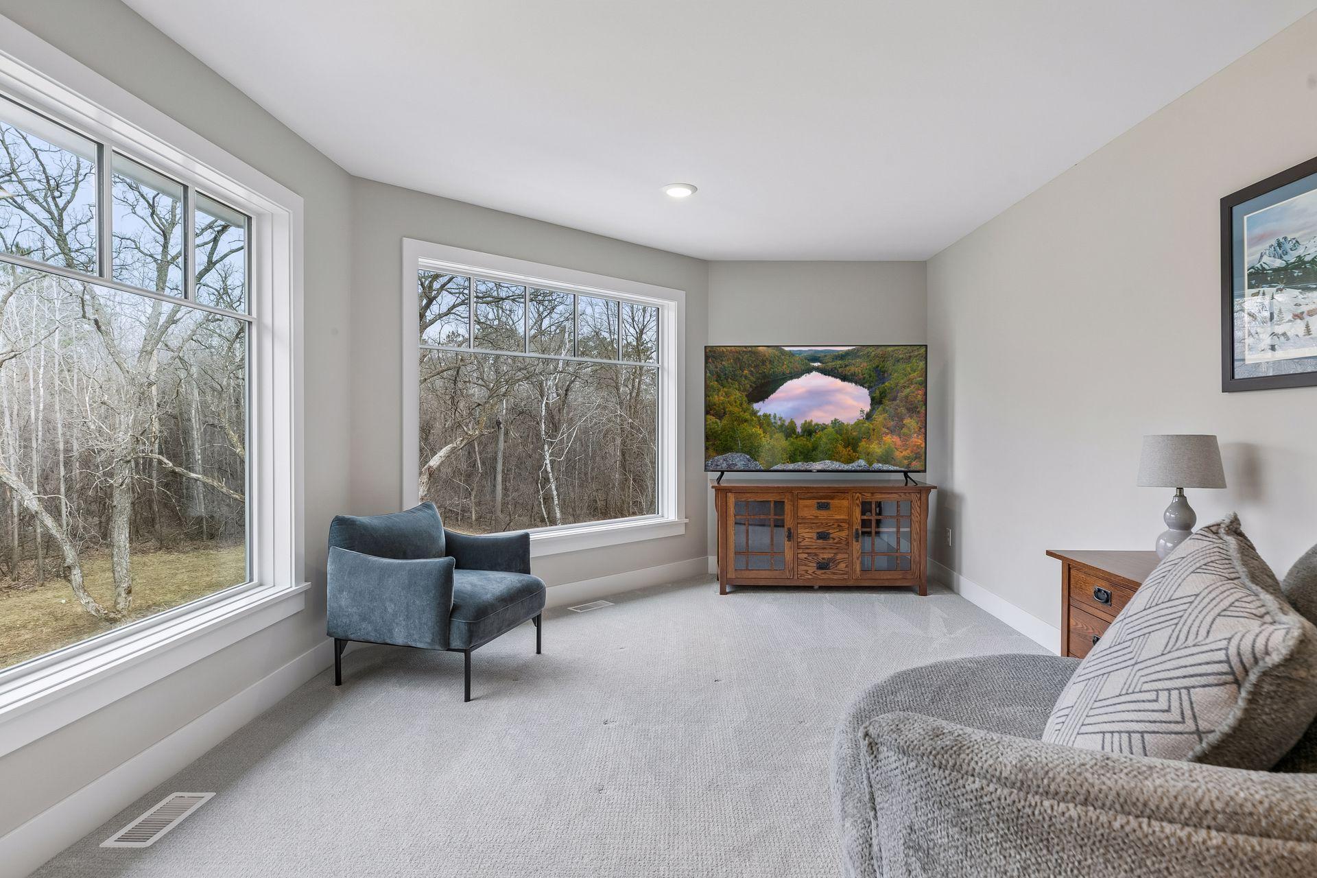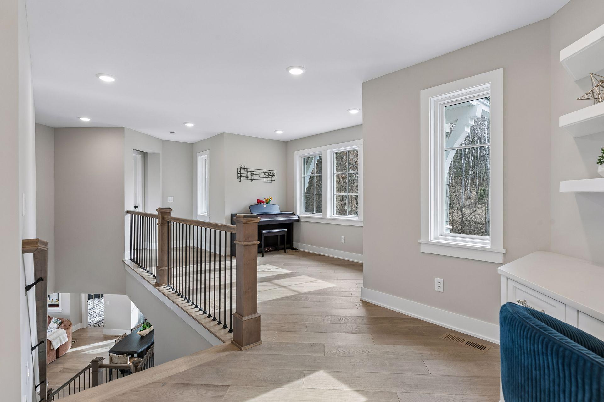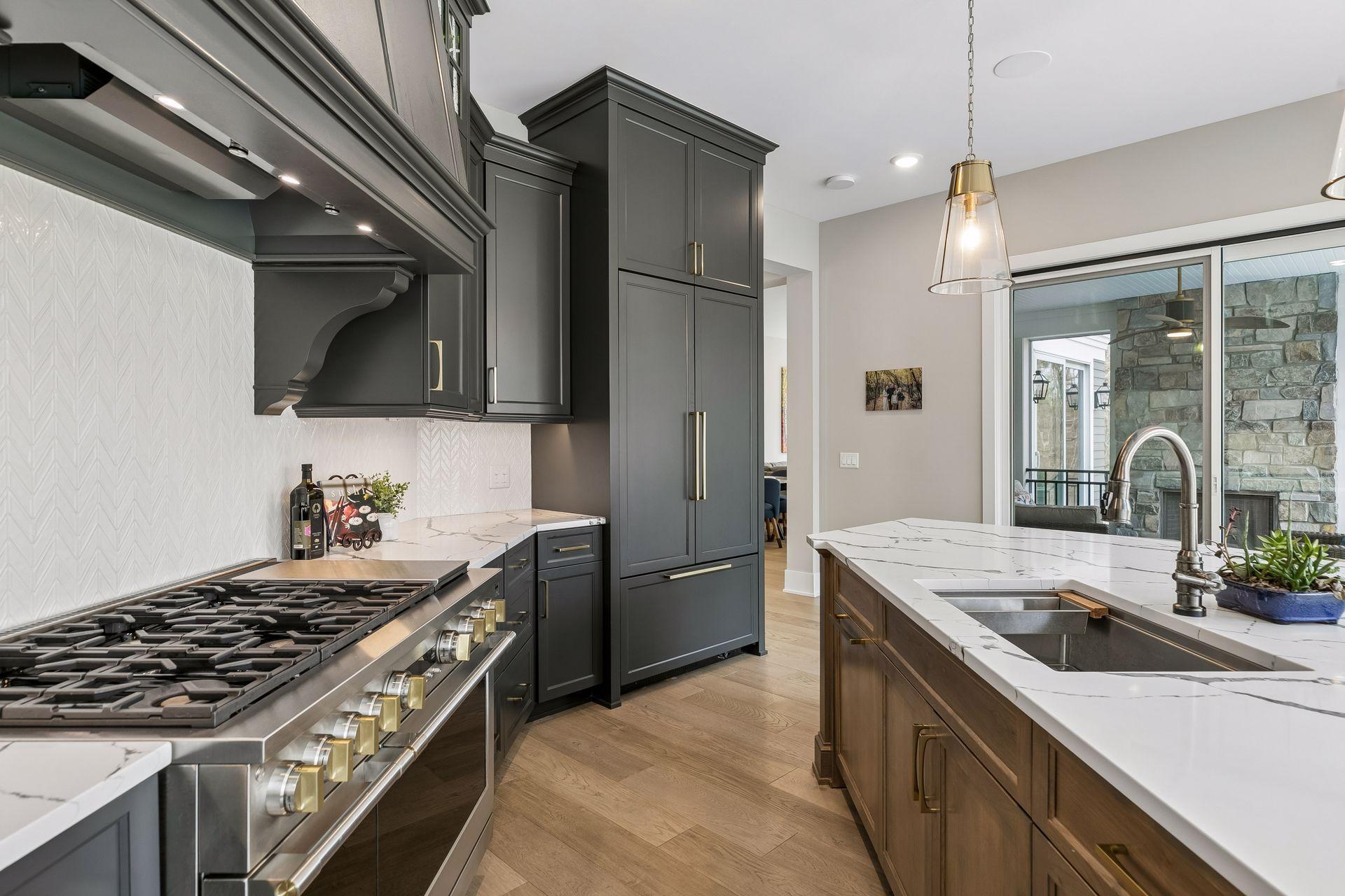 A remarkable Charles Cudd masterpiece set on 10 wooded acres in the beautiful community of Afton, tucked away on a quiet cul-de-sac and surrounded by nature with your own private pond. As you approach the property, the home makes an unforgettable first impression. Large stone trap rock accents line the circular driveway, leading to a stunning custom water fountain and setting the stage for the craftsmanship that awaits inside. The interior showcases exceptional architectural detail and superior craftsmanship, including wide-plank white oak floors, tall base moldings and casings, striking beamed ceilings, and enormous picture windows that flood the home with natural light while framing the peaceful landscape. At the heart of the home is a gourmet kitchen designed for both everyday living and entertaining, featuring a commercial-grade Monogram gas range, quartz countertops, tile backsplash, custom cabinetry, and an expansive walk-in pantry that functions as a secondary kitchen. Just beyond is a beautiful screen porch with fireplace, tile flooring, and under decking, creating a perfect space to enjoy the surrounding woods in every season. The main level offers an abundance of spaces designed for gathering and entertaining, including an oversized great room with fireplace, a private office with custom built-ins, and an open dining room that flows seamlessly into the great room. Off the kitchen, a sunroom that overlooks the pool and into the spectacular 40x23 two-story sport court, an incredible feature for recreation and year-round activity. The thoughtfully designed mudroom includes a separate custom cubby room, providing built-in storage sections for each family member along with an additional walk-in closet for organization and convenience. Upstairs, you’ll find four expansive bedroom suites, each with its own private bathroom and large walk-in closet. The primary suite is a true retreat, featuring a fireplace, coffee station, custom closet with island, a dedicated changing room with built-in cabinetry, and a spa-inspired bathroom with heated floors, soaking tub, and a spacious walk-in shower. The generously sized upper-level laundry room is conveniently located just off the primary suite. Two additional loft spaces provide areas for study and creativity, complete with built-in desks and a dedicated piano/music area. The walkout lower-level features heated floors and extensive unfinished space, ready to be customized into your dream entertainment area, with a designated space already planned for a golf simulator. Just outside awaits a spectacular 25x50 saltwater pool with water jets, creating a private outdoor retreat. For the car enthusiast, the heated garage is truly extraordinary, accommodating six vehicles on the main level and six additional vehicles in the lower garage, with ready-to-install EV charging capability. With multiple HVAC zones providing perfectly controlled temperatures throughout, this new construction home offers an unparalleled combination of luxury, recreation, privacy, and serenity—a one-of-a-kind offering in the scenic community of Afton.