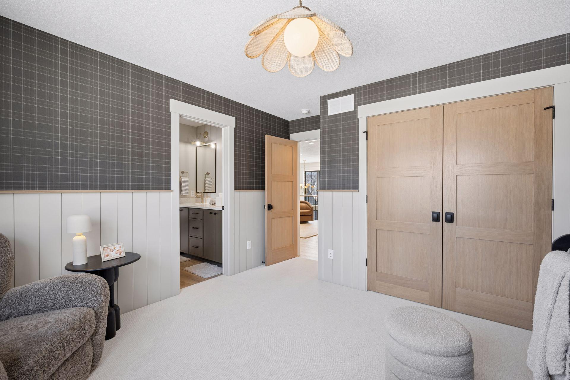 Stonegate Builders proudly presents the FREMONT floorplan! Featuring over 5,000 square feet of exceptional design, perfect for family living. Earthy design elements enhance the open concept main level, featuring a dining room, a gourmet kitchen with oversized island and prep kitchen, a vaulted sunroom, and great room with fireplace. The mudroom, powder bath, and pocket office are conveniently located off the prep kitchen. The upper level includes a luxurious owner's suite with soaking tub, tile shower, and walk-in closet. Bedrooms 2 & 3 share a Jack & Jill bath, while the 4th bedroom boasts an ensuite bath, ideal for guests. A spacious loft completes the upper level. The lower level is designed for entertainment, with a rec room with fireplace, game room, wet bar, exercise room, guest bedroom and bath, and fully equipped golf simulator room! Elwell Farms is a beautifully designed community spanning over 515 acres, bordering Carlos Avery Wildlife Management Area. With 106 homesites, there are diverse options for you to build the home of your dreams, in your dream setting. Elwell Farms offers private, luxury, acreage homesites with community amenities such as activities park, pickleball and basketball courts, wilderness trails, pool and clubhouse, fishing pier and more! ASK ABOUT EARLY START BUILDER/LENDER INCENTIVE - AVAILABLE FOR A LIMITED TIME!