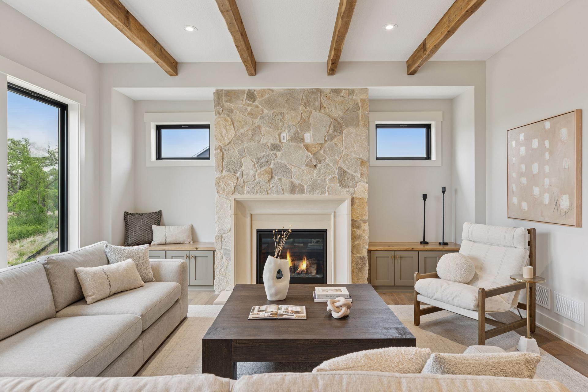 Stonegate Builders presents the Nokomis floorplan. APPROXIMATE COMPLETION DATE LATE SUMMER 2026! Featuring 5 bedrooms / 5 bathrooms / 4 car garage, including gourmet kitchen, luxury owners' bath, 10' ML ceilings, insulated/heated garage, vaulted sunroom, low maintenance grill deck, athletic court, wet bar, 8' interior doors, custom cabinets, main and lower level fireplaces, black Andersen windows, and more. Meticulous attention to detail in fit and finishes. This home is nestled on a quiet street on a 1.22 acre lot in the new ELWELL FARMS development. Elwell Farms is a beautifully designed community spanning over 515 acres, bordering Carlos Avery Wildlife Management Area. With 106 homesites, there are diverse options for you to build the home of your dreams, in your dream setting. Elwell Farms offers private, luxury, acreage homesites with community amenities such as activities park, pickleball and basketball courts, wilderness trails, pool and clubhouse, fishing pier and more! ASK ABOUT EARLY START BUILDER/LENDER INCENTIVE - AVAILABLE FOR A LIMITED TIME!