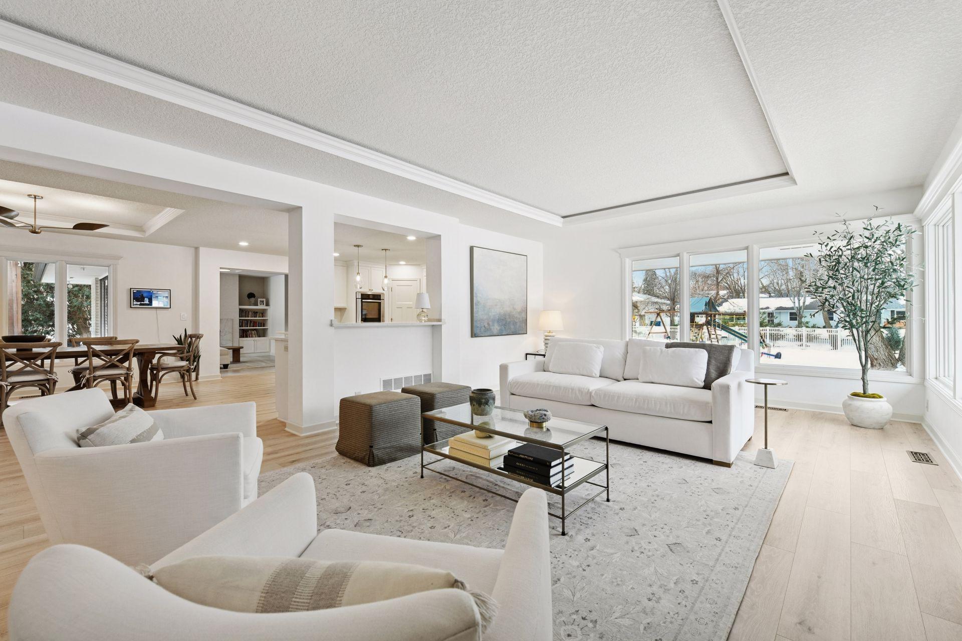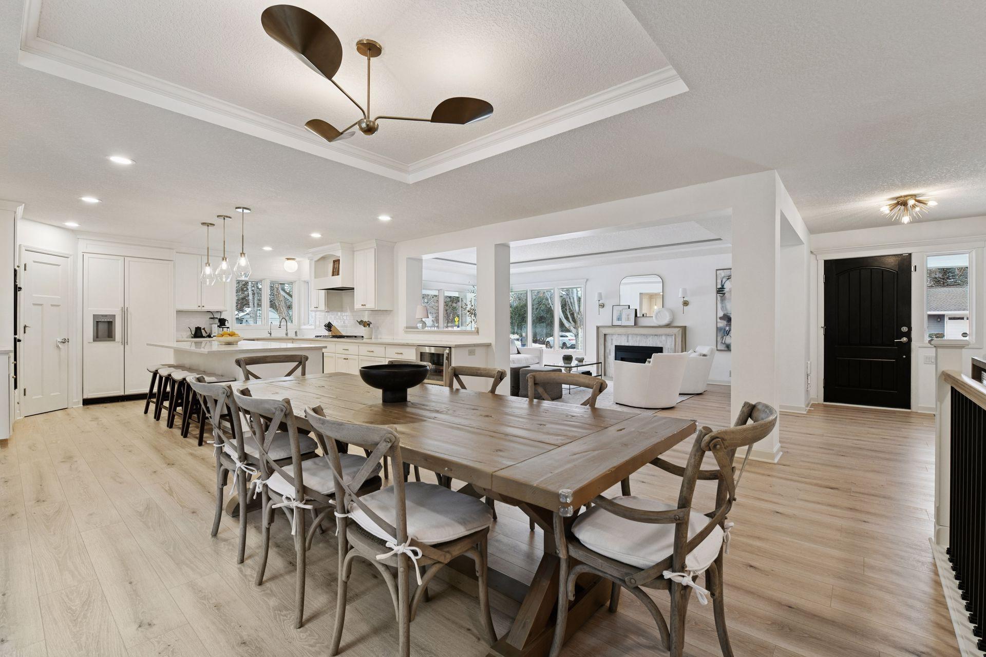 Introducing 14 Woodland Road, located in the sought-after Minnehaha Woods neighborhood of Edina, Minnesota. This elegant rambler has been beautifully updated and offers 5,192 square feet of thoughtfully designed living space. The layout is ideal for both everyday living and entertaining, with seamless flow between the living room, dining room and kitchen. The main floor offers true one-level living with three bedrooms, three bathrooms, and a laundry room. The spacious primary suite features a large private bathroom and generous walk-in closet. The lower level is designed for entertaining and relaxation, featuring a renovated family room with fireplace, new wet bar, home office, exercise room, and guest bedroom with adjacent three-quarter bathroom. Impeccably maintained and finished with stunning details throughout, this Edina masterpiece has it all. Enjoy a walkable location near Concord Elementary, South View Middle School, Edina Community Center, Arden Park, 50th & France shopping district, and all that East Edina has to offer.