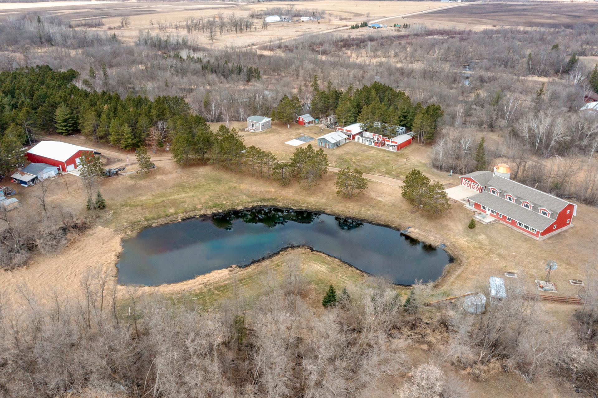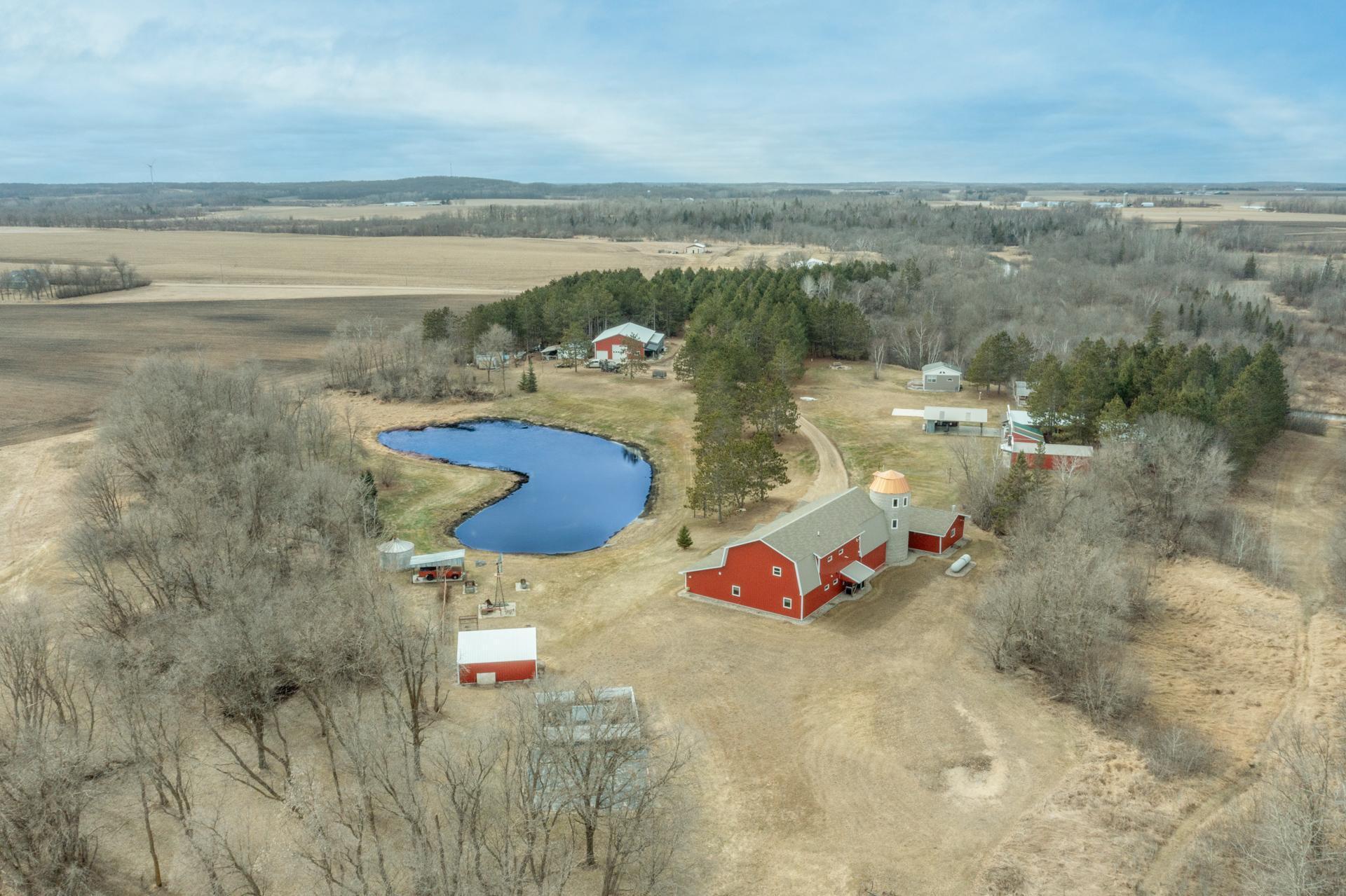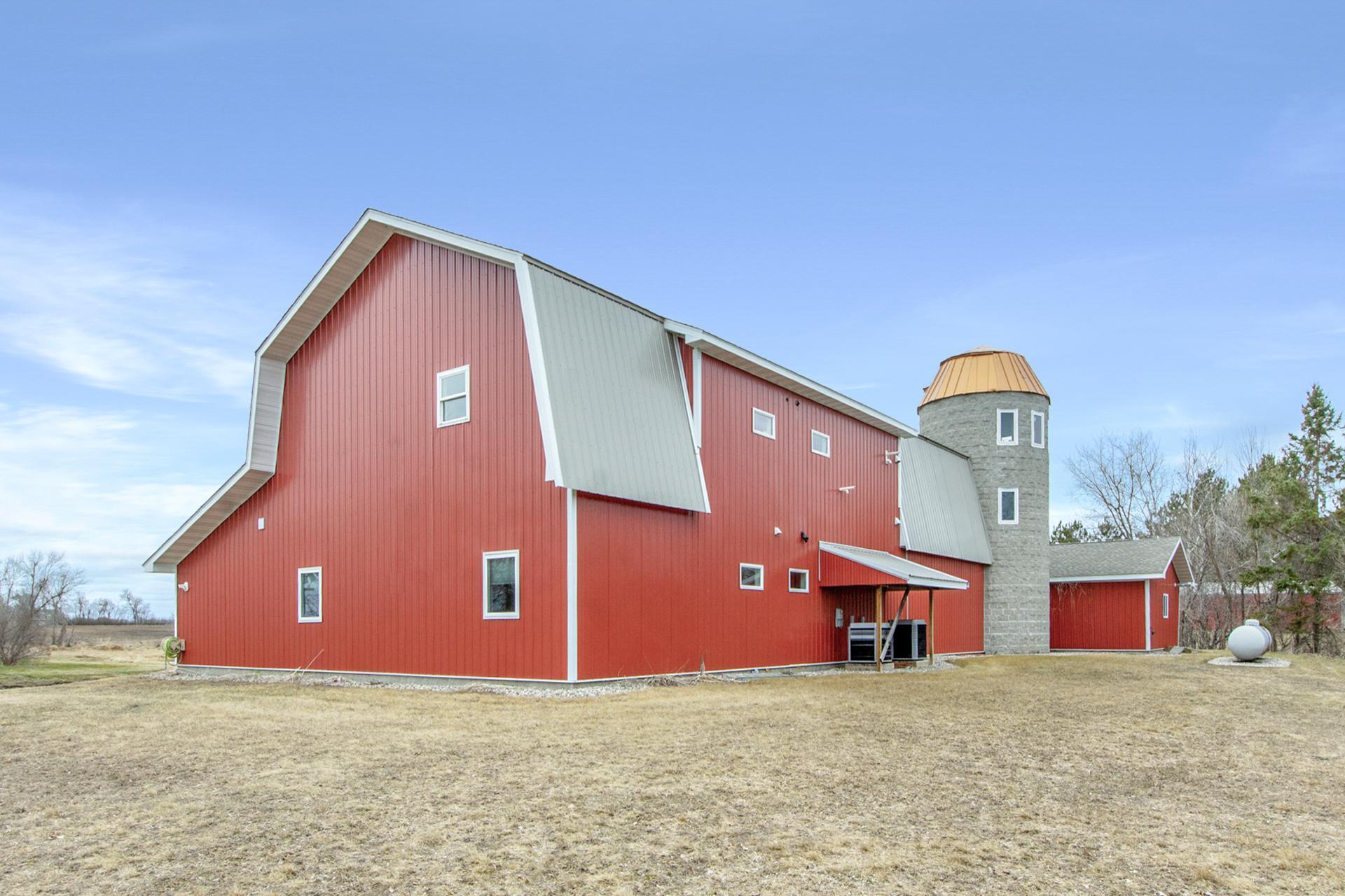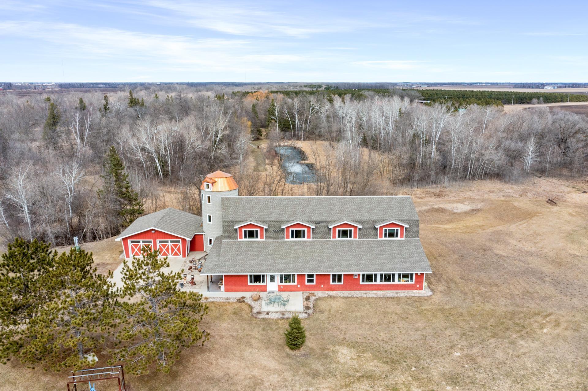 This 20-acre Wing River estate offers a 6,100 sq ft custom home with a unique village style cluster of accessory buildings. The main home offers 4 bedrooms and 4 bathrooms, crafted with exceptional detail using repurposed materials and local historic elements. The inviting farmhouse kitchen blends rustic charm with modern elegance. Granite countertops provide a durable, high-end surface, beautifully contrasted by the weathered finish cabinetry that adds warmth and character to the space. The spacious primary suite includes its own sunroom overlooking the beautifully landscaped backyard, plus a private bathroom with granite leather countertops and a walk-in ceramic tile shower. The expansive 28' x 72' upper level, is perfect for large gatherings/parties and comfortably seats up to 100 guests. This space includes a full kitchen, walk-in pantry, and separate his and her bathrooms. A convenient, in home elevator may be used and provides effortless access to the upper level, making the home easily navigable for all ages and mobility needs. One of the home’s most distinctive highlights is the custom built silo that connects the house to the heated 2 car garage. Inside the silo, a third level room provides panoramic views of the pond and surrounding acreage. The village-style buildings include: cantina with full kitchen, booths, and bathroom; outdoor party shelter with full kitchen and surround sound, perfect for gatherings; bunkhouse with 7 bedrooms, laundry, and bathroom; schoolhouse complete with desks, chalkboard, and school bell; movie theater with projector screen, couches, and snack lobby area. This property creates an unmatched opportunity for a private retreat, multi generational living, vacation rental income, or a ready made foundation for an event center. Also located on the property is a seasonal home featuring bedroom and loft area, ¾ bathroom with a slate tile walk-in shower, WiFi, 7x8 deck and wonderful views of the Wing River. An excellent option for guest lodging or short term rental income! Nearby, you’ll find a charming treehouse, additional storage shed and a custom canning house with appliances and countertops adding even more versatility to the property. The impressive 48' x 80' heated workshop with a 12x12 overhead door offers a private office with a full kitchen, tool room, bathroom and built-in work bench. The upper-level sleeping quarters can be used for “deer camp” or large family gatherings and provides substantial storage space. From the serene river setting to the unmatched amenities, this estate delivers a rare combination of comfort and creativity. Whether used as a private homestead, entertainment venue, tourist attraction or retreat destination....this property must be seen to be appreciated!