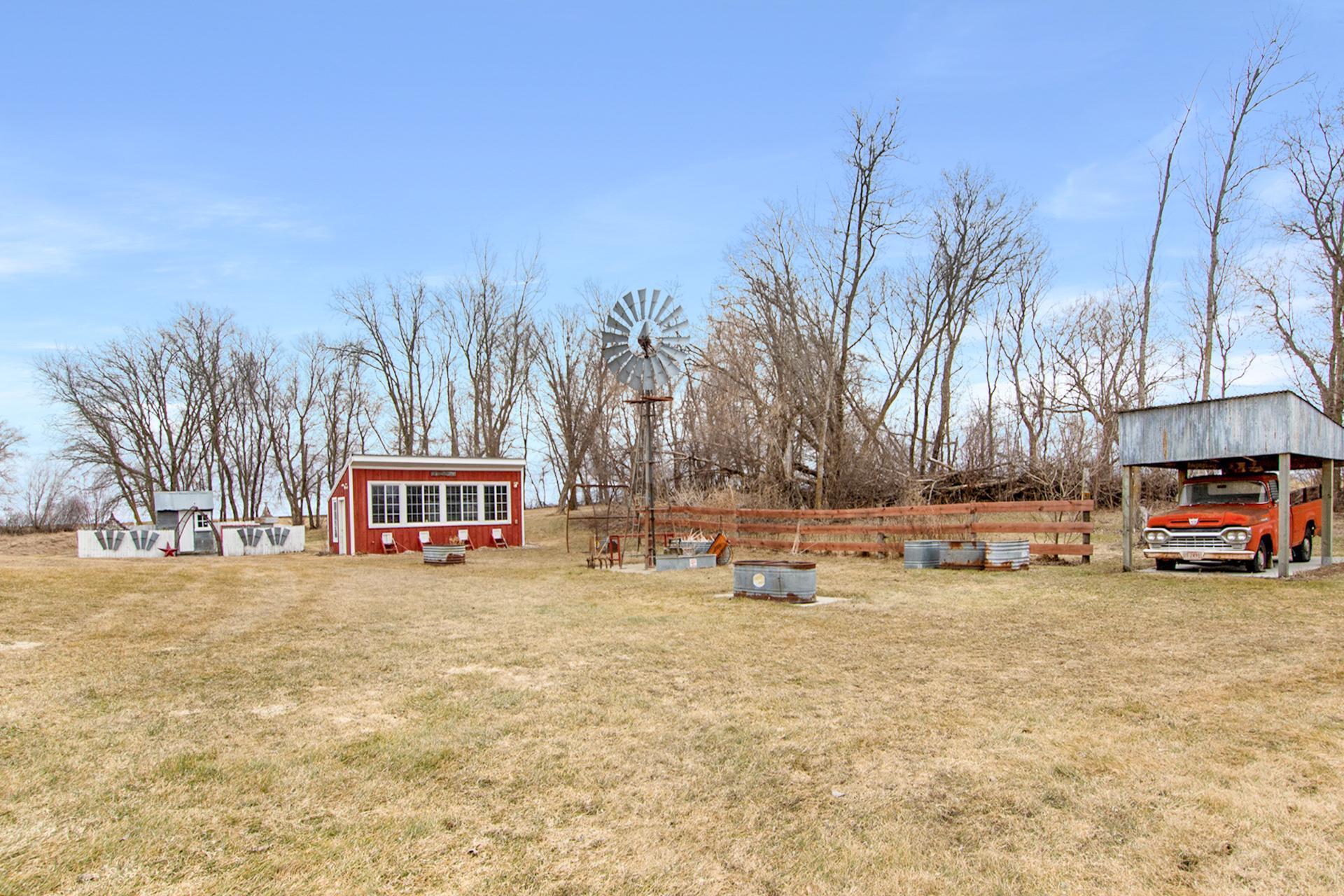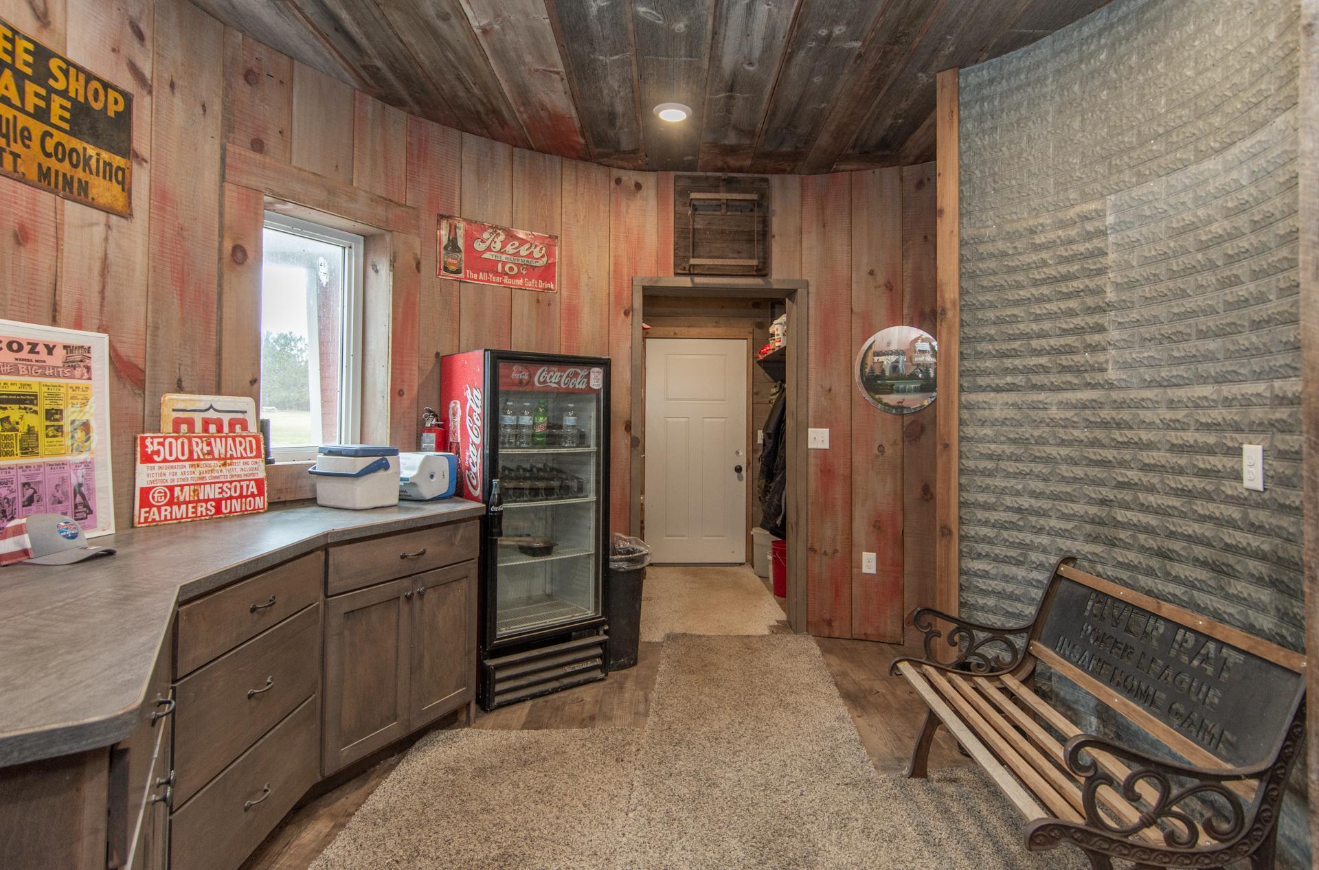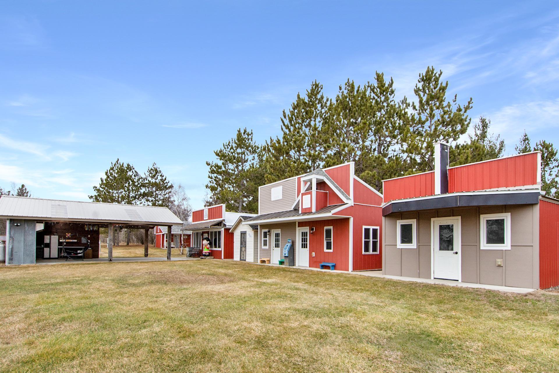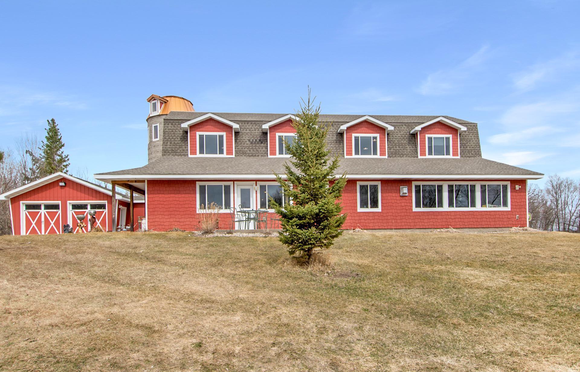 This 20-acre Wing River estate offers a 6,100 sq ft custom home with a unique village style cluster of accessory buildings. The main home offers 4 bedrooms and 4 bathrooms, crafted with exceptional detail using repurposed materials and local historic elements. The inviting farmhouse kitchen blends rustic charm with modern elegance. Granite countertops provide a durable, high-end surface, beautifully contrasted by the weathered finish cabinetry that adds warmth and character to the space. The spacious primary suite includes its own sunroom overlooking the beautifully landscaped backyard, plus a private bathroom with granite leather countertops and a walk-in ceramic tile shower. The expansive 28' x 72' upper level, is perfect for large gatherings/parties and comfortably seats up to 100 guests. This space includes a full kitchen, walk-in pantry, and separate his and her bathrooms. A convenient, in home elevator may be used and provides effortless access to the upper level, making the home easily navigable for all ages and mobility needs. One of the home’s most distinctive highlights is the custom built silo that connects the house to the heated 2 car garage. Inside the silo, a third level room provides panoramic views of the pond and surrounding acreage. The village-style buildings include: cantina with full kitchen, booths, and bathroom; outdoor party shelter with full kitchen and surround sound, perfect for gatherings; bunkhouse with 7 bedrooms, laundry, and bathroom; schoolhouse complete with desks, chalkboard, and school bell; movie theater with projector screen, couches, and snack lobby area. This property creates an unmatched opportunity for a private retreat, multi generational living, vacation rental income, or a ready made foundation for an event center. Also located on the property is a seasonal home featuring bedroom and loft area, ¾ bathroom with a slate tile walk-in shower, WiFi, 7x8 deck and wonderful views of the Wing River. An excellent option for guest lodging or short term rental income! Nearby, you’ll find a charming treehouse, additional storage shed and a custom canning house with appliances and countertops adding even more versatility to the property. The impressive 48' x 80' heated workshop with a 12x12 overhead door offers a private office with a full kitchen, tool room, bathroom and built-in work bench. The upper-level sleeping quarters can be used for “deer camp” or large family gatherings and provides substantial storage space. From the serene river setting to the unmatched amenities, this estate delivers a rare combination of comfort and creativity. Whether used as a private homestead, entertainment venue, tourist attraction or retreat destination....this property must be seen to be appreciated!