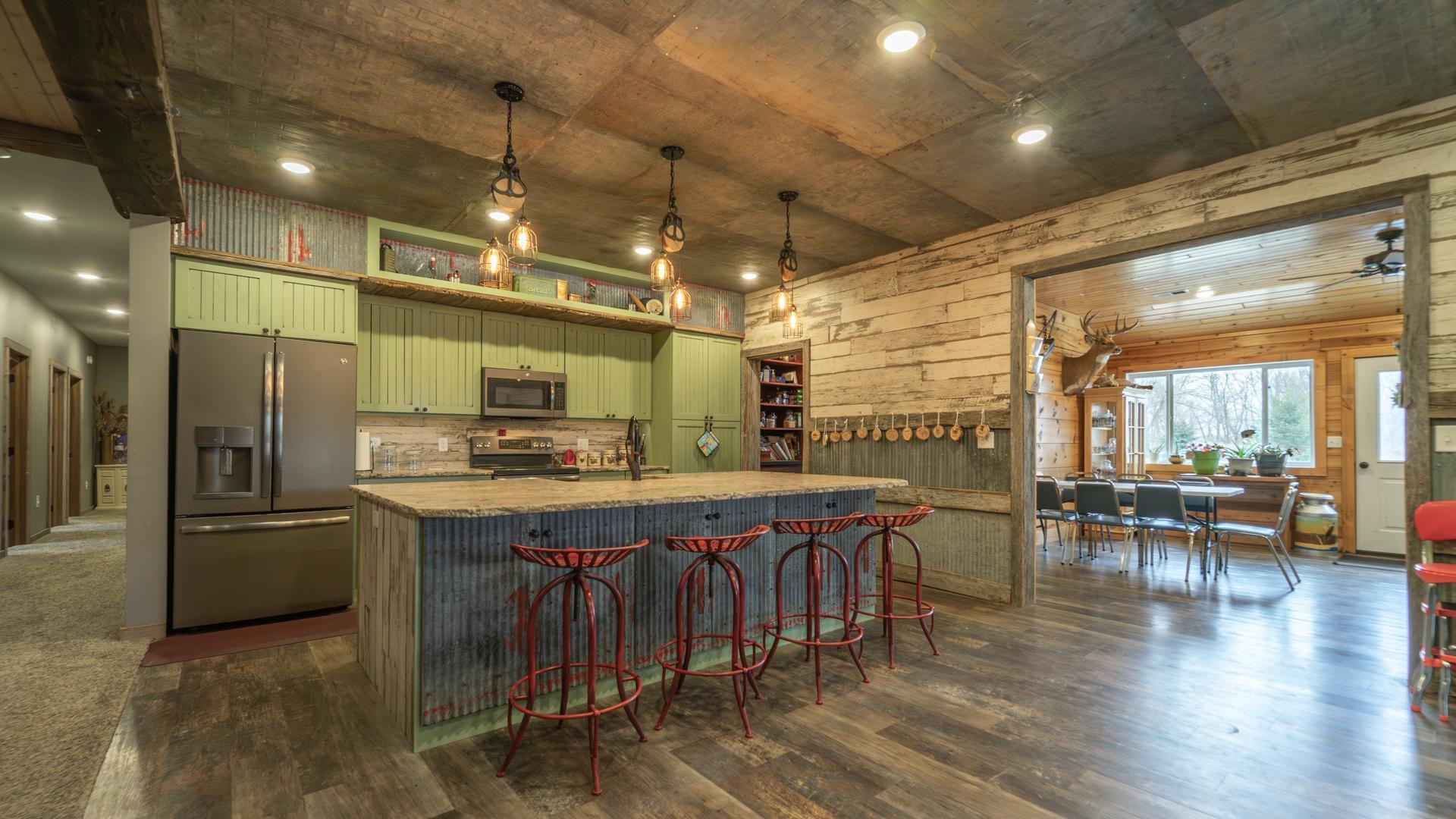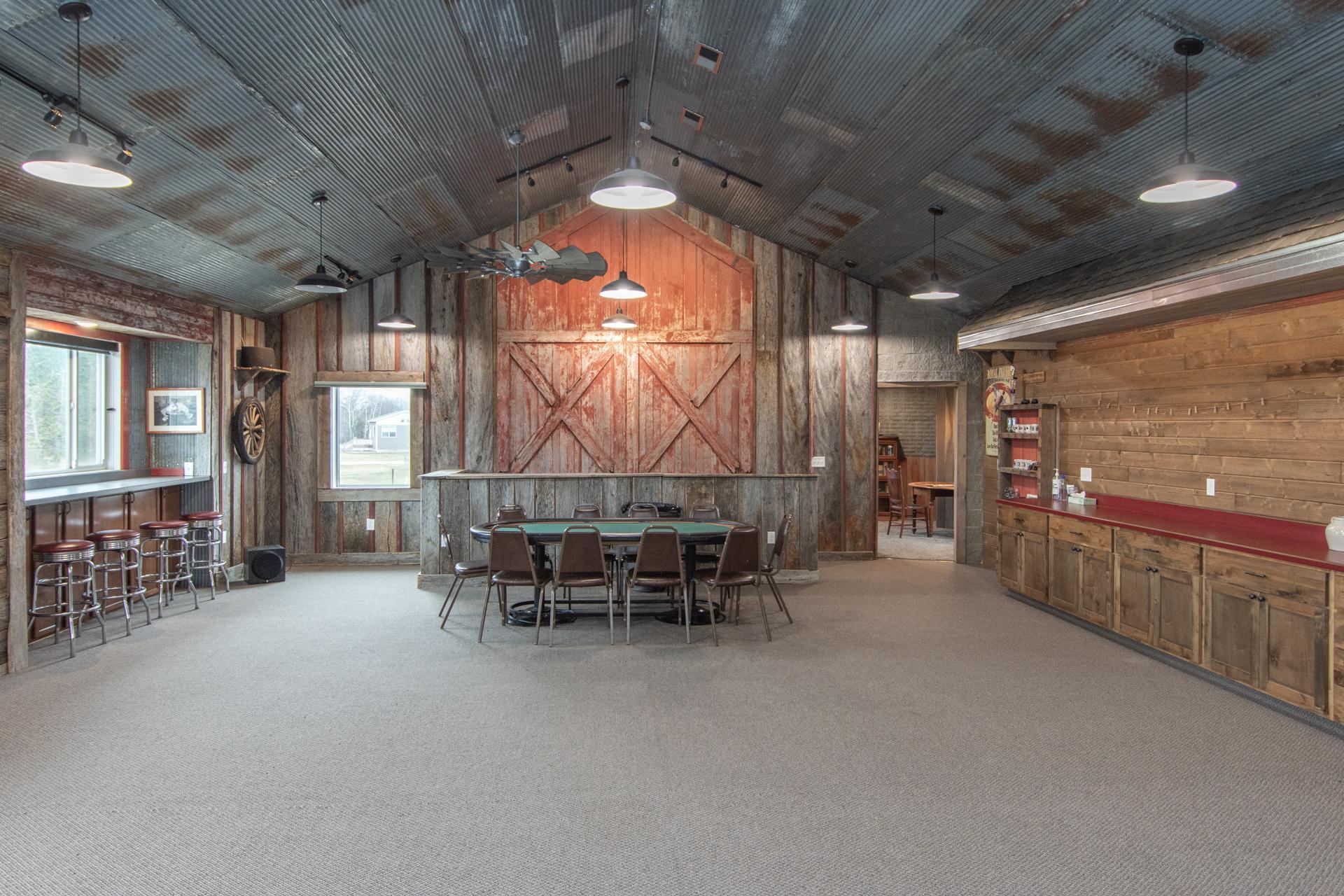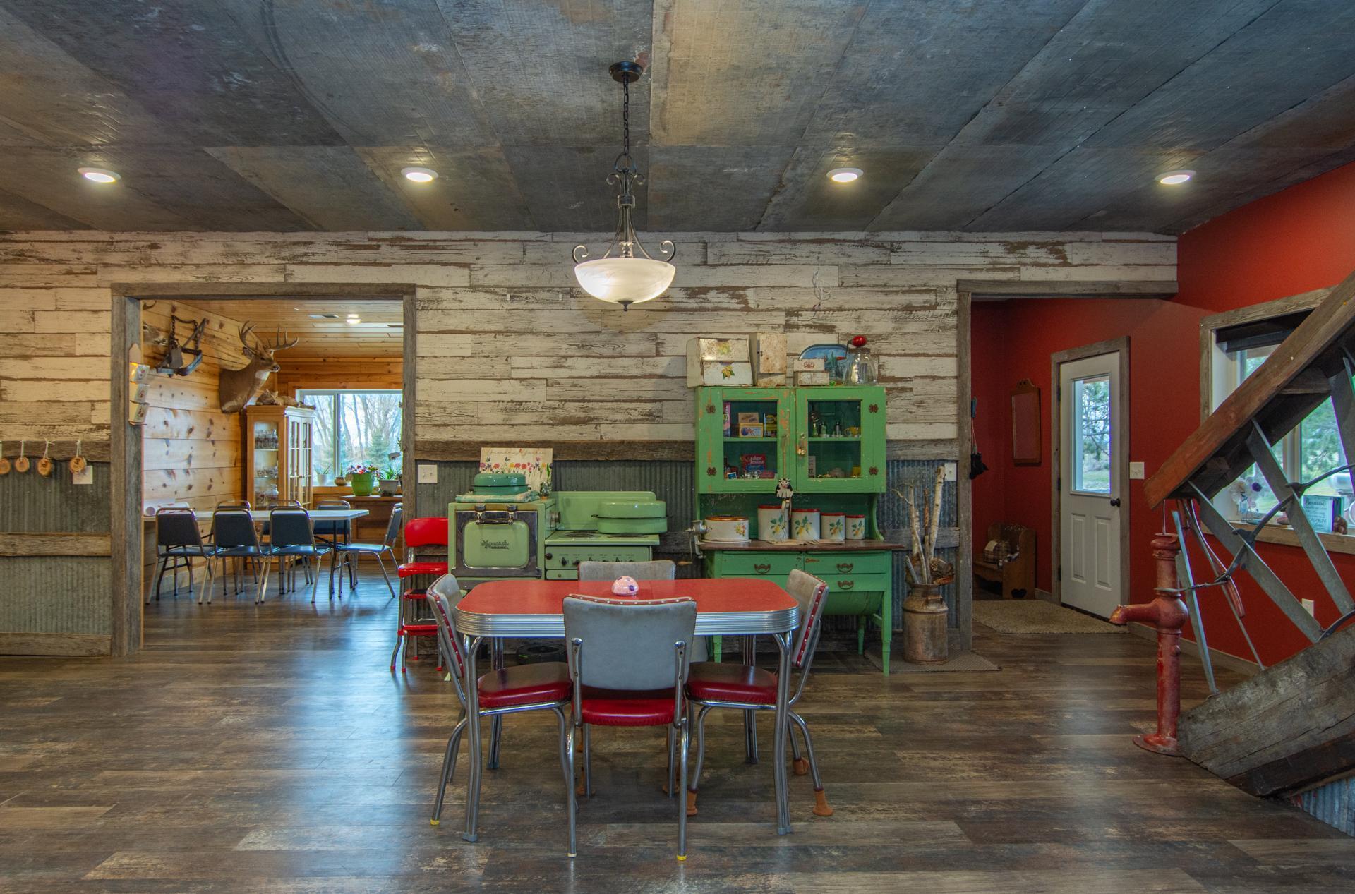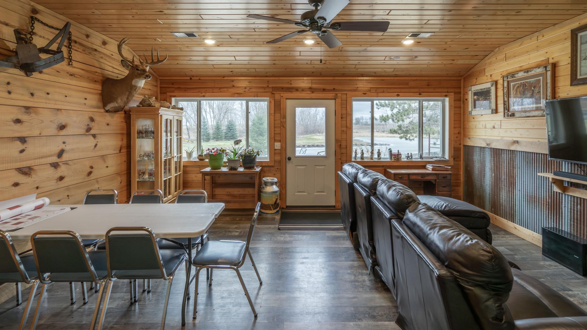 This 20-acre Wing River estate offers a 6,100 sq ft custom home with a unique village style cluster of accessory buildings. The main home offers 4 bedrooms and 4 bathrooms, crafted with exceptional detail using repurposed materials and local historic elements. The inviting farmhouse kitchen blends rustic charm with modern elegance. Granite countertops provide a durable, high-end surface, beautifully contrasted by the weathered finish cabinetry that adds warmth and character to the space. The spacious primary suite includes its own sunroom overlooking the beautifully landscaped backyard, plus a private bathroom with granite leather countertops and a walk-in ceramic tile shower. The expansive 28' x 72' upper level, is perfect for large gatherings/parties and comfortably seats up to 100 guests. This space includes a full kitchen, walk-in pantry, and separate his and her bathrooms. A convenient, in home elevator may be used and provides effortless access to the upper level, making the home easily navigable for all ages and mobility needs. One of the home’s most distinctive highlights is the custom built silo that connects the house to the heated 2 car garage. Inside the silo, a third level room provides panoramic views of the pond and surrounding acreage. The village-style buildings include: cantina with full kitchen, booths, and bathroom; outdoor party shelter with full kitchen and surround sound, perfect for gatherings; bunkhouse with 7 bedrooms, laundry, and bathroom; schoolhouse complete with desks, chalkboard, and school bell; movie theater with projector screen, couches, and snack lobby area. This property creates an unmatched opportunity for a private retreat, multi generational living, vacation rental income, or a ready made foundation for an event center. Also located on the property is a seasonal home featuring bedroom and loft area, ¾ bathroom with a slate tile walk-in shower, WiFi, 7x8 deck and wonderful views of the Wing River. An excellent option for guest lodging or short term rental income! Nearby, you’ll find a charming treehouse, additional storage shed and a custom canning house with appliances and countertops adding even more versatility to the property. The impressive 48' x 80' heated workshop with a 12x12 overhead door offers a private office with a full kitchen, tool room, bathroom and built-in work bench. The upper-level sleeping quarters can be used for “deer camp” or large family gatherings and provides substantial storage space. From the serene river setting to the unmatched amenities, this estate delivers a rare combination of comfort and creativity. Whether used as a private homestead, entertainment venue, tourist attraction or retreat destination....this property must be seen to be appreciated!