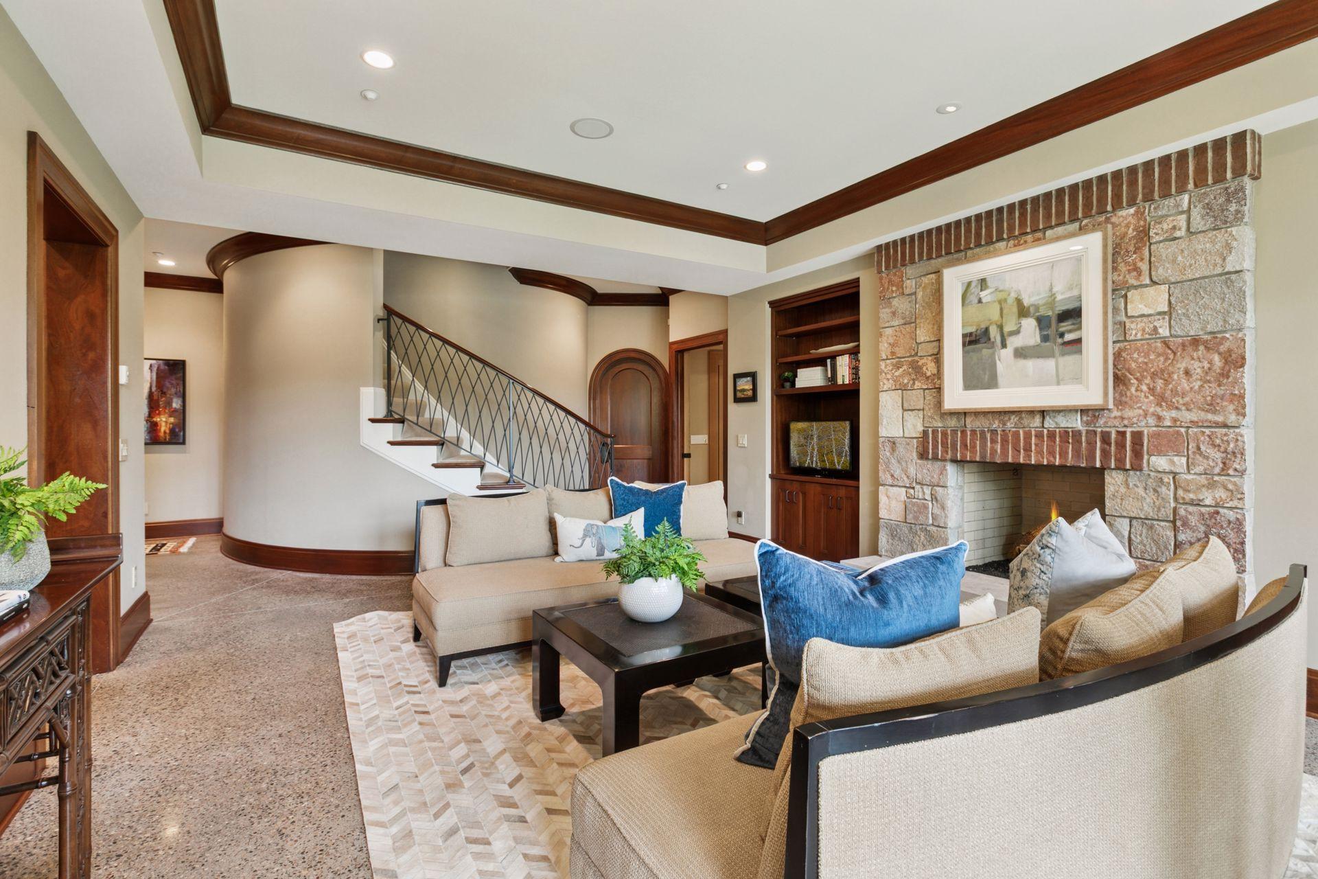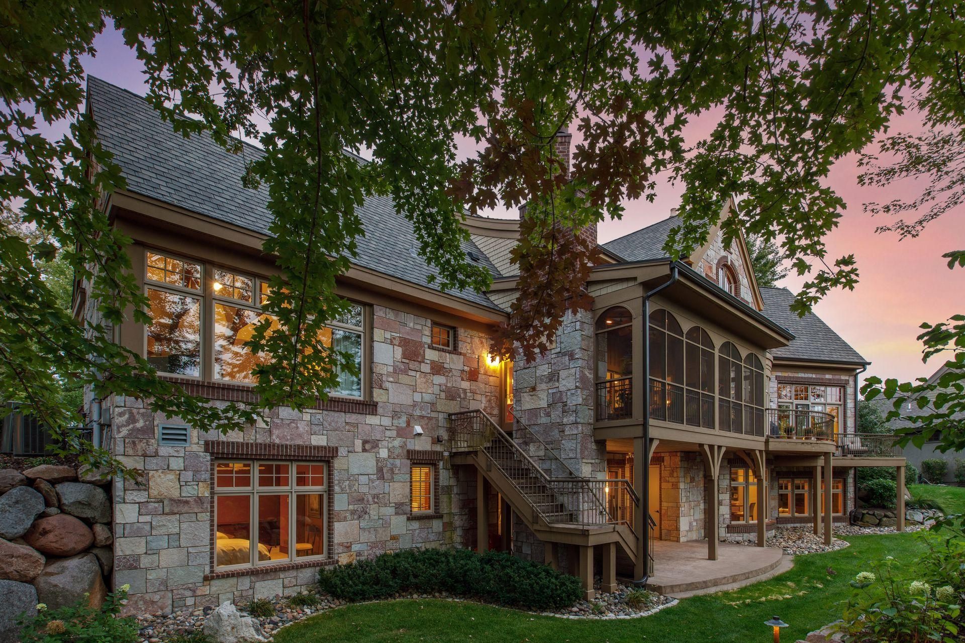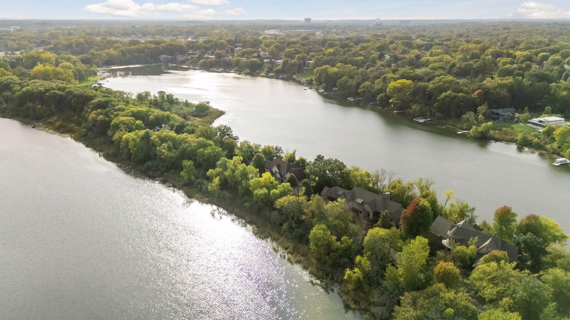 Golden Valley’s premiere location, Island Drive! Rarely available, a handful of fine homes with acreage boasting frontage on two lakes. Full recreation Sweeney offers skiing, paddle boarding, spectacular sunsets and amazing wildlife viewing; slip your canoe into east facing Hidden Lake to enjoy sunrises and full moons over Wirth Park. This extraordinary, stone and timber Kyle Hunt masterpiece has a timeless design and provides total privacy and lake views throughout. The two-story foyer and great room are simply magnificent. Finishes include rich mahogany millwork and ceilings, floor to ceiling stone fireplaces, stunning wood floors, terrazzo and Italian tiles. The dream Wolf/Subzero kitchen designed by and for a chef opens to a relaxing hearth room and the enchanting lakeside screened porch, perfect for summer dining. Escape to your private, main level owners’ quarters, beautifully appointed with cross timbers in the vaulted ceiling, luxurious spa-like bath, dressing room, and views of water and nature. A custom-designed laundry and expansive mud room open to the heated triple garage with 8’ doors. Up the soaring staircase is an amazing, lofted library and lounge with billiards, gorgeous wet bar and home office area overlooking Sweeney. Double French doors open to a balcony with stunning views. A newly finished wing includes two secondary bedrooms and two baths. High ceilings and custom finishes on the lakeside walkout level welcome you to a second family room with fireplace, new 24x23 home theatre, wine cellar, 2nd bar, changing room/bath/sauna for coming in from the lake, 2nd laundry, and two spacious Jack and Jill bedrooms/bath. Mechanicals are superb, including new furnaces, AC’s and boiler for heated tile floors. Brand new state-of-the-art roof. Walk or bike directly onto Wirth Park’s trails; skate, snow ski and play on the lakes in winter. 5-7 minutes to Breck, downtown restaurants and sporting events. It doesn’t get better than this!