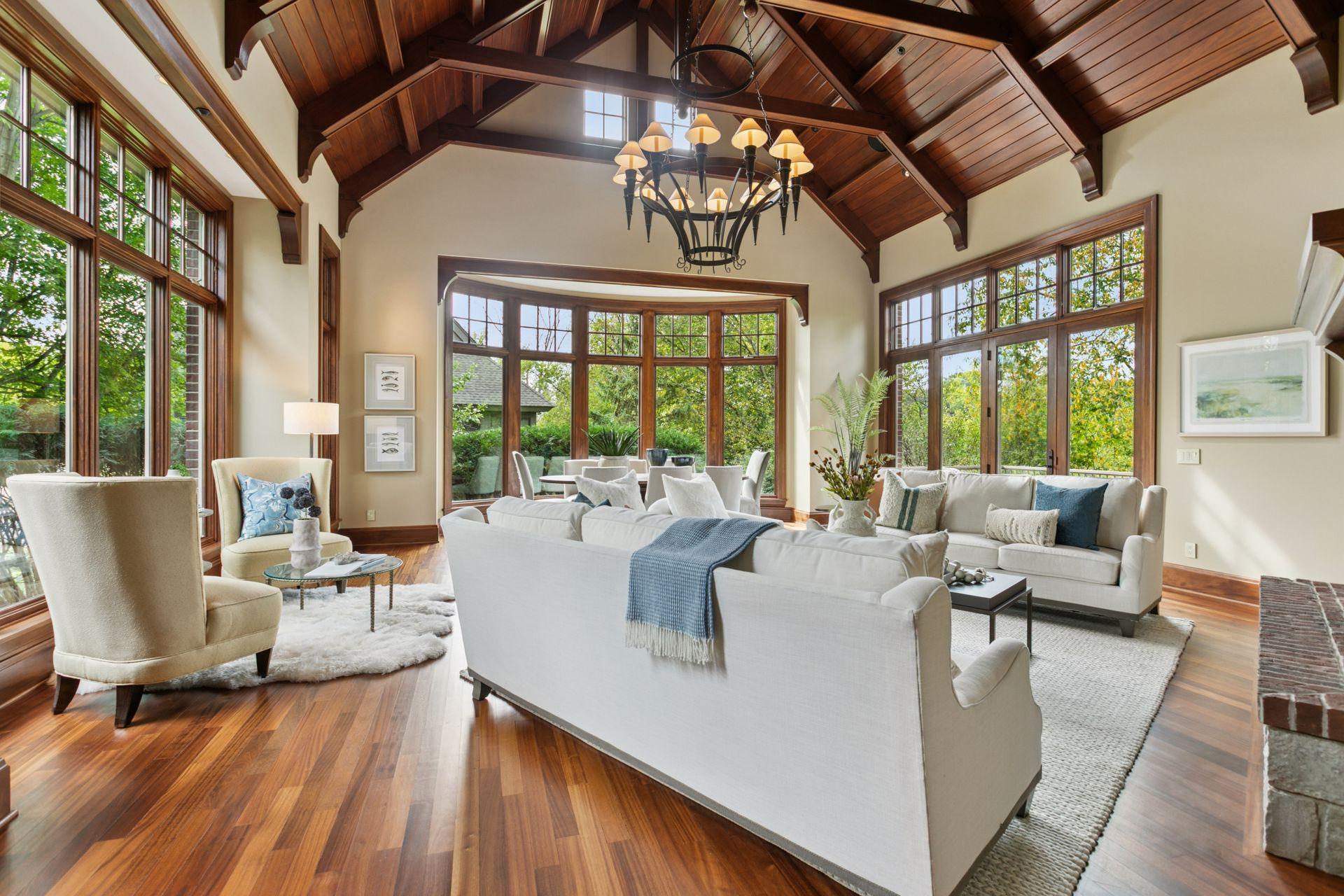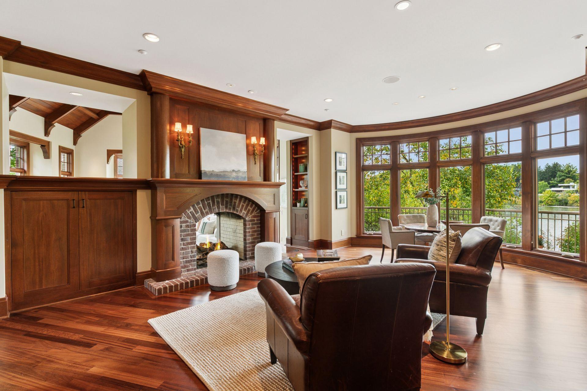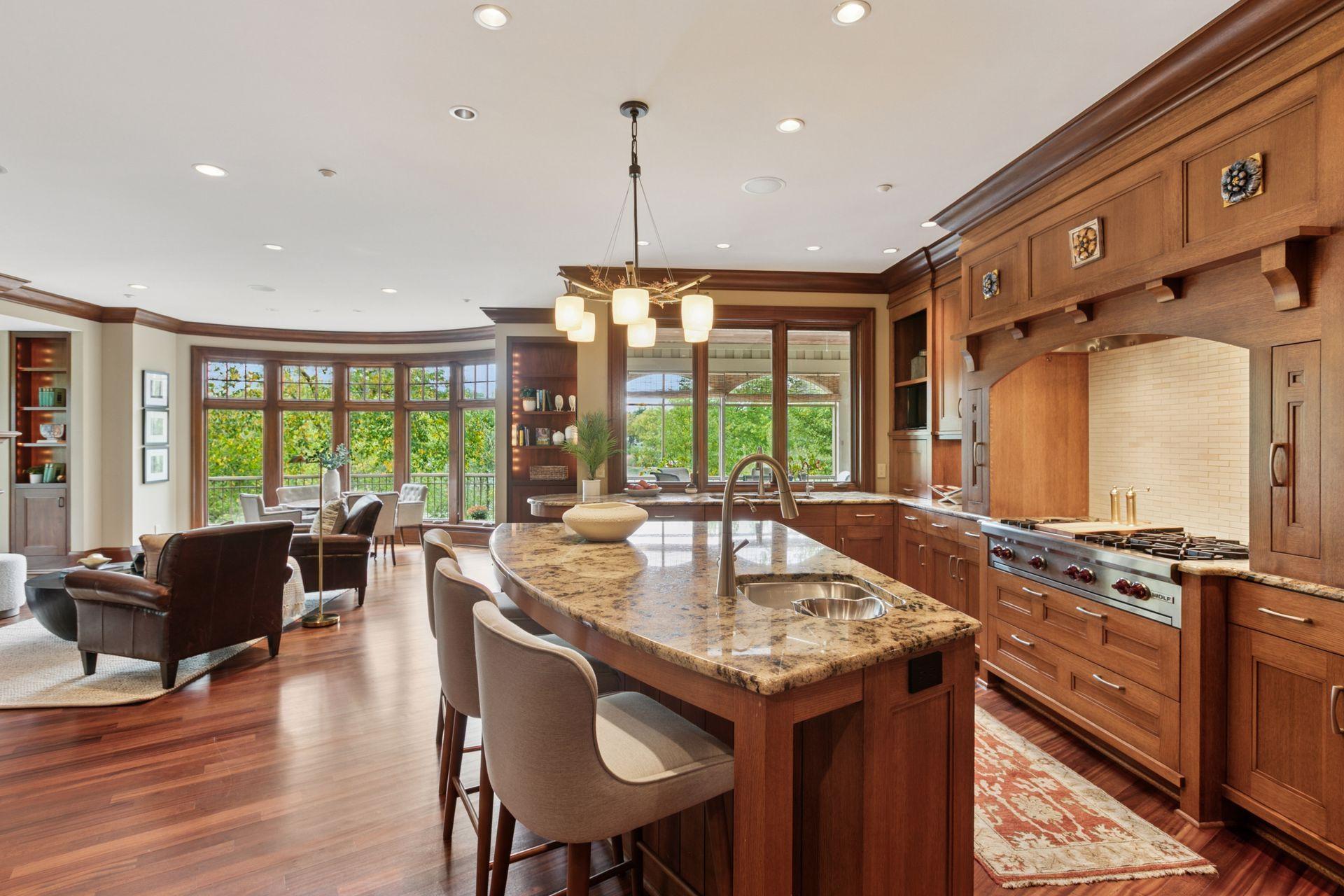 Golden Valley’s premiere location, Island Drive! Rarely available, a handful of fine homes with acreage boasting frontage on two lakes. Full recreation Sweeney offers skiing, paddle boarding, spectacular sunsets and amazing wildlife viewing; slip your canoe into east facing Hidden Lake to enjoy sunrises and full moons over Wirth Park. This extraordinary, stone and timber Kyle Hunt masterpiece has a timeless design and provides total privacy and lake views throughout. The two-story foyer and great room are simply magnificent. Finishes include rich mahogany millwork and ceilings, floor to ceiling stone fireplaces, stunning wood floors, terrazzo and Italian tiles. The dream Wolf/Subzero kitchen designed by and for a chef opens to a relaxing hearth room and the enchanting lakeside screened porch, perfect for summer dining. Escape to your private, main level owners’ quarters, beautifully appointed with cross timbers in the vaulted ceiling, luxurious spa-like bath, dressing room, and views of water and nature. A custom-designed laundry and expansive mud room open to the heated triple garage with 8’ doors. Up the soaring staircase is an amazing, lofted library and lounge with billiards, gorgeous wet bar and home office area overlooking Sweeney. Double French doors open to a balcony with stunning views. A newly finished wing includes two secondary bedrooms and two baths. High ceilings and custom finishes on the lakeside walkout level welcome you to a second family room with fireplace, new 24x23 home theatre, wine cellar, 2nd bar, changing room/bath/sauna for coming in from the lake, 2nd laundry, and two spacious Jack and Jill bedrooms/bath. Mechanicals are superb, including new furnaces, AC’s and boiler for heated tile floors. Brand new state-of-the-art roof. Walk or bike directly onto Wirth Park’s trails; skate, snow ski and play on the lakes in winter. 5-7 minutes to Breck, downtown restaurants and sporting events. It doesn’t get better than this!