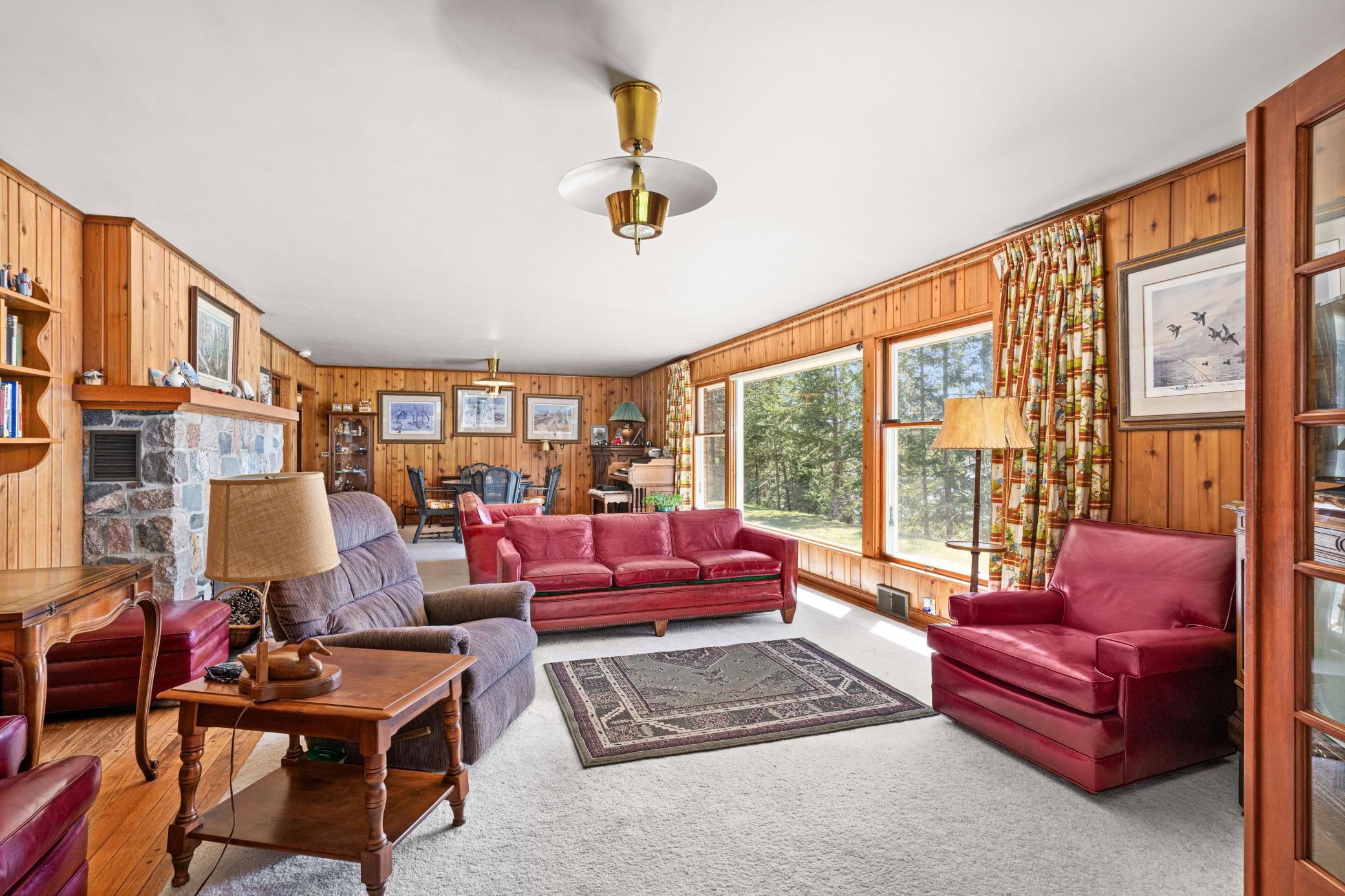 Rare Crooked Lake Estate- Lakefront Home on 43 Wooded Acres. This one-of-a-kind property on beautiful Crooked Lake offers the perfect blend of lakefront living, rustic charm, and outdoor recreation. Set on 8.3 private acres, the lakeside property features 1,484 feet of shoreline, West facing for beautiful sunsets, well-maintained main home, a charming original log cabin with stone fireplace, and a variety of outbuildings—all surrounded by serene woods. Across the street, an additional 35 wooded acres provide excellent hunting, hiking, and future potential, making this a dream location for outdoor enthusiasts. The lakeside property includes: • A 100-year-old original log cabin (approx. 400 sq. ft.) with hand-scribed logs and a cozy wood-burning fireplace—full of rustic charm and perfect for guest quarters or a private getaway. • A rambler-style home built in 1956 offering 4 bedrooms, 3.5 bathrooms, and a spacious layout with a large 3-season porch to enjoy sweeping views of the lake. • A 40’ x 60’ pole building, large, detached garage, and several other outbuildings. • A long-paved driveway. Enjoy outstanding fishing right from your own shoreline—with plentiful crappie, bluegill, and northern pike—or head into the woods for excellent hunting on the 35-acre parcel. Both the main house and the cabin are clean, well-maintained, and move-in ready. Whether you’re looking for a year-round residence, family retreat, or recreational haven, this property offers unmatched potential and privacy. Truly a special and rare opportunity to own a legacy estate on one of the area’s most peaceful lakes.