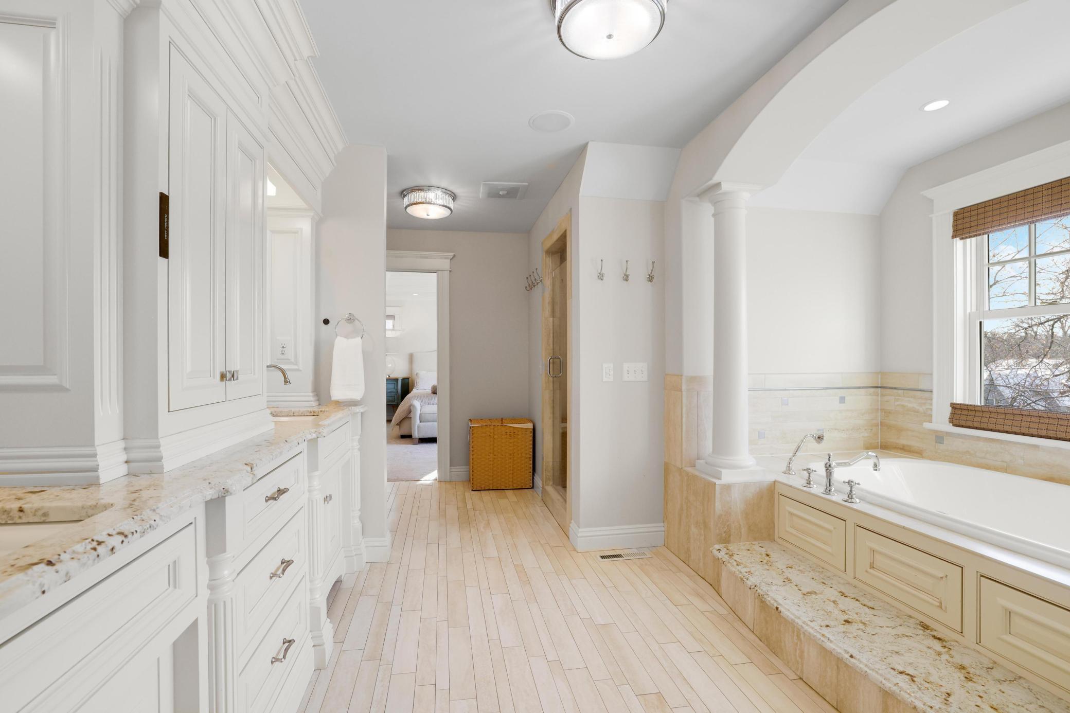 A rare opportunity to experience the coveted Creek-Side lifestyle of East Edina. Welcome to an architectural masterpiece where the tranquility of Minnehaha Creek meets the sophisticated pulse of East Edina. Situated high on the coveted creek's East bank sits this gracious 2011 custom-built home that offers front-row seats to nature’s theater, with expansive sunset views, 77 feet of restored shoreline and terraced yard access. Whether it’s a lazy summer afternoon floating down the creek or a crisp evening gathered around the fire pit, this home is designed for those who value both privacy and connection. Inside, the main level unfolds with an air of effortless elegance. A true chef’s kitchen serves as the home's heart, featuring a massive center island and a discreet butler’s pantry for flawless entertaining. Retreat upstairs to a rare sanctuary: four spacious bedrooms, each boasting its own private en-suite bathroom and walk-in closet - an uncompromising standard of luxury for everyone. The walk-out lower level transitions into a dedicated wellness hub, complete with a large sauna, full wet bar, and social game space. Further refinement is found with walnut & cherry hardwood floors and built-ins, fresh designer barrel ceilings, new carpet, modern fixtures, $150K in new landscaping, pavers, gutter drainage, shoreline restoration, new deck sunshade and hot-tub ready patio- detailed finishes that withstand the trends. A turnkey residence just moments from the premier dining of 50th & France, the serenity of Arden Park, Southdale/ Galleria malls & hospital, plus MSP airport and downtown are a quick and easy commute- discover the remarkable creek-side lifestyle.