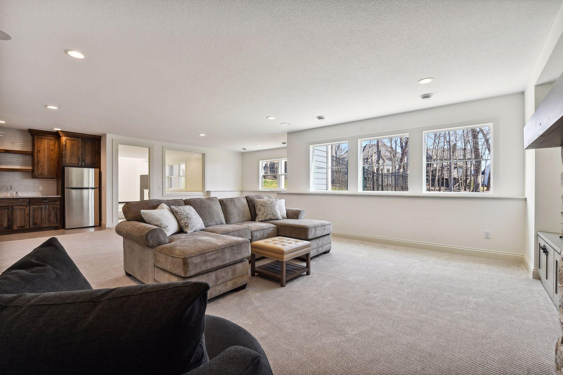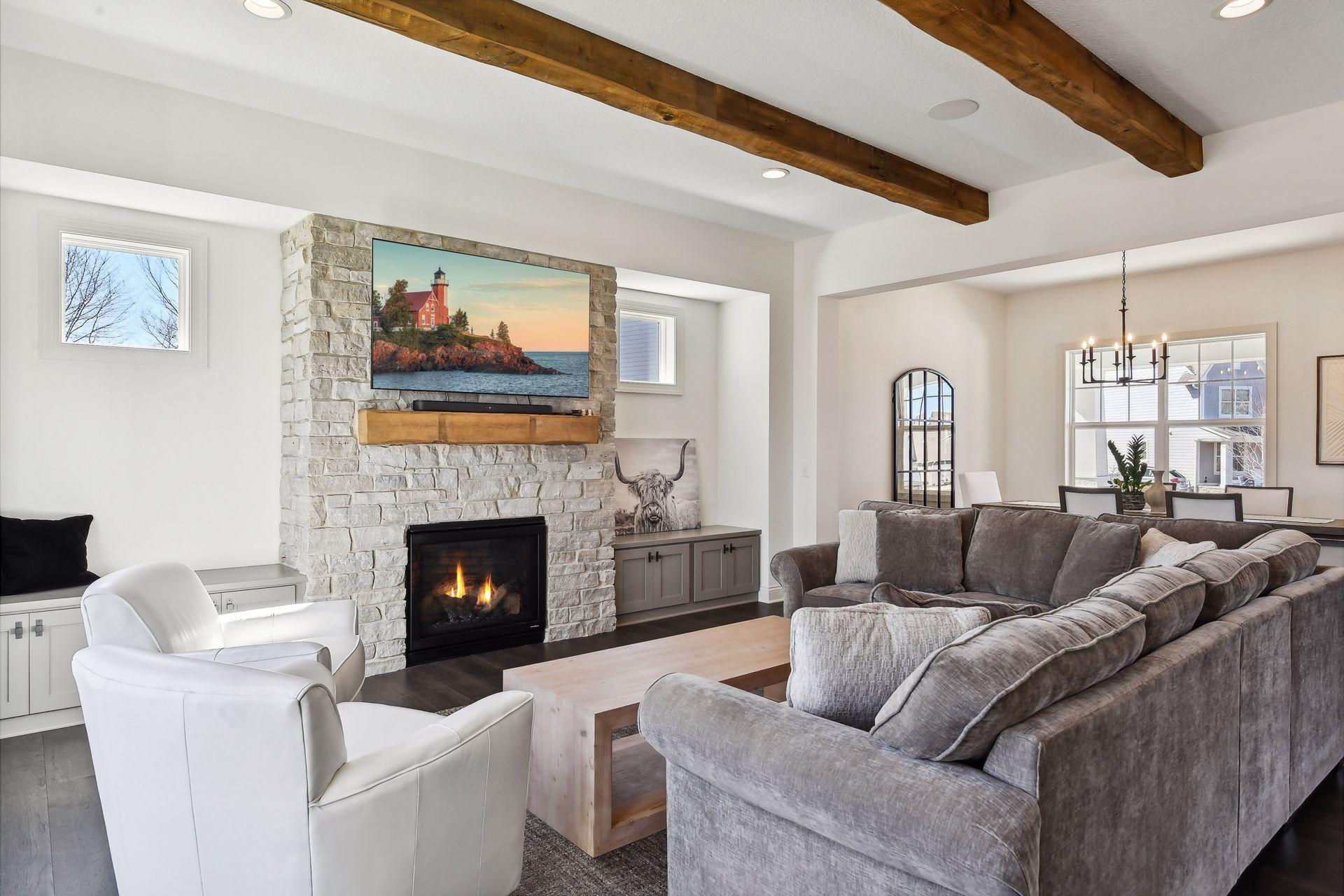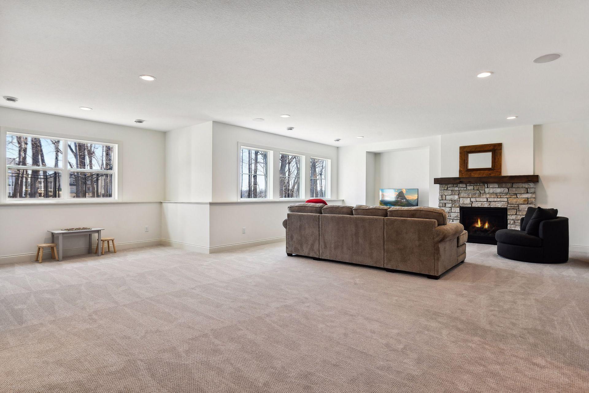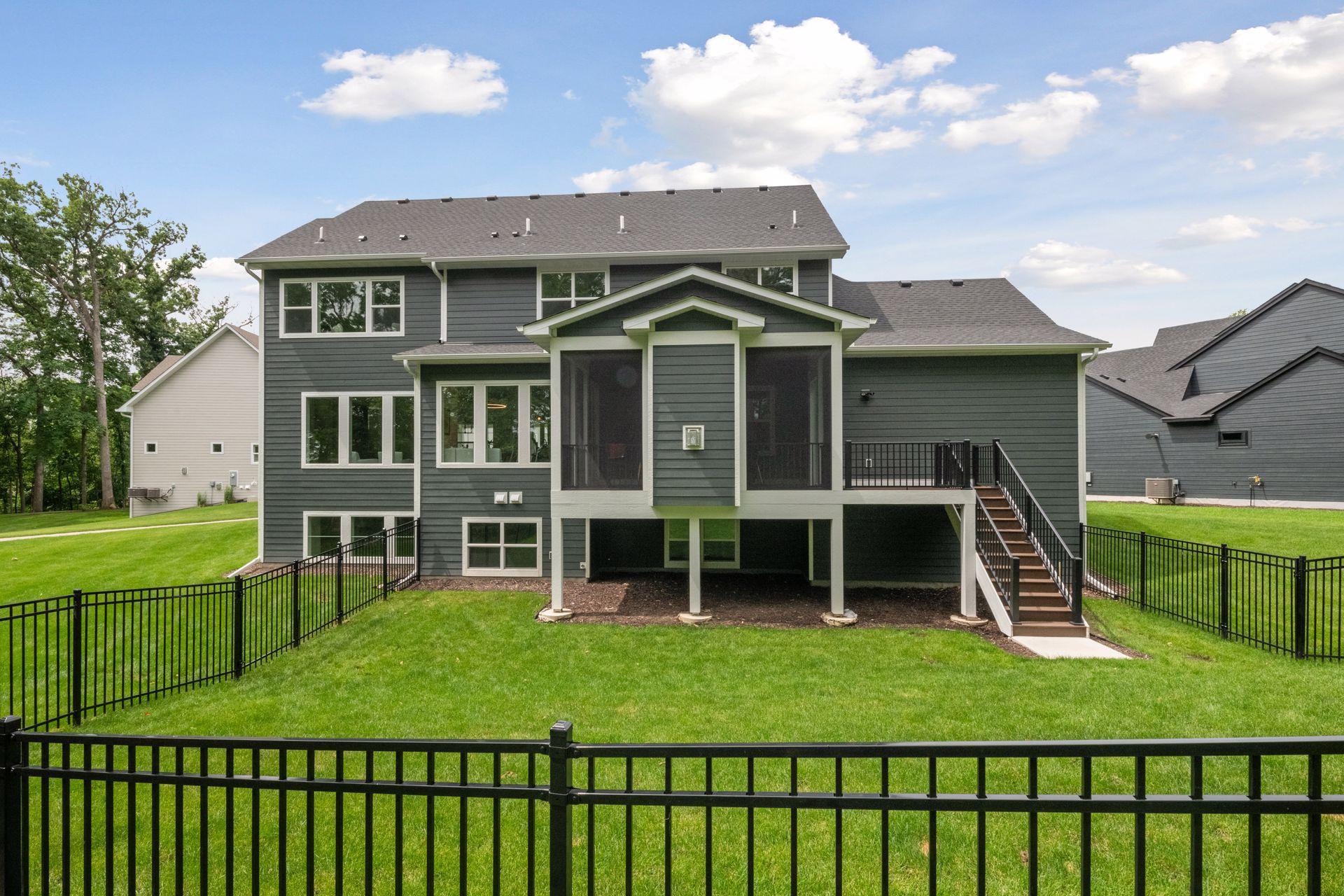 Exceptional 2022 Stonegate Itasca floorplan nestled on a private cul-de-sac in the highly sought-after Bluffs at Lake Lucy. Designed with both elegance and functionality in mind, the home features a bright open main level with 10-foot ceilings and a gourmet kitchen centered around a large island. A versatile flex room and main-floor den offer ideal spaces for work or relaxation, while the screened porch with its own fireplace provides the perfect setting to unwind. The living room showcases beautiful beamed ceilings and a cozy gas-burning fireplace. Upstairs, four spacious bedrooms each include their own ensuite bathroom, highlighted by the luxurious primary suite featuring a spa-like soaking tub and walk-in shower. The finished lower level expands the living space with a second family room, wet bar, exercise room + sport court, and a fifth bedroom. Located on some of the most scenic land in Chanhassen, The Bluffs at Lake Lucy is surrounded by over 100 acres of woods and wetlands along Lakes Lucy and Ann, offering private wooded & bluff views. The rear portion of the lot extends beyond the existing fence line; see photos for additional details.