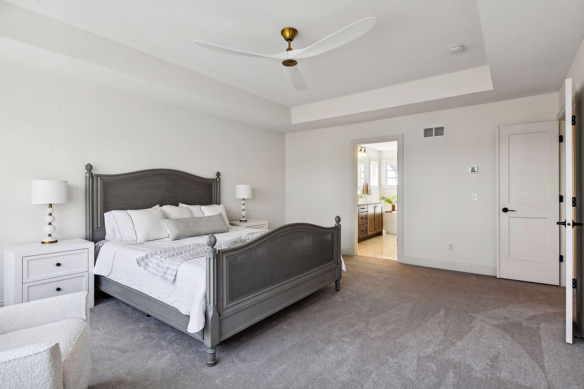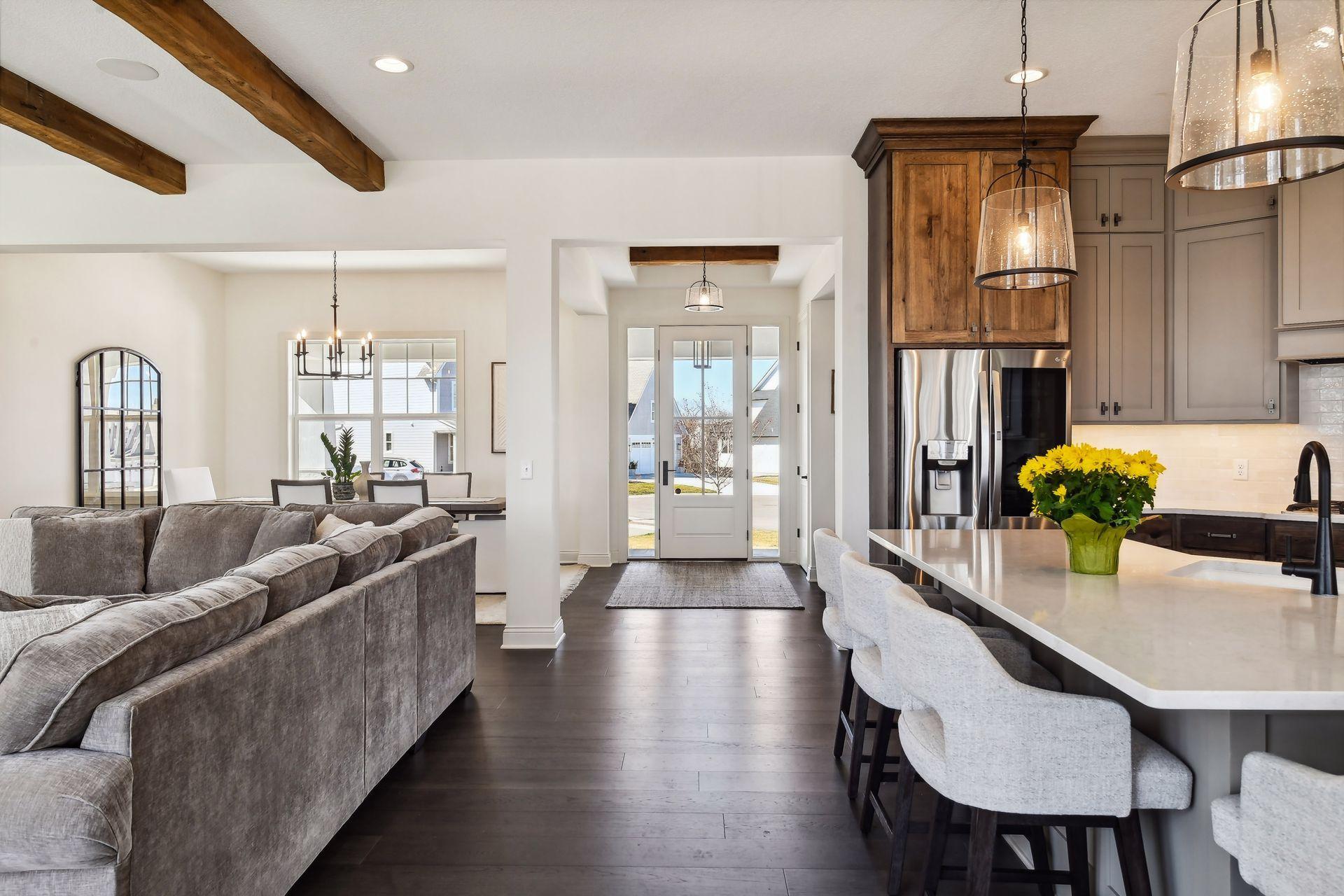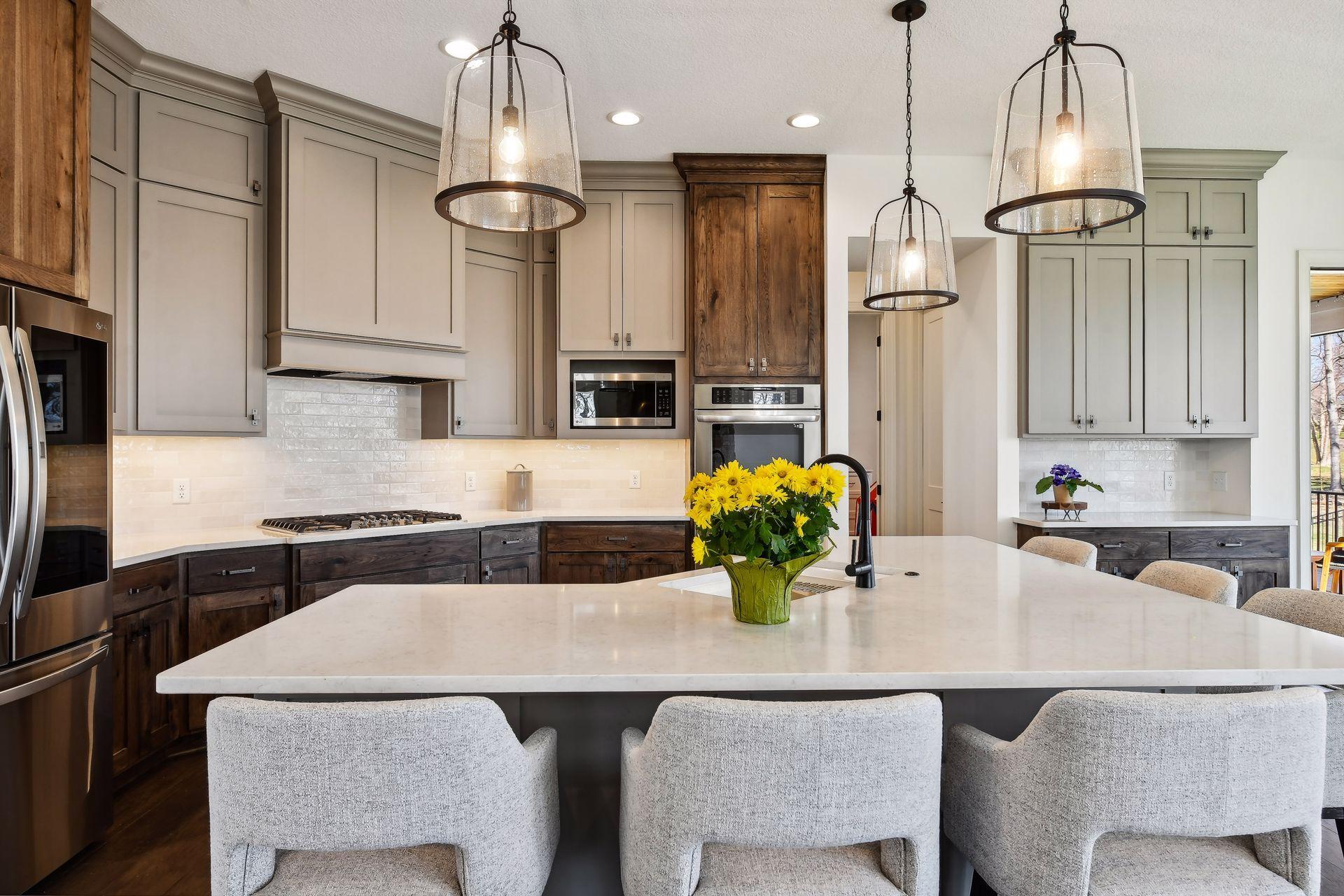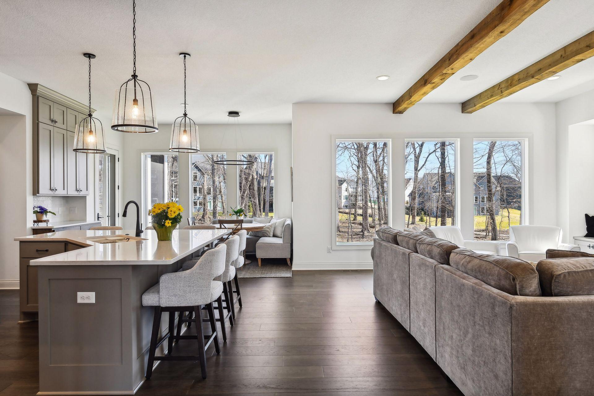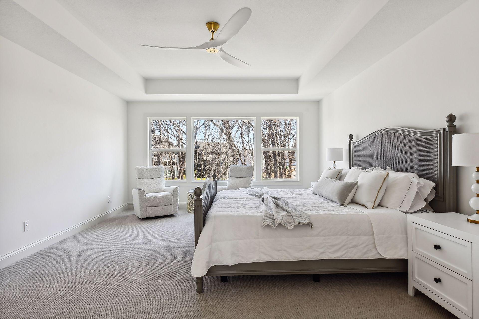 Exceptional 2022 Stonegate Itasca floorplan nestled on a private cul-de-sac in the highly sought-after Bluffs at Lake Lucy. Designed with both elegance and functionality in mind, the home features a bright open main level with 10-foot ceilings and a gourmet kitchen centered around a large island. A versatile flex room and main-floor den offer ideal spaces for work or relaxation, while the screened porch with its own fireplace provides the perfect setting to unwind. The living room showcases beautiful beamed ceilings and a cozy gas-burning fireplace. Upstairs, four spacious bedrooms each include their own ensuite bathroom, highlighted by the luxurious primary suite featuring a spa-like soaking tub and walk-in shower. The finished lower level expands the living space with a second family room, wet bar, exercise room + sport court, and a fifth bedroom. Located on some of the most scenic land in Chanhassen, The Bluffs at Lake Lucy is surrounded by over 100 acres of woods and wetlands along Lakes Lucy and Ann, offering private wooded & bluff views. The rear portion of the lot extends beyond the existing fence line; see photos for additional details.