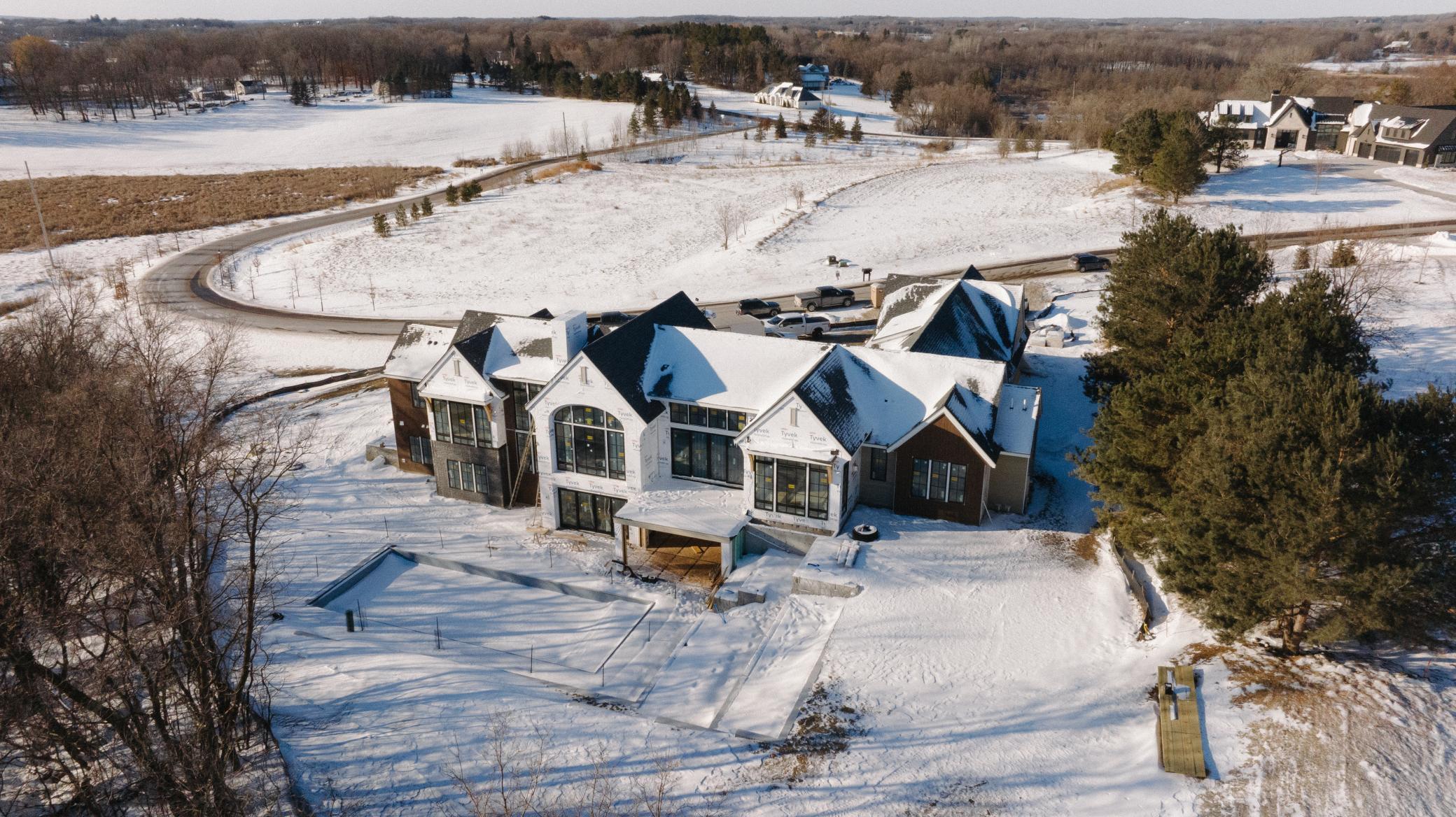 Positioned on an elevated homesite within the exclusive Deer Hill Preserve community, The Cervidae Rambler is an architecturally refined modern residence crafted by Swanson Homes and designed by David Charlez Designs. The home captures sweeping southwestern views across the surrounding landscape while offering a secluded, resort-style retreat tucked quietly behind the home. Thoughtfully designed for both everyday living and elevated entertaining, the main level unfolds with expansive living spaces filled with natural light and beautifully curated interiors by Carbon 6 Interiors. A dramatic front-to-back vaulted ceiling carries through the office and great room, creating a striking architectural presence, while the kitchen and dining area are equally impressive with soaring ceilings, exposed beams, and warm wood detailing. The chef’s kitchen anchors the home and is complemented by a separate prep kitchen and dedicated coffee bar, allowing the main entertaining spaces to remain effortlessly organized when hosting. The kitchen and dining area flow seamlessly into a spectacular vaulted sunroom, creating a light-filled gathering space overlooking the outdoor living areas. The main level also features a rare three-bedroom configuration, with the owner’s suite privately situated in its own wing while two additional bedrooms are thoughtfully positioned on the opposite side of the home. A refined executive office, elegant powder bath, and well-appointed mudroom complete the level with both sophistication and practicality. Expansive walls of glass overlook the home’s private pool terrace, creating a tranquil outdoor setting that feels completely secluded from the surrounding neighborhood. The lower level transforms into a true entertainment and wellness destination with direct access to the pool patio. Designed for both recreation and relaxation, the space features a sophisticated game lounge, wet bar, and media area, along with two additional ensuite bedrooms. Lifestyle amenities include a dedicated golf simulator room, a fully equipped fitness studio, and a spa-inspired sauna, while a luxurious bath featuring a steam shower serves the lower level and wellness areas. Completing the home is a finished four-stall garage designed with everyday functionality in mind, featuring a convenient dog wash station and an attic lift providing easy access to a large storage area above the garage. Deer Hill Preserve offers a unique blend of privacy and connectivity, with paved walking trails throughout the neighborhood that connect directly to Baker Park Reserve. Residents enjoy close proximity to Baker National Golf Course and are just minutes from downtown Wayzata and the shores of Lake Minnetonka. Located within the award-winning Orono School District, this home will also be featured on the 2026 Artisan Home Tour and will be ready for occupancy in late June 2026.