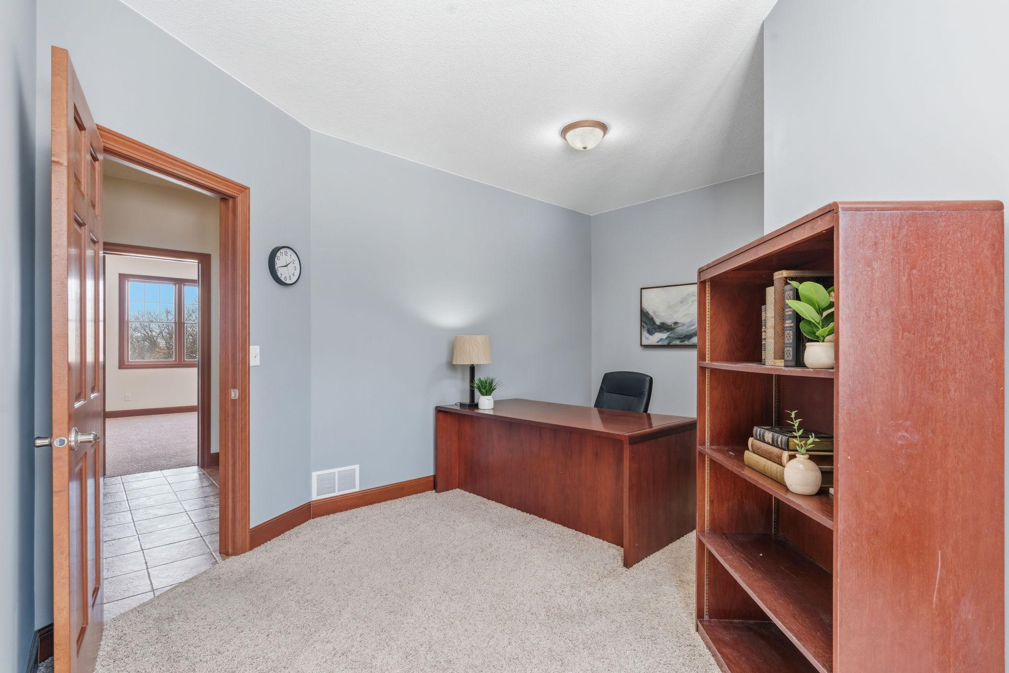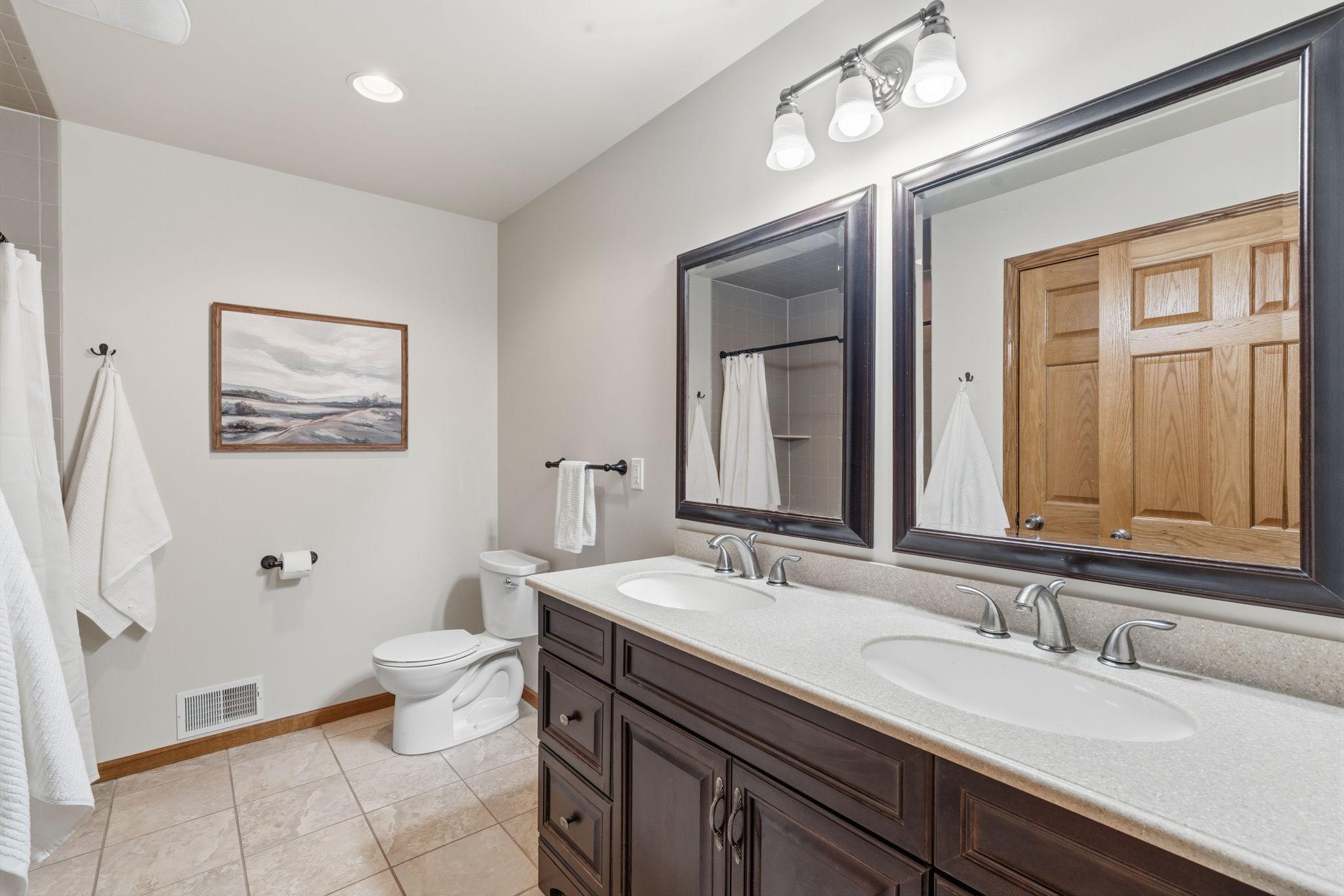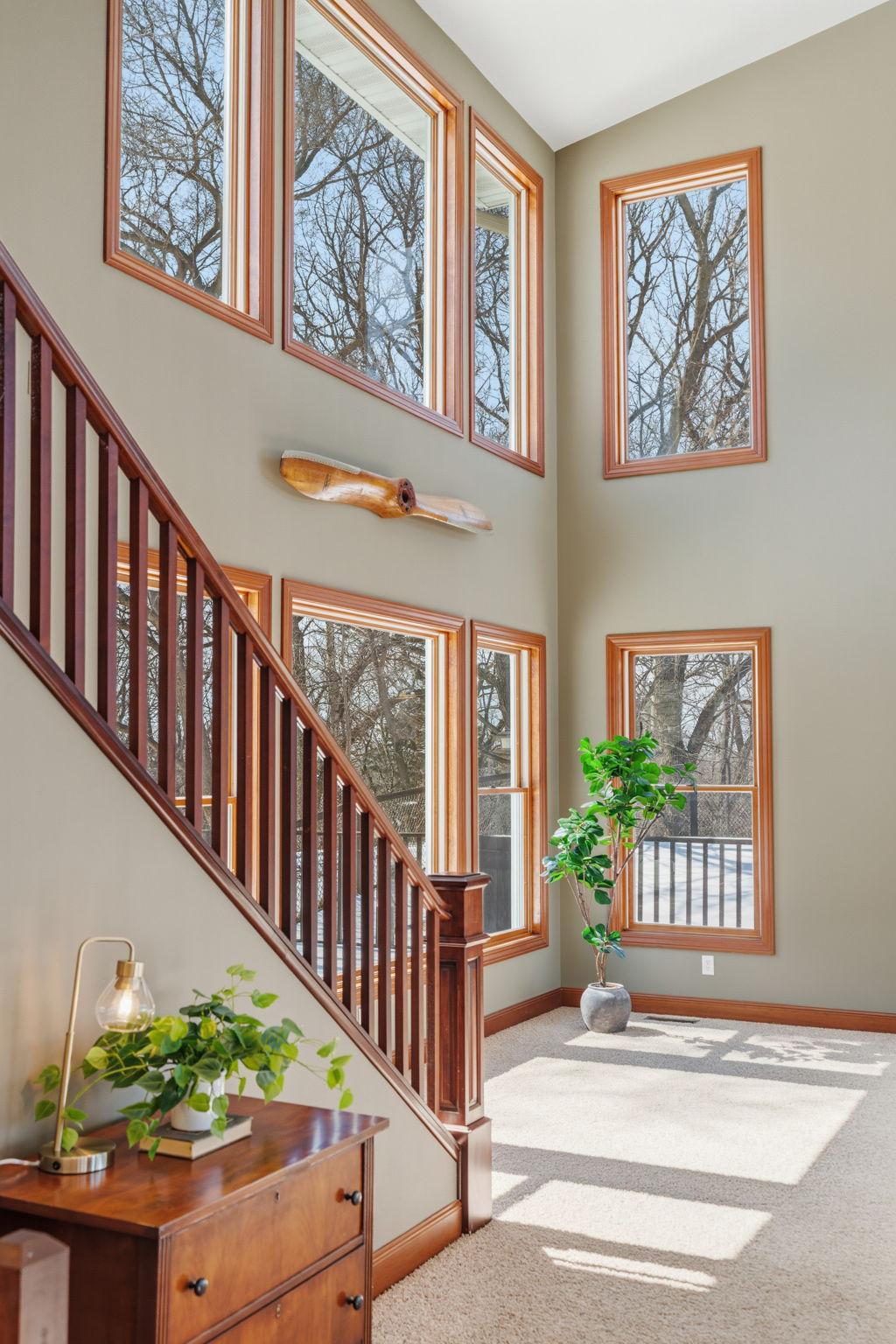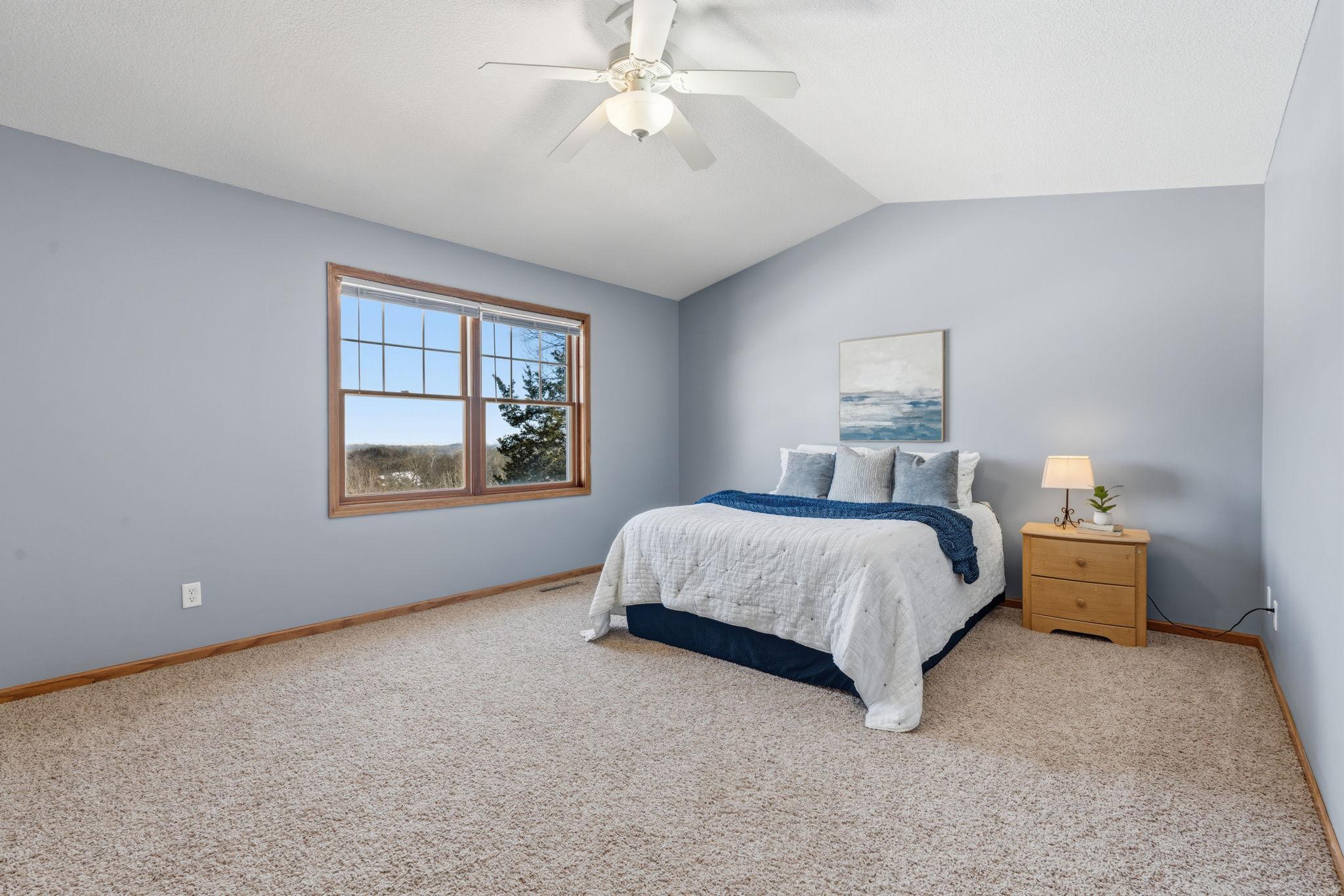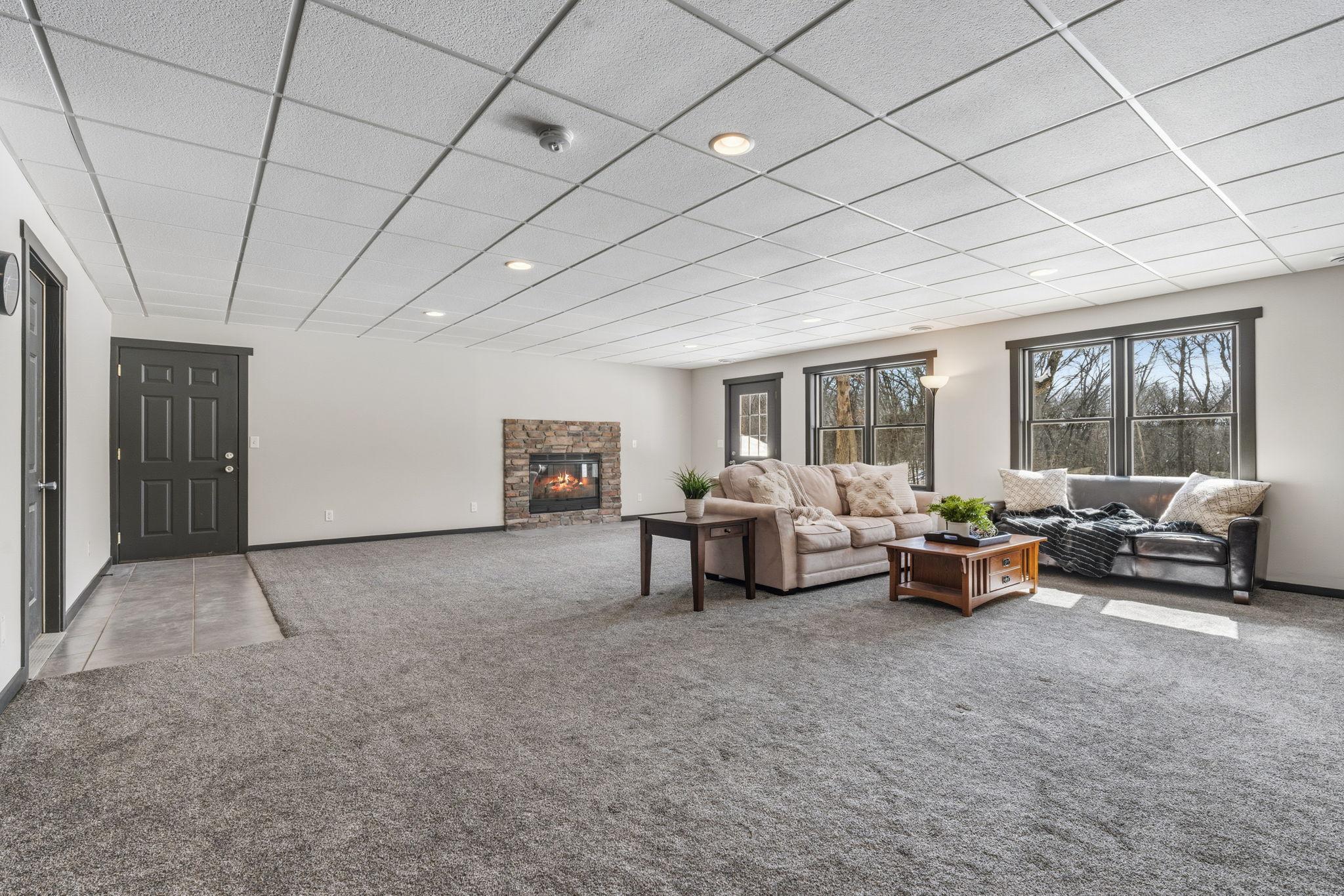Escape to your private 2.5 acre retreat perched on top of an old ski hill with breathtaking panoramic views ! Step inside to a foyer that opens to the main level Great Room that is the " Show Stopper" Expansive 2 story windows, floor to ceiling stone fireplace, and a staircase leading to the upper level loft create a gathering space with a grandeur vibe. The kitchen showcasing rich cherry cabinets, walk in pantry, stainless steel appliances, double oven, and two kitchen islands creates a warm ambiance for cooking and entertaining alike. The main level also includes a separate living room, office and mudroom with ample closet storage. The spacious upper level primary suite offers a vaulted ceiling, cozy gas fireplace and a sitting area to relax and unwind. The primary bathroom features a space tub and walk in tiled shower with double sinks and vanity. From the primary suite, you can walk out to the wrap around deck to soak in the stunning view. The upper level includes 4 other bedrooms, 2 full bathrooms and a loft. The walk out lower level extends the living space with an additional 6th bedroom, 3/4th bath with a tiled walk in shower, recreation room with a fireplace, wet bar and ample storage. The lower level garage/workshop is accessible from this area and has endless opportunities for a new buyer with a garage door access to the backyard. Watch and enjoy the nature and wildlife in your private backyard space. Enjoy the summer months hosting a pool party in the heated pool. This is a one of a kind home that comes with excellent District 196 schools. Don't miss this opportunity to own this special property.