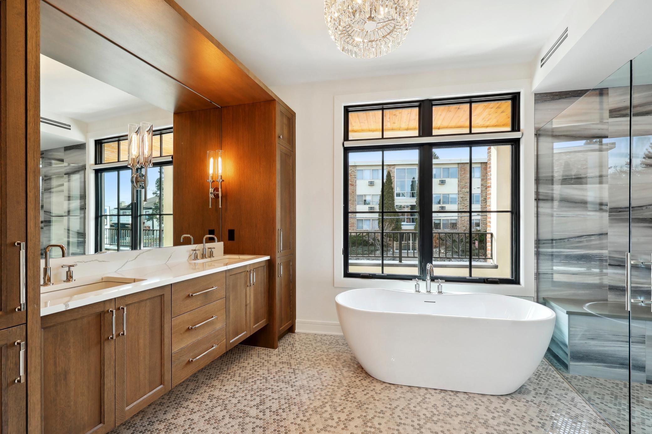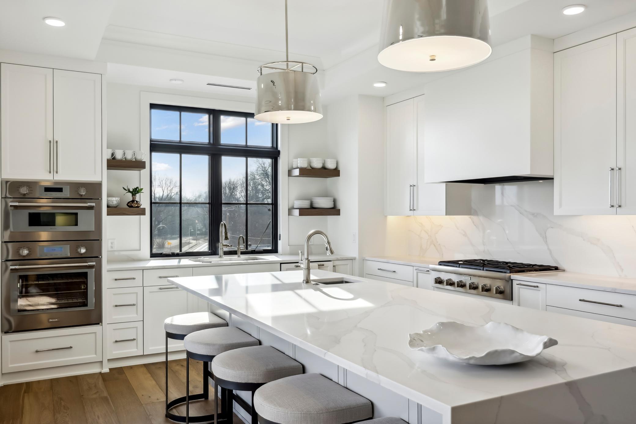 This home features 5 bedrooms and approximately 4,600 SF of highly detailed finished spaces. Expansive window walls provide for natural west facing sun throughout the main level kitchen, dining and great room area. A gourmet kitchen complete with butler pantry and custom-built cabinetry allows for the support of a busy family as well as entertaining.