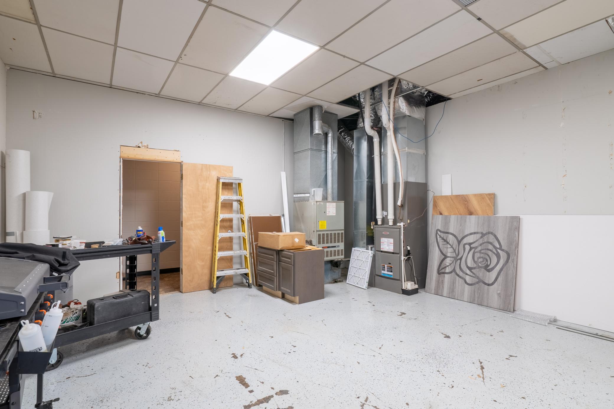 The space features a durable cement floor and includes an overhead door, making it well-suited for businesses that require easy loading and unloading, equipment access, or workshop functionality. The suite is individually metered for gas and electricity and has its own gas furnace, allowing tenants full control of their utilities and operating costs.
