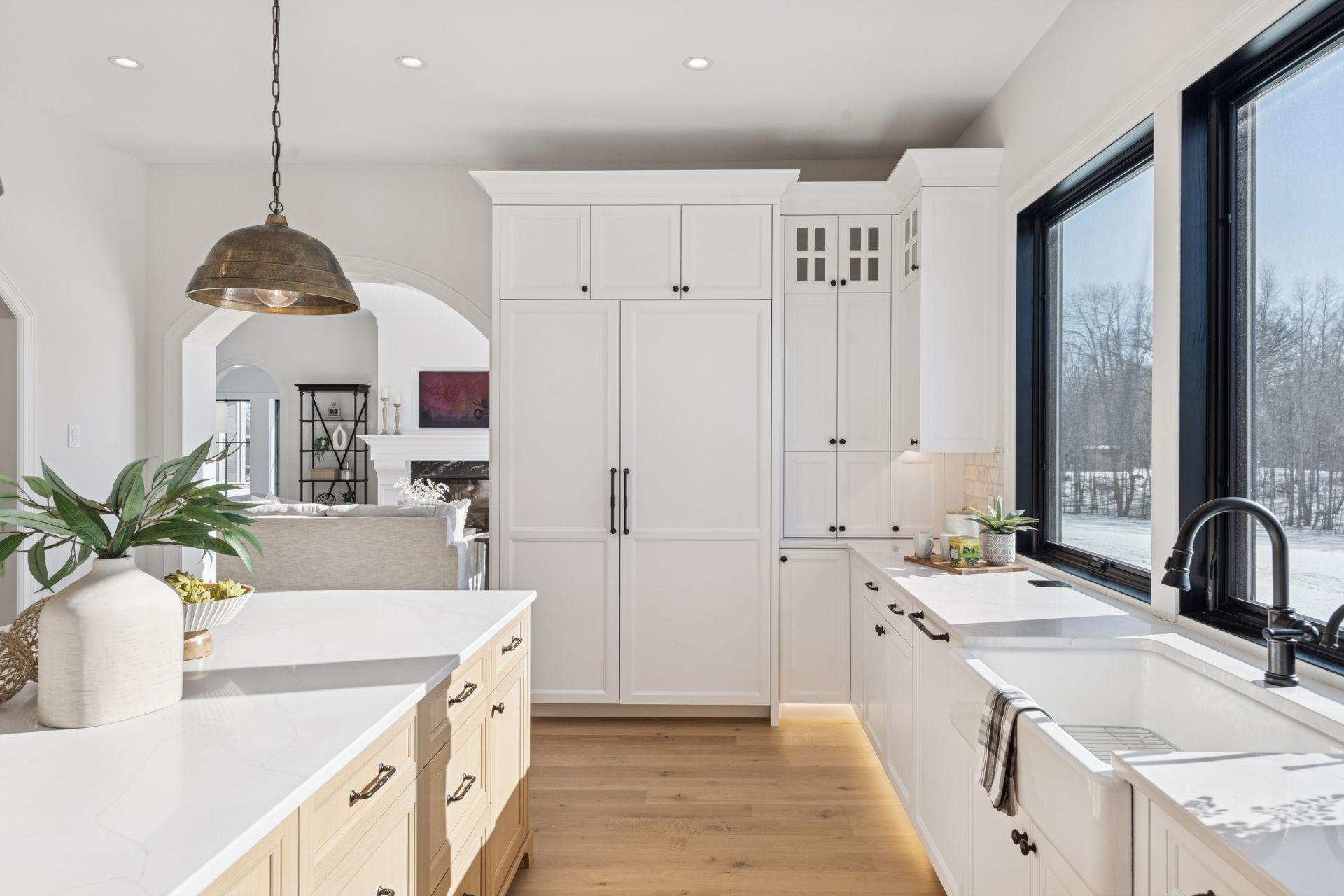 Step into an unparalleled sanctuary where the timeless artistry of traditional craftsmanship converges with the pinnacle of modern luxury. Nestled on nearly seven acres—a diverse landscape of grasslands, woods, and marshlands—this architectural masterpiece is a rare find. It balances classic aesthetic details, such as rich, arched wood casings, with the high-tech, sophisticated conveniences essential for a contemporary lifestyle. Designed for those who treat cooking as a fine art, the gourmet kitchen serves as the residence’s centerpiece. Every detail is curated for performance and style, featuring a professional-grade six-burner range anchored by an oversized designer hood and a convenient wall-mounted pot filler, and double ovens, a full-size refrigerator, and a matching freezer ensure you are effortlessly prepared for any scale of hosting. The expansive center island acts as a natural social hub, inviting guests and family to gather in the warmth of the home’s creative core. A secondary kitchen offers hidden functionality without compromising the home's aesthetic. This discreet wing includes a microwave/convection combo, an additional dishwasher, a secondary sink, a beverage refrigerator, and a dedicated coffee bar. A walk-in pantry is strategically positioned between the two kitchens, providing seamless organization for the most demanding culinary endeavors. The flow of the main level moves gracefully from the kitchen into the dining area and living room which boasts panoramic views of the private acreage that changes with the seasons. A magnificent Victorian staircase provides a dramatic focal point, leading to the secluded upper quarters. The primary suite is a true spa-like escape, featuring double vanities, a deep soaking tub, and a rainfall shower with dual heads. This sanctuary is completed by a private bidet area and a cavernous walk-through closet. The upper level continues to delight with three additional bedrooms, including one with a private balcony—ideal for a secluded home office or creative studio. A convenient laundry room featuring a dedicated sink and a large hidden room is concealed behind a bookcase at the end of the grand hallway. Additional features include a four-car oversized garage, with an EV charging station, and plumbing for a future dog wash or utility sink. The unfinished walk-out basement offers a blank canvas with double doors and plumbing already in place for an additional bathroom. Whether you are enjoying the sunset over the tree line or hosting a multi-course dinner, this home offers a lifestyle of quiet sophistication and endless possibility. (some photos are virtually staged)