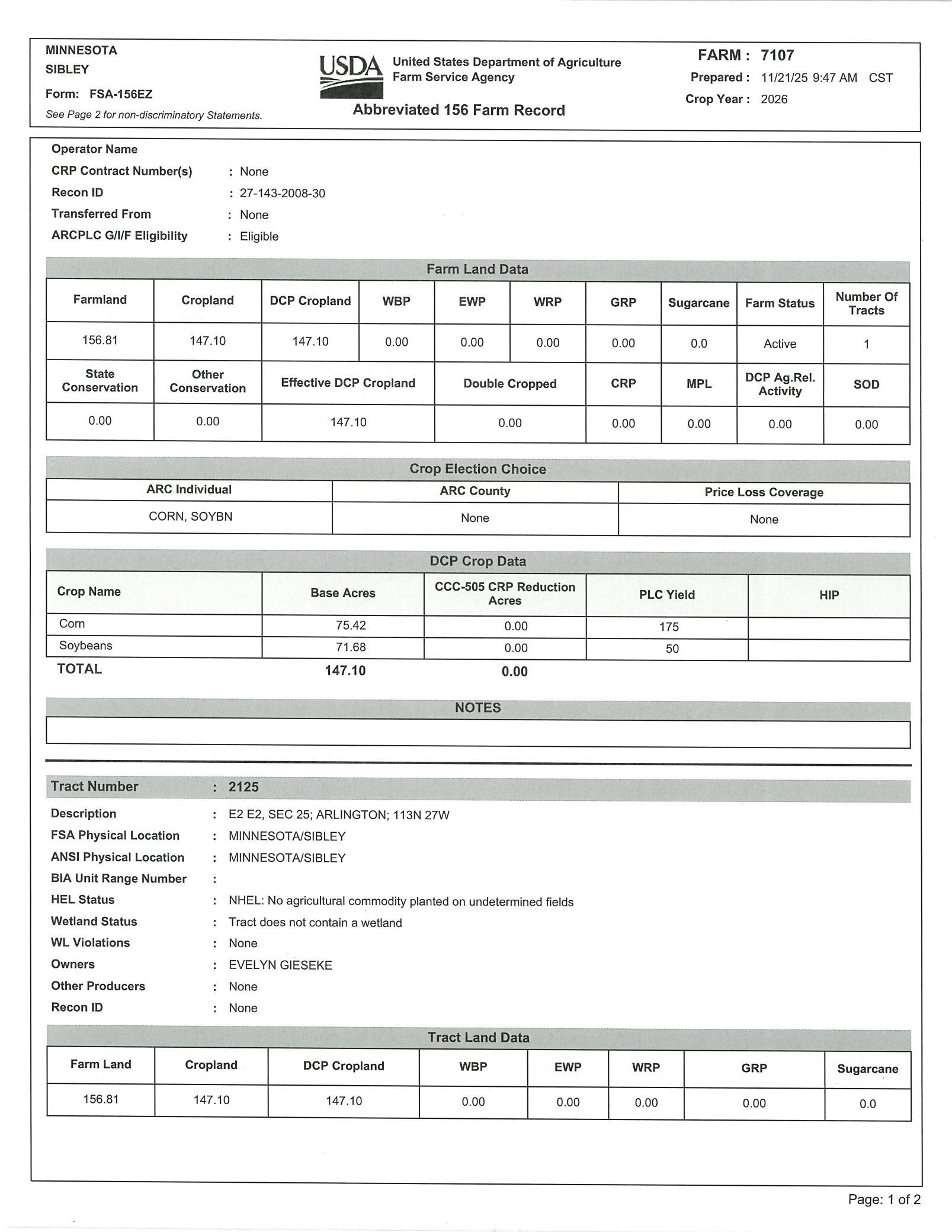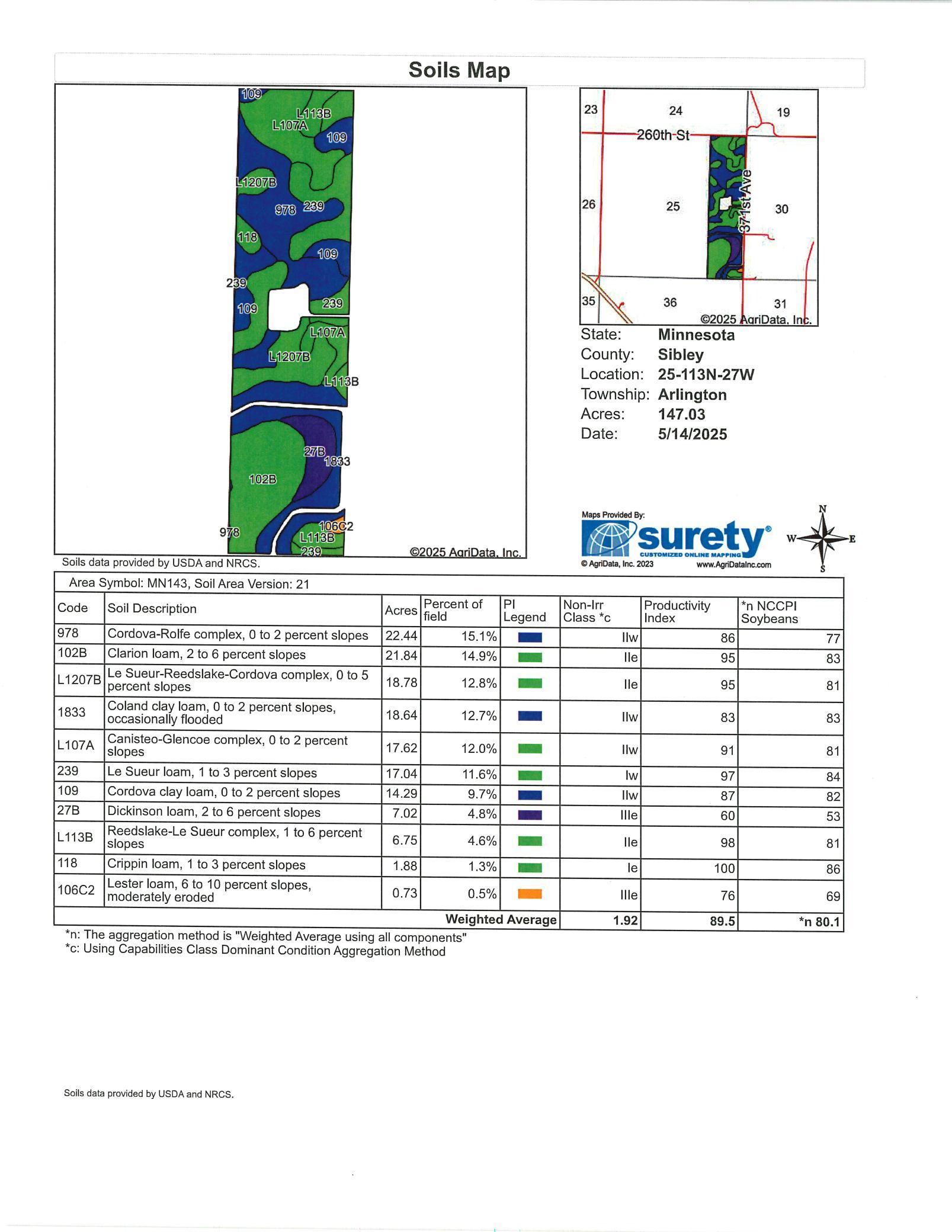 Wonderful 154+/- Acres with 147+/- Acres of tillable farmland, productive index of 89.5, good drainage and outlet, easy access to roads on 2 sides, in the heart of farm country, come see, call for more details.