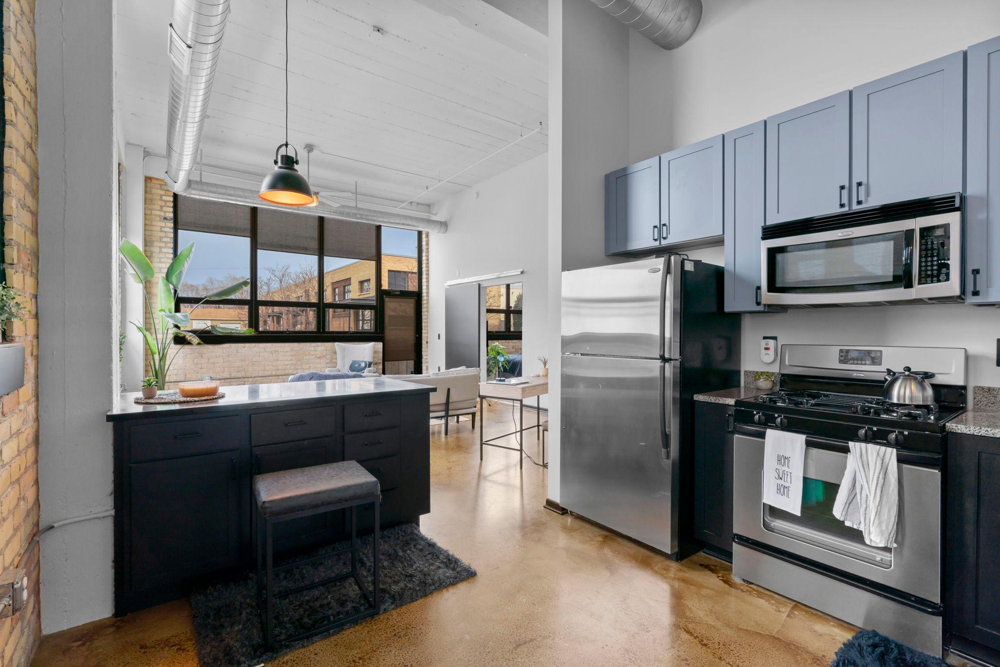 Exciting chance to live in Northeast's Art District! This spectacular corner unit offers exceptional entertainment areas both indoors and outdoors. Step onto your private patio, boasting nearly 150 sq.ft. right at your doorstep. Recent updates feature new mechanical systems, custom-painted cabinets, and stylish window treatments. Included in rent: 1 Indoor heated parking stall(s) & water/sewer/trash: Tenant responsible for electricity, gas, basic cable and internet; App Fee: $78, Admin Fee: $150 & Move-in fee: $200. Security deposit is one month's rent.