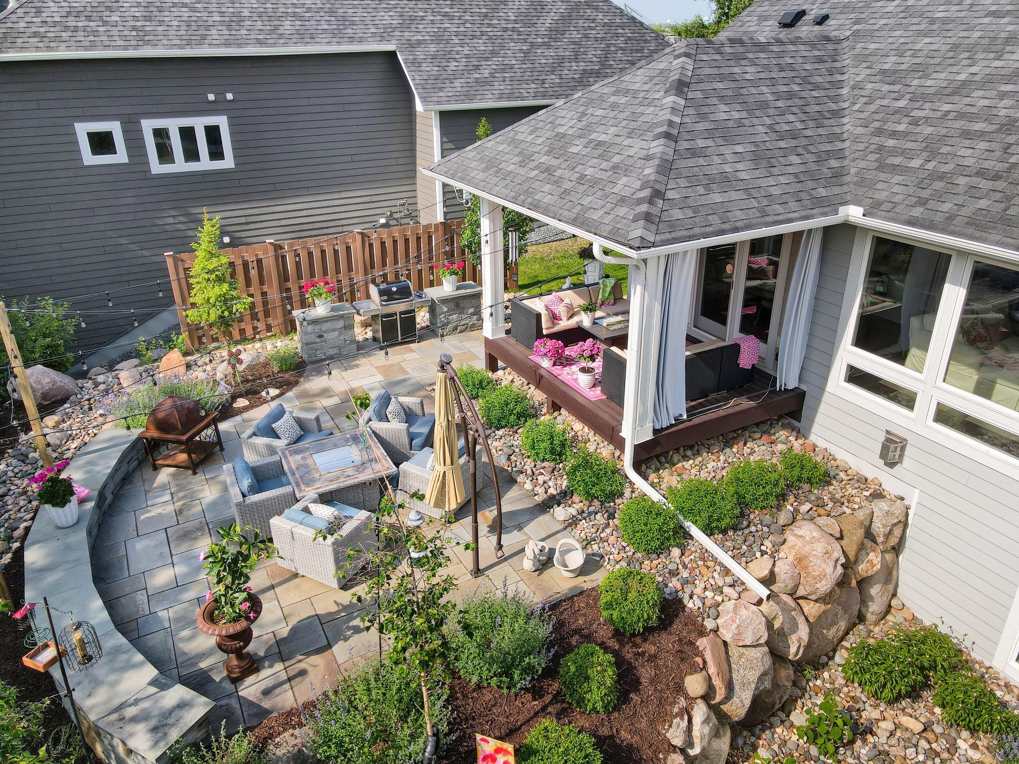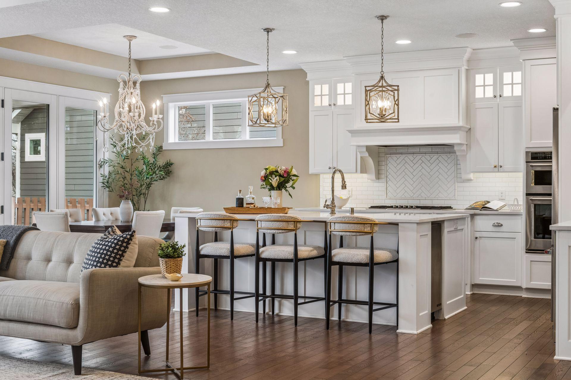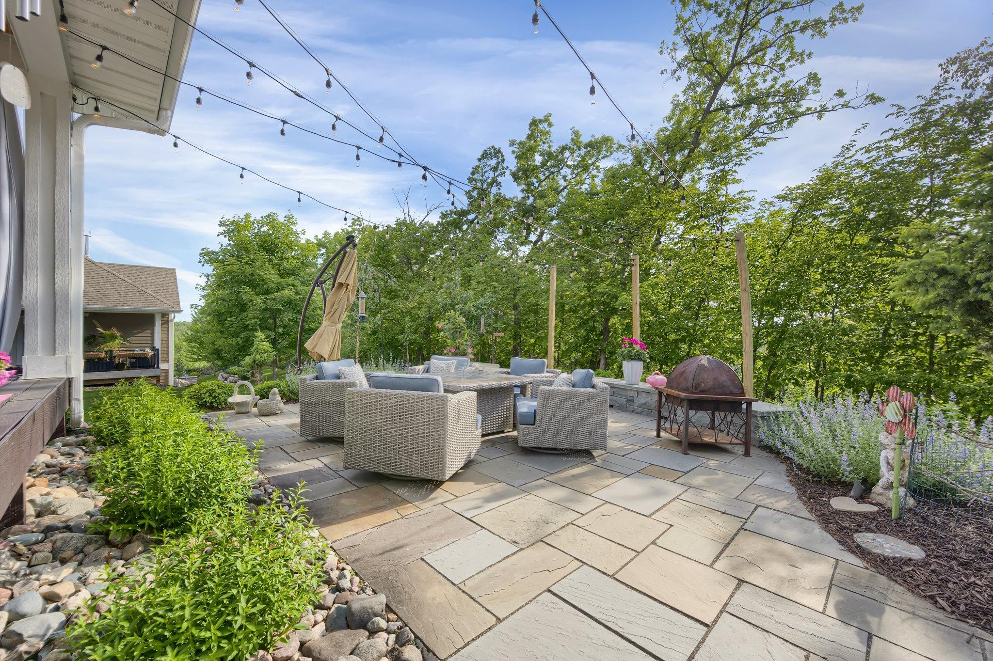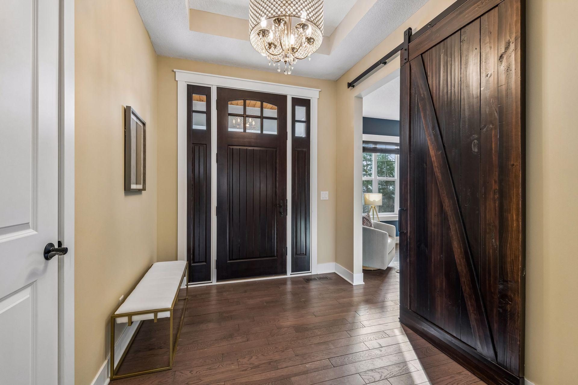 Set on the edge of a quiet cul-de-sac on a private road in The Enclave, this executive home blends refined finishes with a thoughtfully designed layout. The main level is filled with natural light from floor to ceiling windows that frame the living spaces, highlighting coffered ceilings, custom built-ins, and a gas fireplace. The kitchen is designed for both everyday living and entertaining with premium appliances, wine fridge, ice maker, custom cabinetry, a generous center island with seating, and a walk-in pantry. The main-floor primary suite offers a private retreat with a luxurious ensuite bath featuring a spa-like shower, separate sinks and vanity. A dedicated office and main-floor laundry add everyday convenience all on one level. The lower level provides an inviting family room with tall ceilings, fireplace, wet bar, surround sound speakers throughout, a large storage room and bright lookout windows. Extend your living space outdoors in the private and professionally landscaped yard with bluestone patio and covered deck. The heated three-car garage features epoxy flooring and a level driveway. Conveniently located near Hwy 62, 494, shopping, restaurants, and just 20 minutes from downtown,... you get the best of all worlds tucked within a quiet, exclusive neighborhood.