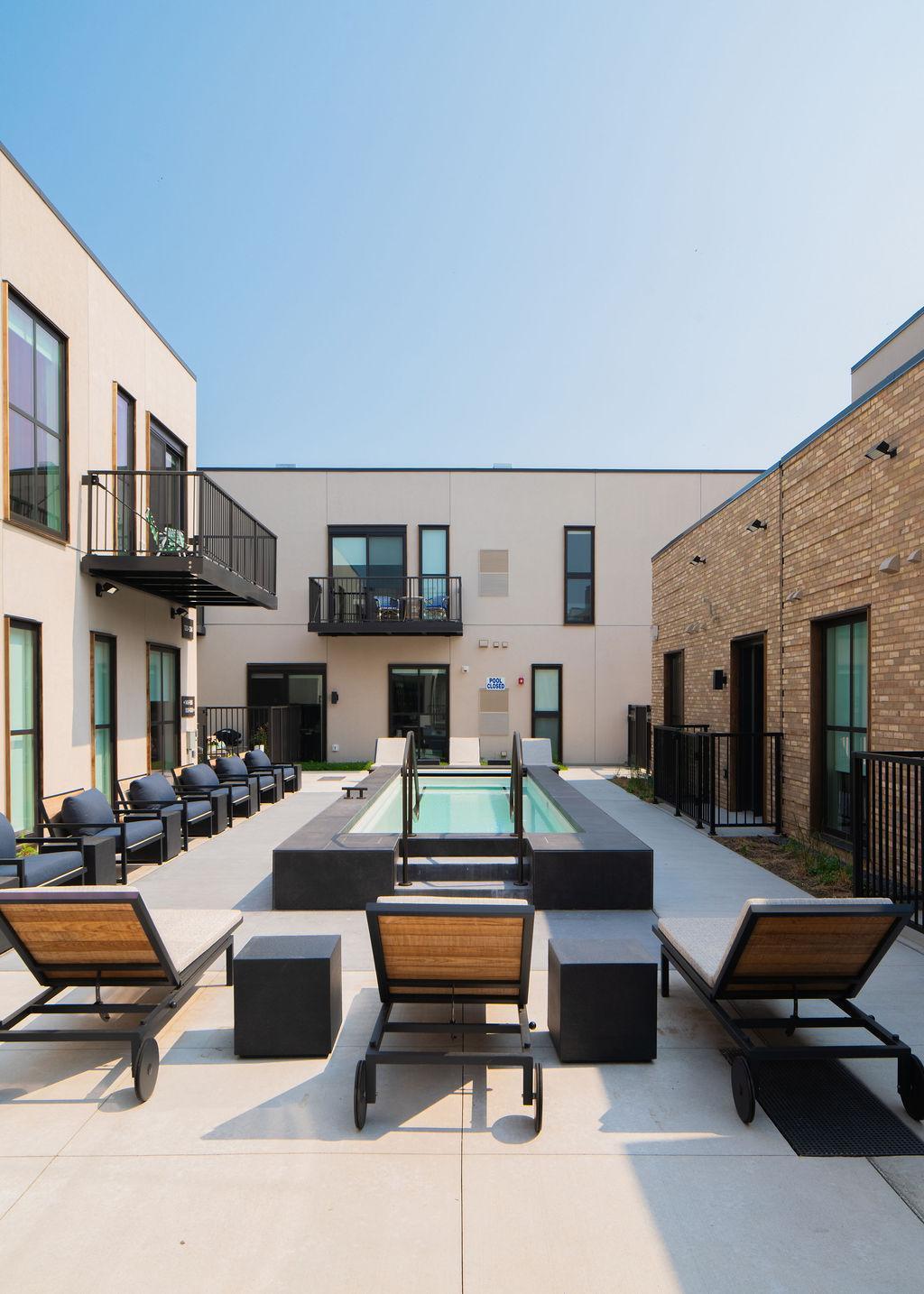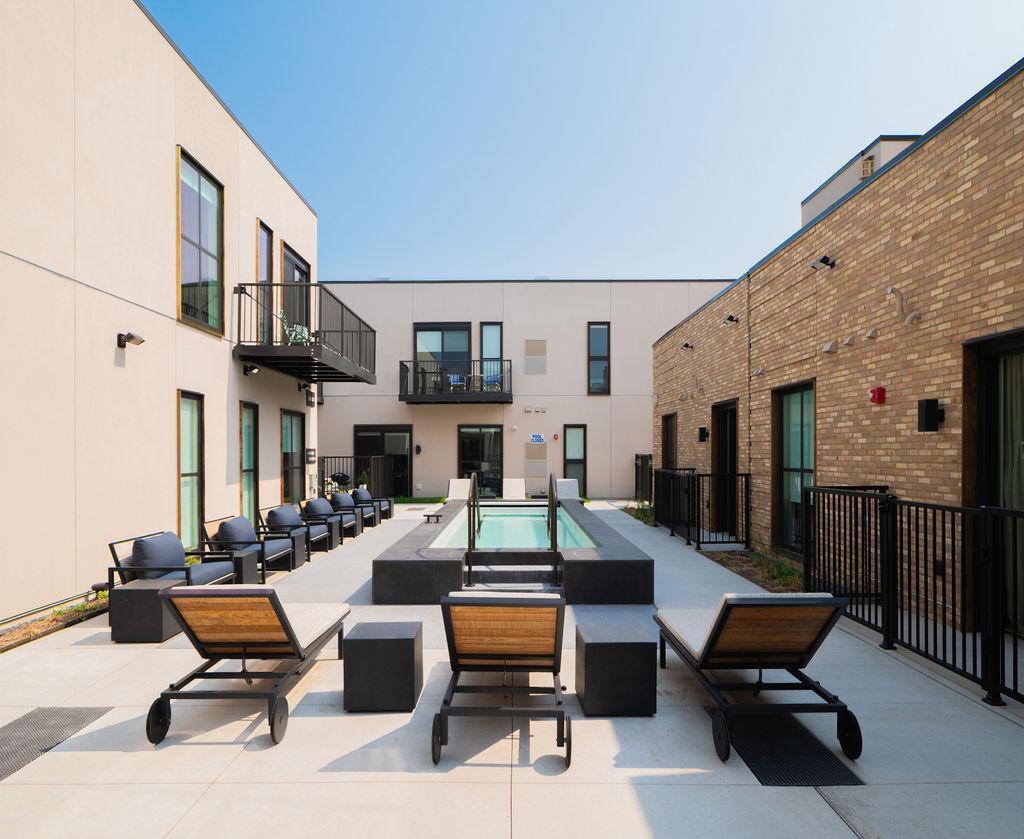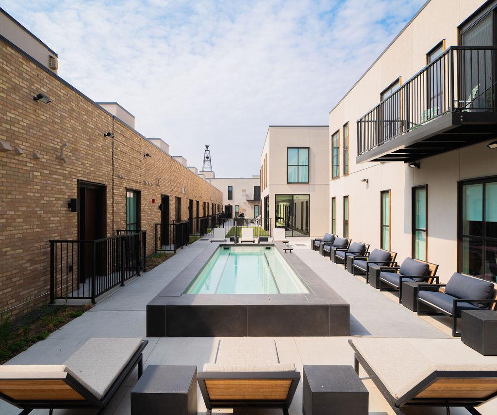 Located in the charming city of Excelsior, One West Drive is a boutique apartment community that offers unique custom-designed floor plans that range in size from 430sqft. to 2743sqft. Our stylish modern homes were designed by widely-renowned Snow Kreilich Architects and our interiors tastefully finished by MartinPatrick3. Our 49 premier residences include Alcoves, 1-Bedrooms, 2-Bedrooms, 3-Bedrooms, as well as 2-Bedroom Rowhomes that offer a private garage and rooftop terrace. One West Drive indoor and outdoor amenities present delightfully unique spaces that bolster a sense of community and push the boundaries of luxury apartment living. The common amenities: pool with lounge seating, an indoor/outdoor fitness and yoga studio, a co-working lounge, outdoor grilling/dining with firepit, resident garden area, 2 story lobby with secure package delivery, dog run and spa, shared kayaks & paddleboards. Experience luxury living with the best of Excelsior at your doorstep.