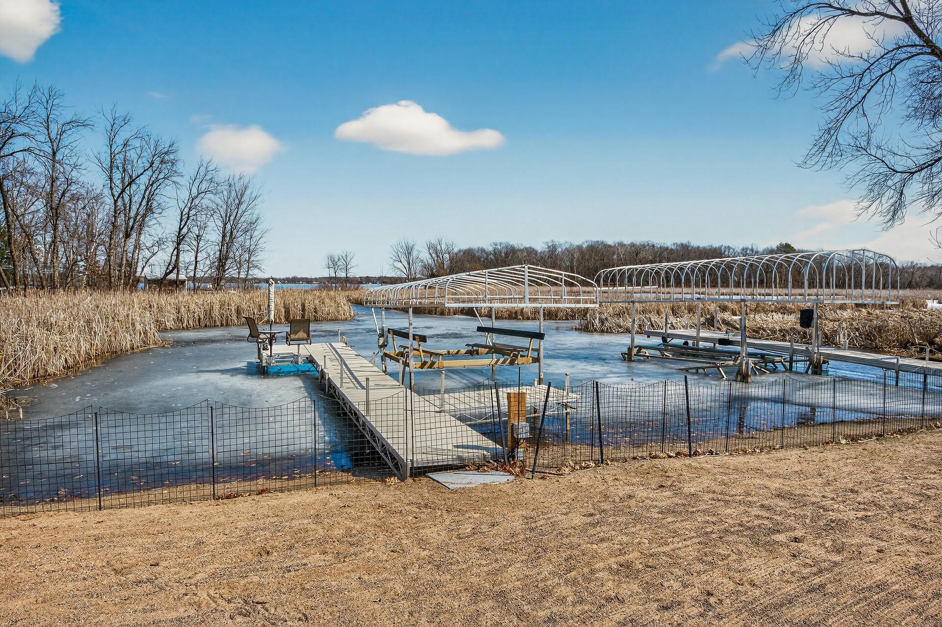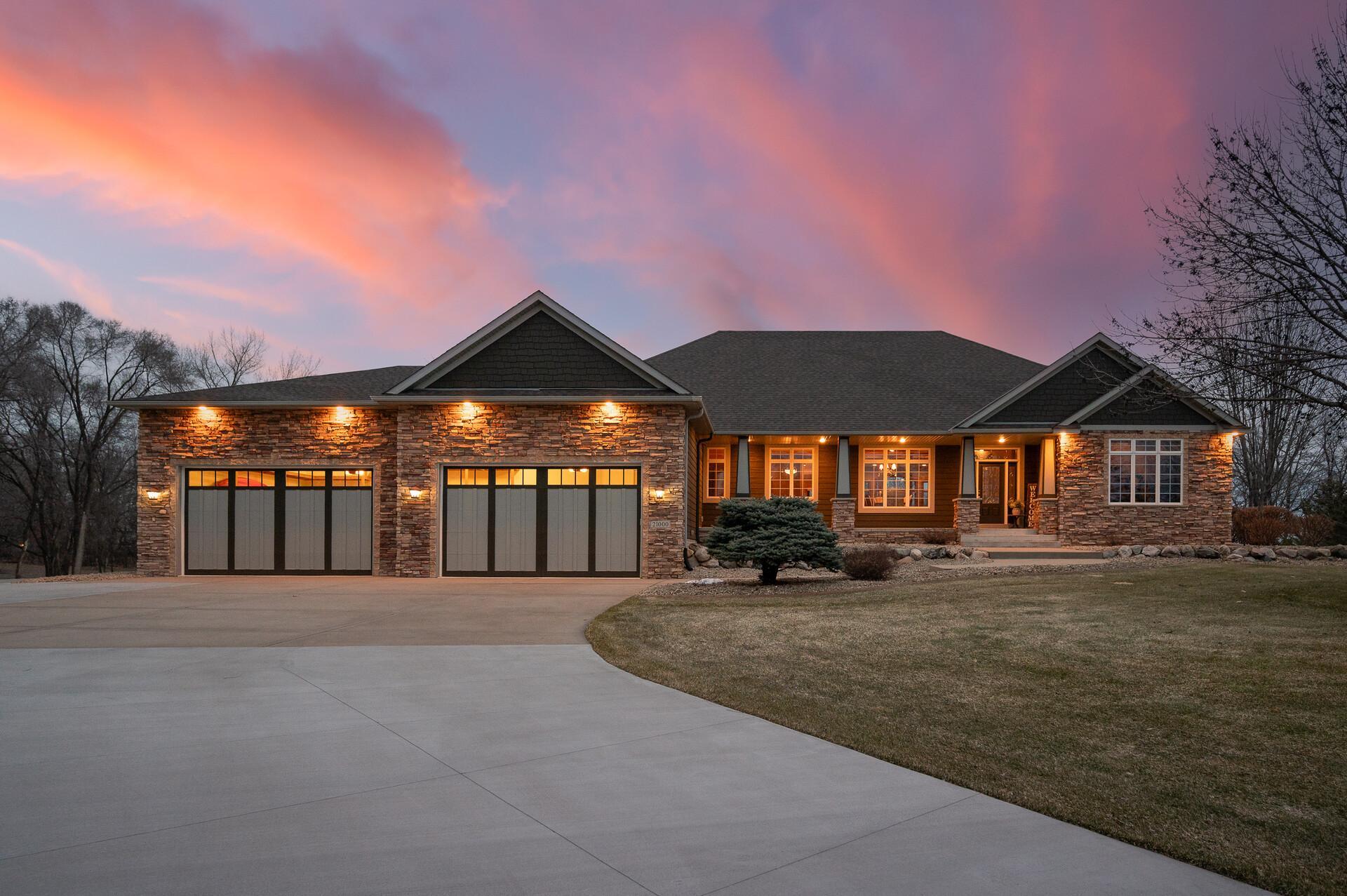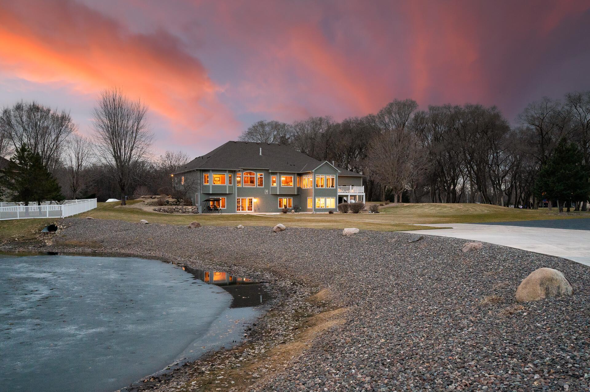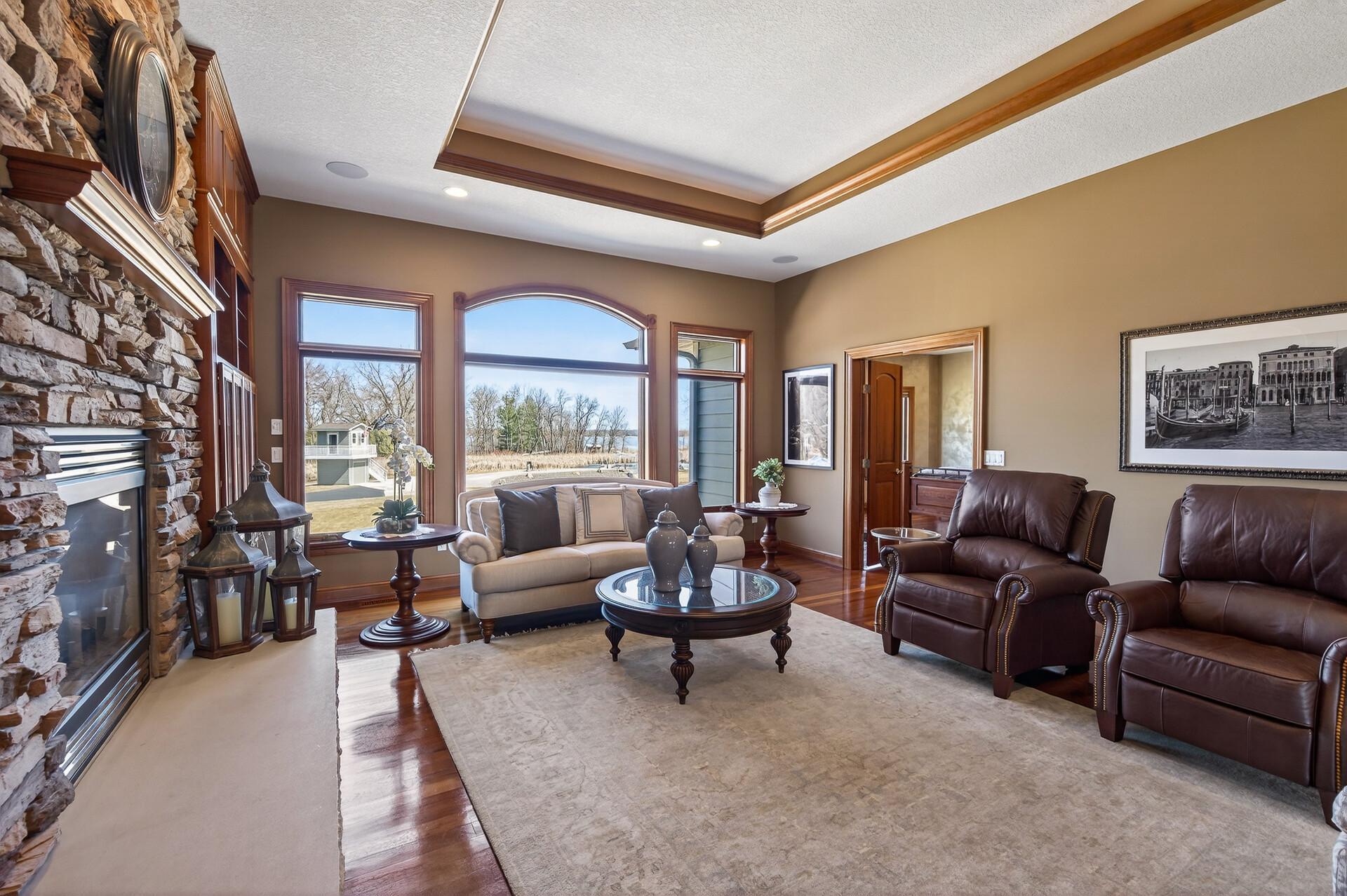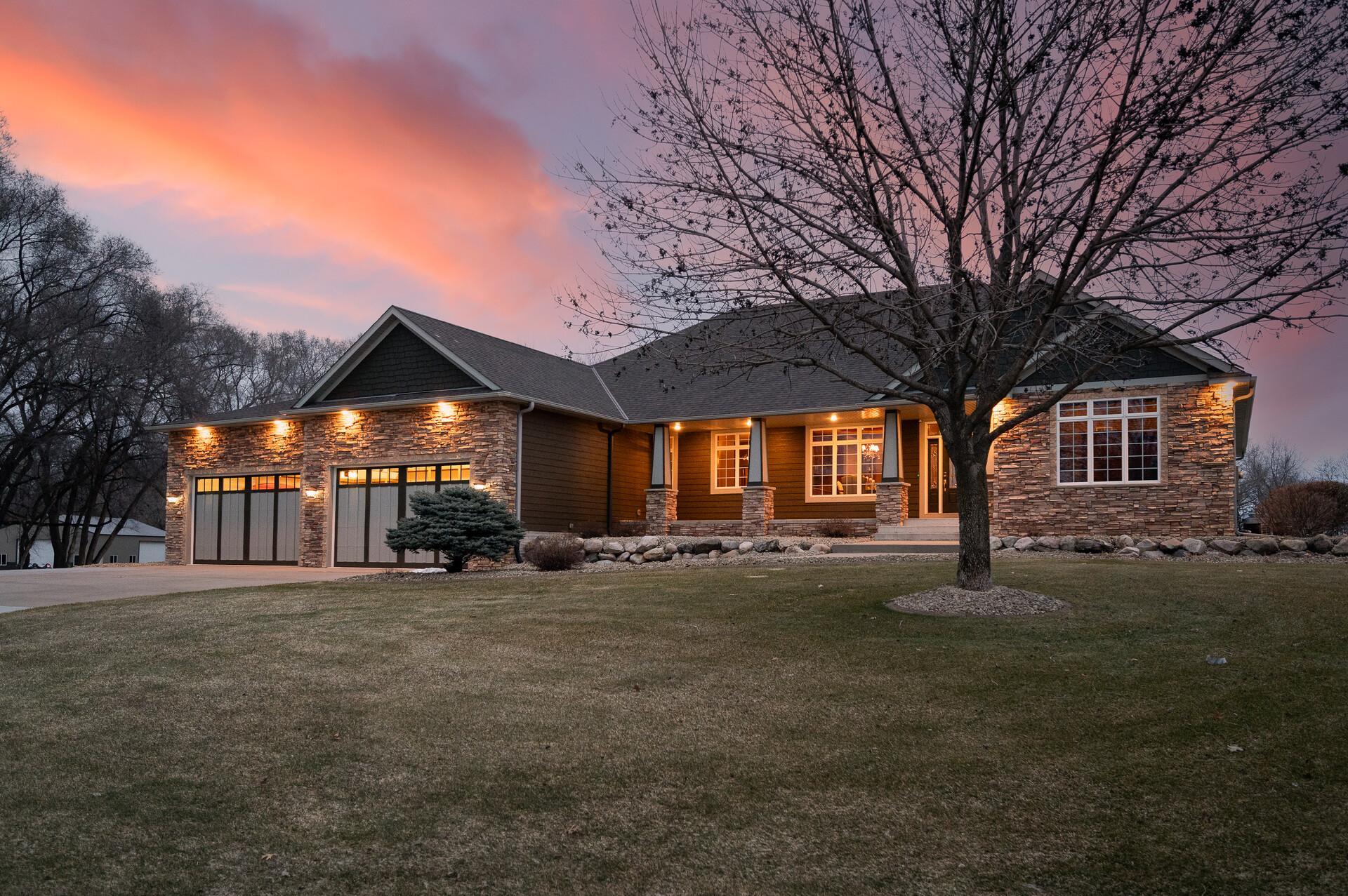 Take a look at this meticulously maintained custom rambler on Lake George nestled on a quiet cul-de-sac, this exceptional lake home offers stunning views, quality craftsmanship, and countless upgrades throughout. Enjoy true lake living with a sand beach, boat house, and beautifully landscaped setting. This fully finished home features 3 bedrooms and 4 bathrooms, with rich cherry wood cabinetry and suppeli wood flooring adding warmth and elegance throughout. The spacious primary suite overlooks the lake and includes dual sinks, a jetted tub, walk-in shower, and an oversized walk-in closet. The kitchen is beautifully appointed with bronze appliances and granite countertops throughout, offering both style and functionality. The main level also features a cozy living room with a brick-surround gas fireplace, a dedicated in-home office with built-ins, enjoy a relaxing sunroom with a vaulted cedar ceiling surrounded by windows attached to a a relaxing 4-season porch with a fireplace—perfect for enjoying peaceful sunrises and evening sunsets over the water. The lower level is designed for entertaining, featuring a large family room with a second gas fireplace, a full wet bar, a theater room with projector and reclining seating, a full bathroom with jetted tub, and an additional flex room ideal for a gym, playroom, or lounge. In-floor heat runs throughout the basement and both garages for year-round comfort. Car enthusiasts and hobbyists will love the oversized, heated, and insulated 4-car garage with epoxy flooring, plus an additional 22x30 attached garage/shop with a 12’ overhead door—perfect for storing a camper or recreational vehicles. Additional highlights include a newer 300’ asphalt driveway leading to the lake, complete with parking and utility hookups for campers. This home offers the perfect blend of luxury, comfort, and lakefront living—ideal for both everyday living and entertaining. Don’t miss this rare opportunity on Lake George!