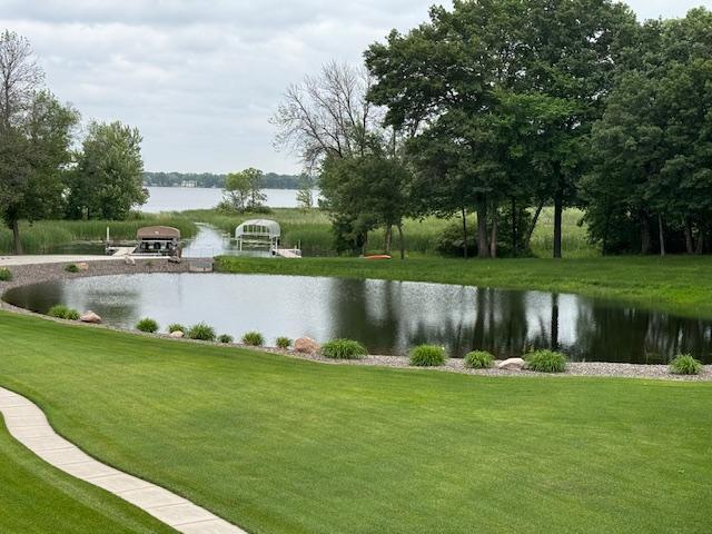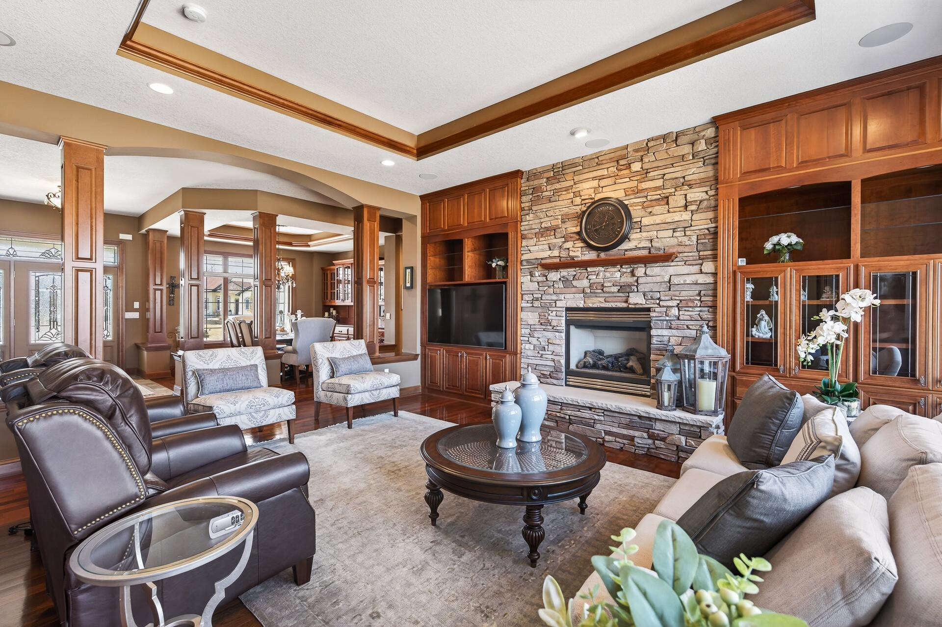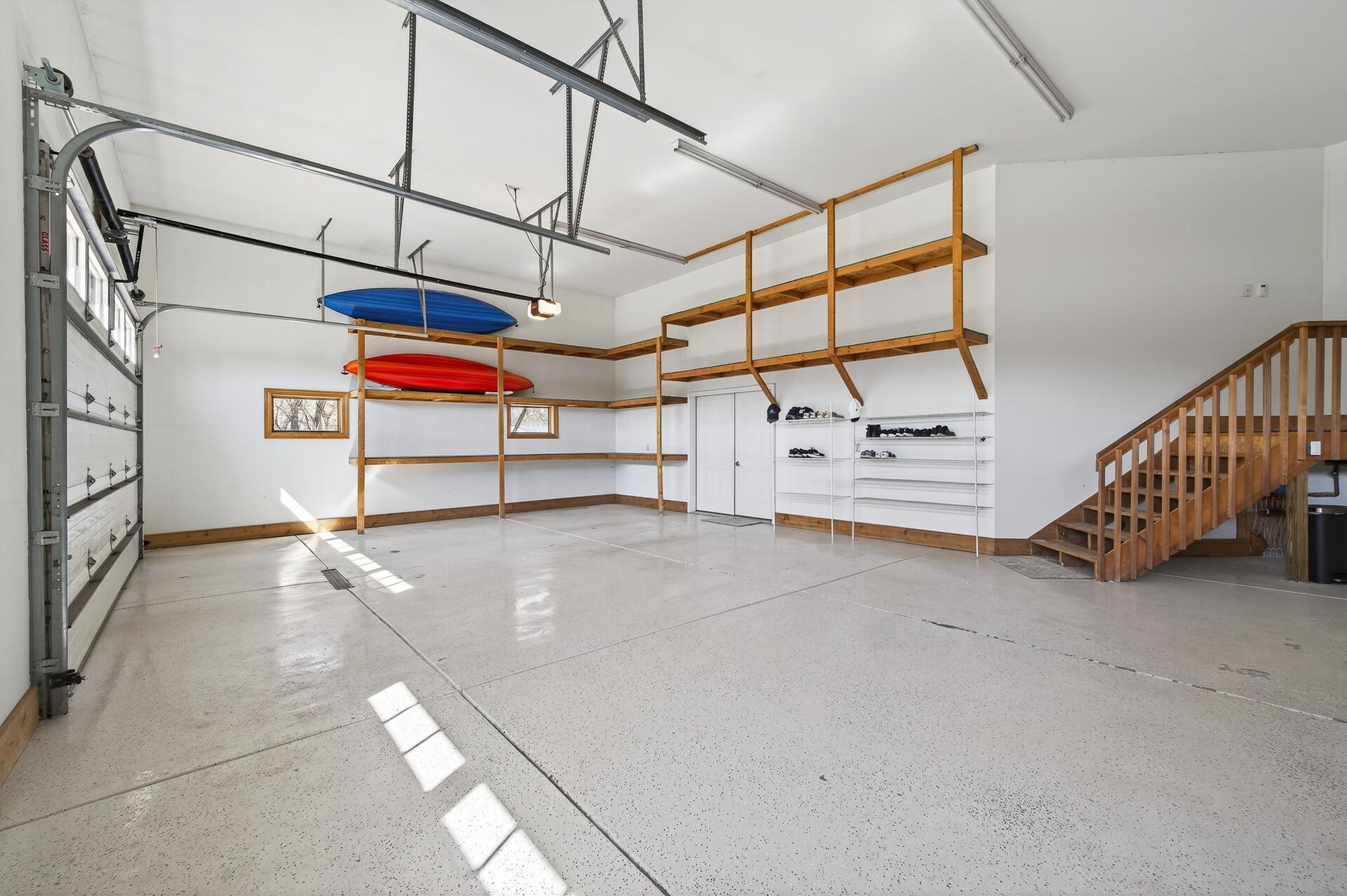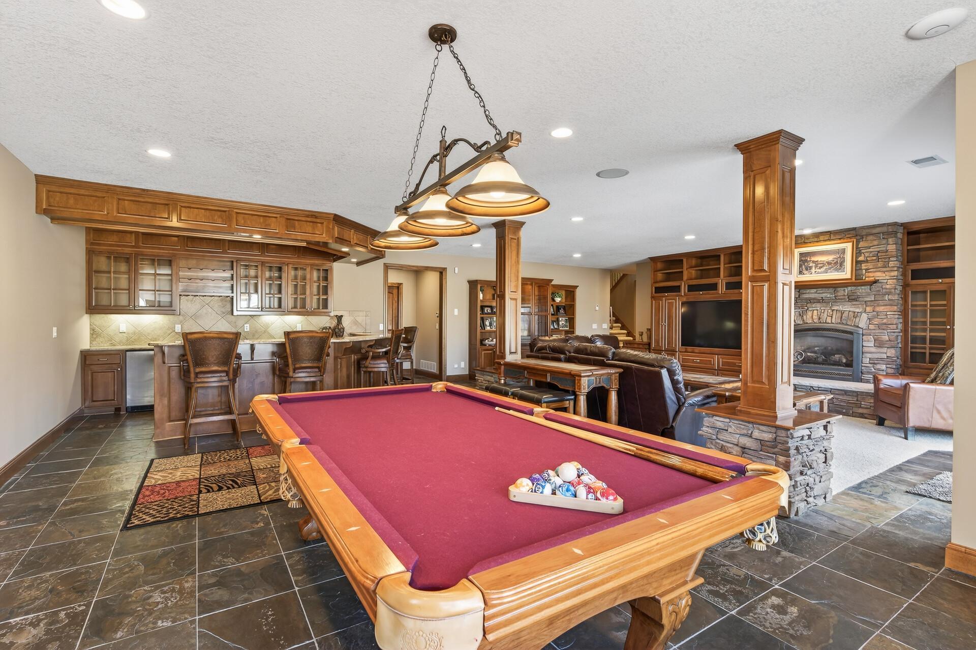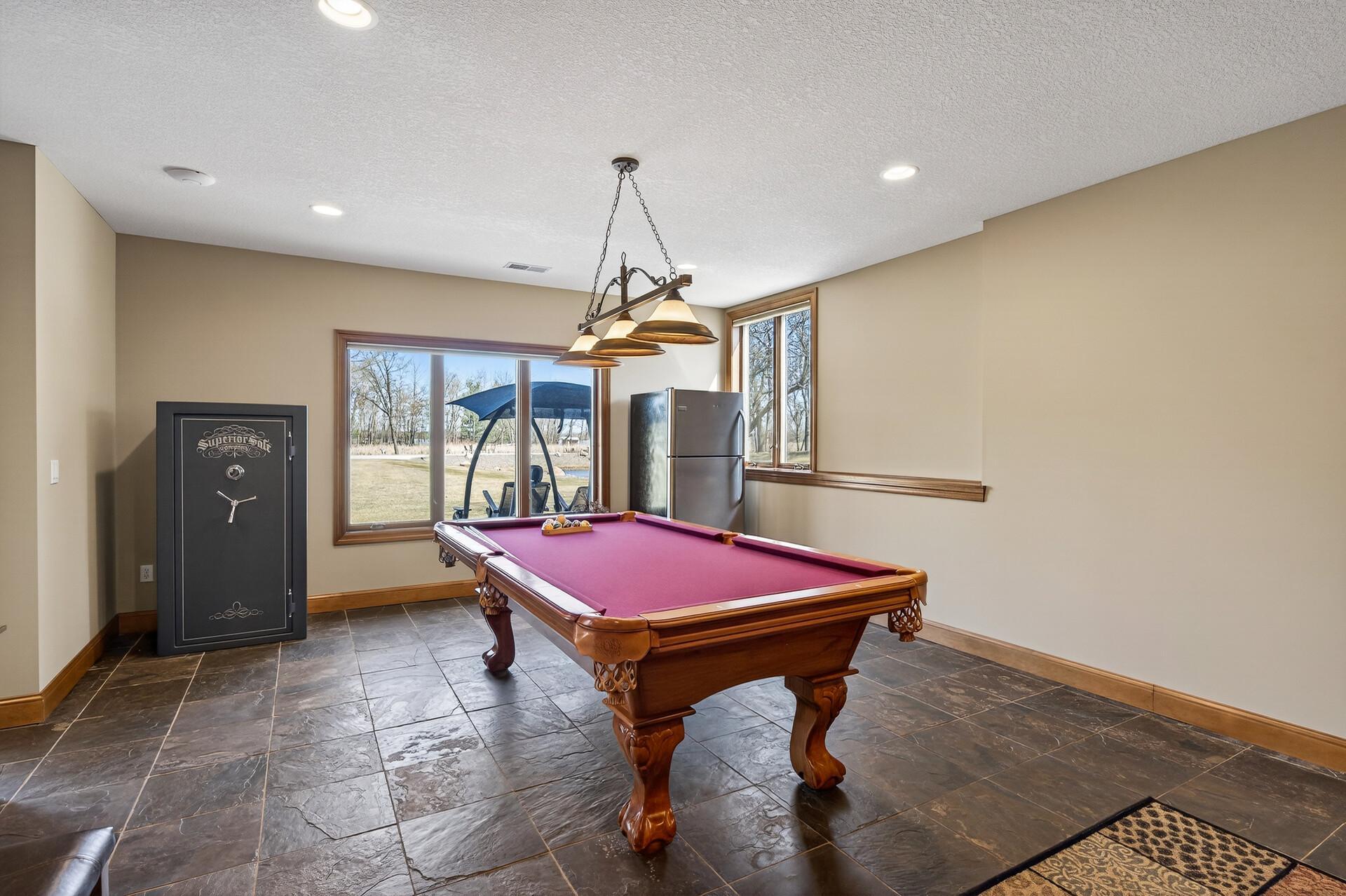 Take a look at this meticulously maintained custom rambler on Lake George nestled on a quiet cul-de-sac, this exceptional lake home offers stunning views, quality craftsmanship, and countless upgrades throughout. Enjoy true lake living with a sand beach, boat house, and beautifully landscaped setting. This fully finished home features 3 bedrooms and 4 bathrooms, with rich cherry wood cabinetry and suppeli wood flooring adding warmth and elegance throughout. The spacious primary suite overlooks the lake and includes dual sinks, a jetted tub, walk-in shower, and an oversized walk-in closet. The kitchen is beautifully appointed with bronze appliances and granite countertops throughout, offering both style and functionality. The main level also features a cozy living room with a brick-surround gas fireplace, a dedicated in-home office with built-ins, enjoy a relaxing sunroom with a vaulted cedar ceiling surrounded by windows attached to a a relaxing 4-season porch with a fireplace—perfect for enjoying peaceful sunrises and evening sunsets over the water. The lower level is designed for entertaining, featuring a large family room with a second gas fireplace, a full wet bar, a theater room with projector and reclining seating, a full bathroom with jetted tub, and an additional flex room ideal for a gym, playroom, or lounge. In-floor heat runs throughout the basement and both garages for year-round comfort. Car enthusiasts and hobbyists will love the oversized, heated, and insulated 4-car garage with epoxy flooring, plus an additional 22x30 attached garage/shop with a 12’ overhead door—perfect for storing a camper or recreational vehicles. Additional highlights include a newer 300’ asphalt driveway leading to the lake, complete with parking and utility hookups for campers. This home offers the perfect blend of luxury, comfort, and lakefront living—ideal for both everyday living and entertaining. Don’t miss this rare opportunity on Lake George!