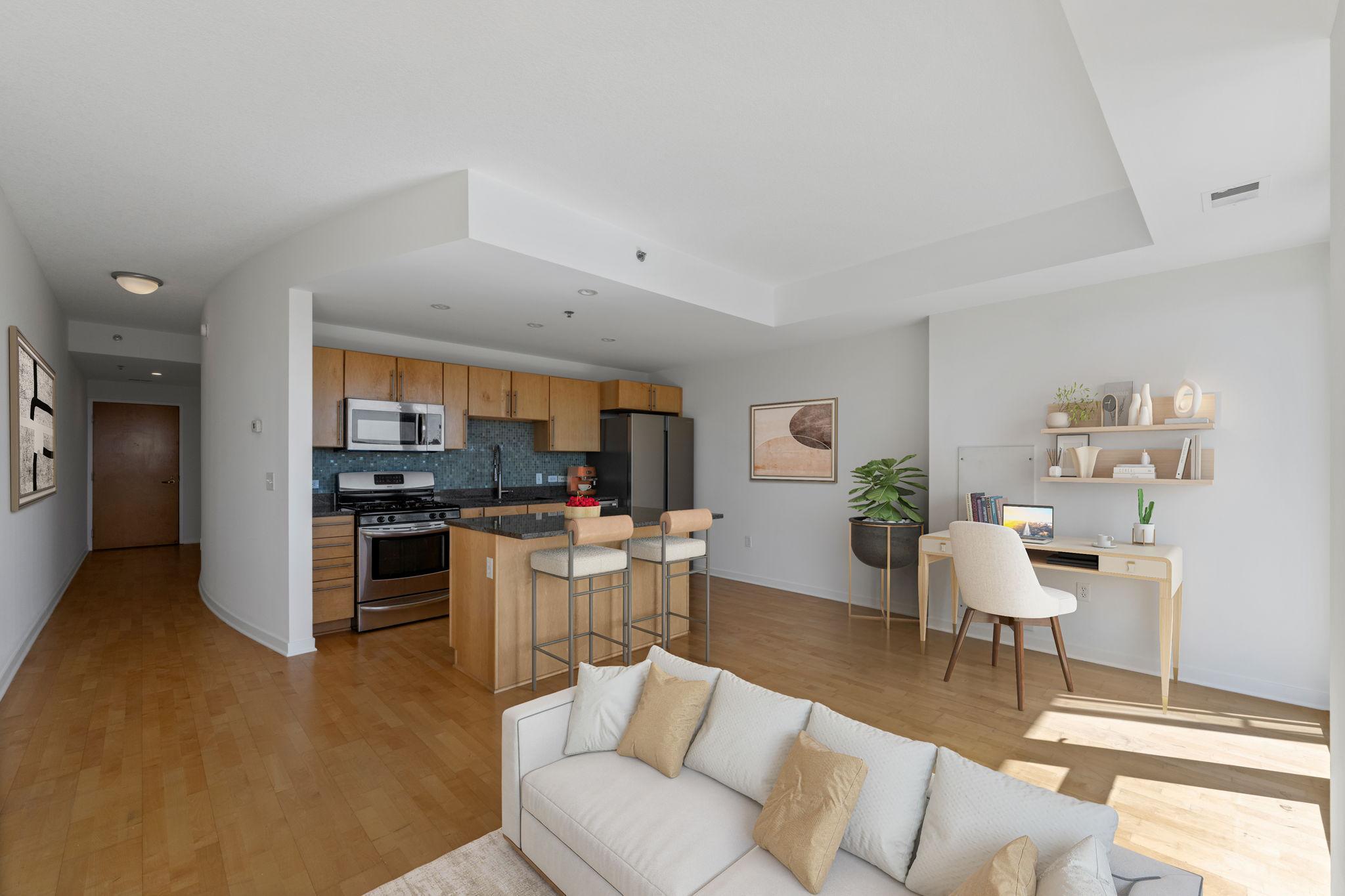 Welcome home to panoramic views from this newly updated Skyscape condo with indoor/heated parking included with rent! You’ll love the newly remodeled bathroom, full-size washer & dryer, hardwood flooring throughout the condo, and sunset-facing balcony. Kitchen features granite countertops, tiled backsplash, gas oven, island and stainless-steel appliances. Skyscape residents enjoy the 6th floor community lawn & patio with grilling stations, fitness center with jacuzzi & sauna, community room, 24/7 front desk staff, secure access, and indoor/heated guest parking. Included with rent: 1 indoor heated parking stall, climate-controlled storage unit, gas, and water/sewer/trash. Tenant responsible for electricity and elective cable & internet. App Fee: $78. Admin Fee: $150 and Move-in fee: $350. Security Deposit is One Month's Rent.