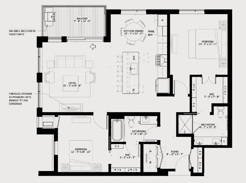Welcome to The Winn! This expansive 2-bedroom, 2-bath residence offers 1,398 square feet of open living space in a desirable corner layout filled with natural light. The Sweeney features a gourmet kitchen with designer hood and island, a dedicated dining area, and a full-size in-home laundry room with folding counter. Select homes include a private balcony with gas grill and a modern gas fireplace. The thoughtful floorplan provides excellent bedroom separation and generous walk-in closets.