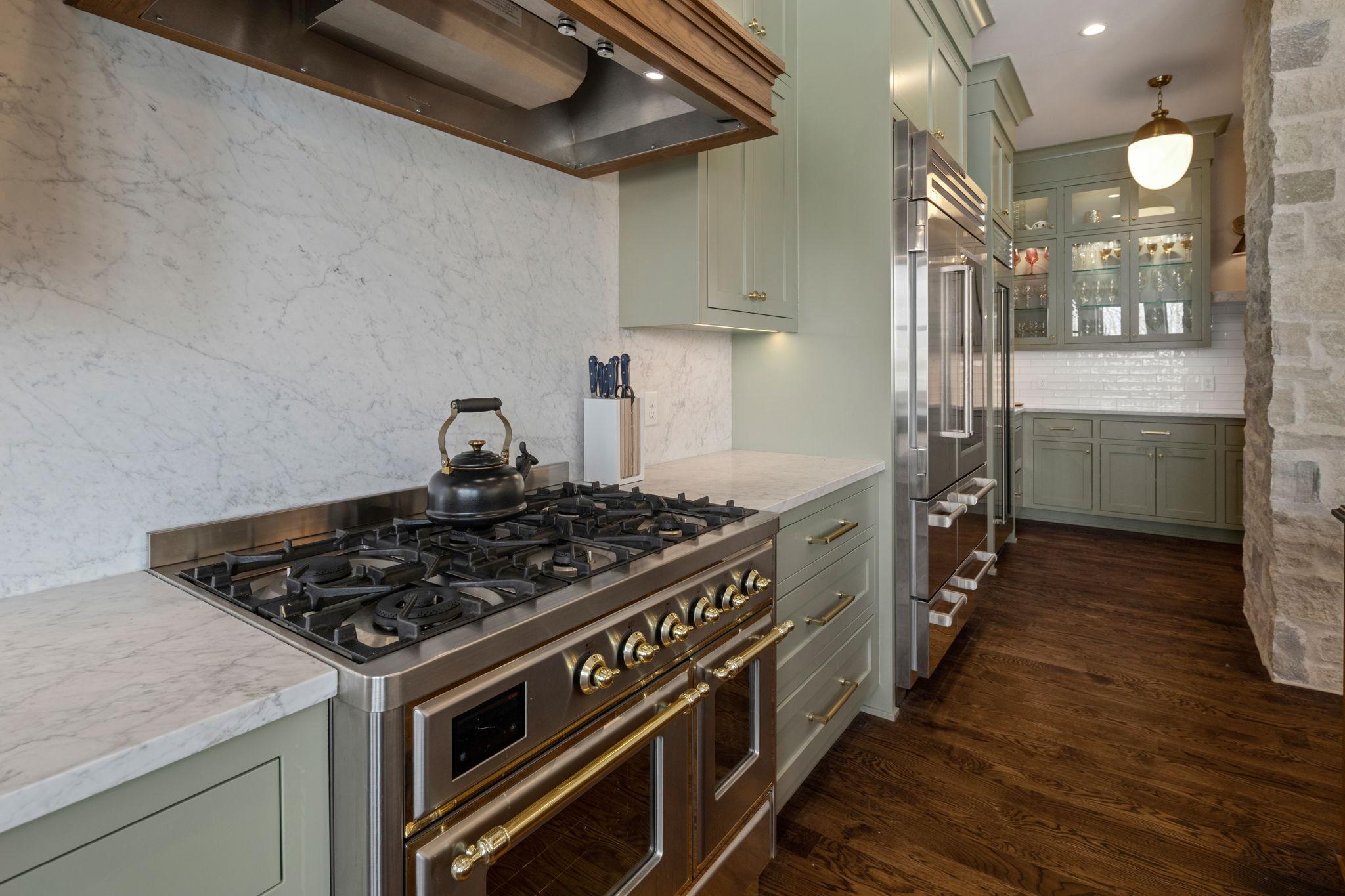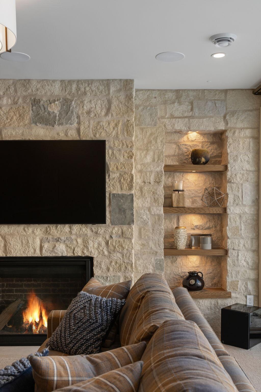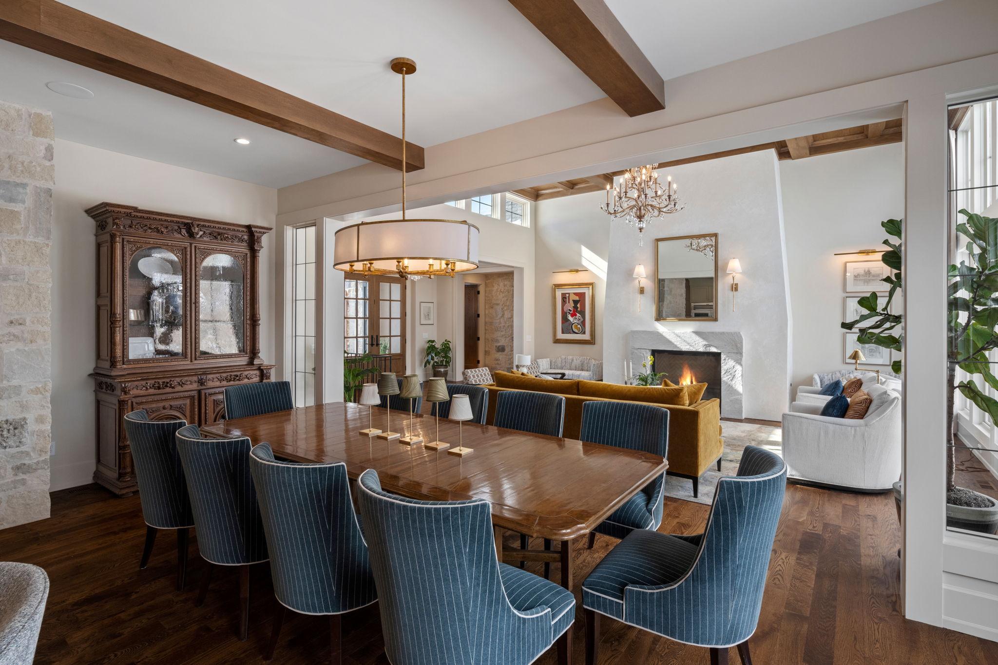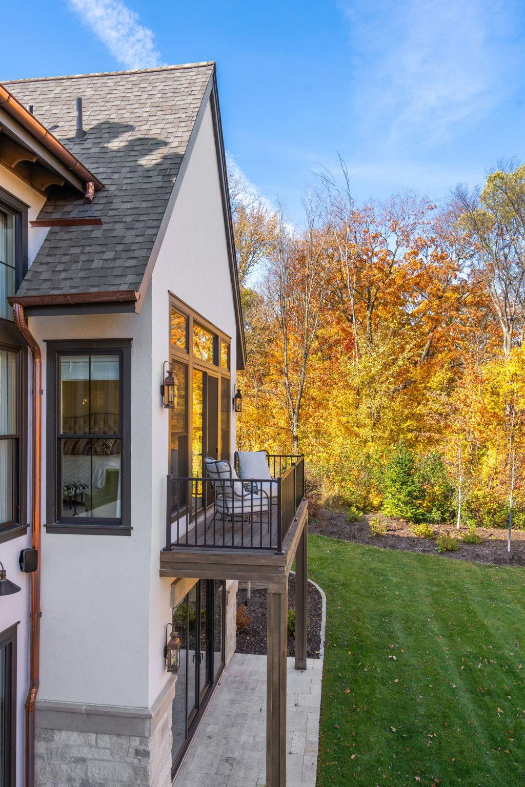 A true statement in architectural design, the home's exterior blends refined materials and clean lines to create a bold and elegant presence. The inspiring great room showcases detailed coffered ceilings with rich woodwork setting the stage, complimented by a statement chandelier and expansive floor-to-ceiling windows that flood the space with natural light. The stone fireplace serves as a warm focal point, creating an inviting atmosphere perfect for both everyday living and entertaining. Where design meets function- the kitchen is built to gather. An expansive island invites conversation, while layered textures- from the stone wall to the custom cabinetry and warm wood beams- create a space that is elevated yet engaging. A well-appointed scullery is a hidden surprise. The primary suite is expansive, with no expense spared, featuring floor-to-ceiling windows and a gas fireplace in the bedroom, a spa-like bath with rich marble and soaking tub as the focal point surrounded by serene natural views, in-unit laundry, and an oversized custom closet designed to accommodate even the most extensive wardrobe. Exceptional three season porch featuring a dramatic vaulted wood ceiling, statement chandelier, infrared heating system, and a full-height stone fireplace. Additional amenities elevate the home's lifestyle appeal, including a fully equipped lower level with wet bar, golf simulator, home gym, and dedicated massage area, complemented by a custom wine room, outdoor hot tub, raised stone vegetable garden, and a charming potting shed. Located within the award winning Orono school district.